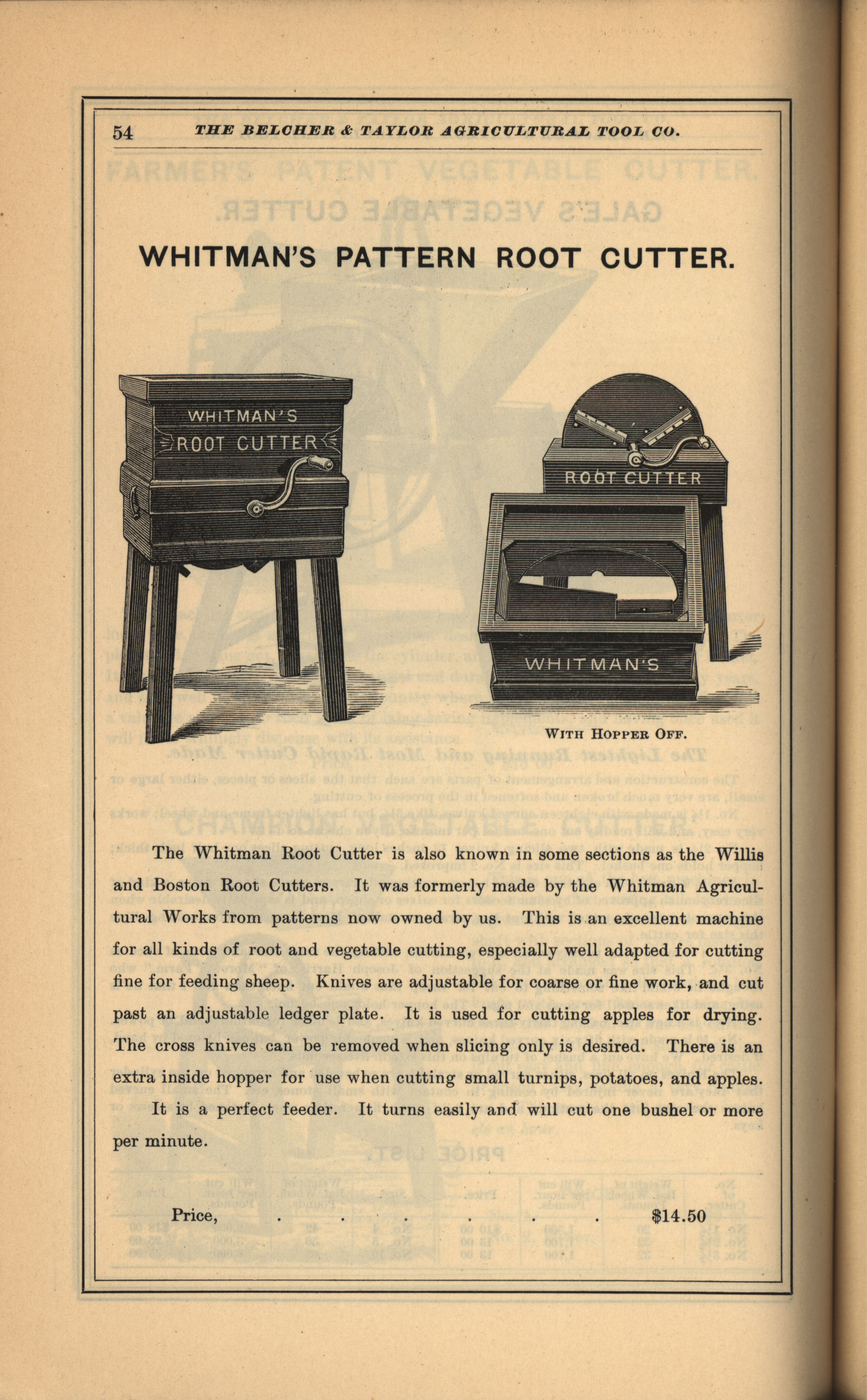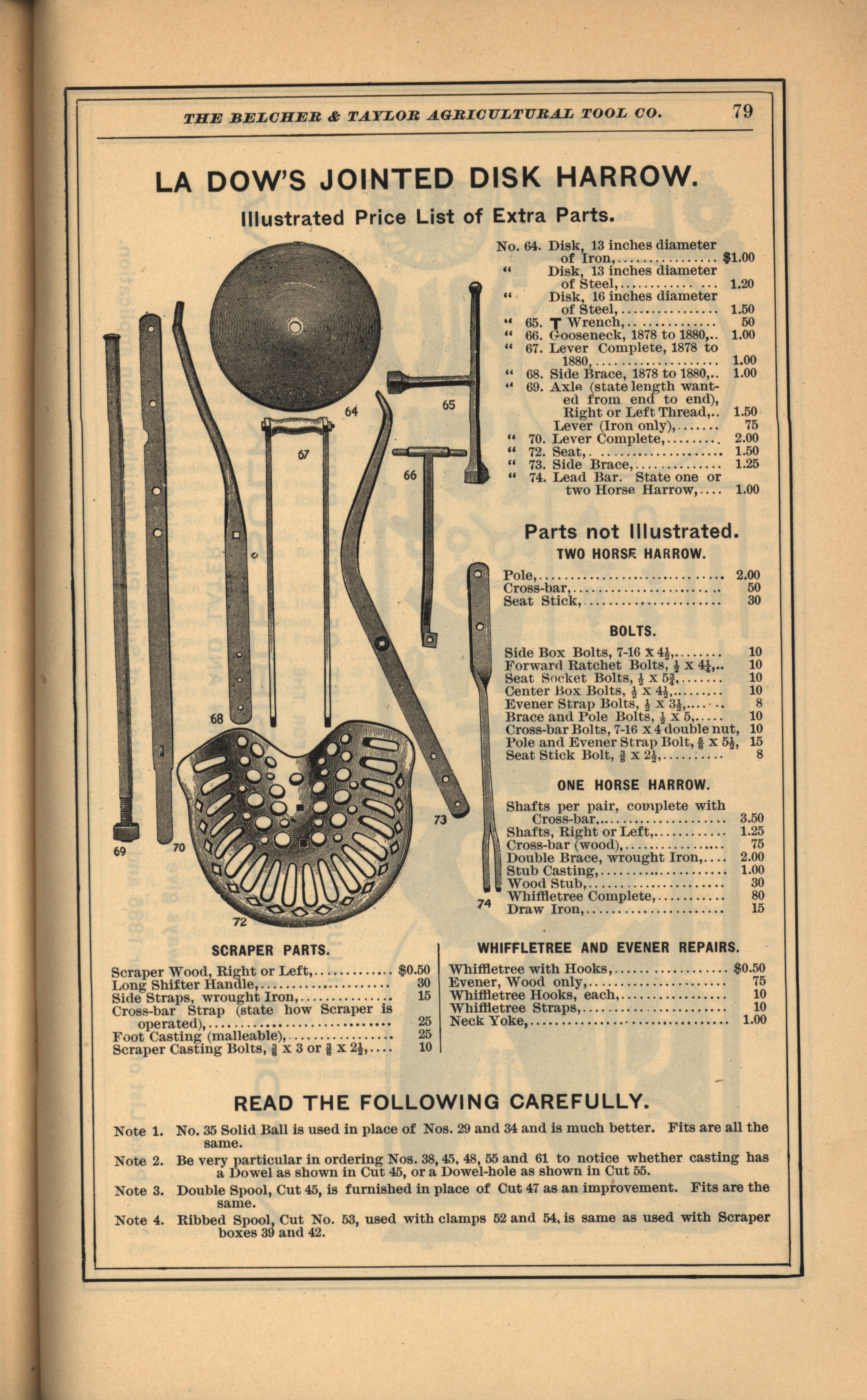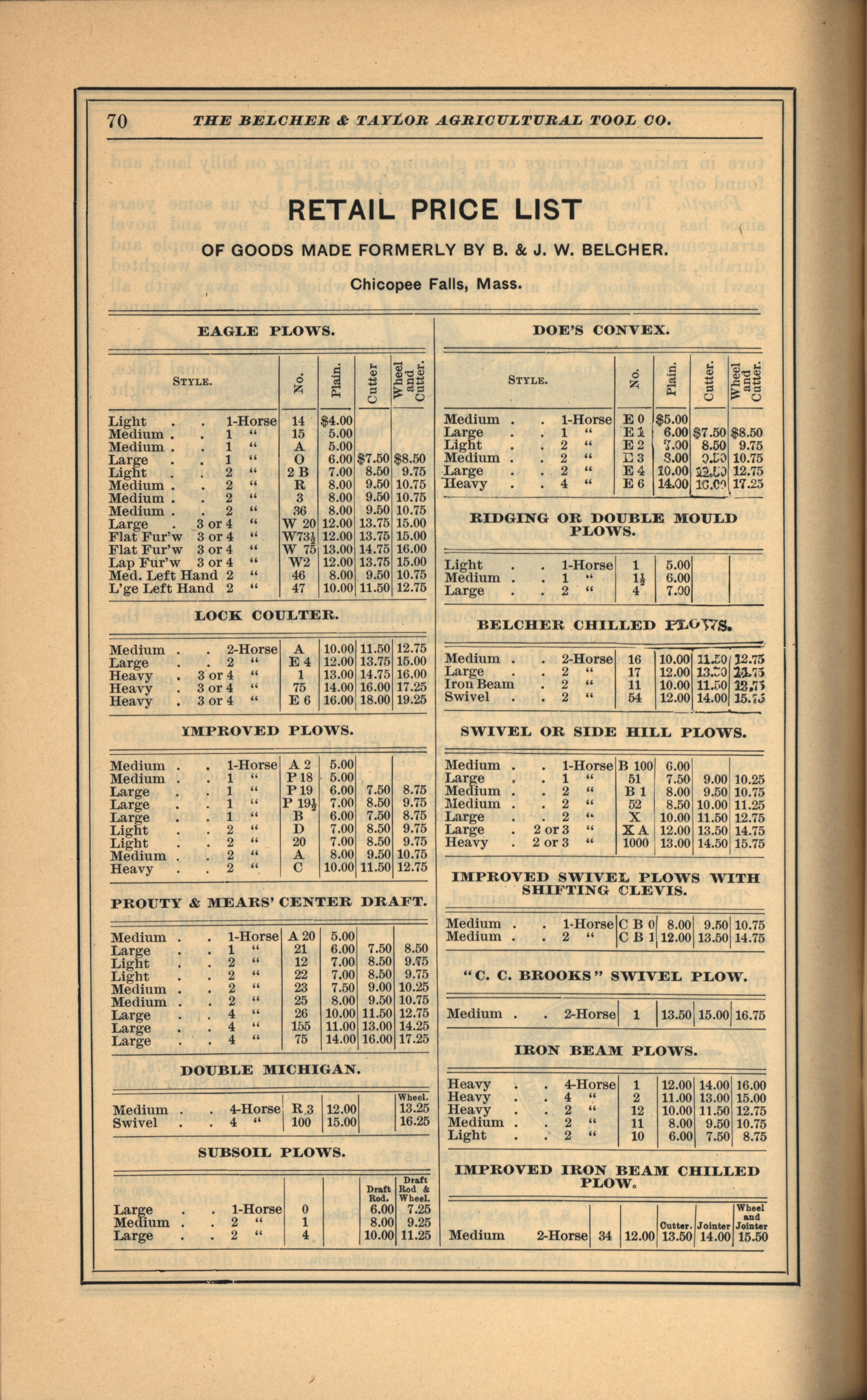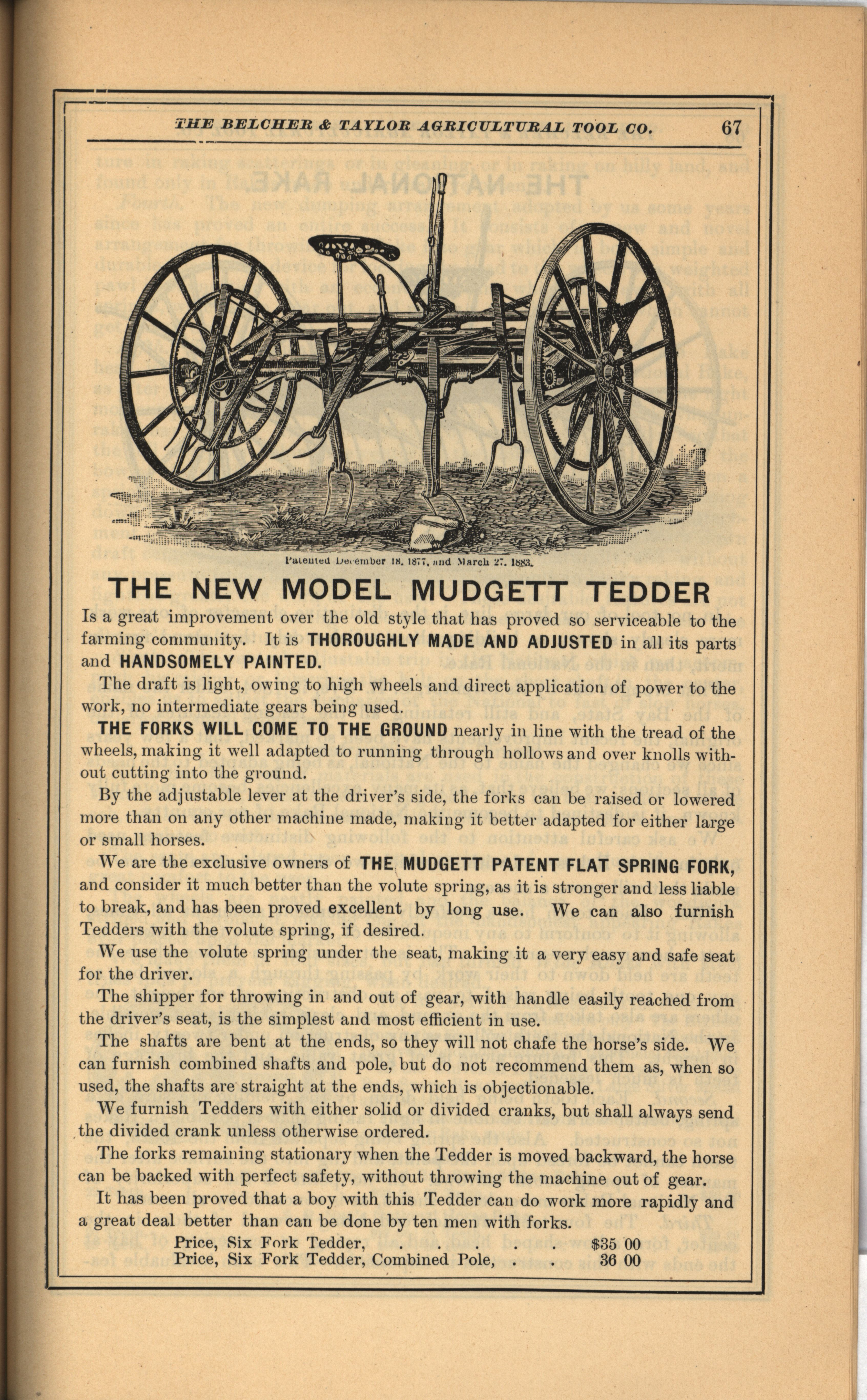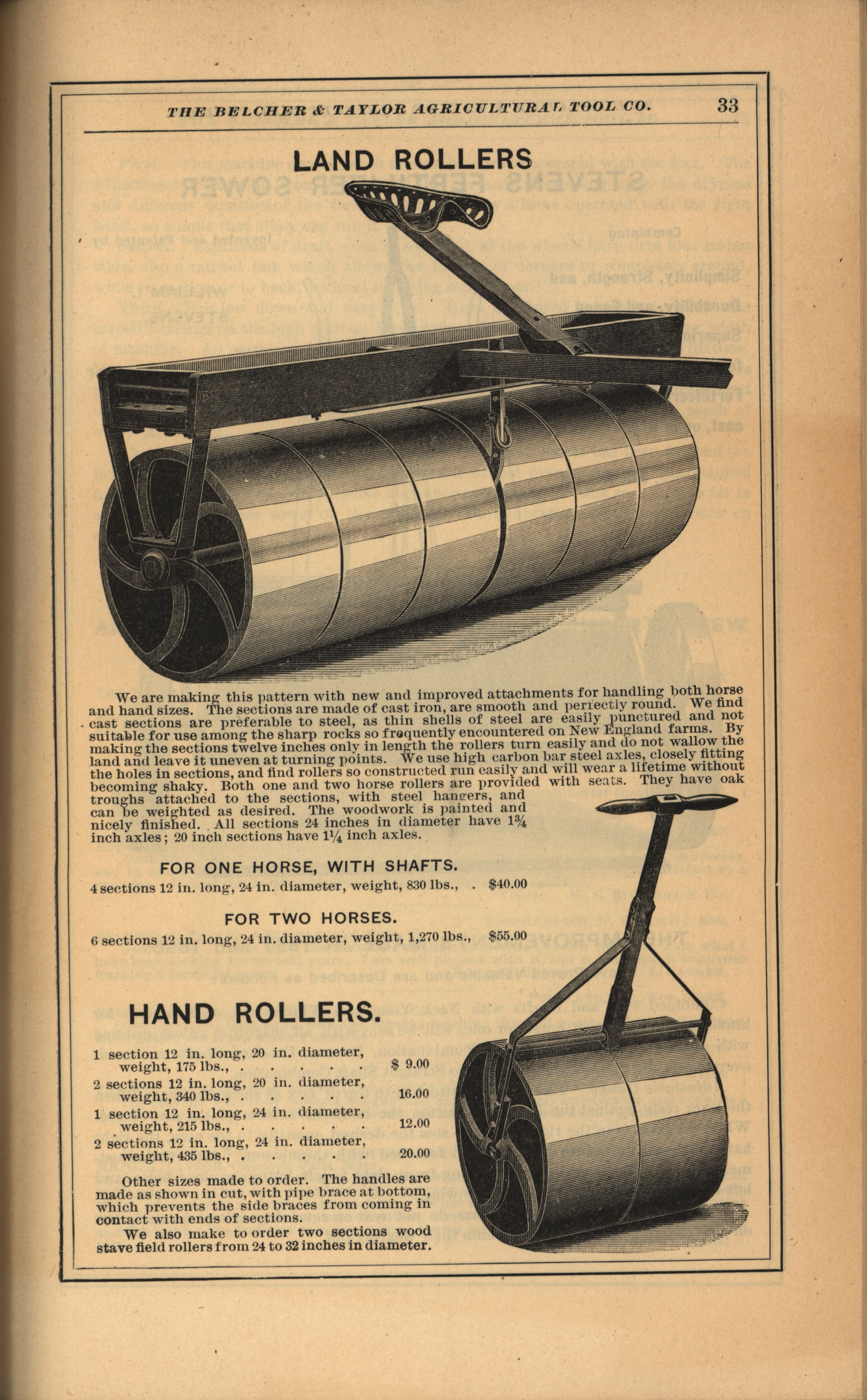 - Catalog describing agricultural products offered by the Belcher and Taylor Agricultural Tool Company, includes illustrations.