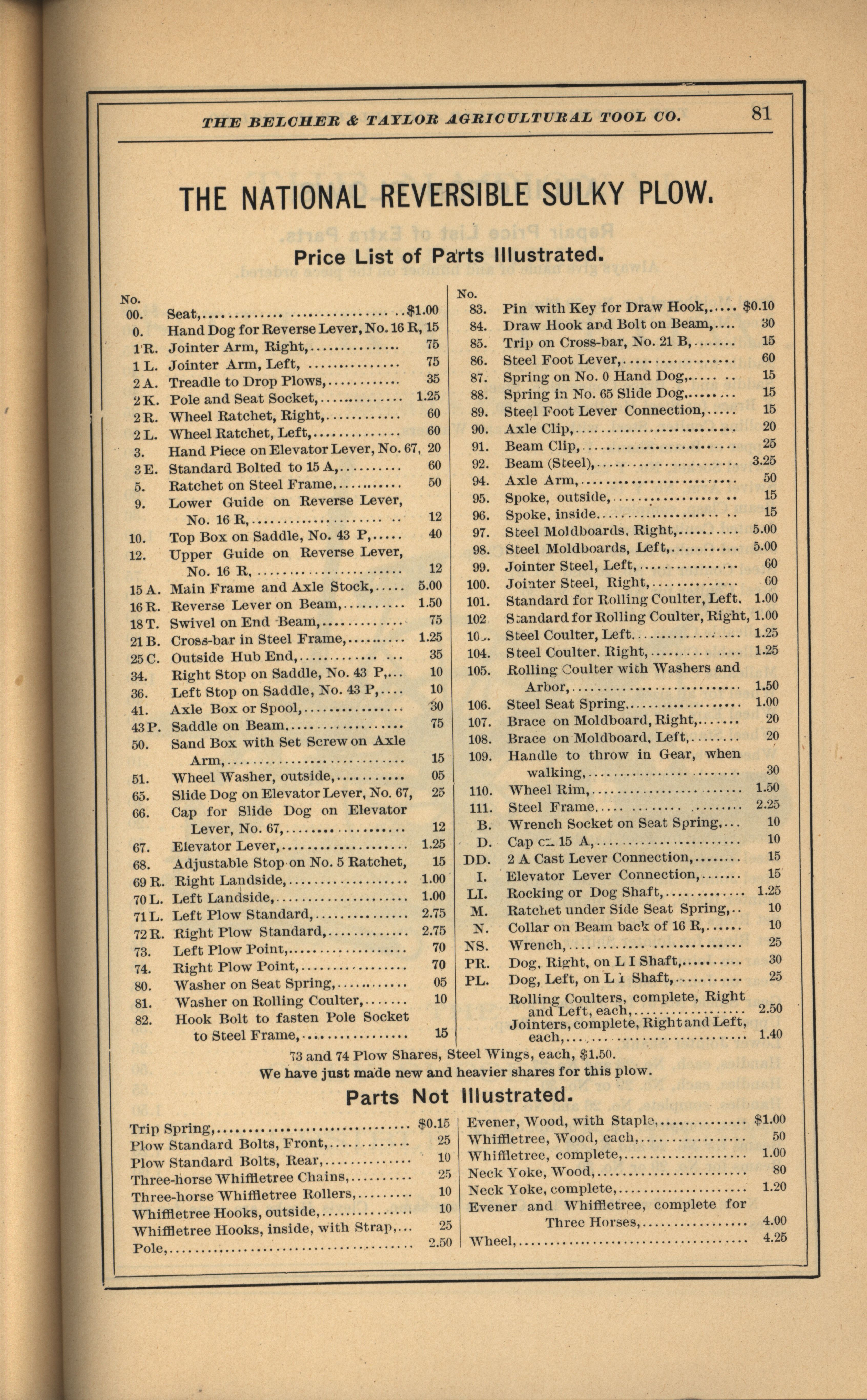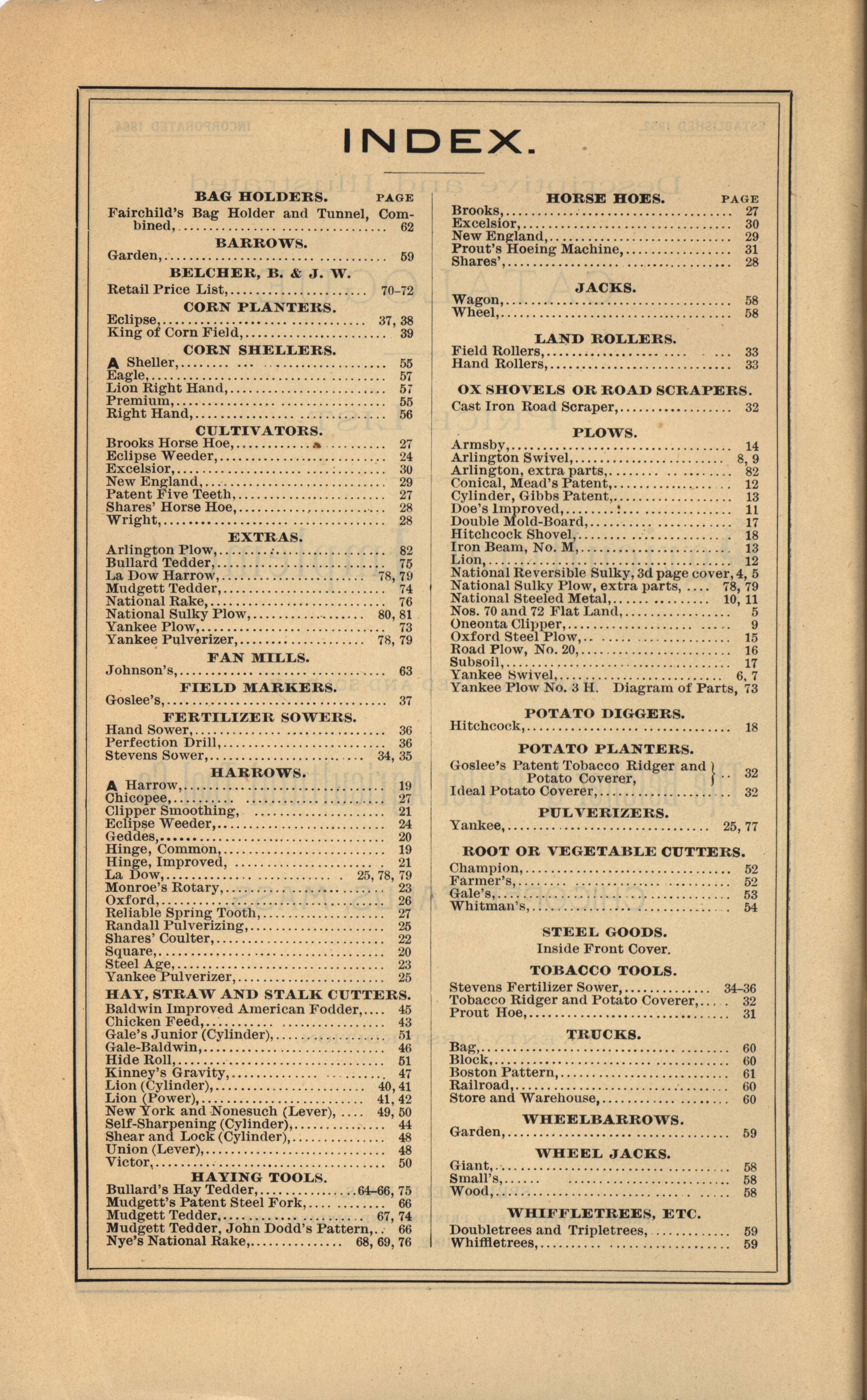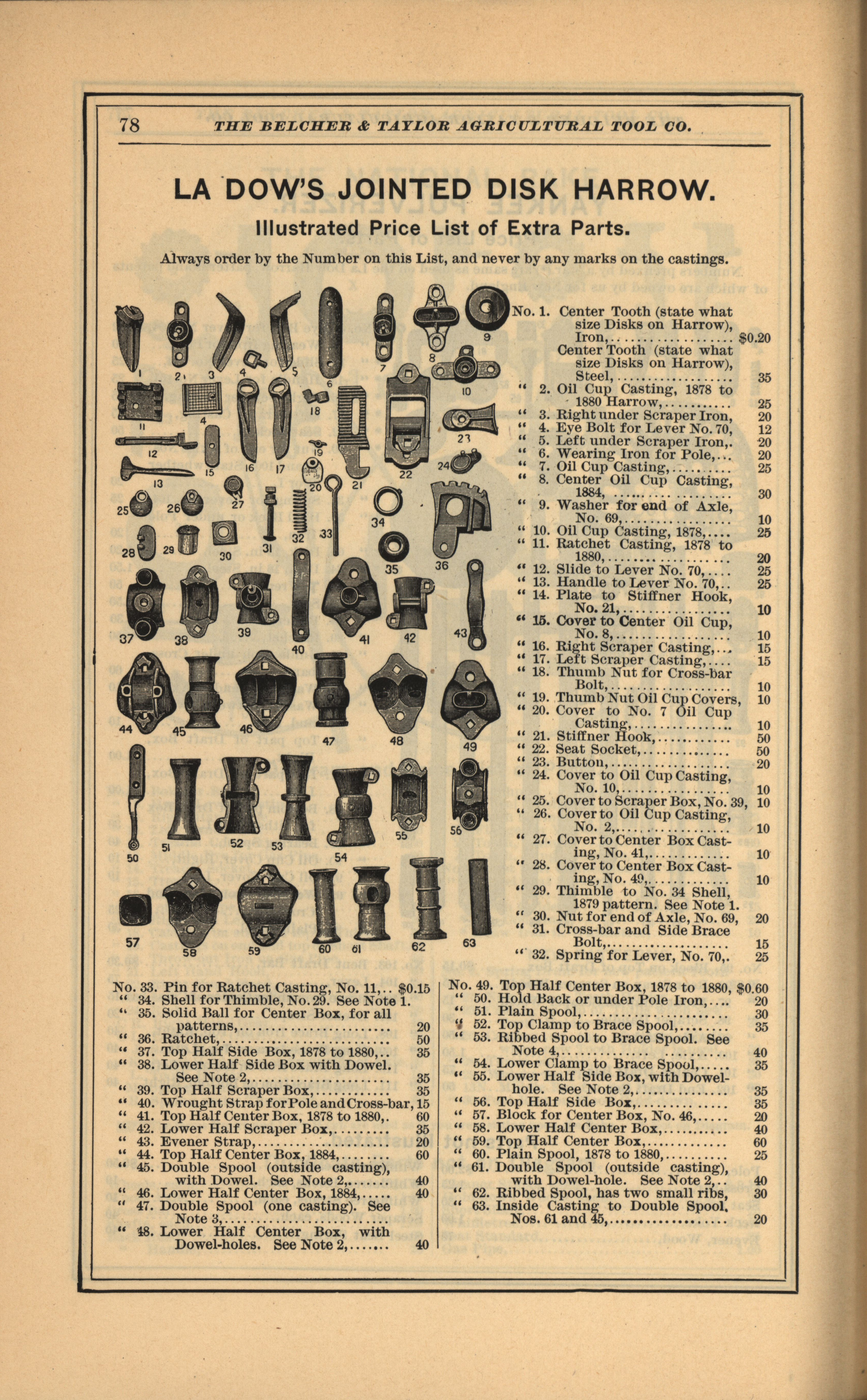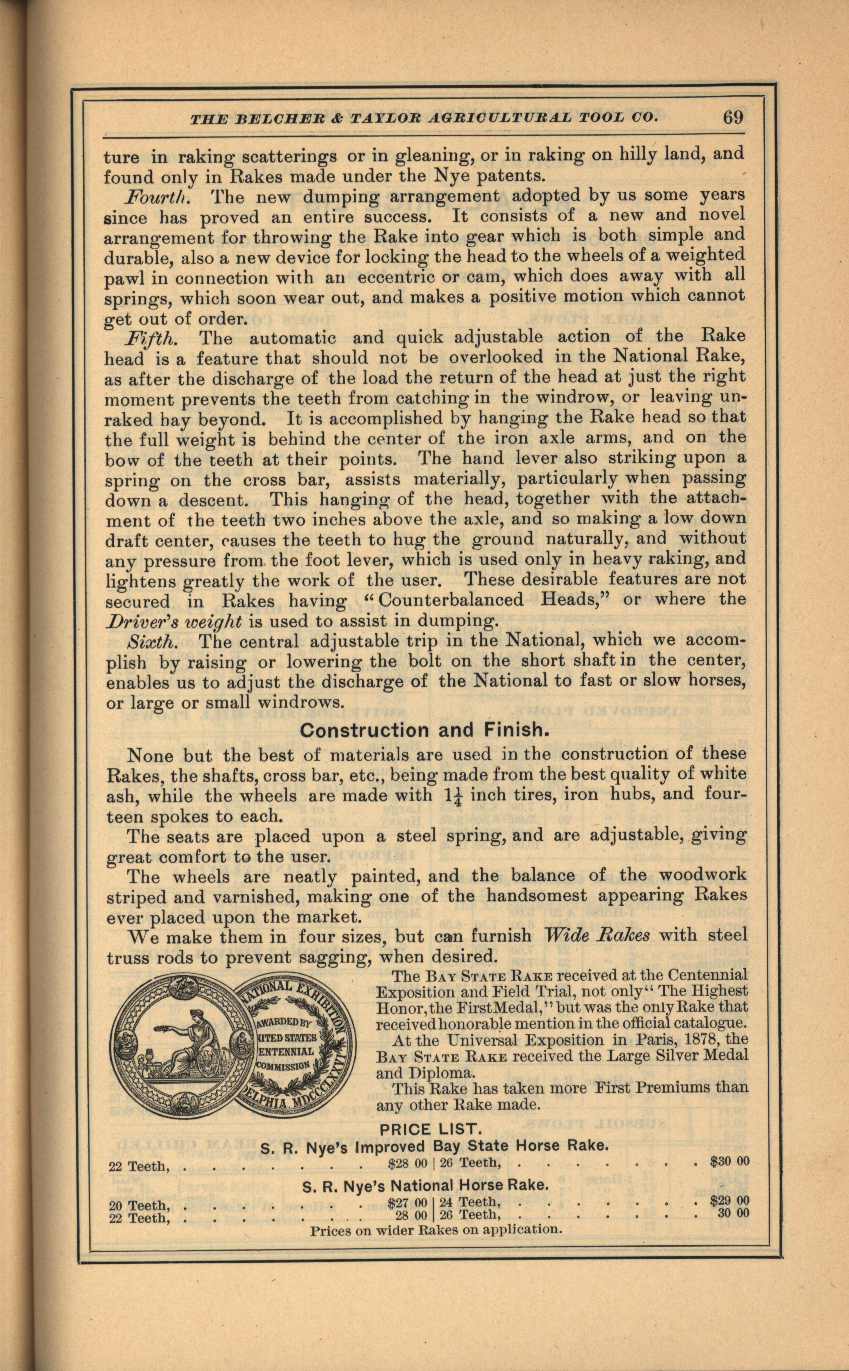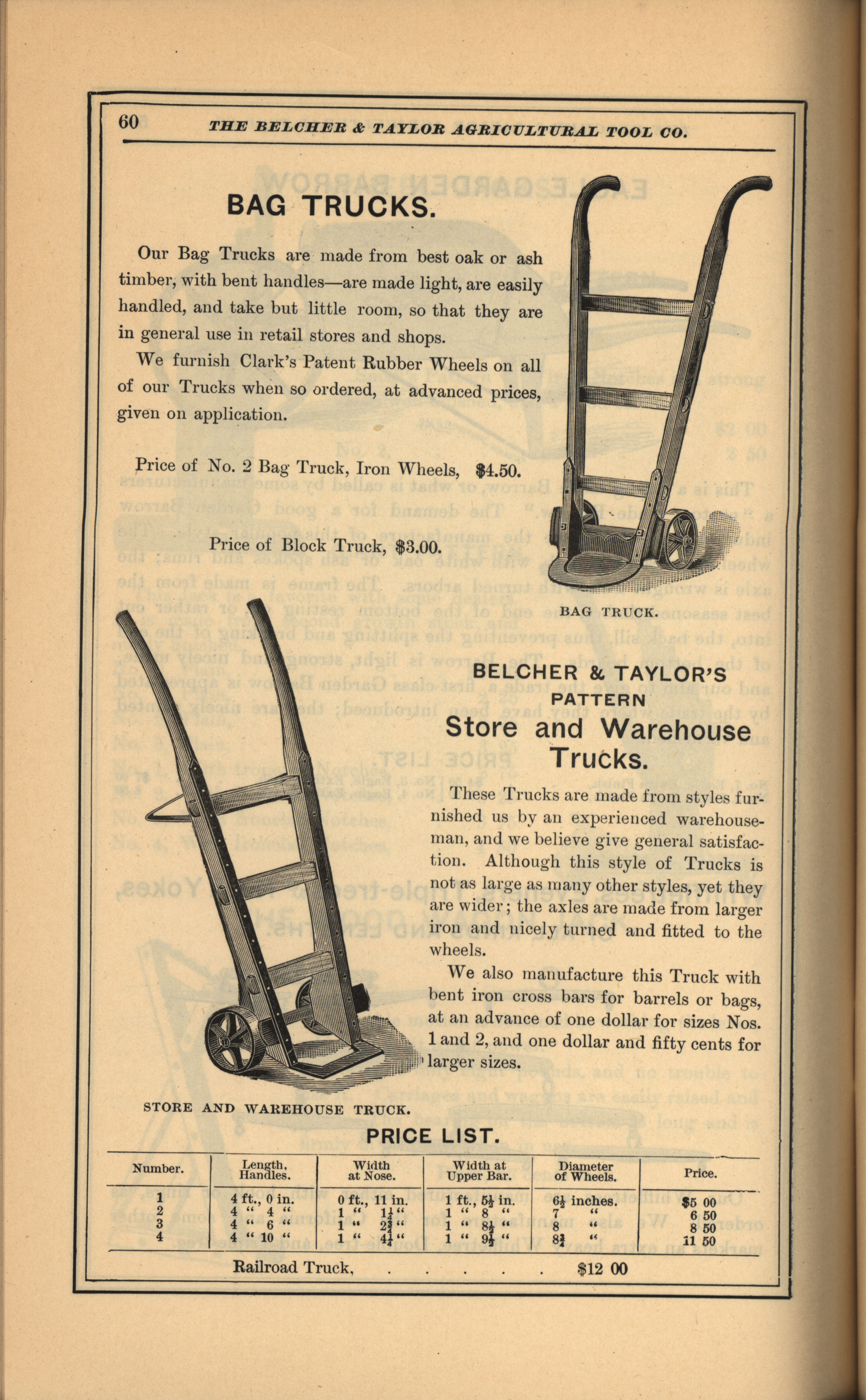 - Catalog describing agricultural products offered by the Belcher and Taylor Agricultural Tool Company, includes illustrations.
