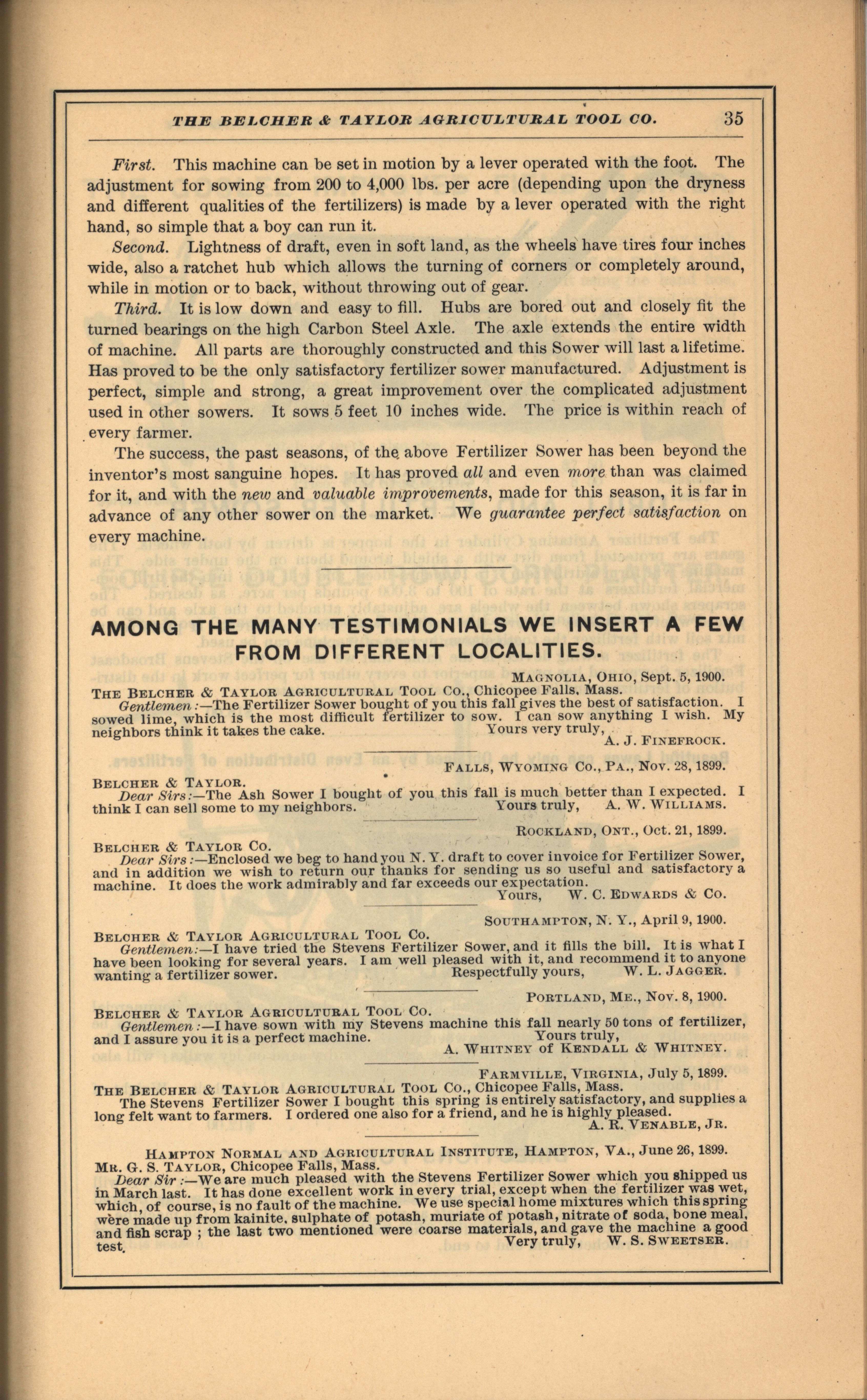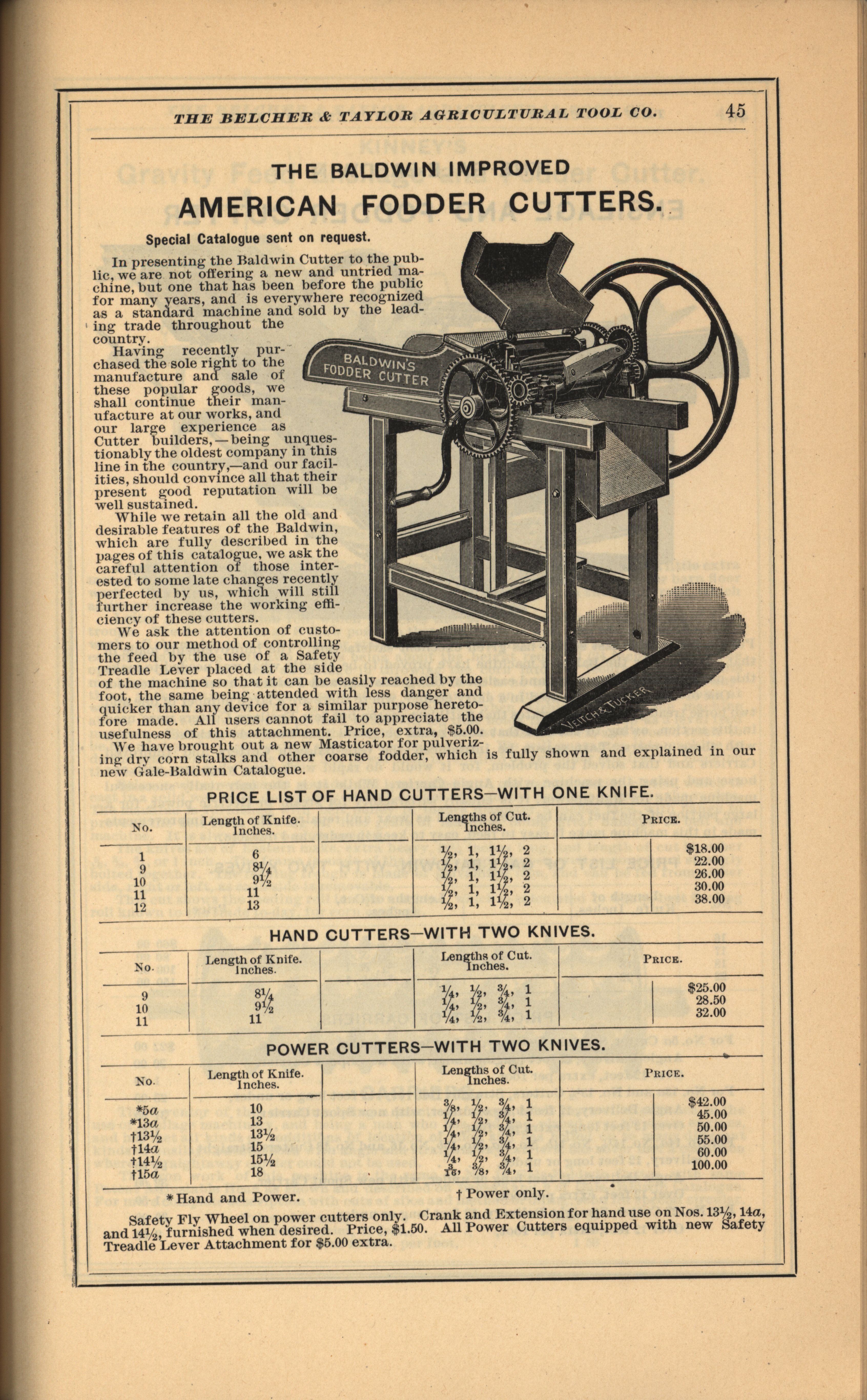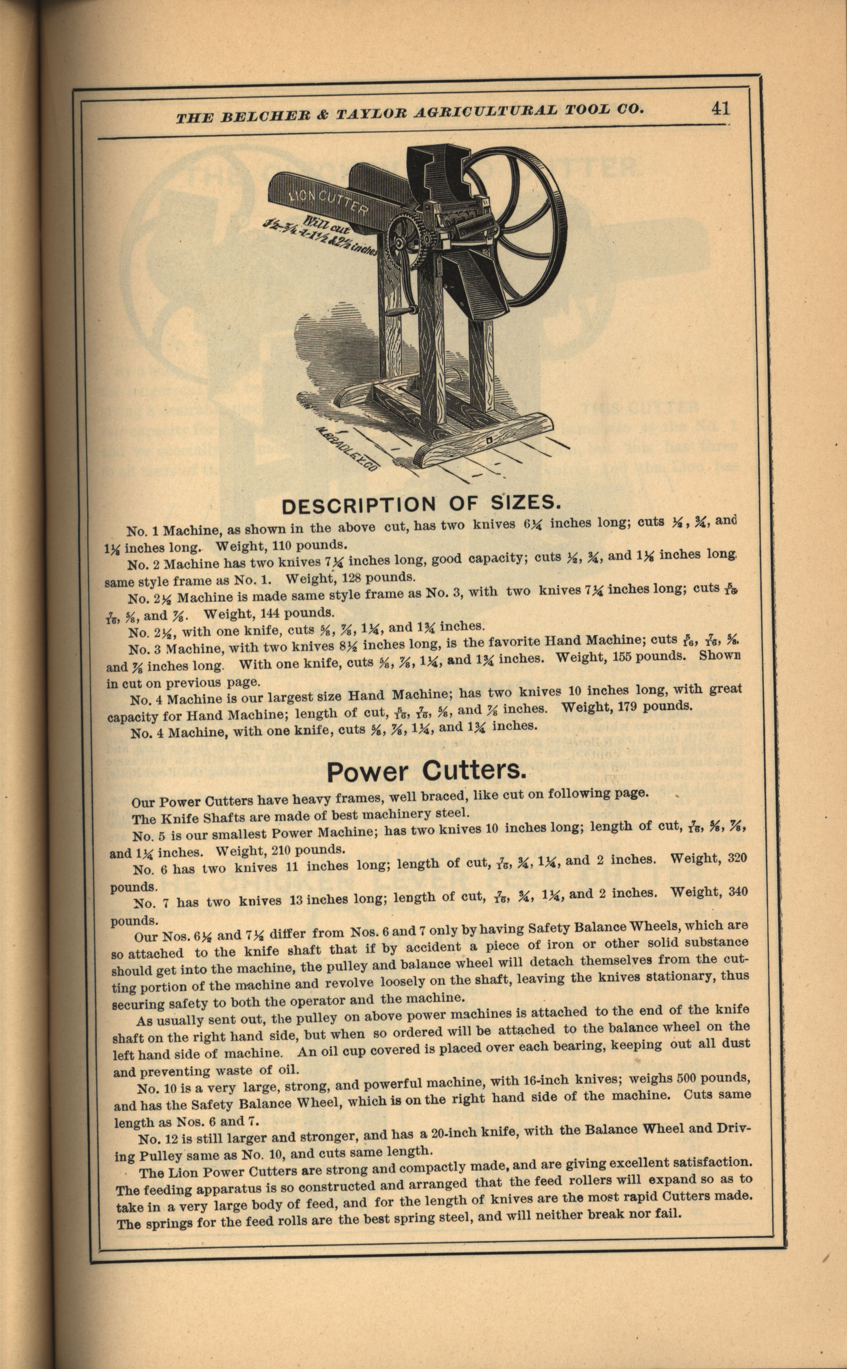 - "Belcher and Taylor Agricultural Tool Company 1902 catalog", Agricultural Machinery Literature Collection, Iowa State University Library Digital Collections
