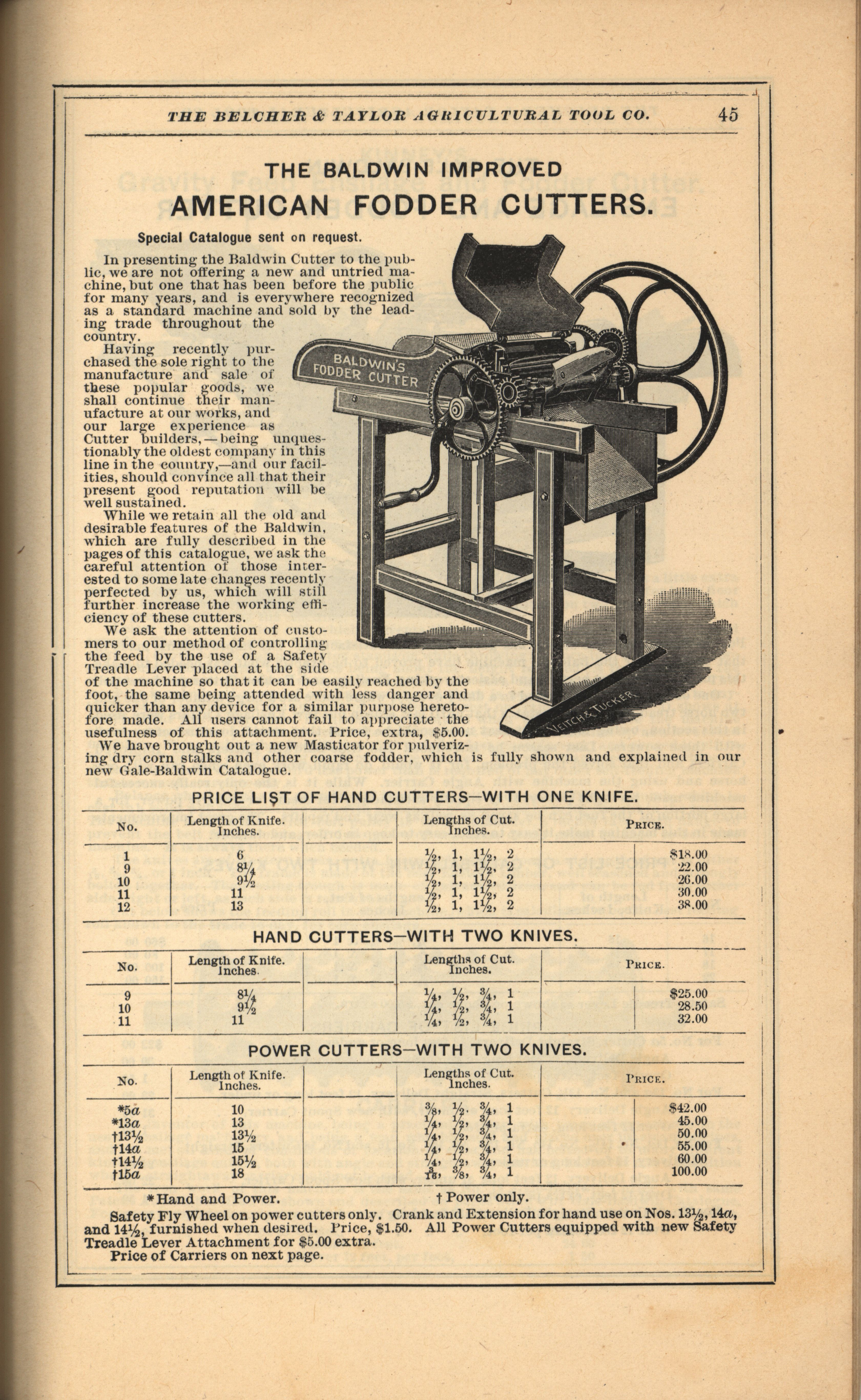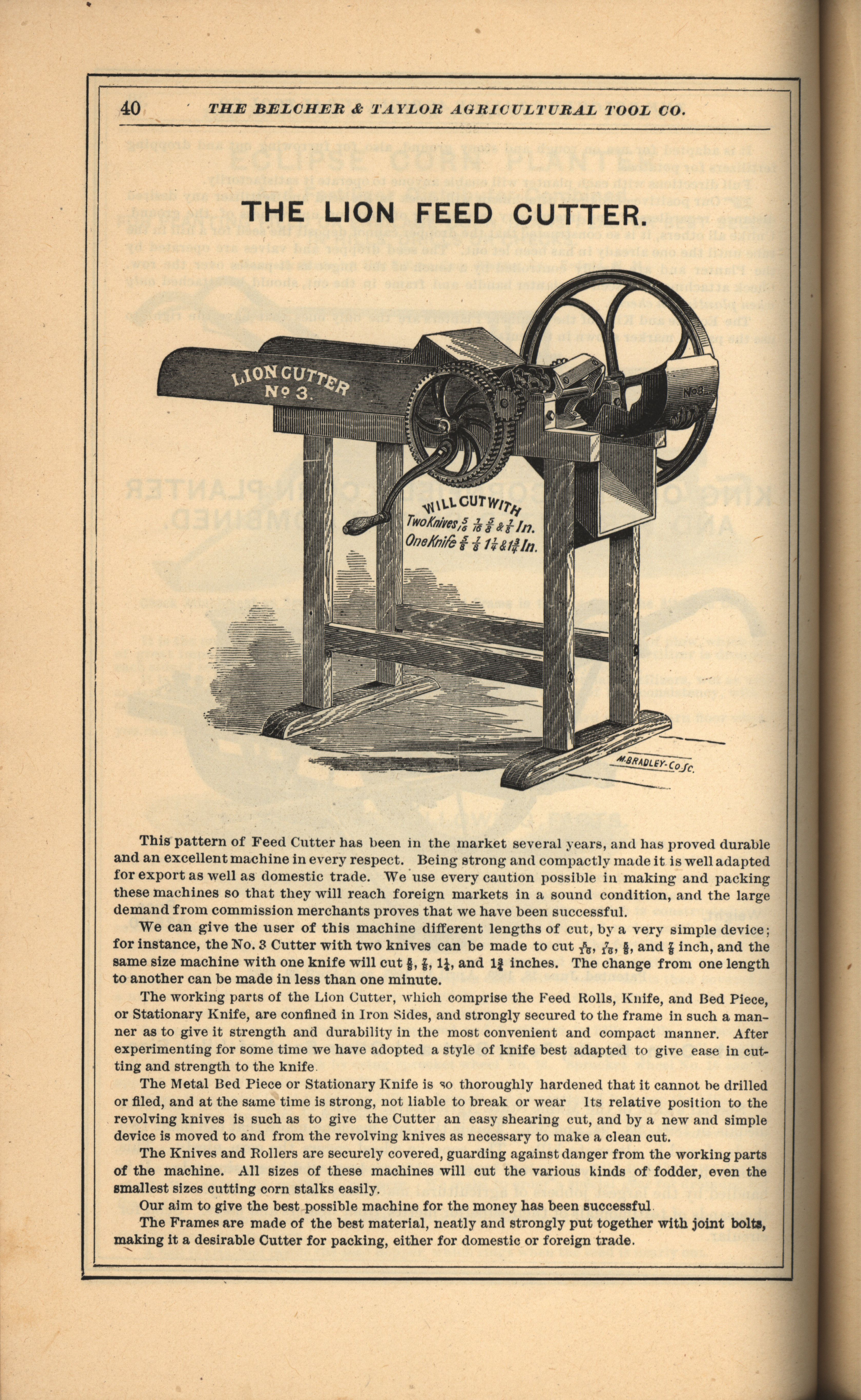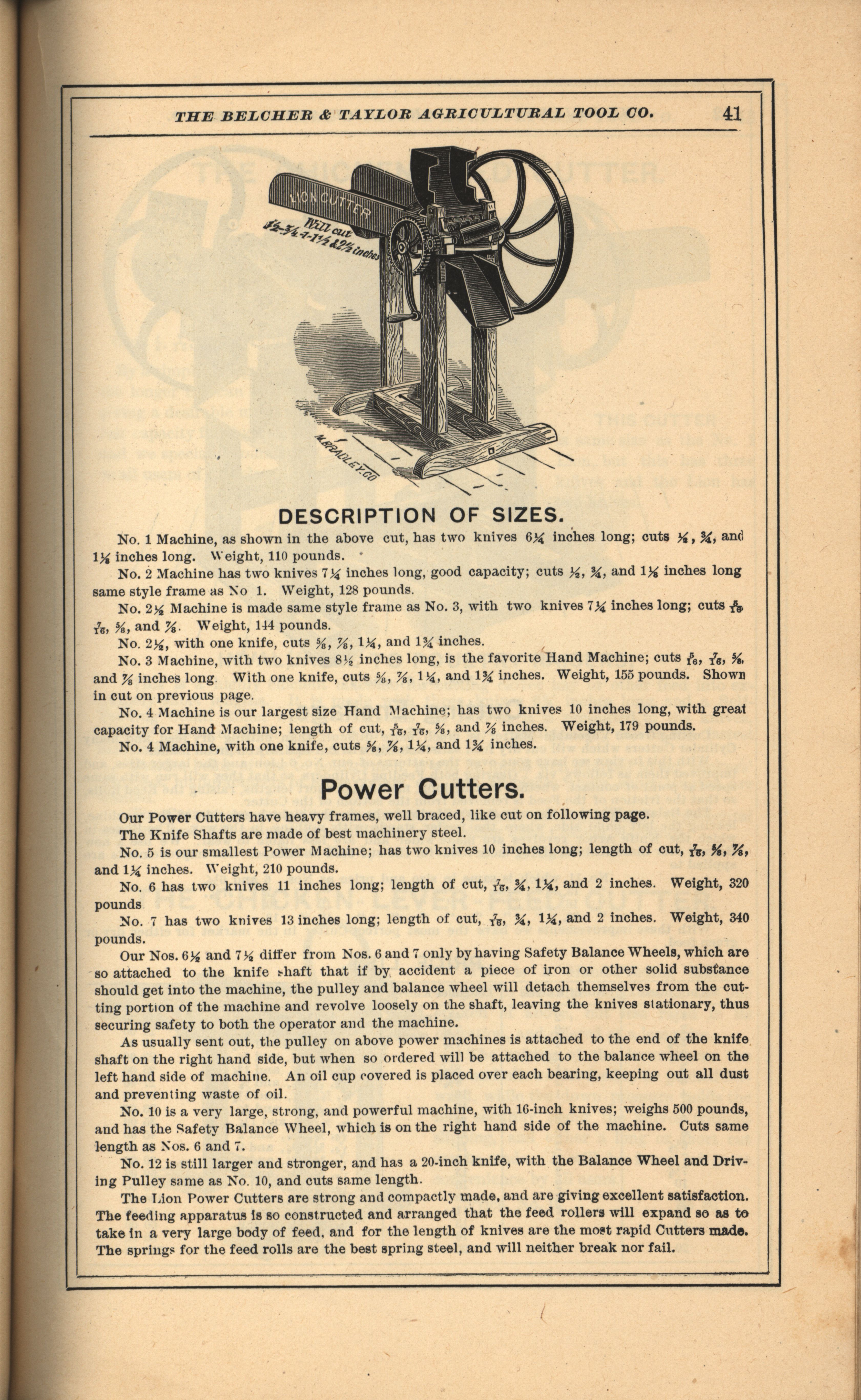 - "Belcher and Taylor Agricultural Tool Company catalog", Agricultural Machinery Literature Collection, Iowa State University Library Digital Collections