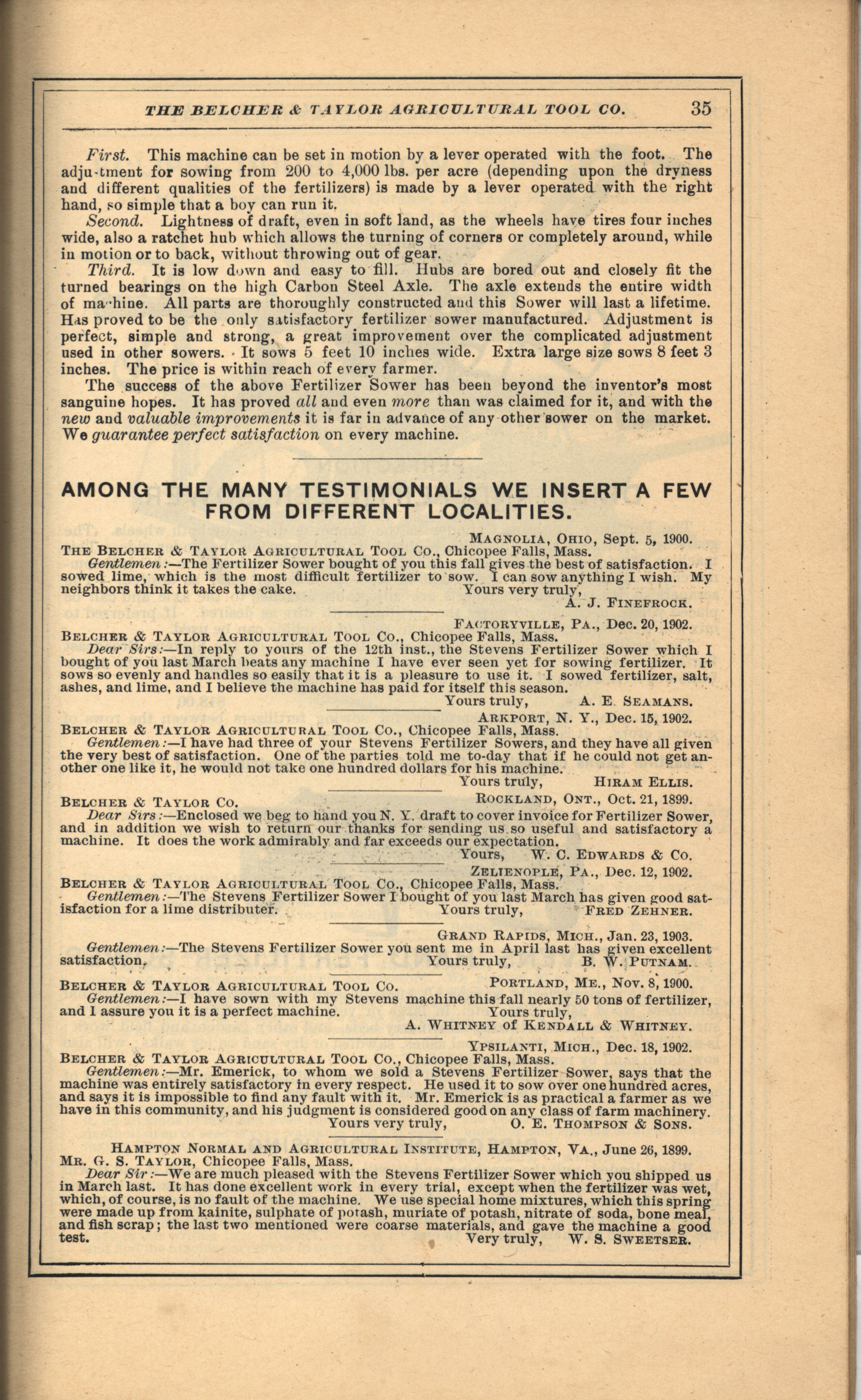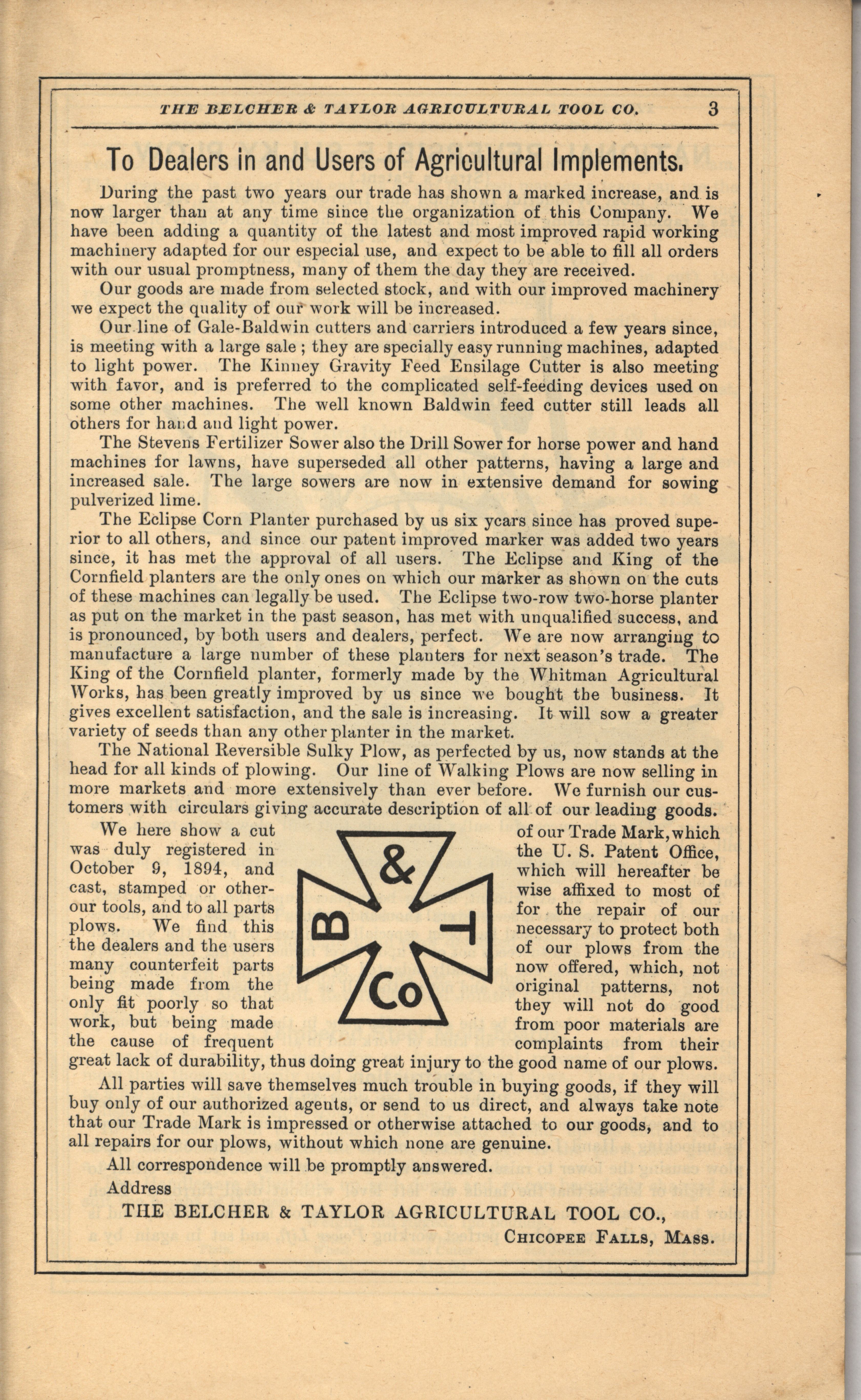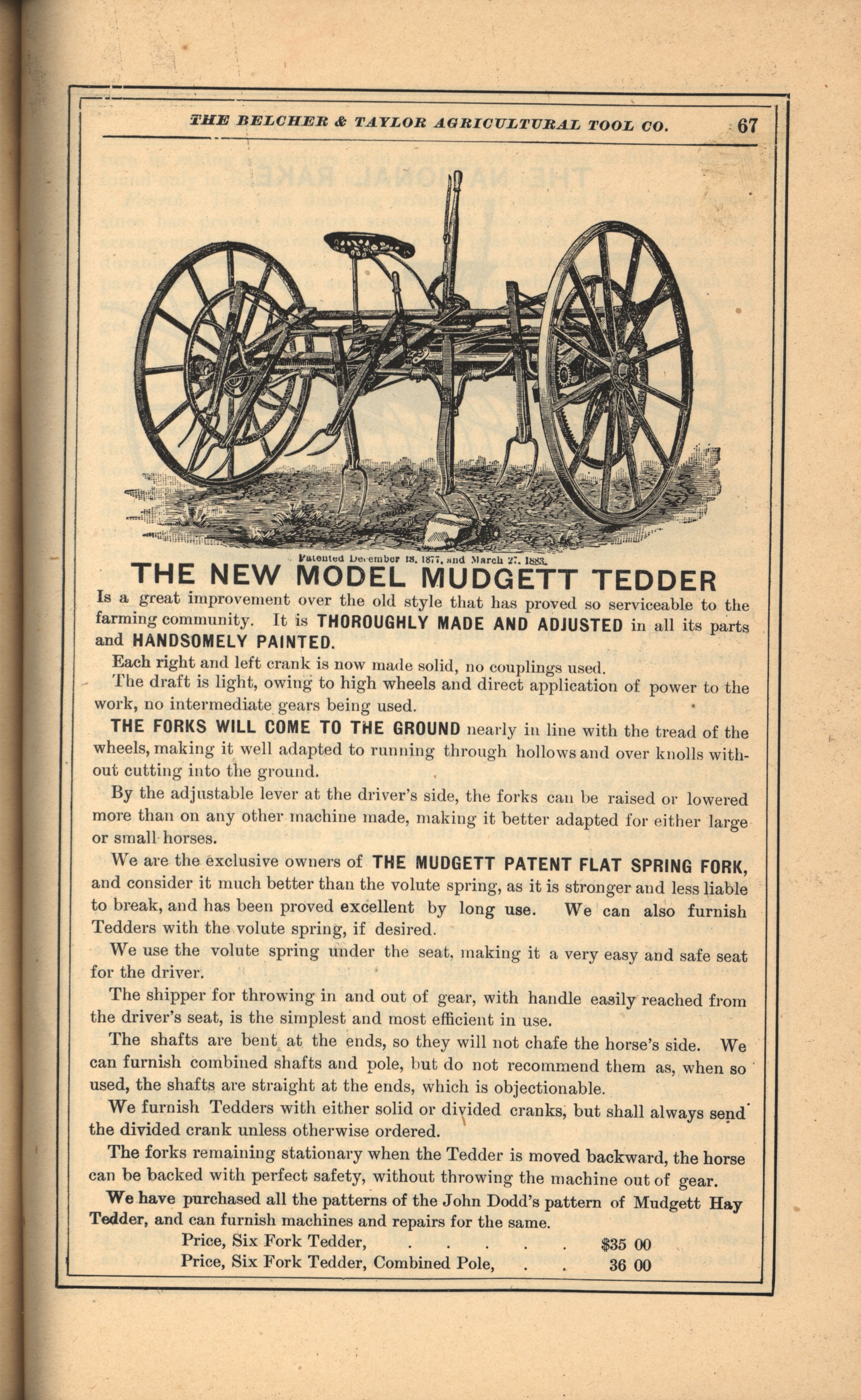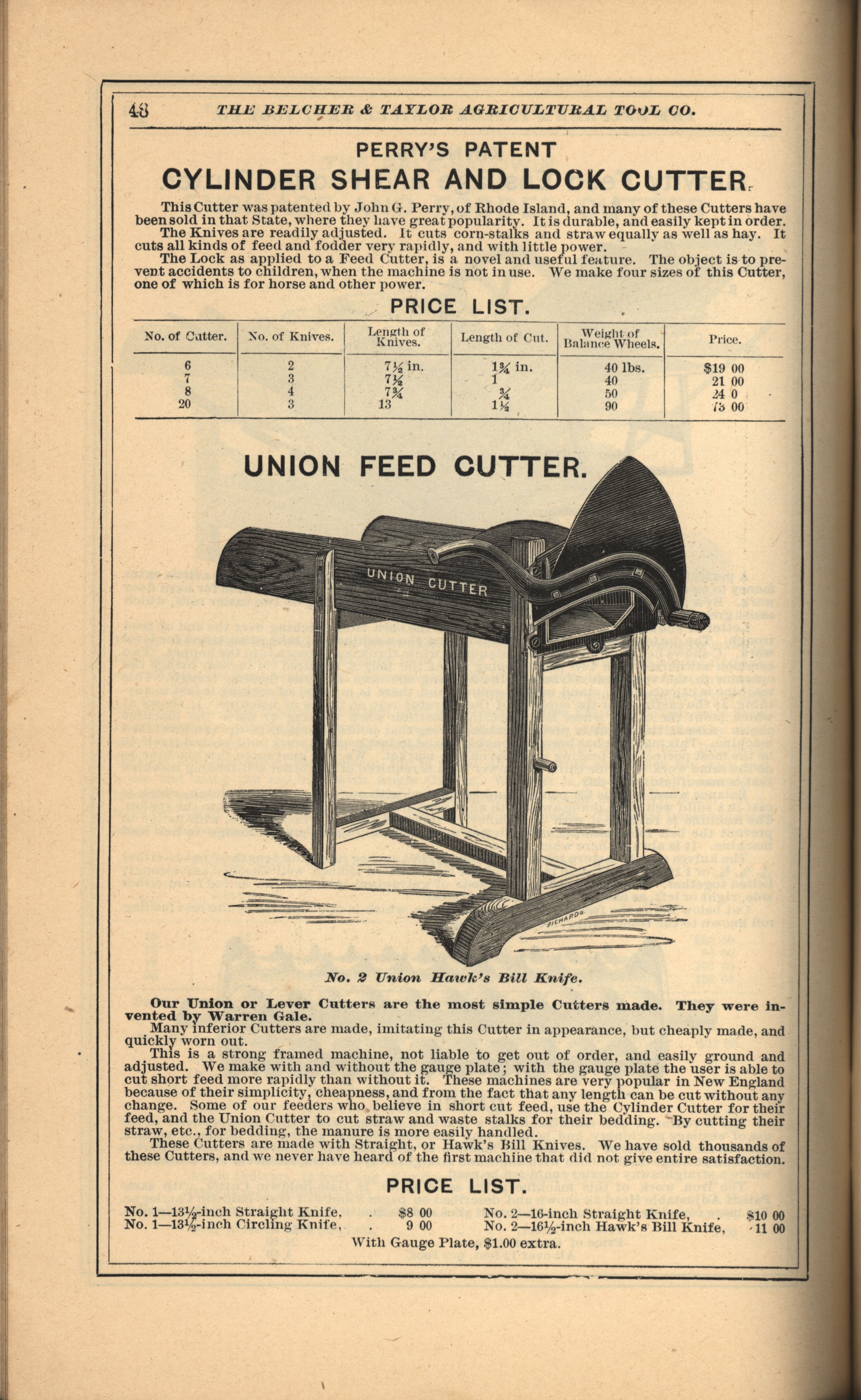 - "Belcher and Taylor Agricultural Tool Company catalog", Agricultural Machinery Literature Collection, Iowa State University Library Digital Collections