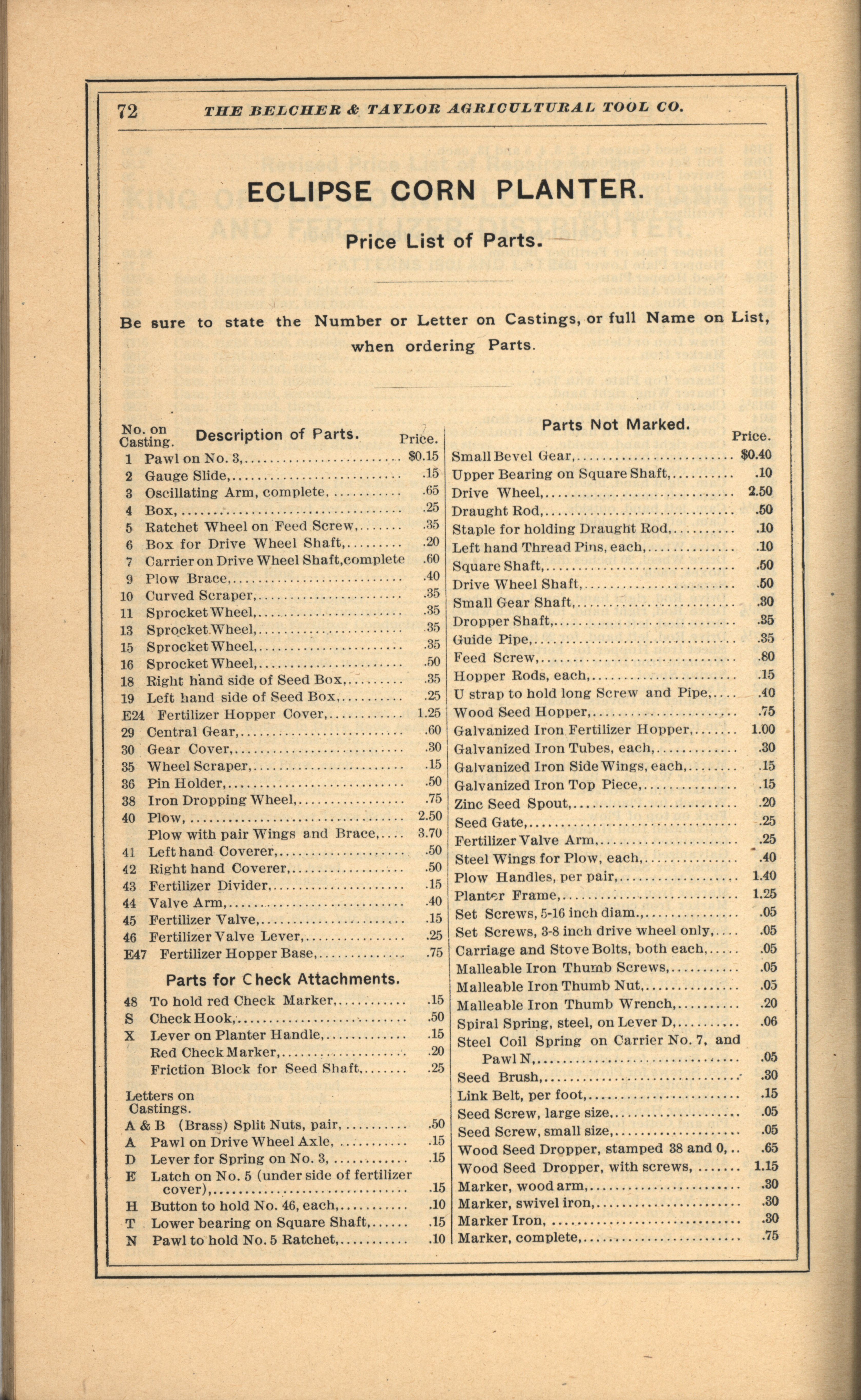 Belcher and Taylor Agricultural Tool Company catalog Item Info
