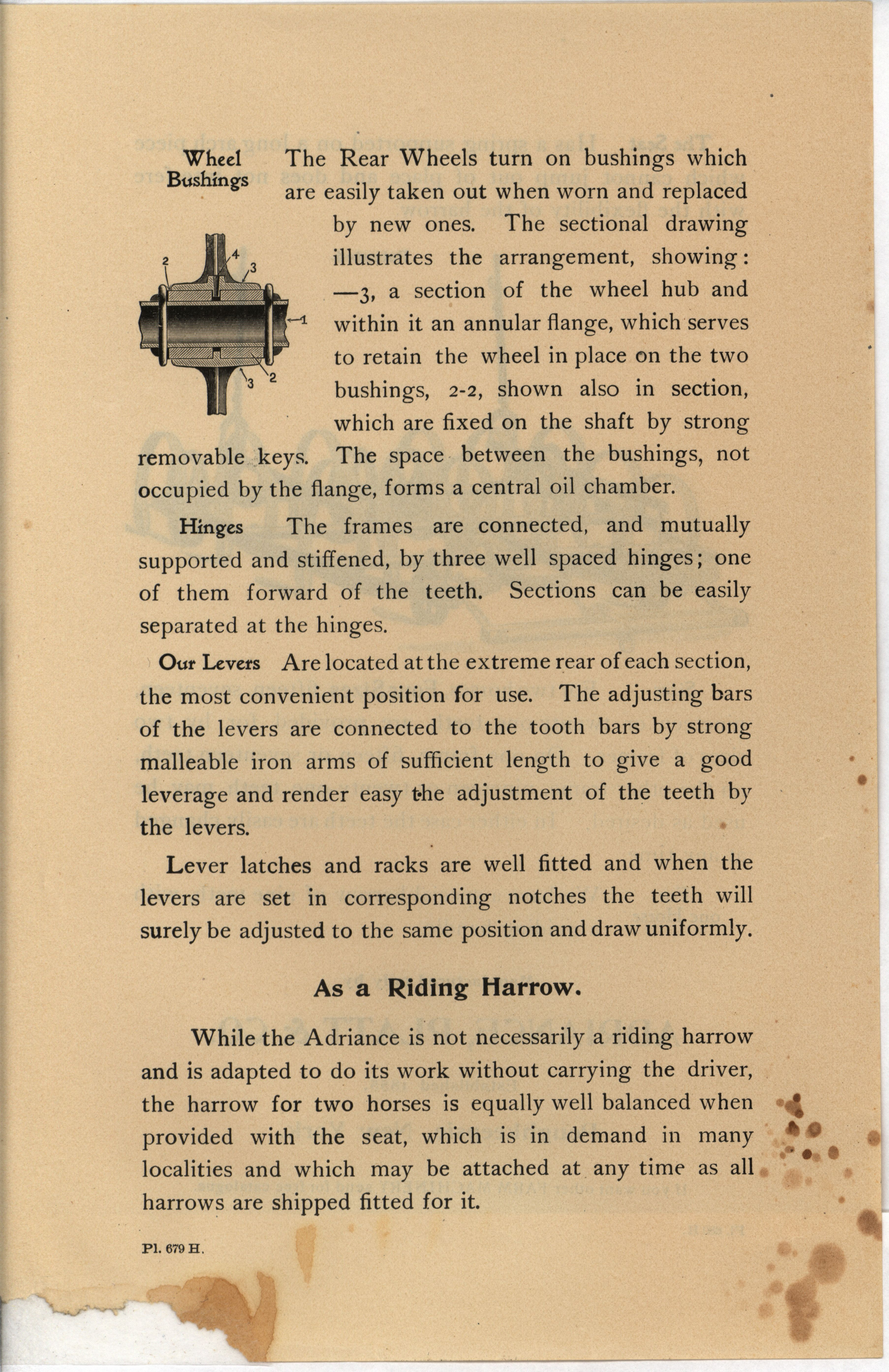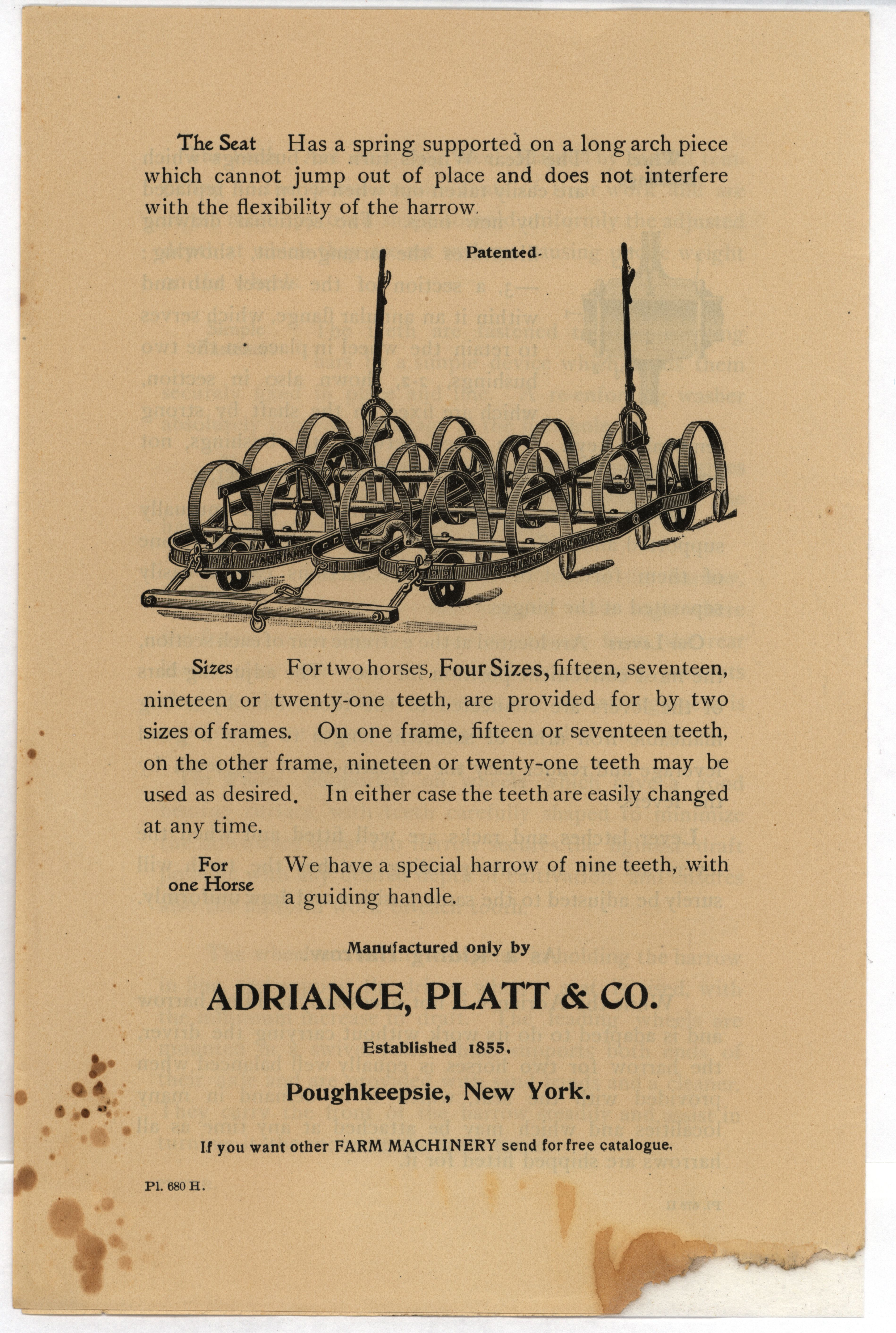- "Adriance Buckeye spring tooth wheel harrow", Agricultural Machinery Literature Collection, Iowa State University Library Digital Collections