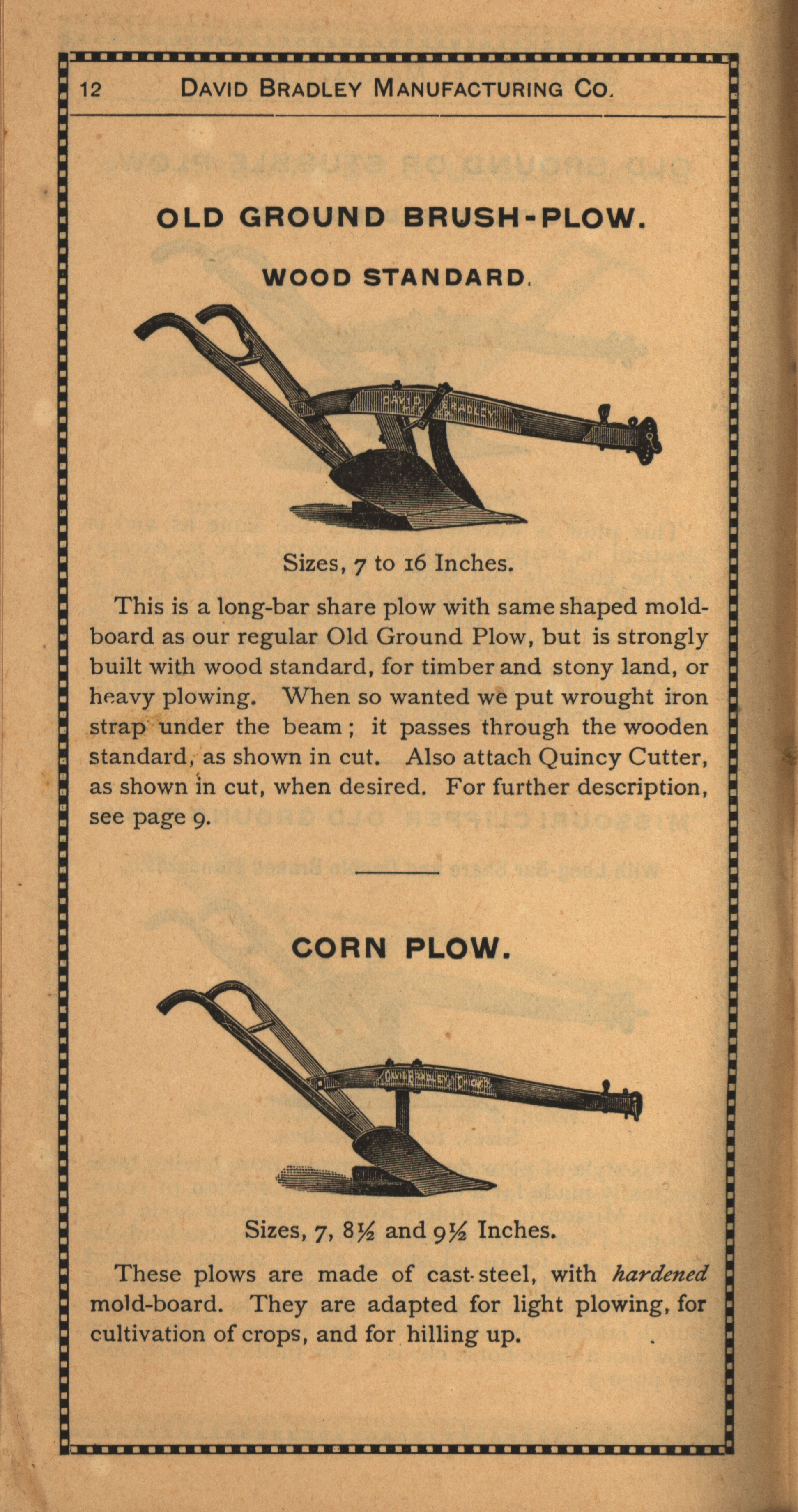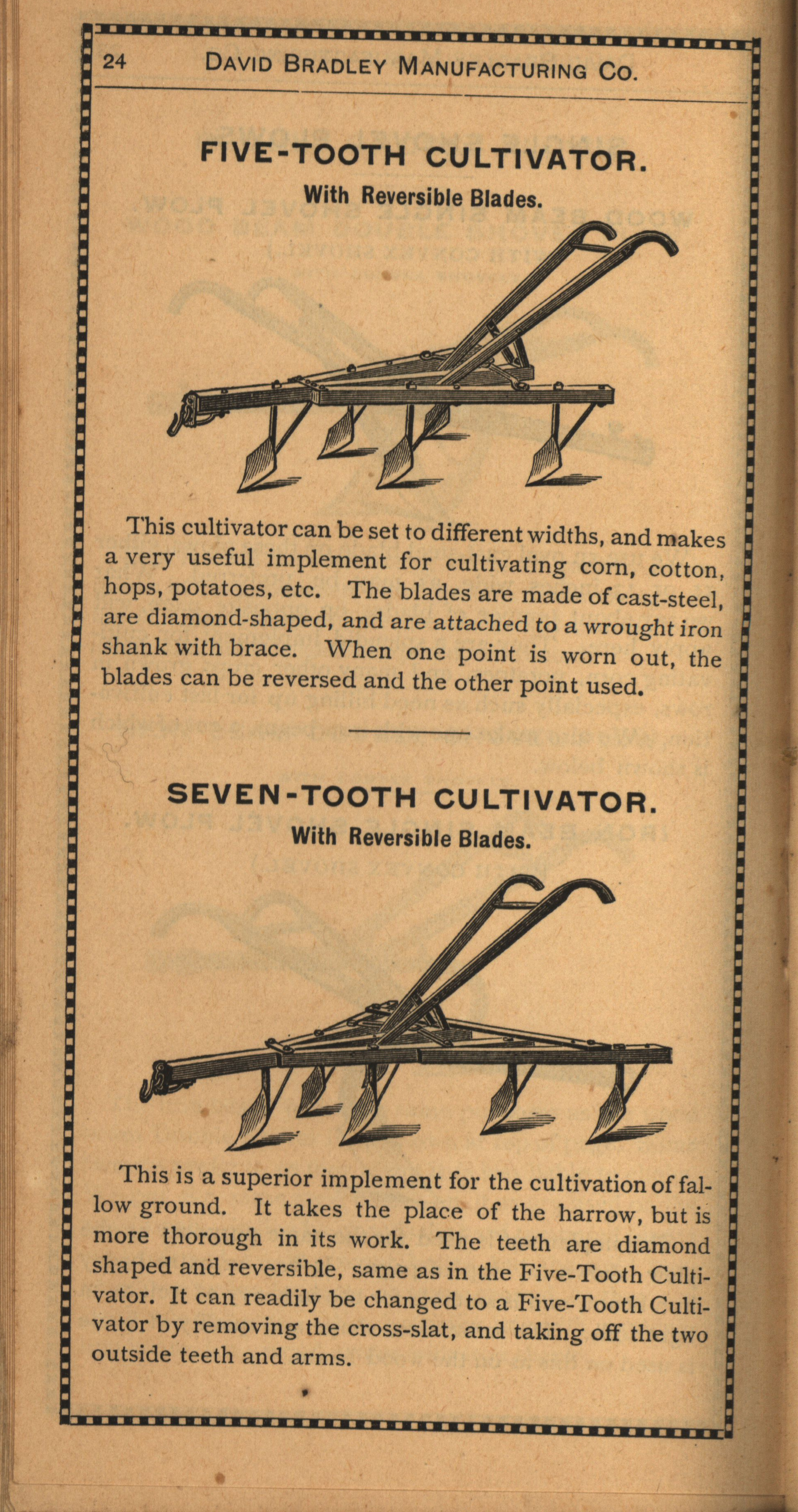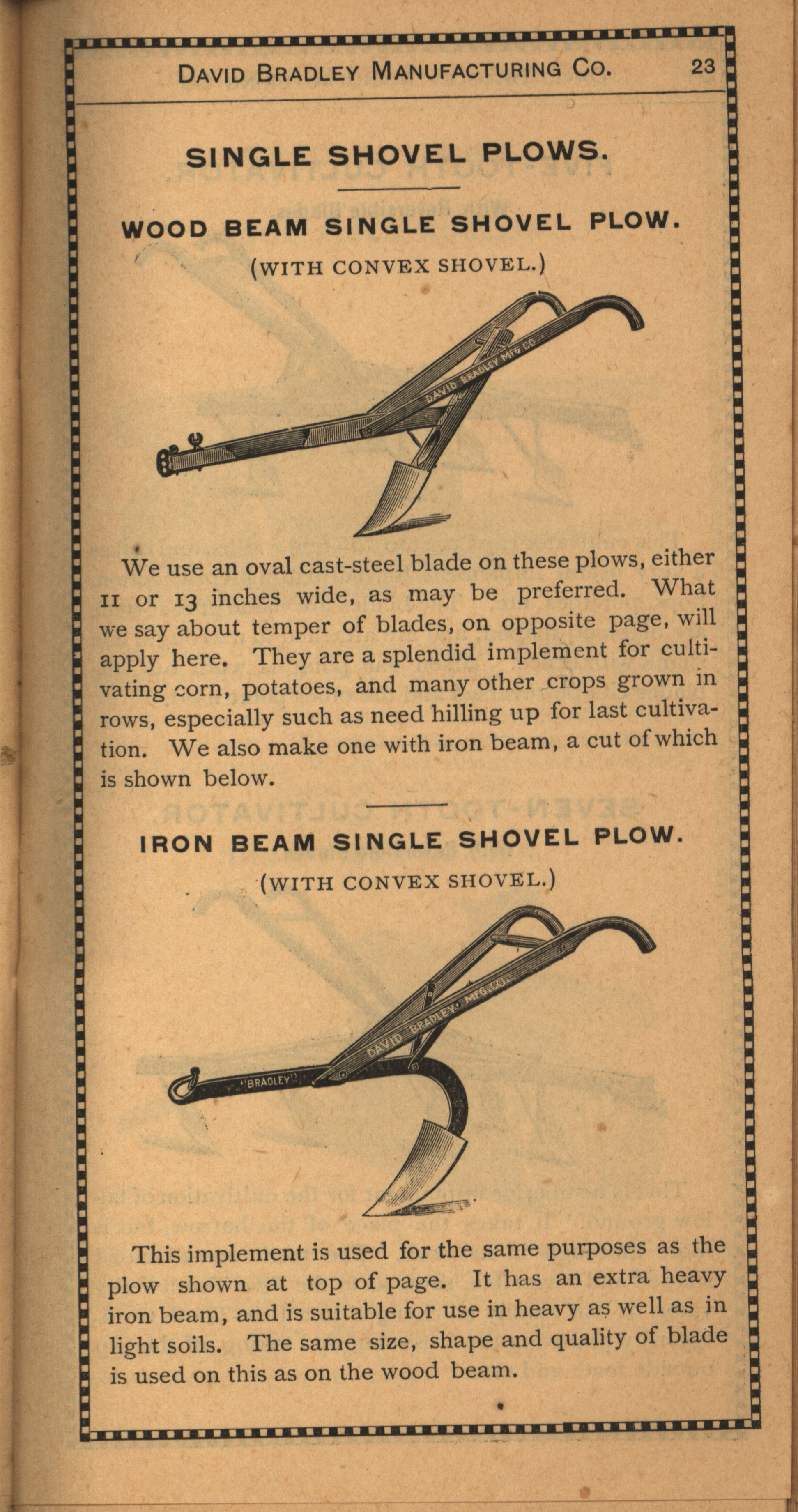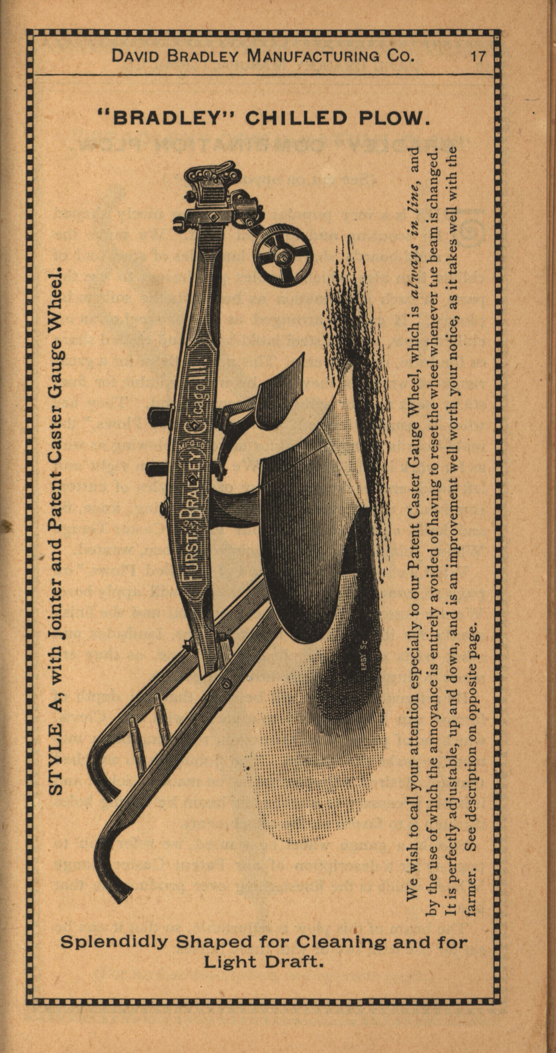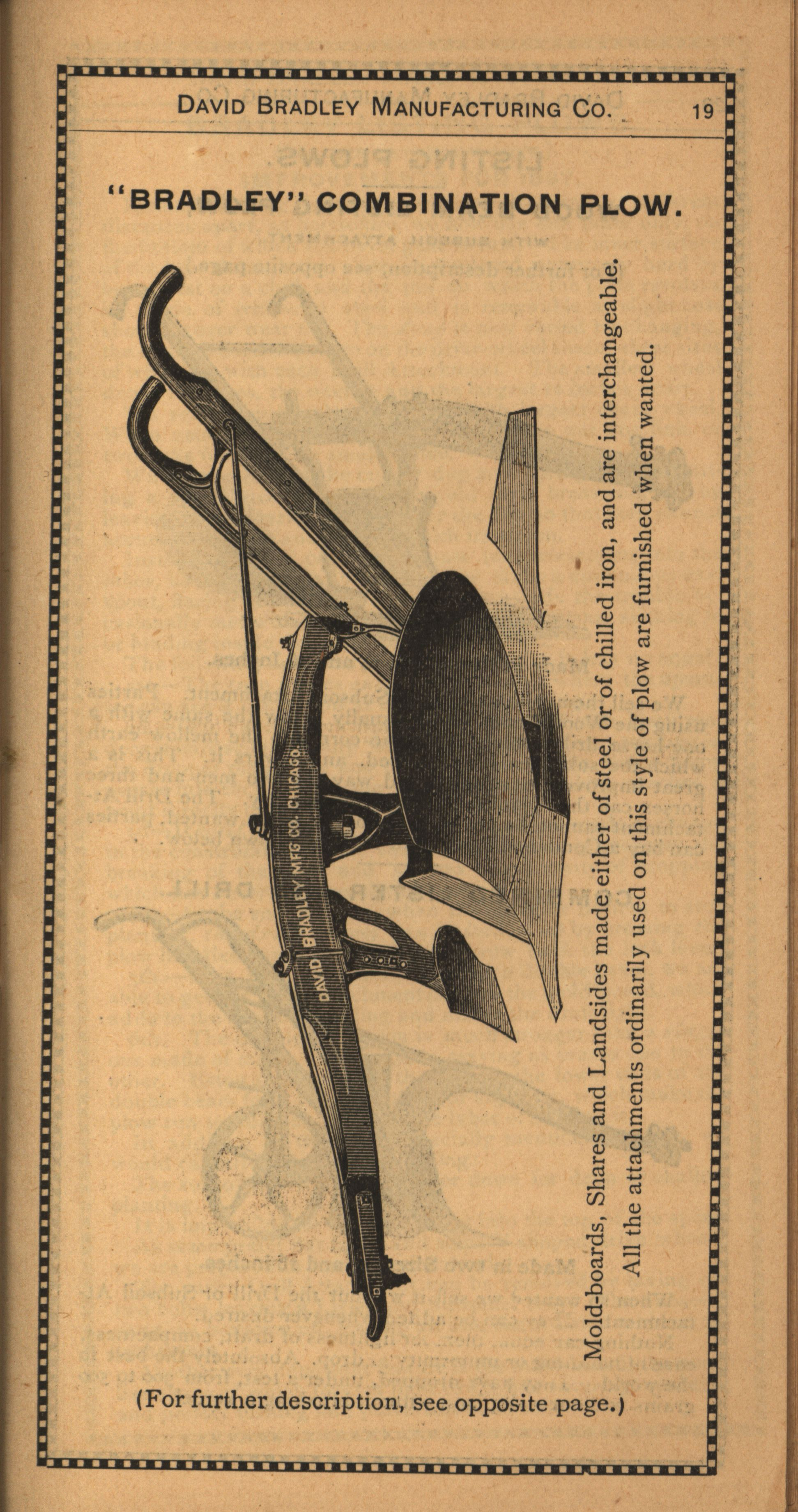 - "David Bradley Manufacturing Company plows, cultivators and rake catalog", Agricultural Machinery Literature Collection, Iowa State University Library Digital Collections