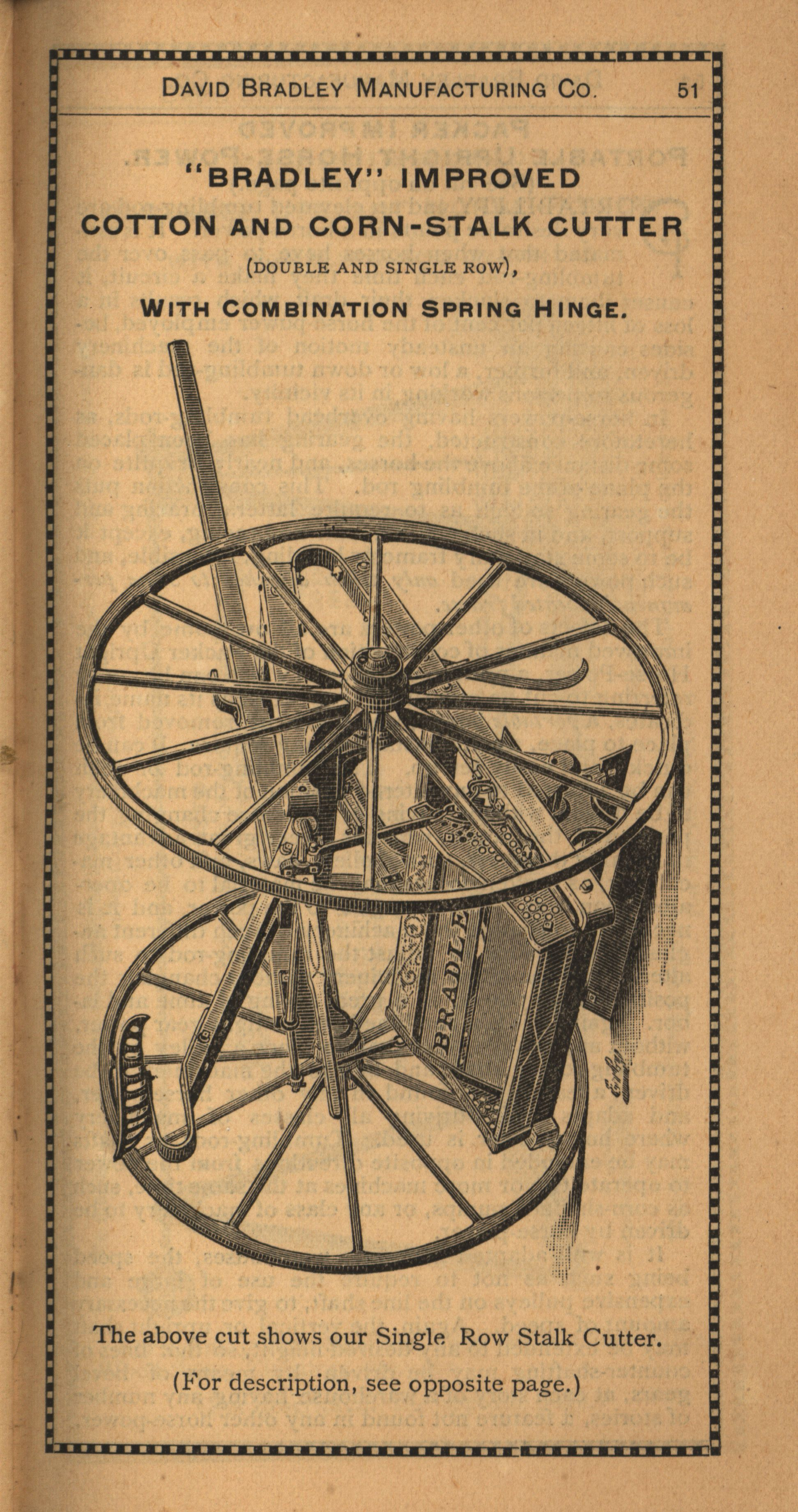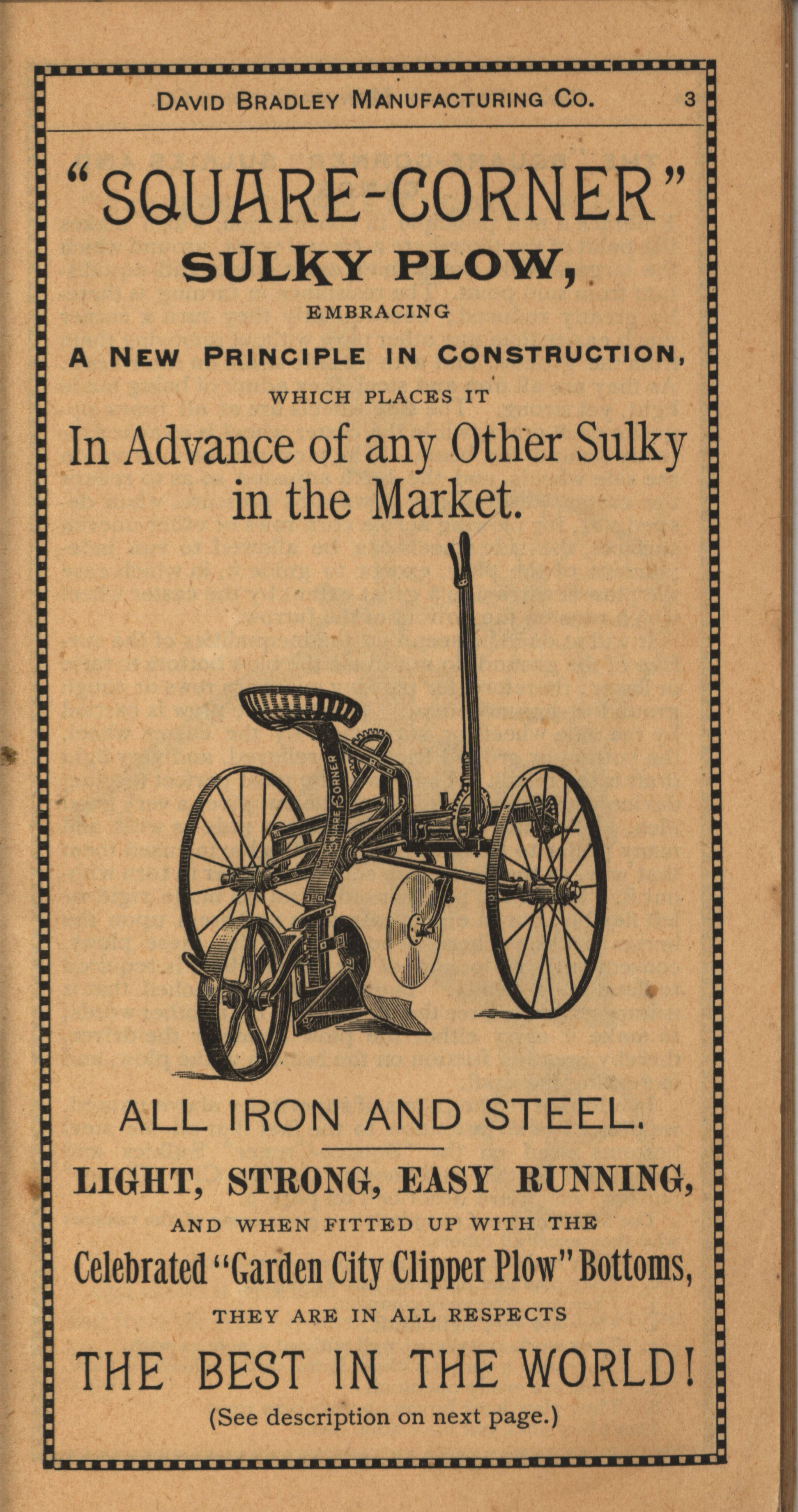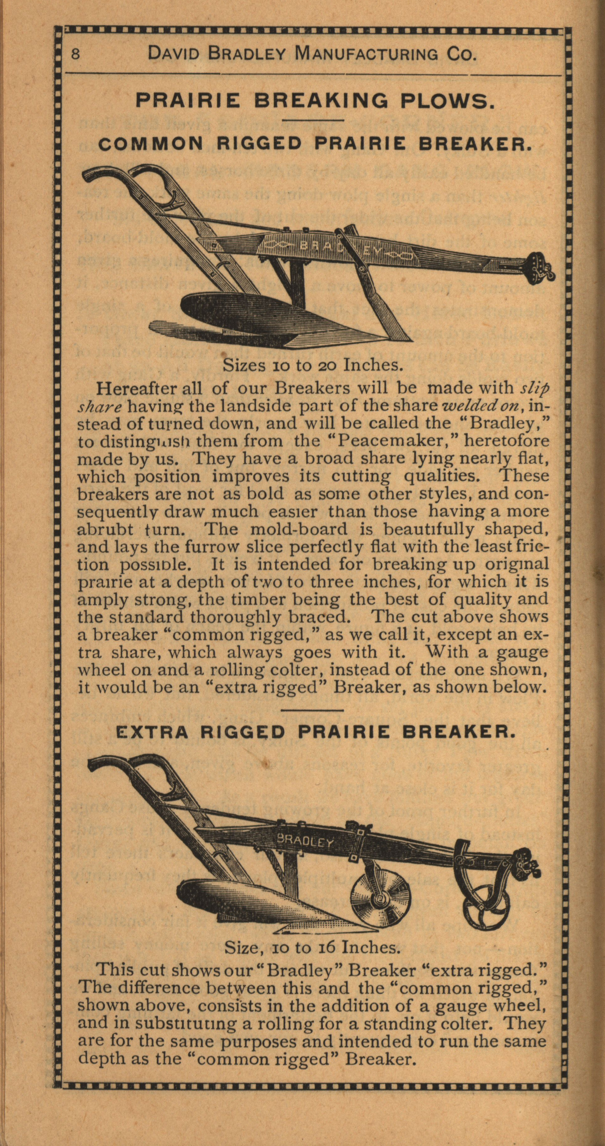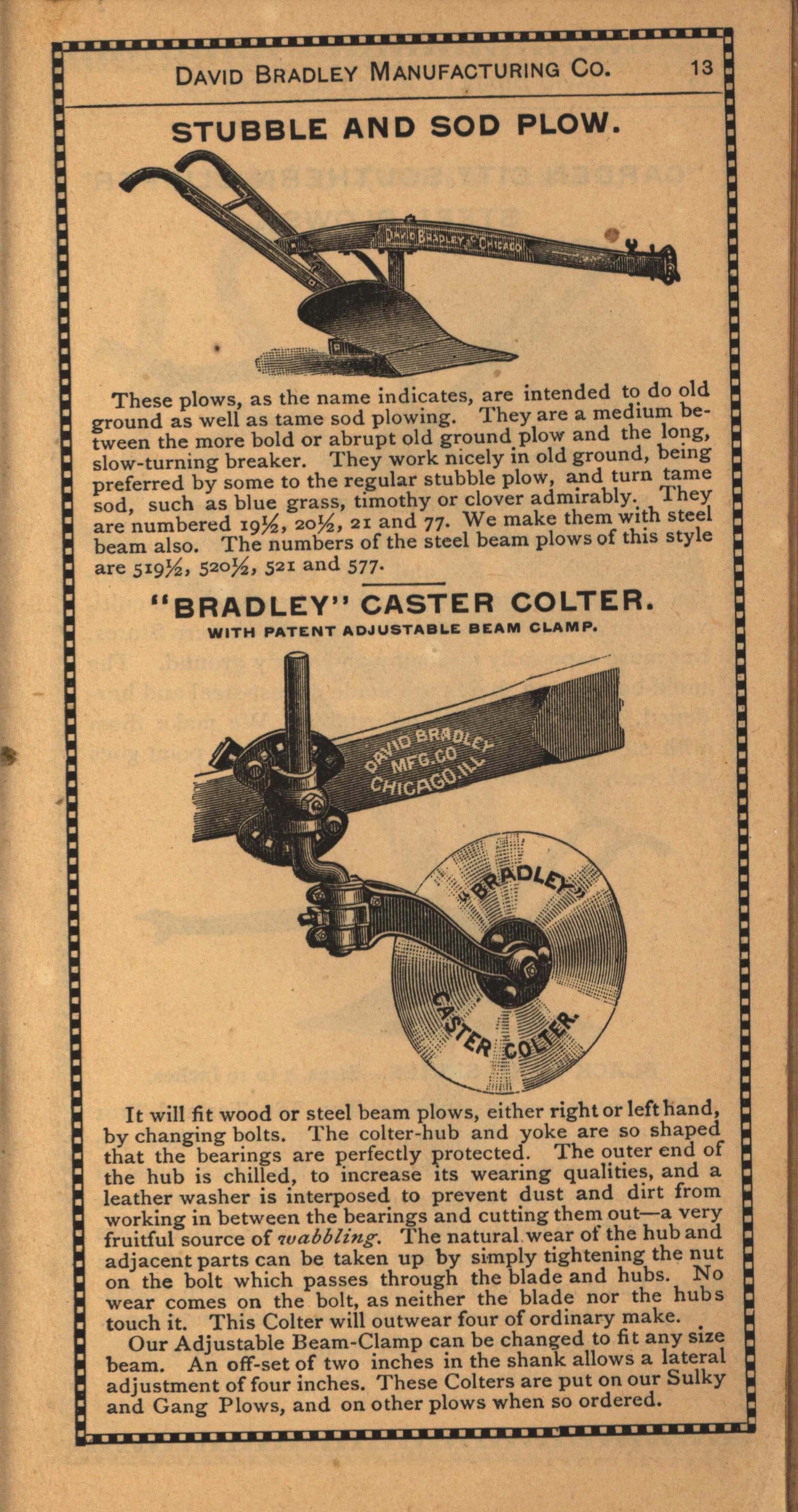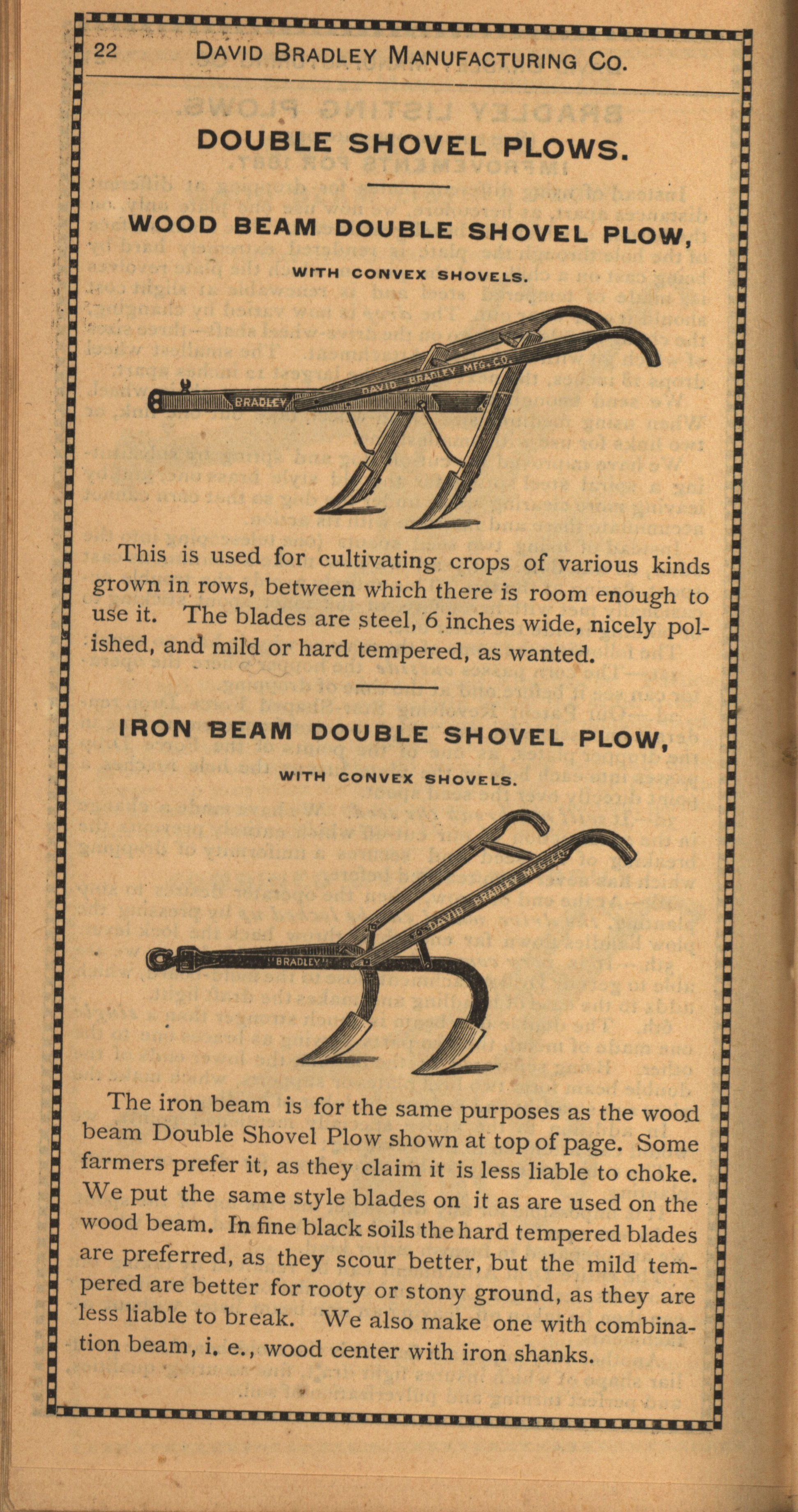 - "David Bradley Manufacturing Company plows, cultivators and rake catalog", Agricultural Machinery Literature Collection, Iowa State University Library Digital Collections