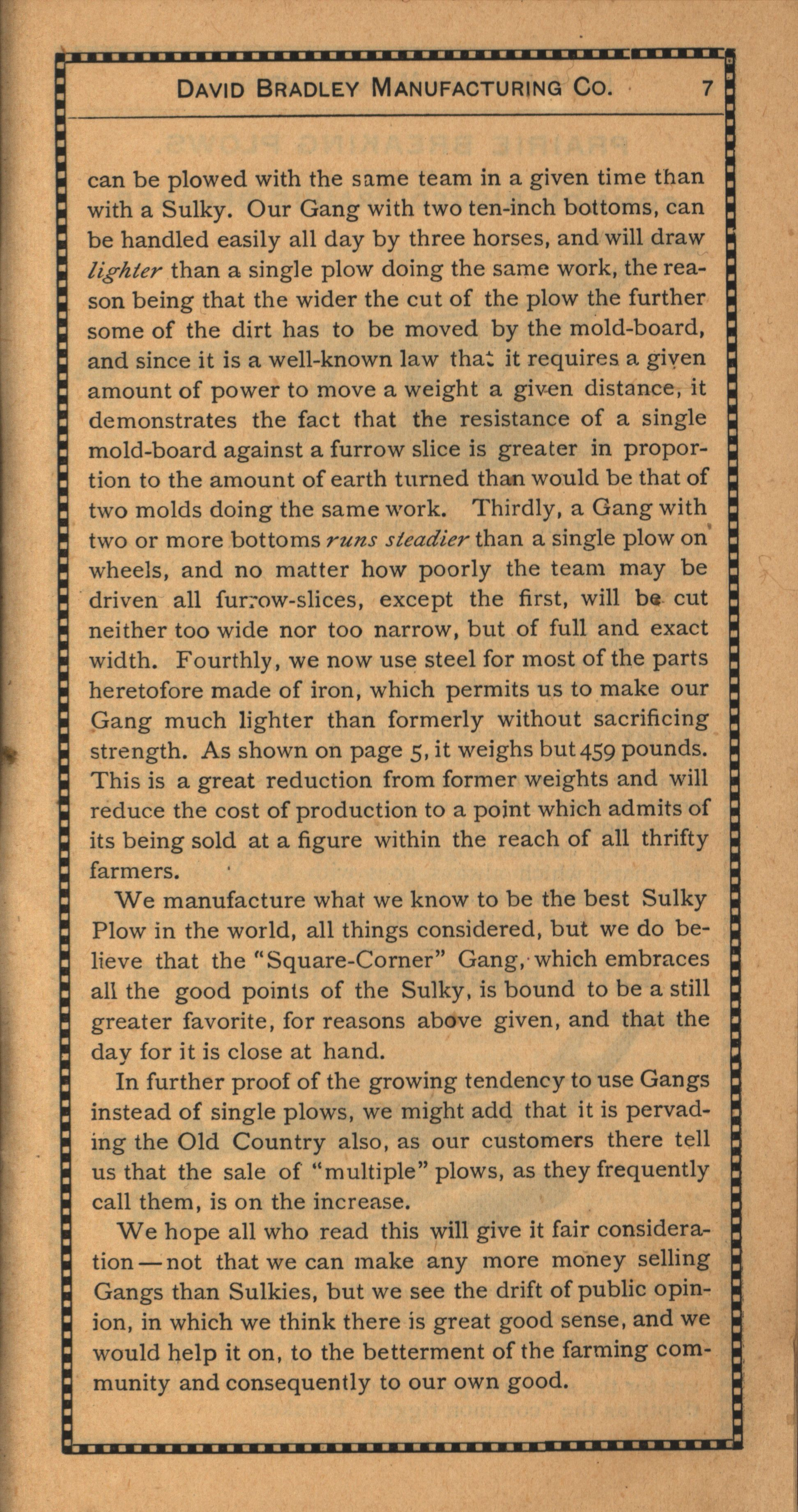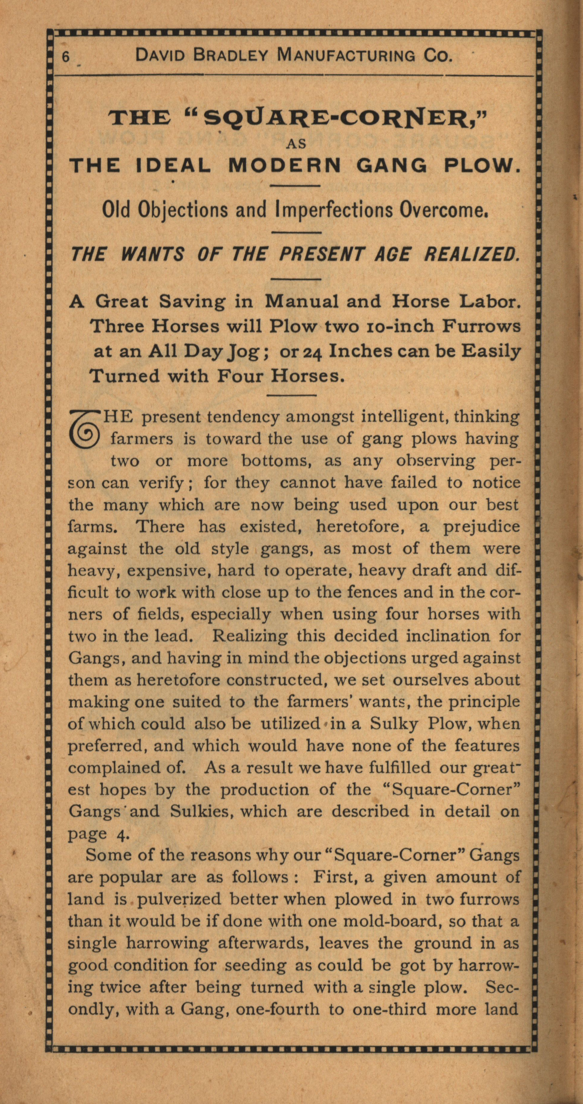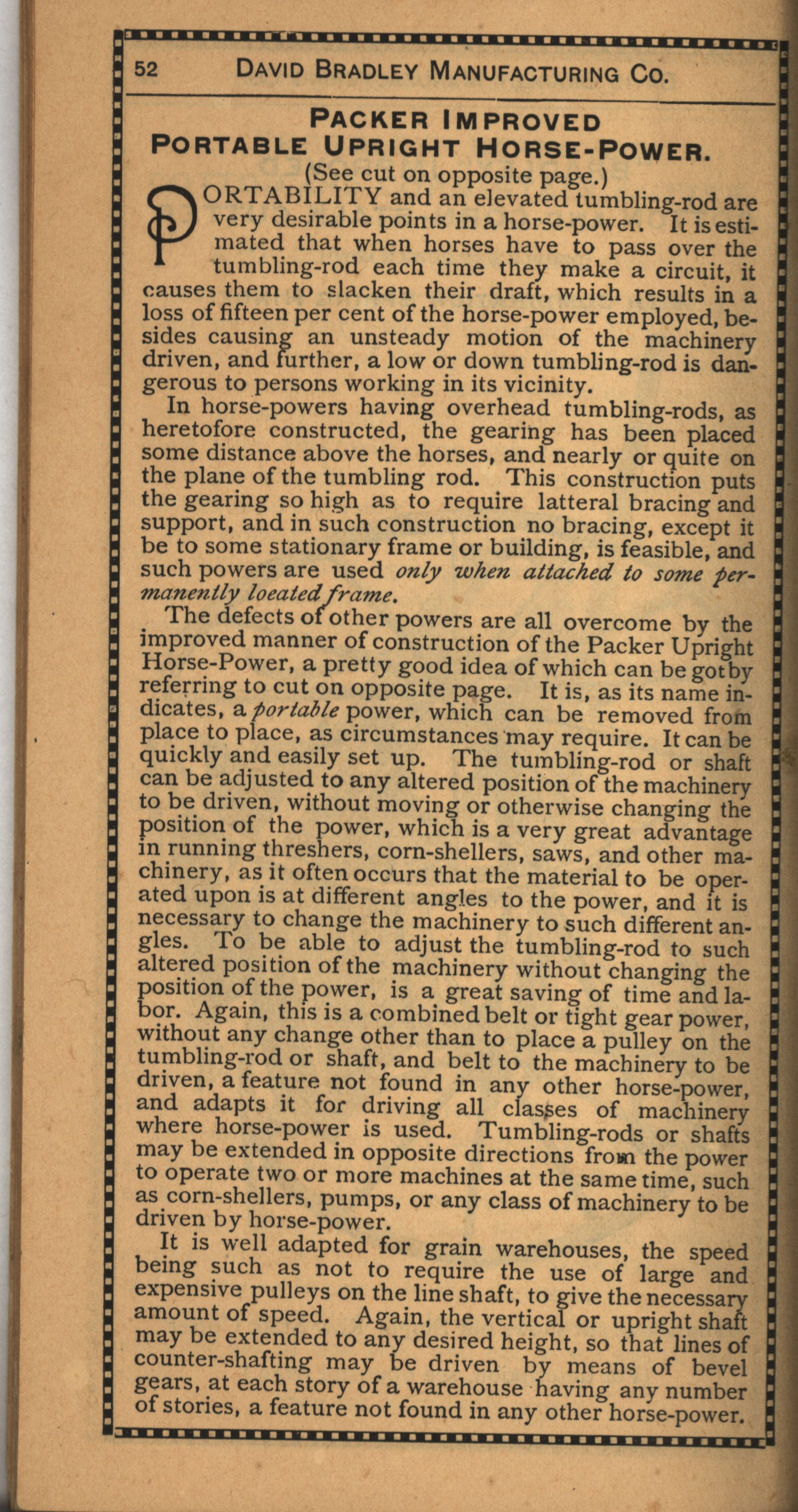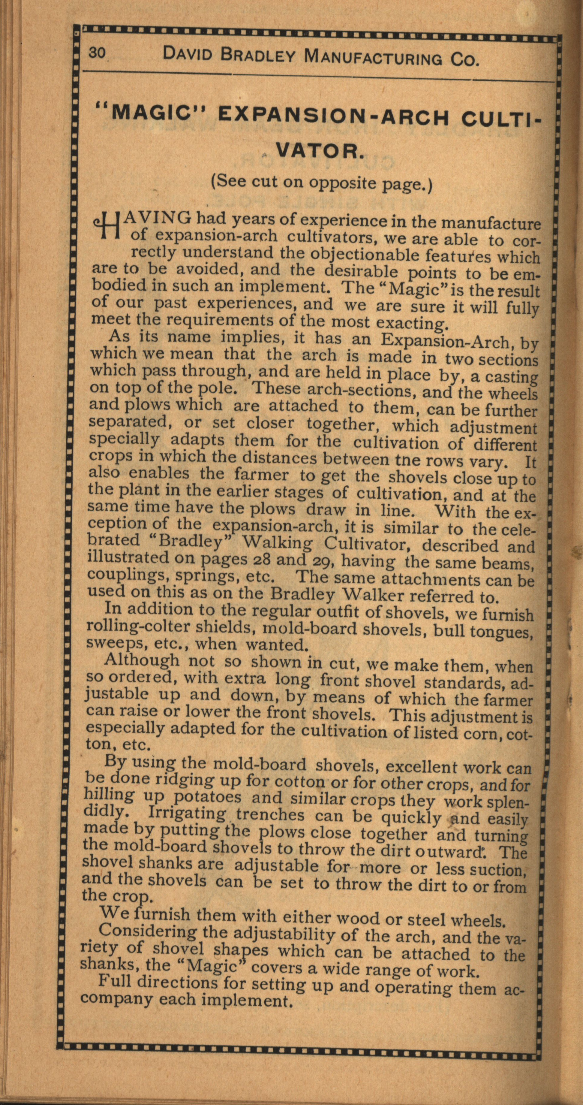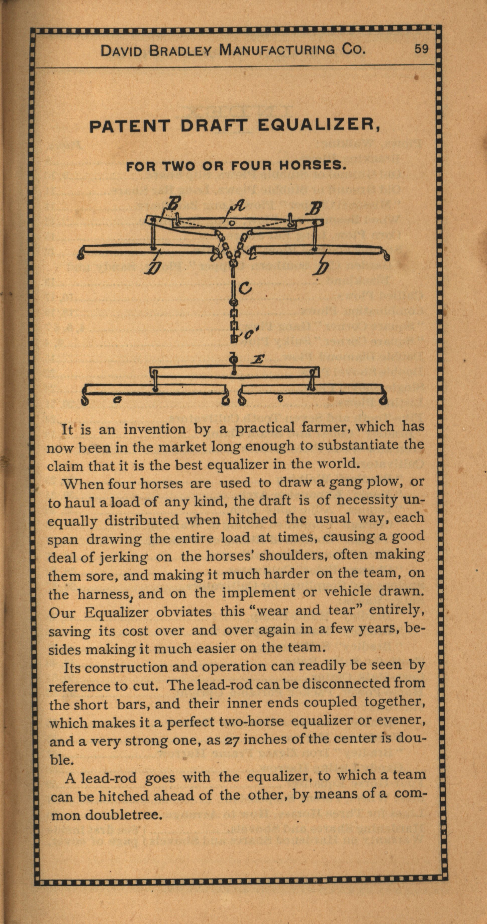 - "David Bradley Manufacturing Company plows, cultivators and rake catalog", Agricultural Machinery Literature Collection, Iowa State University Library Digital Collections