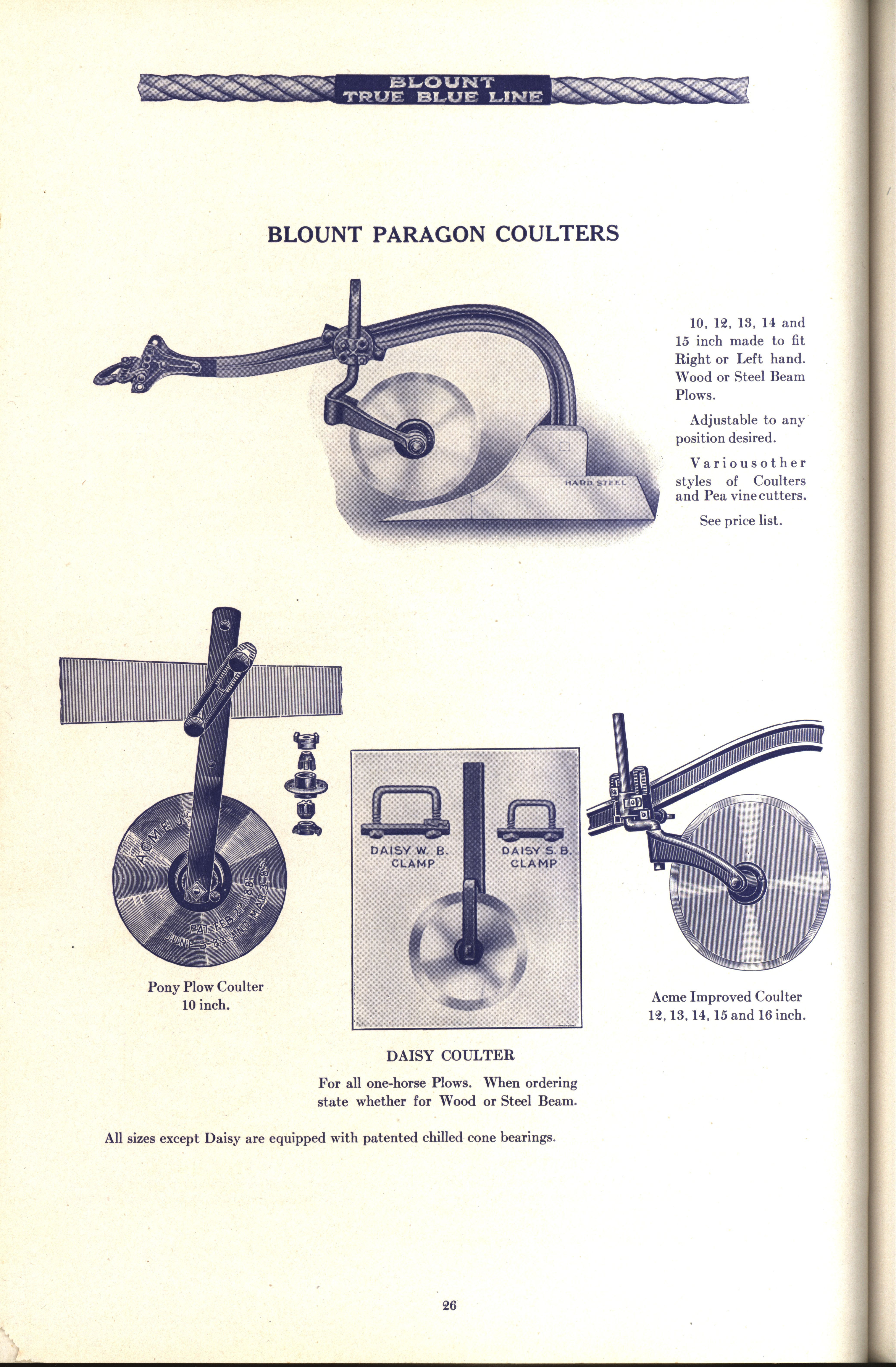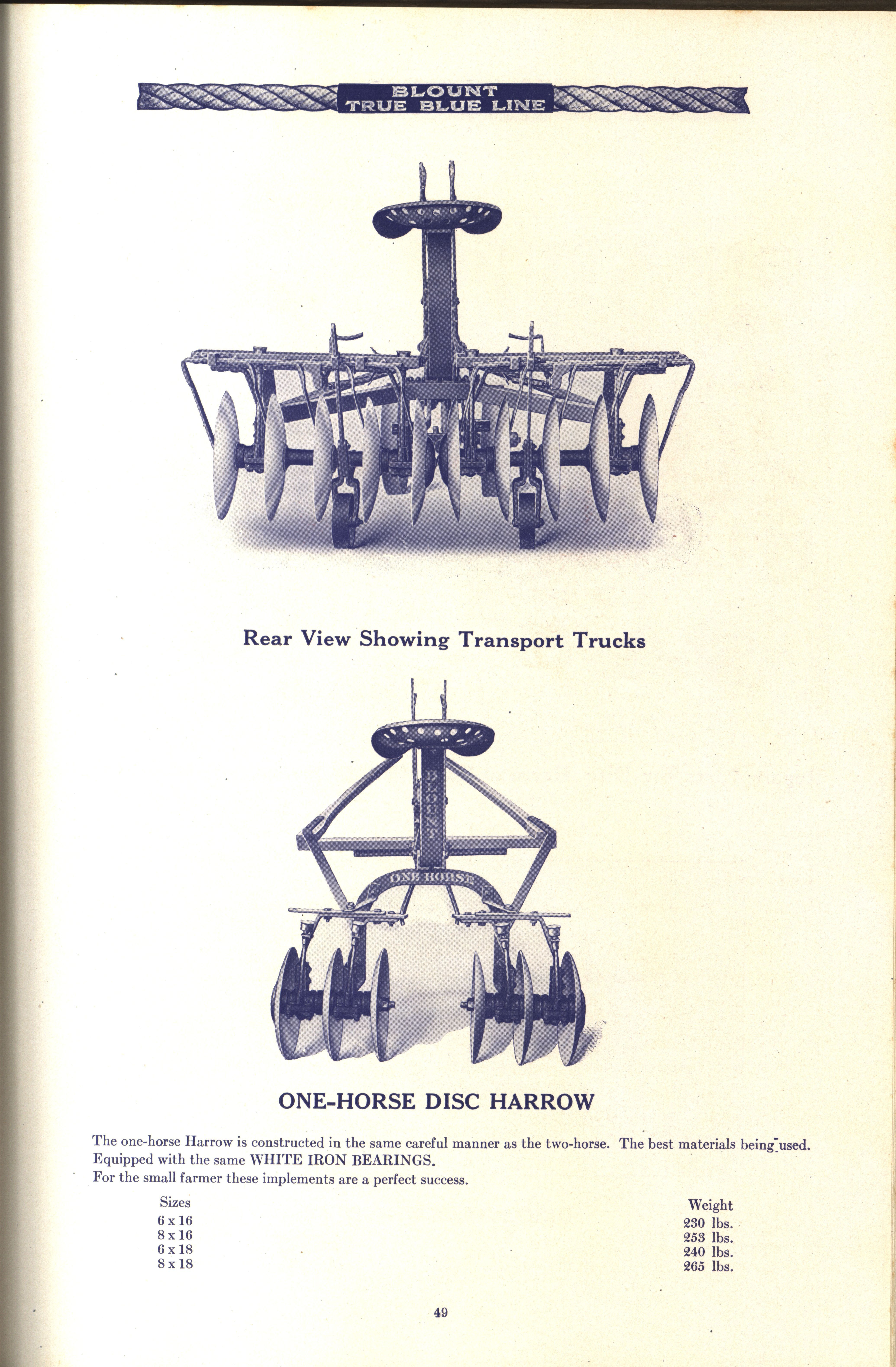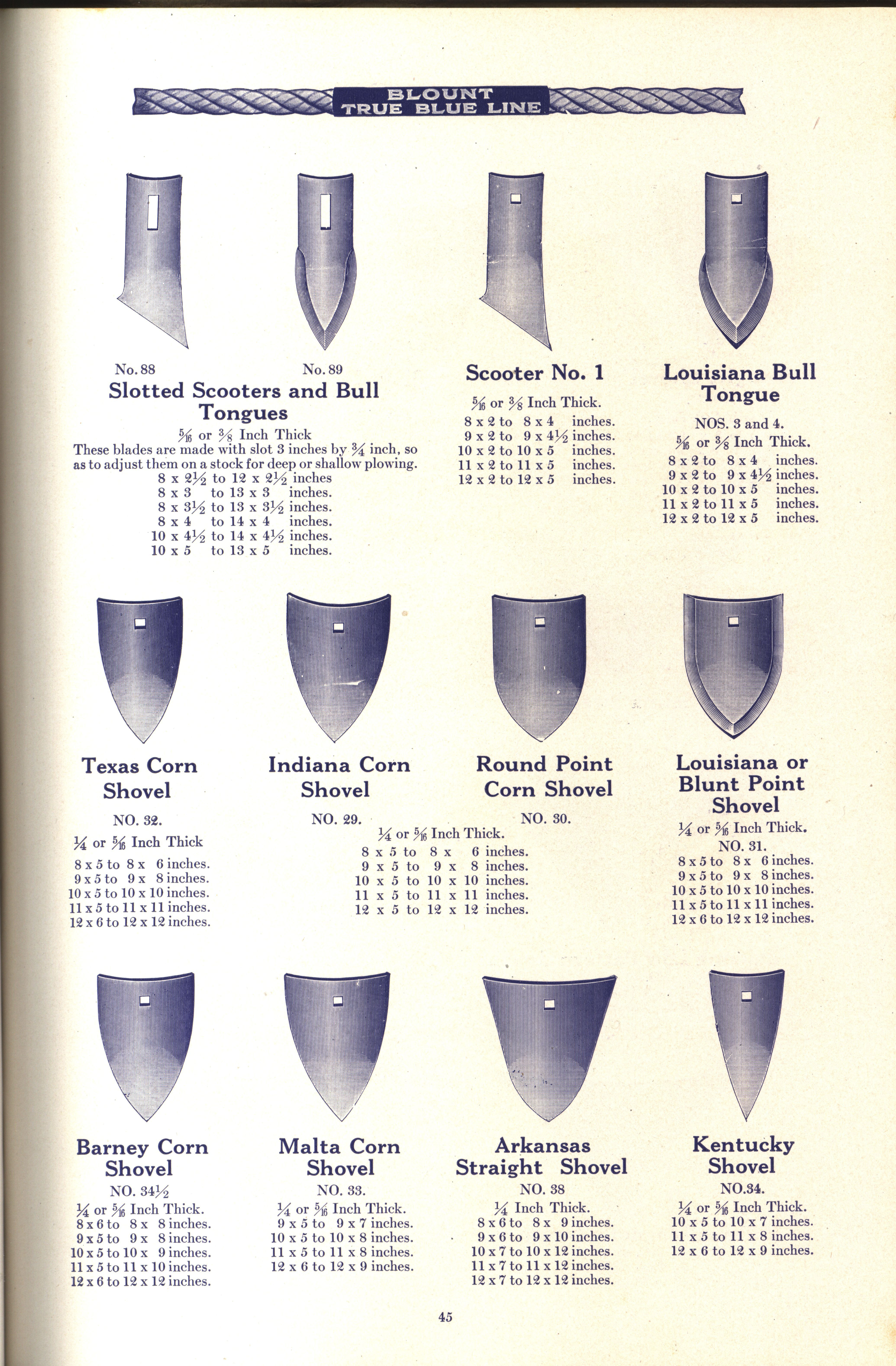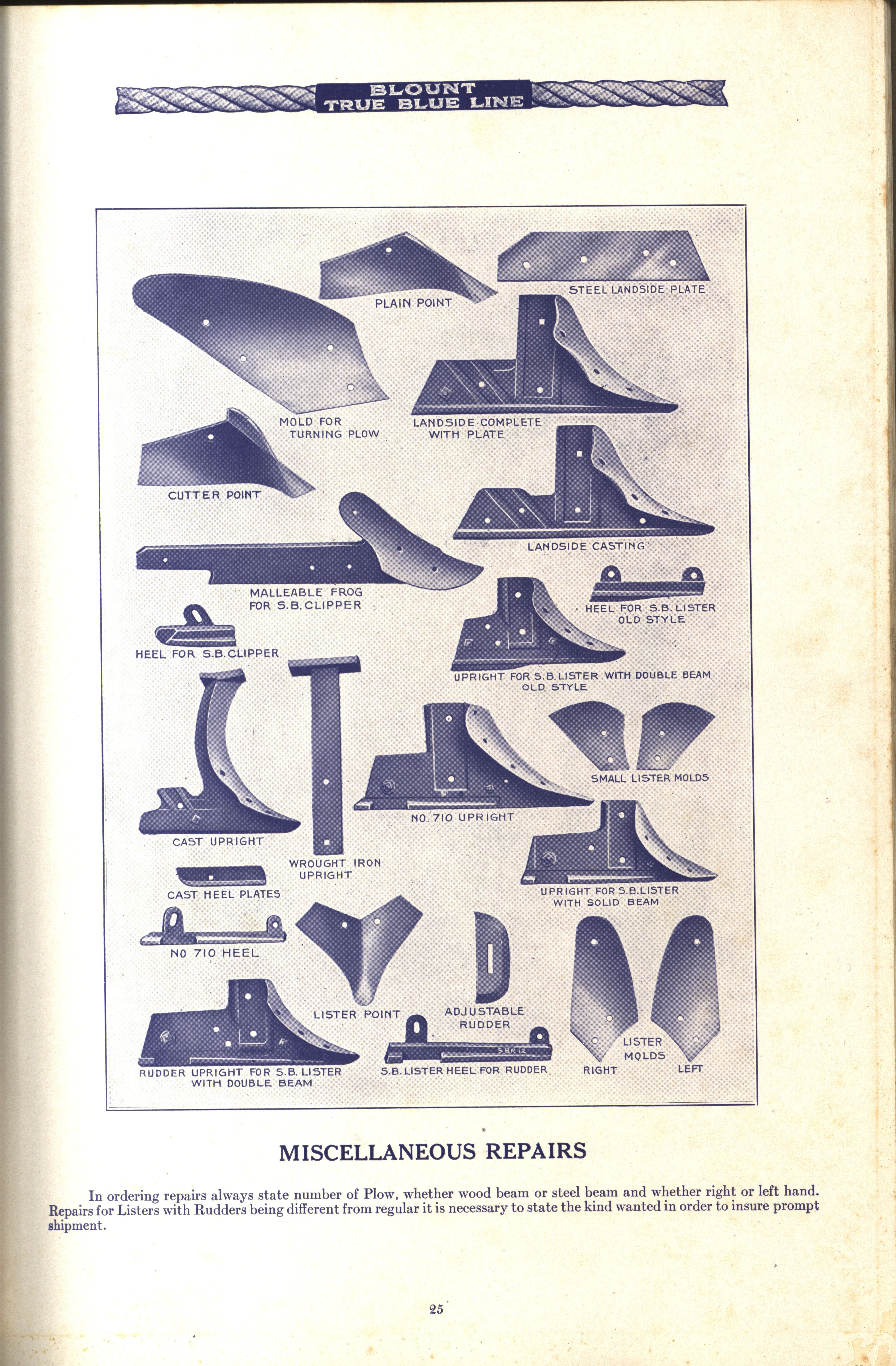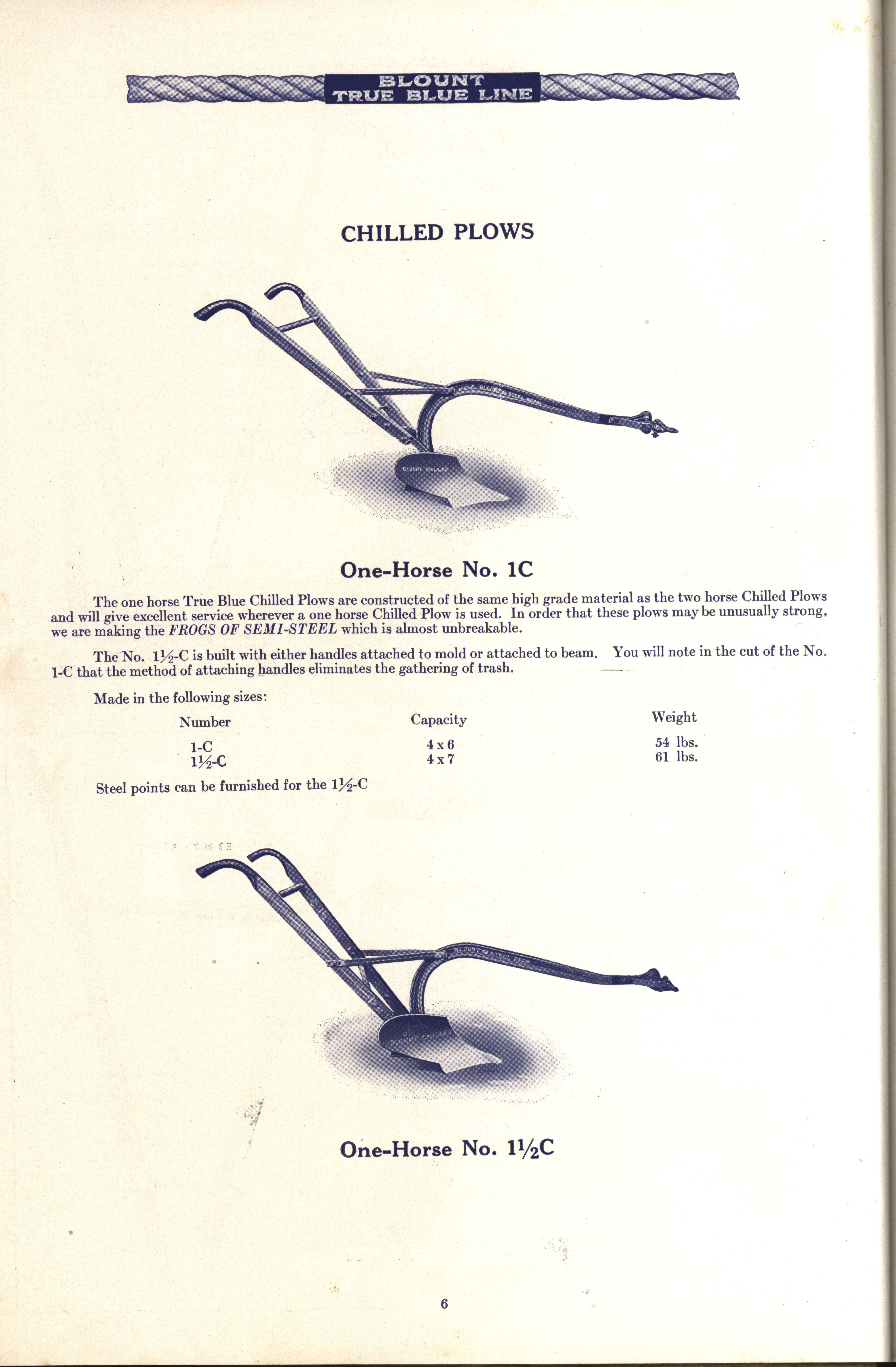 - "Blount True Blue plows, implements and wagons catalog", Agricultural Machinery Literature Collection, Iowa State University Library Digital Collections
