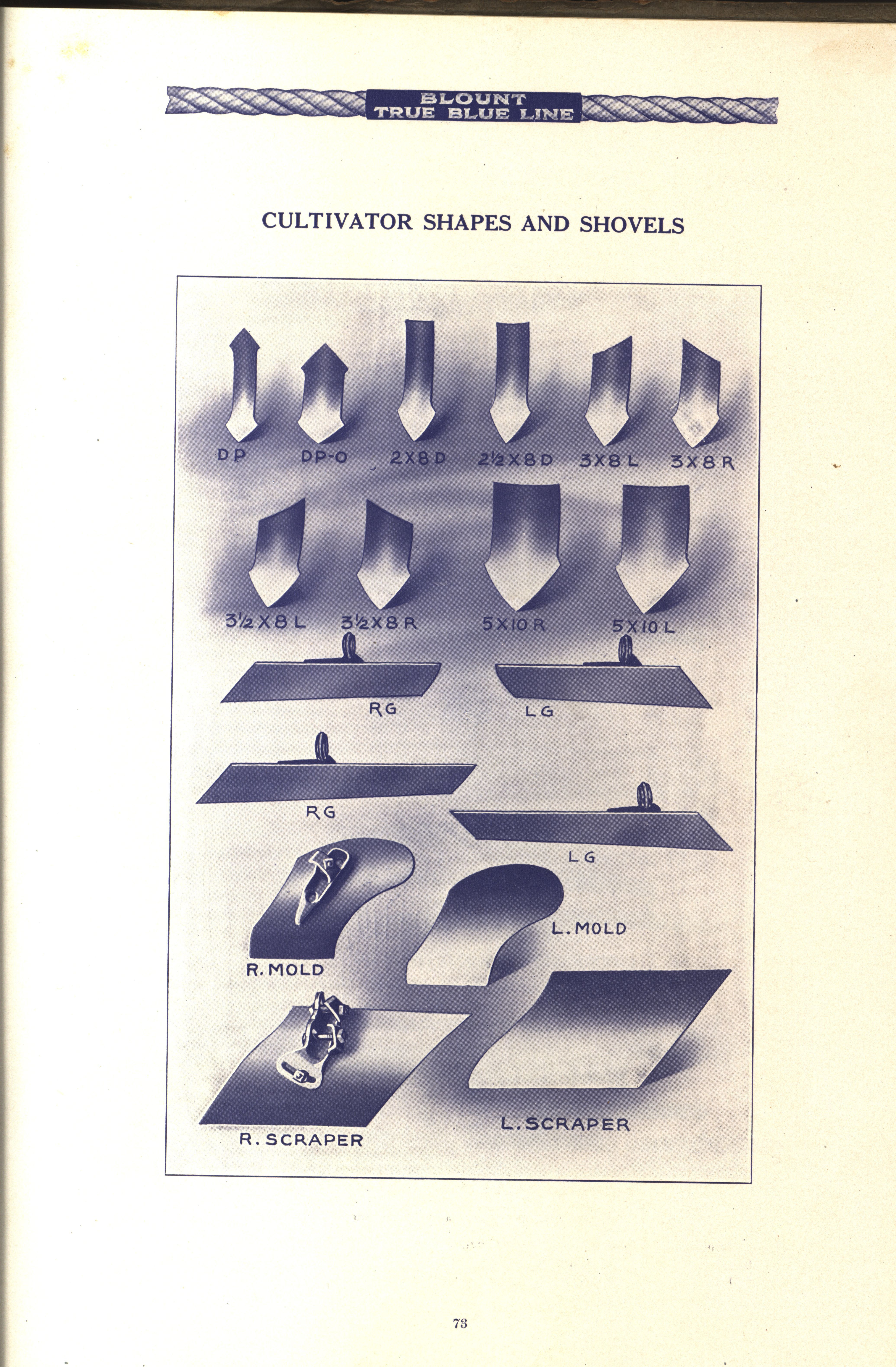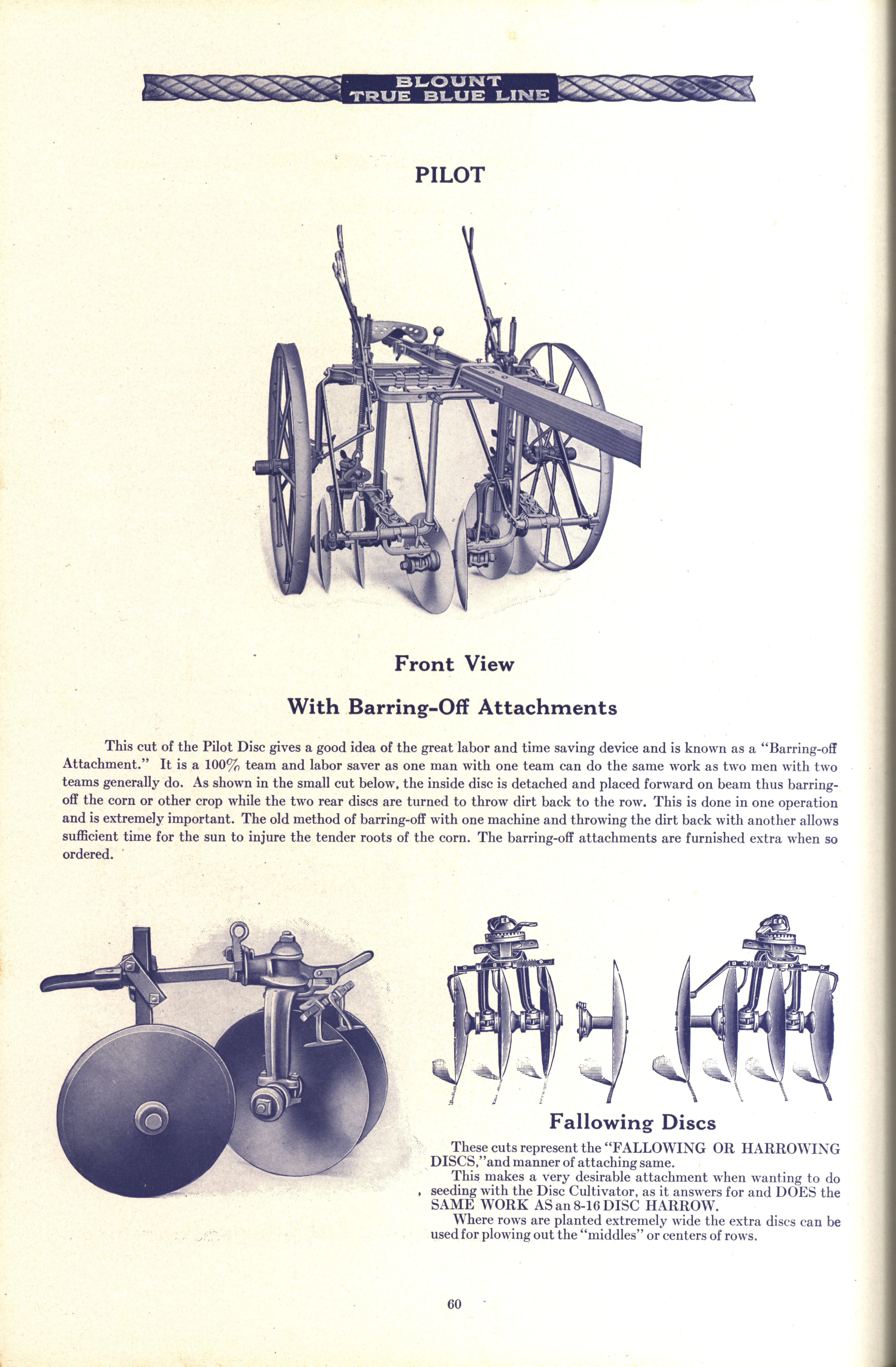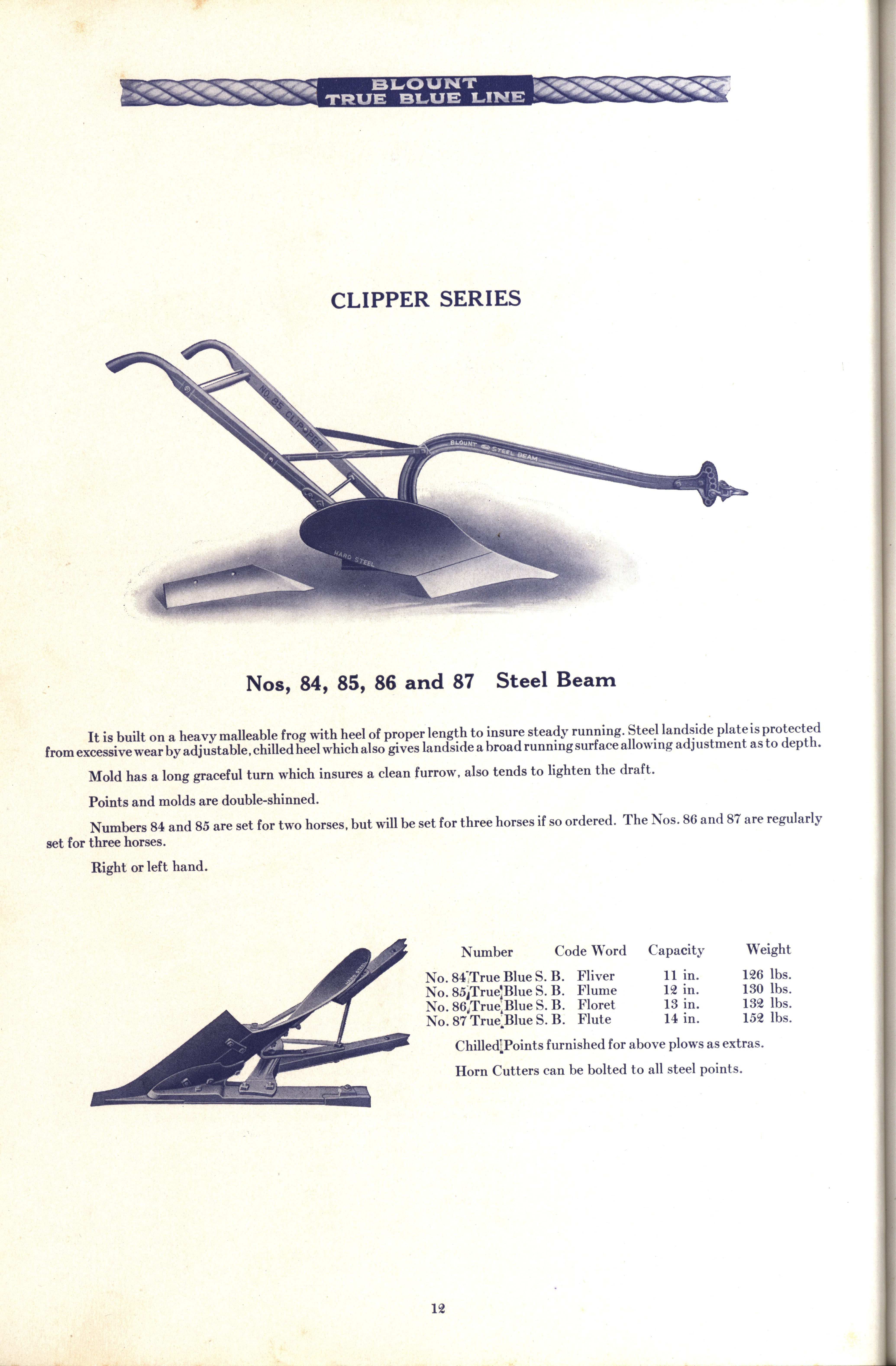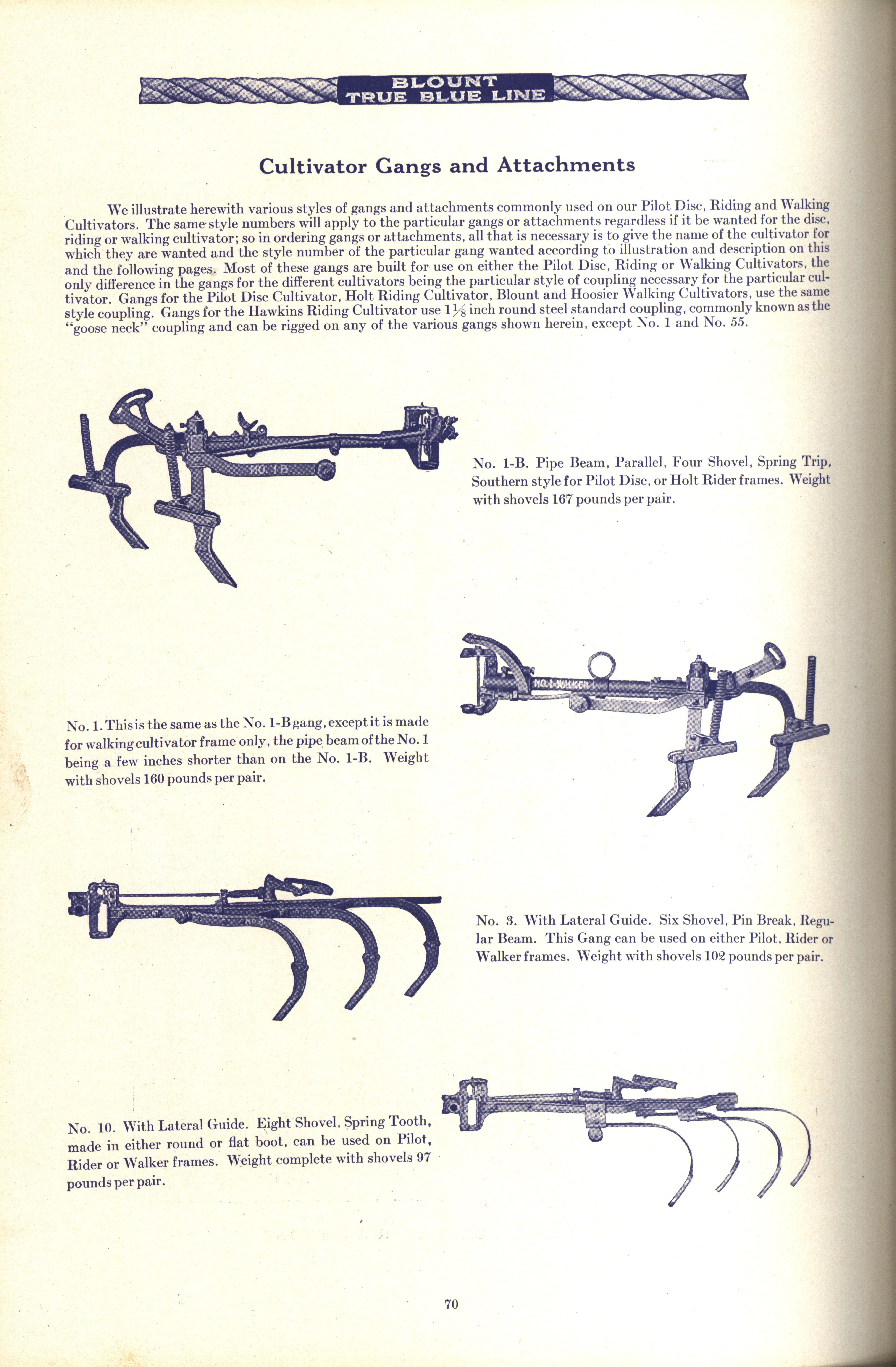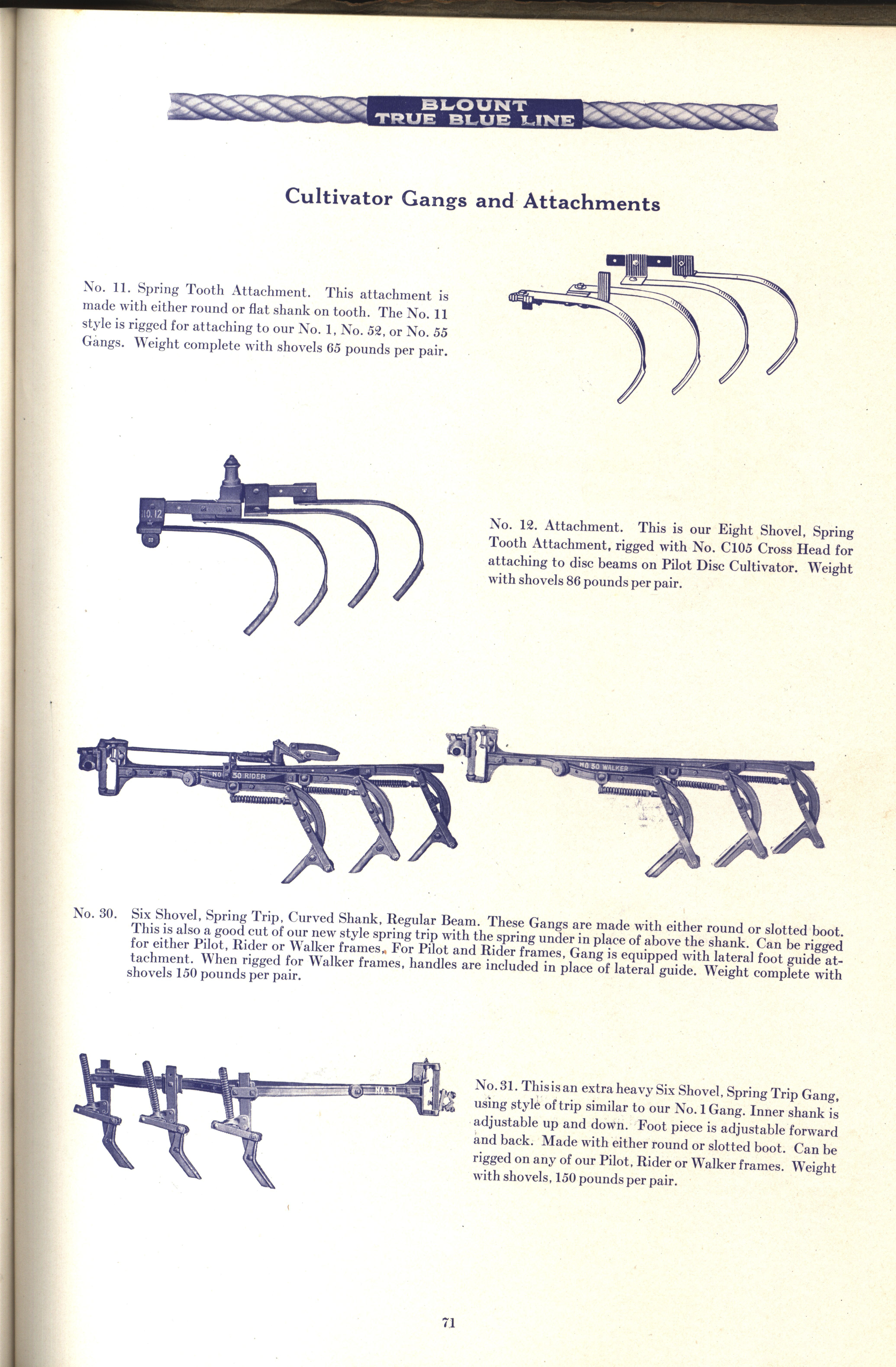 - "Blount True Blue plows, implements and wagons catalog", Agricultural Machinery Literature Collection, Iowa State University Library Digital Collections