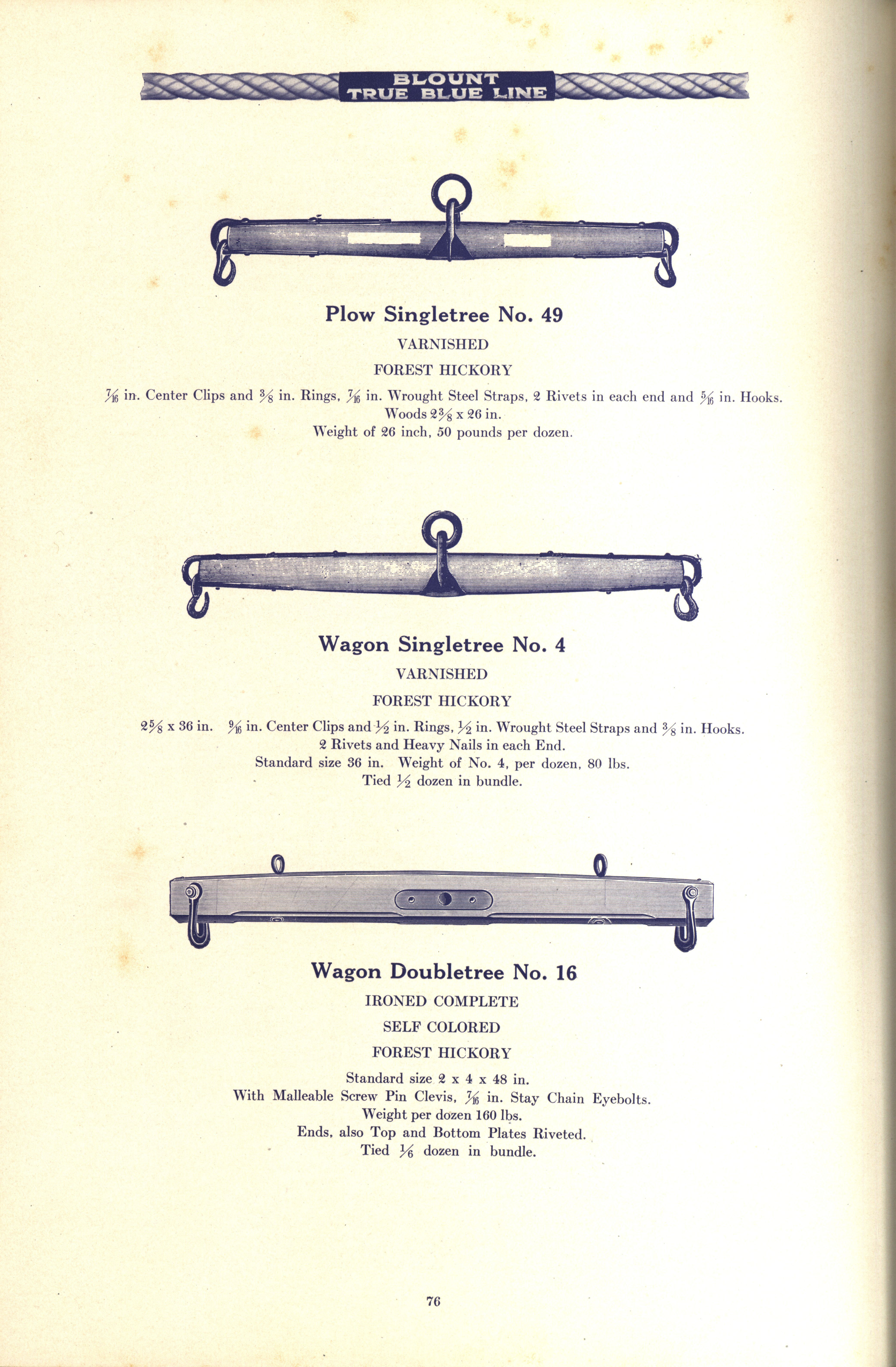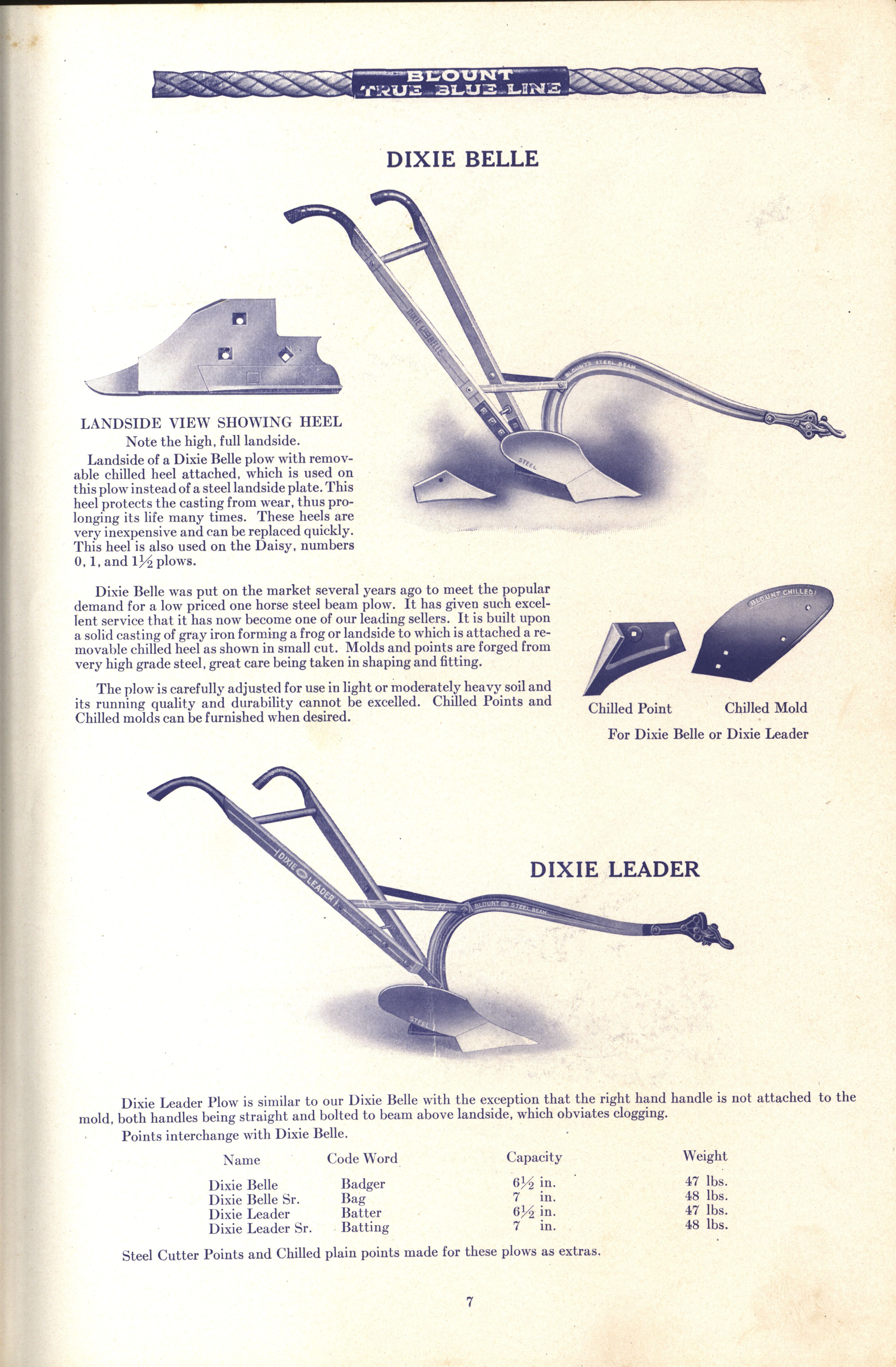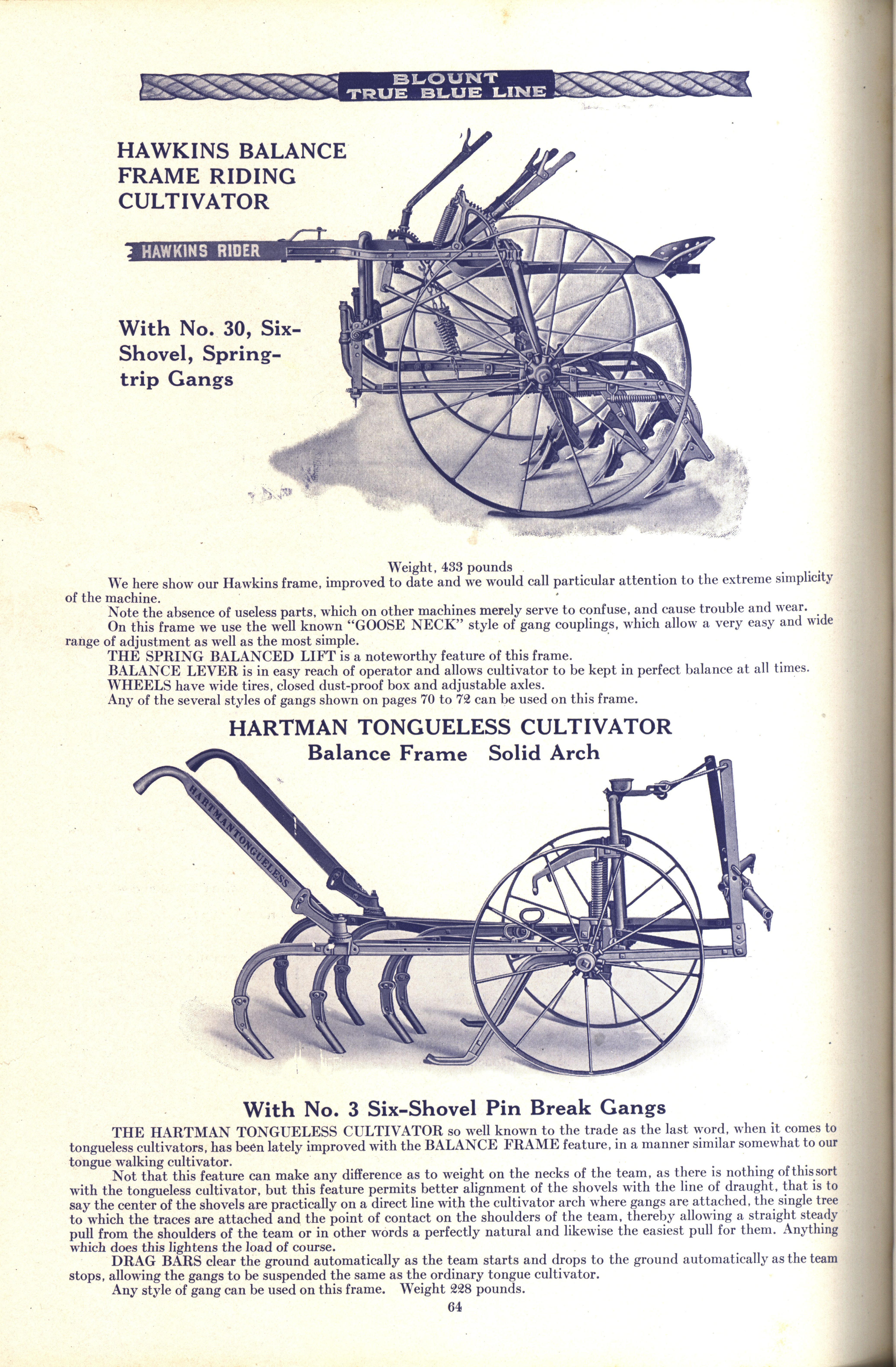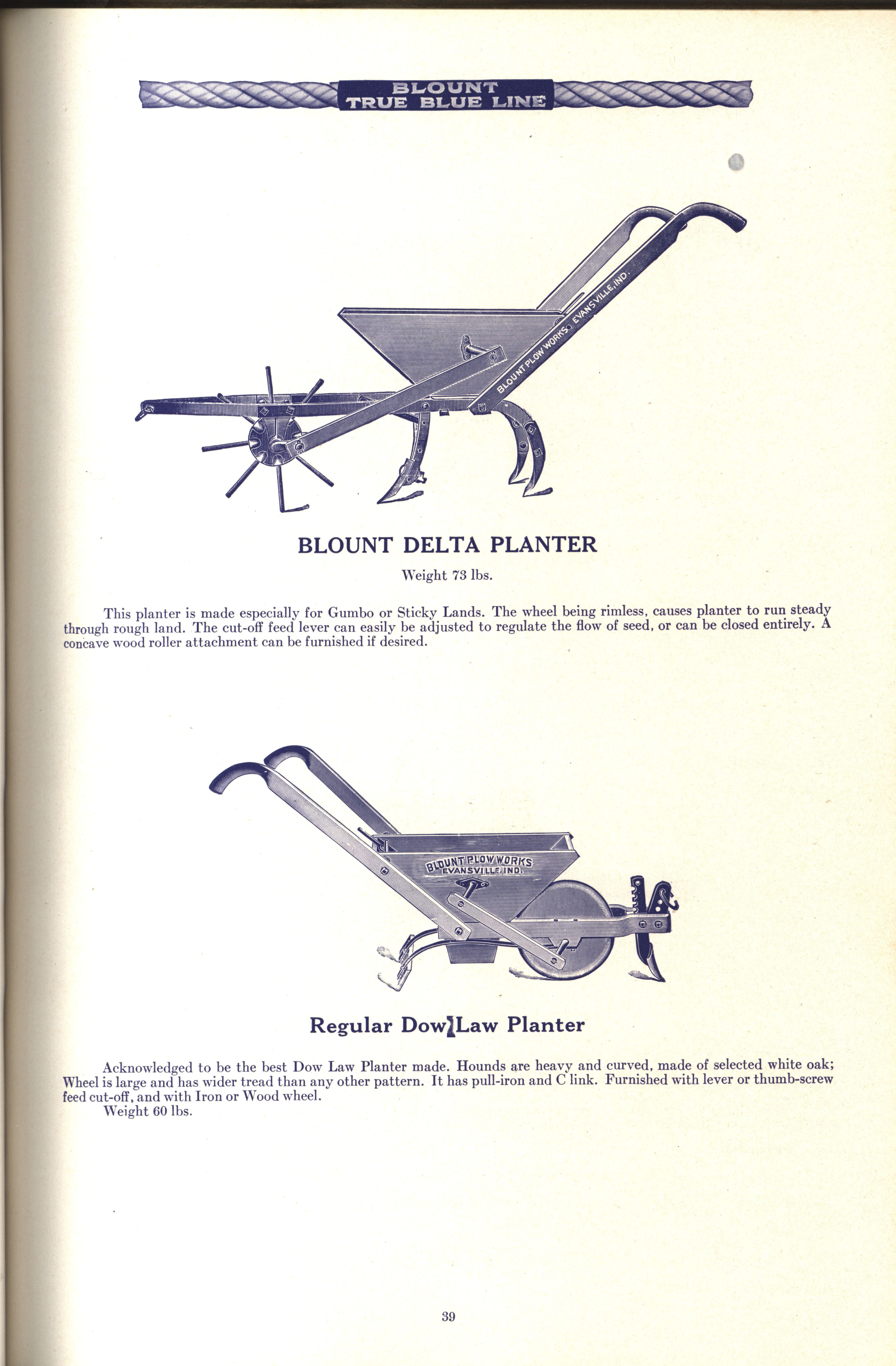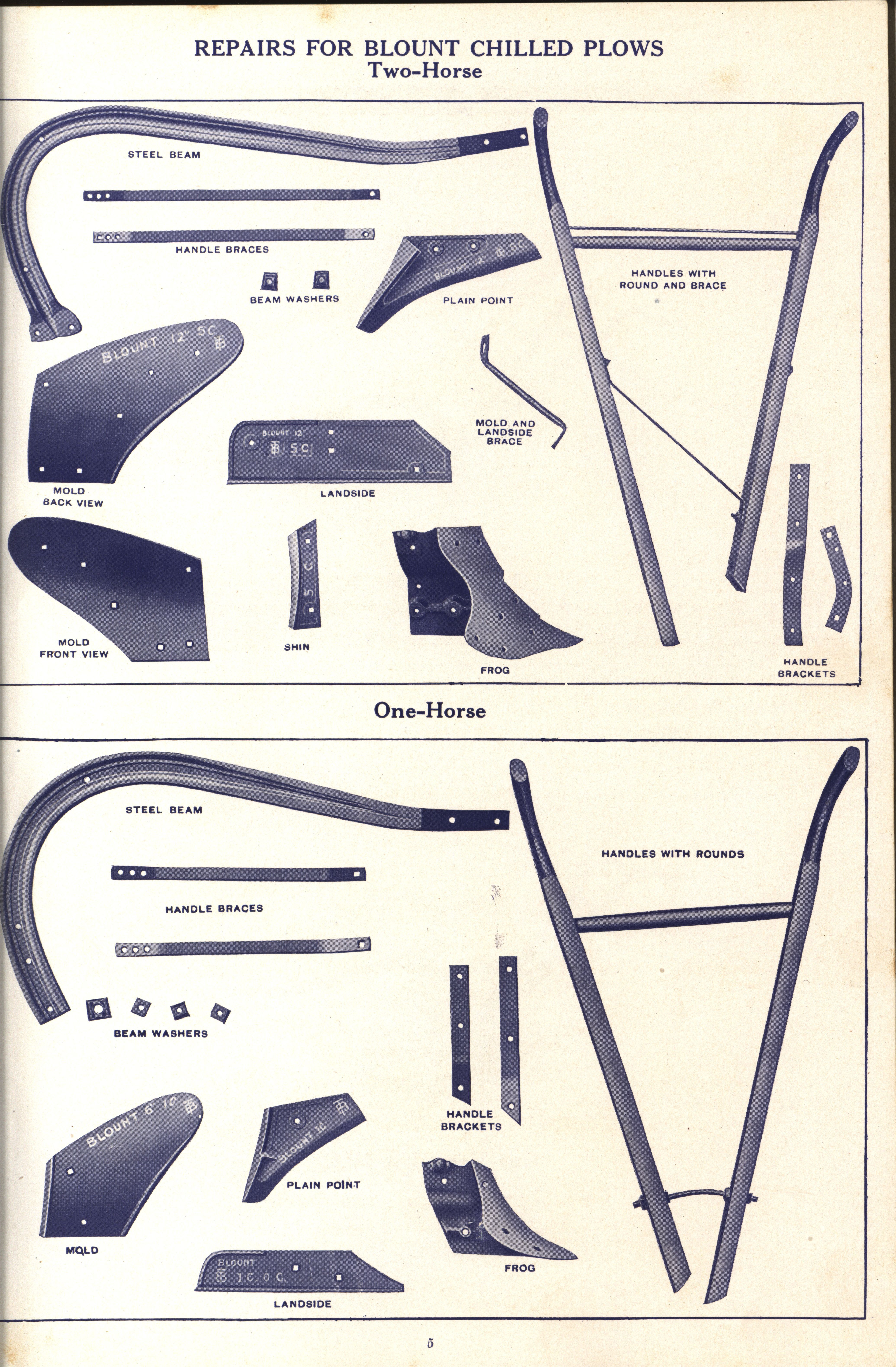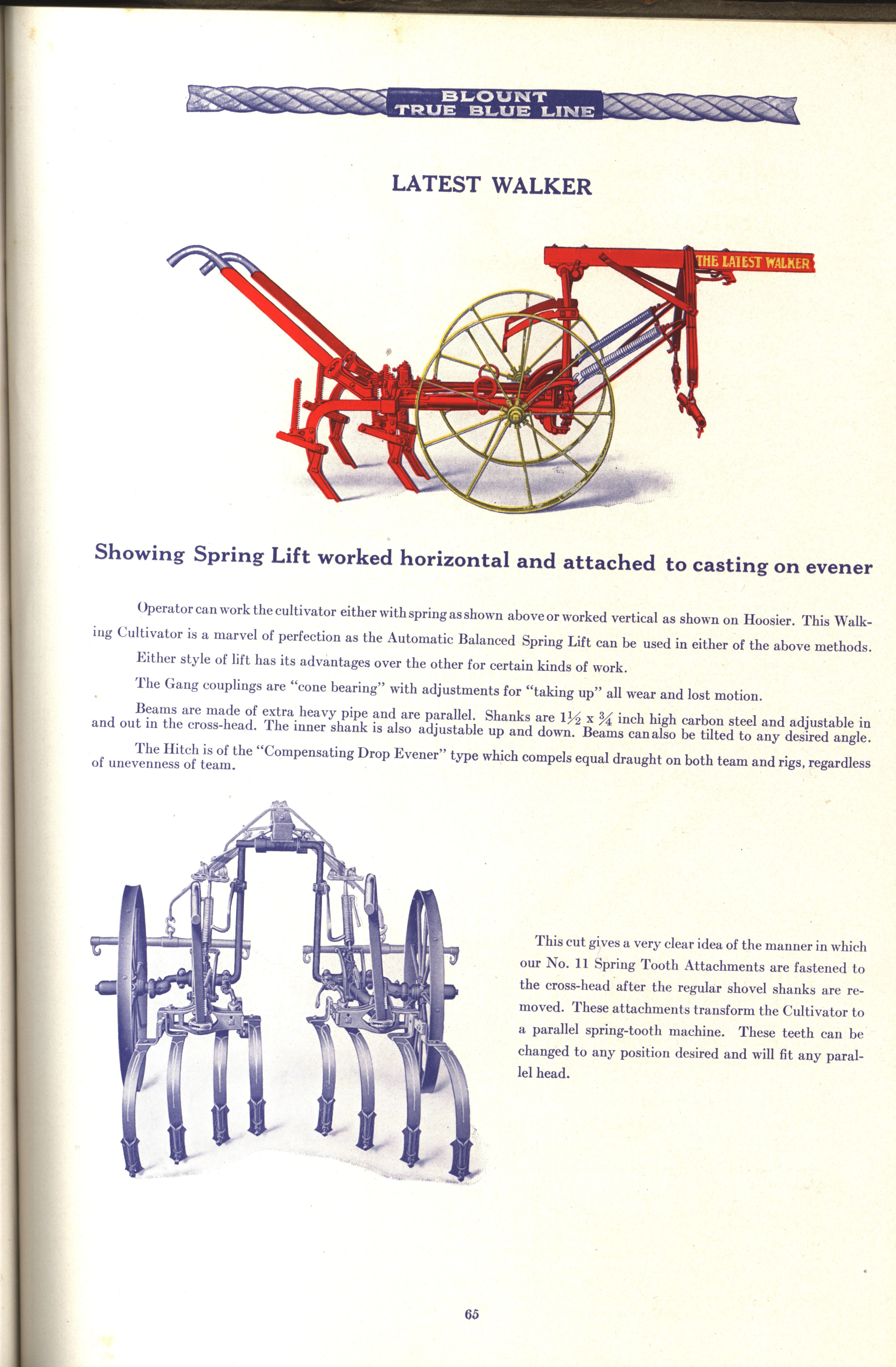 - "Blount True Blue plows, implements and wagons catalog", Agricultural Machinery Literature Collection, Iowa State University Library Digital Collections