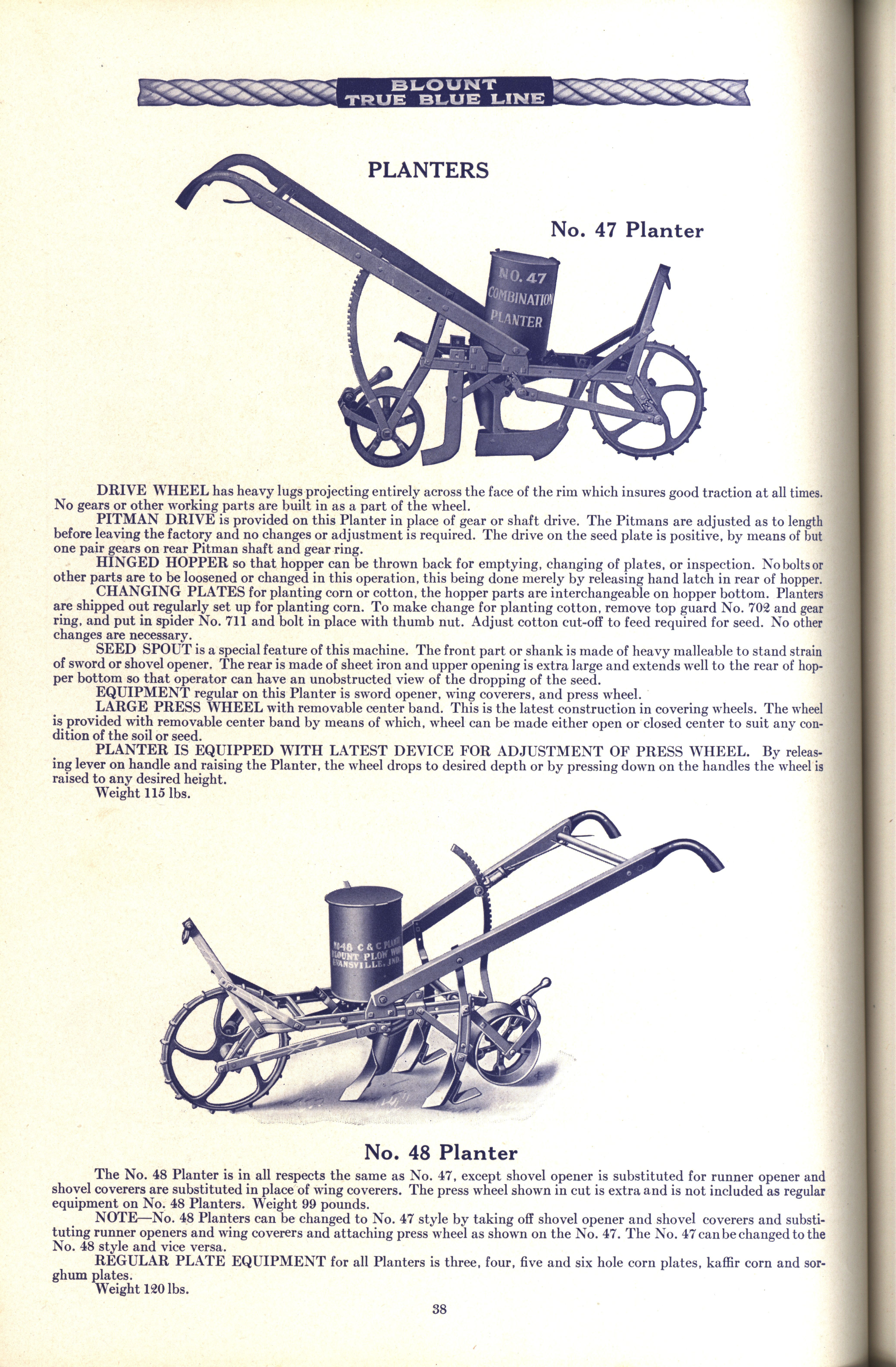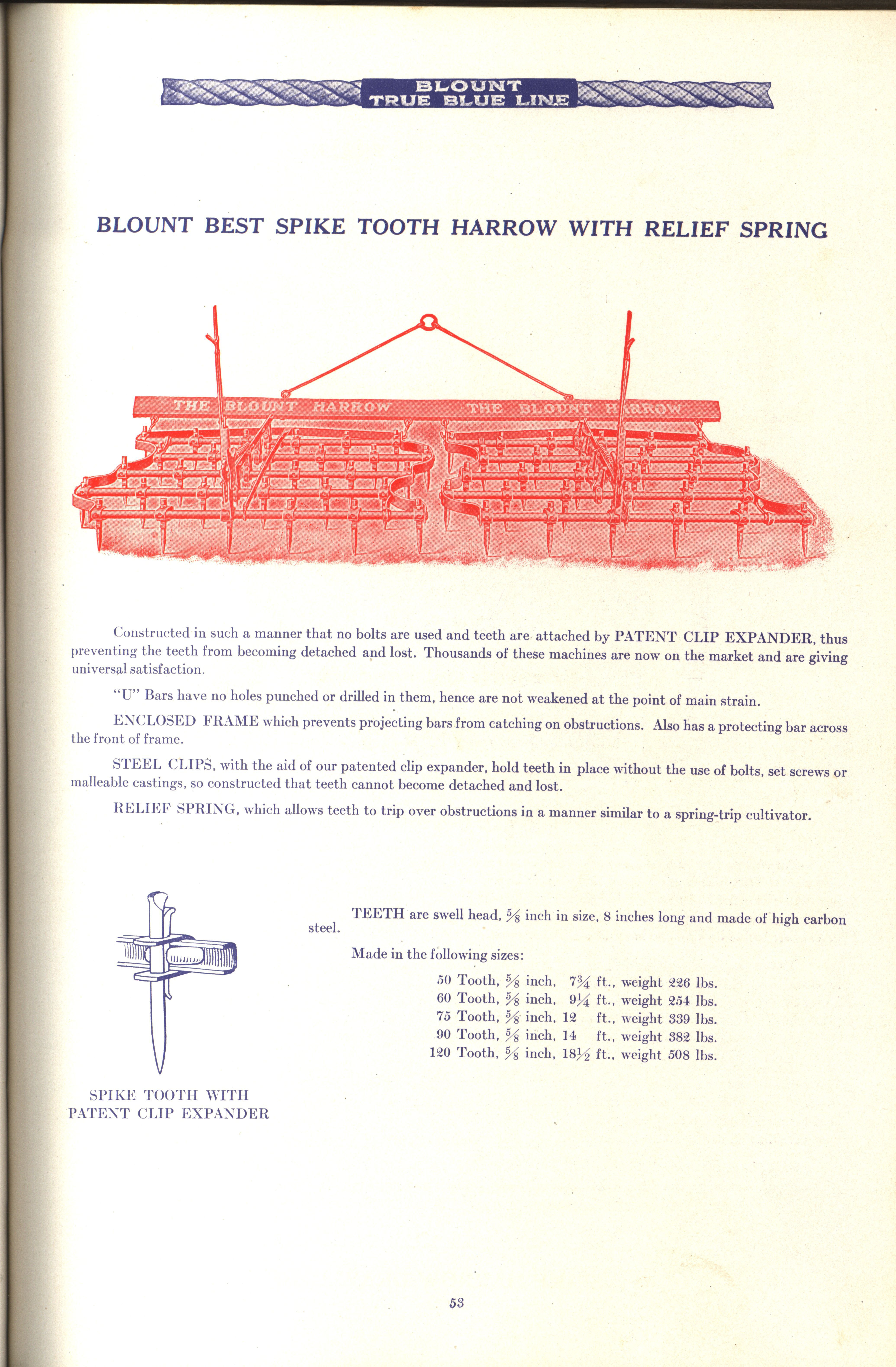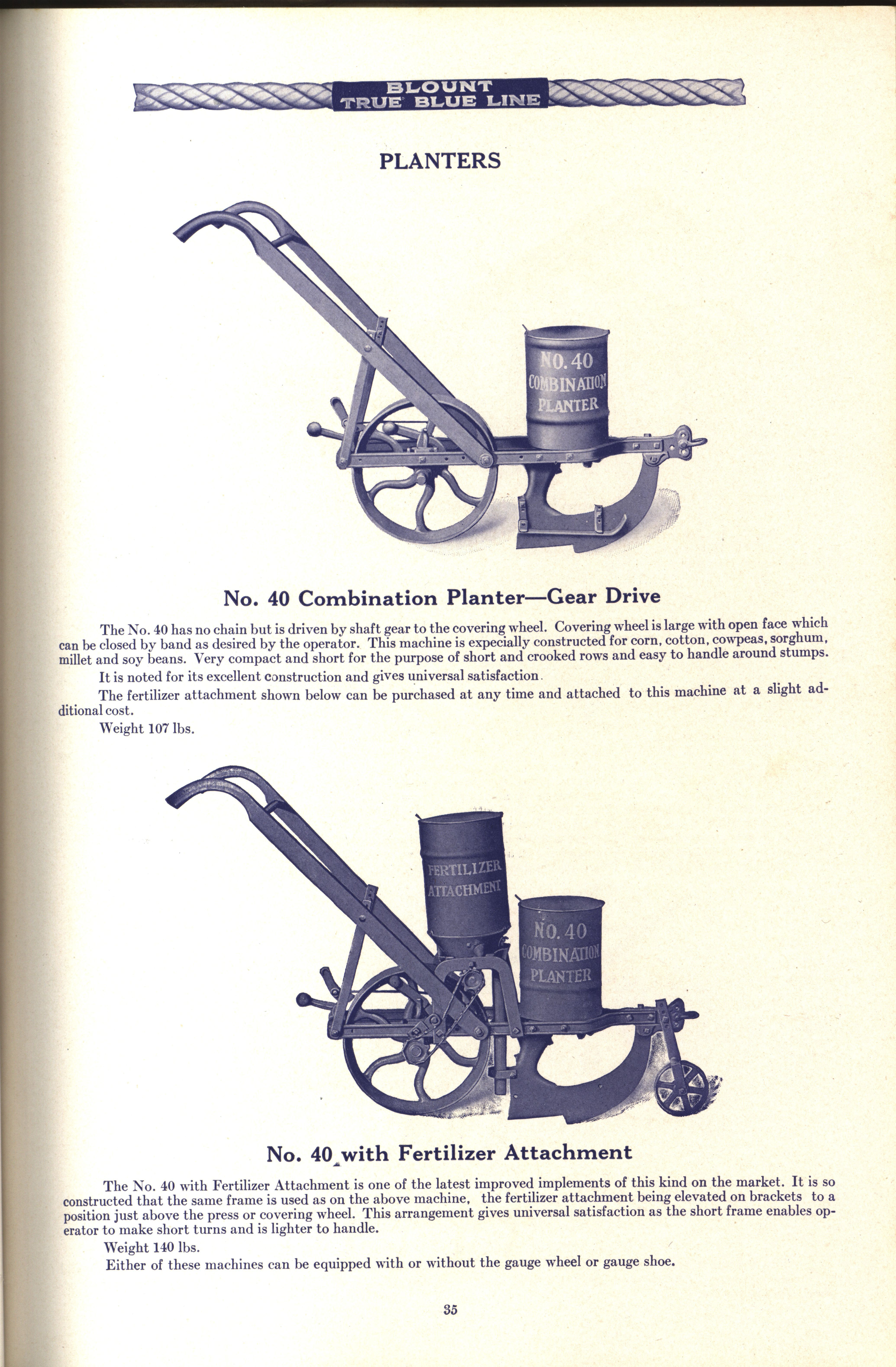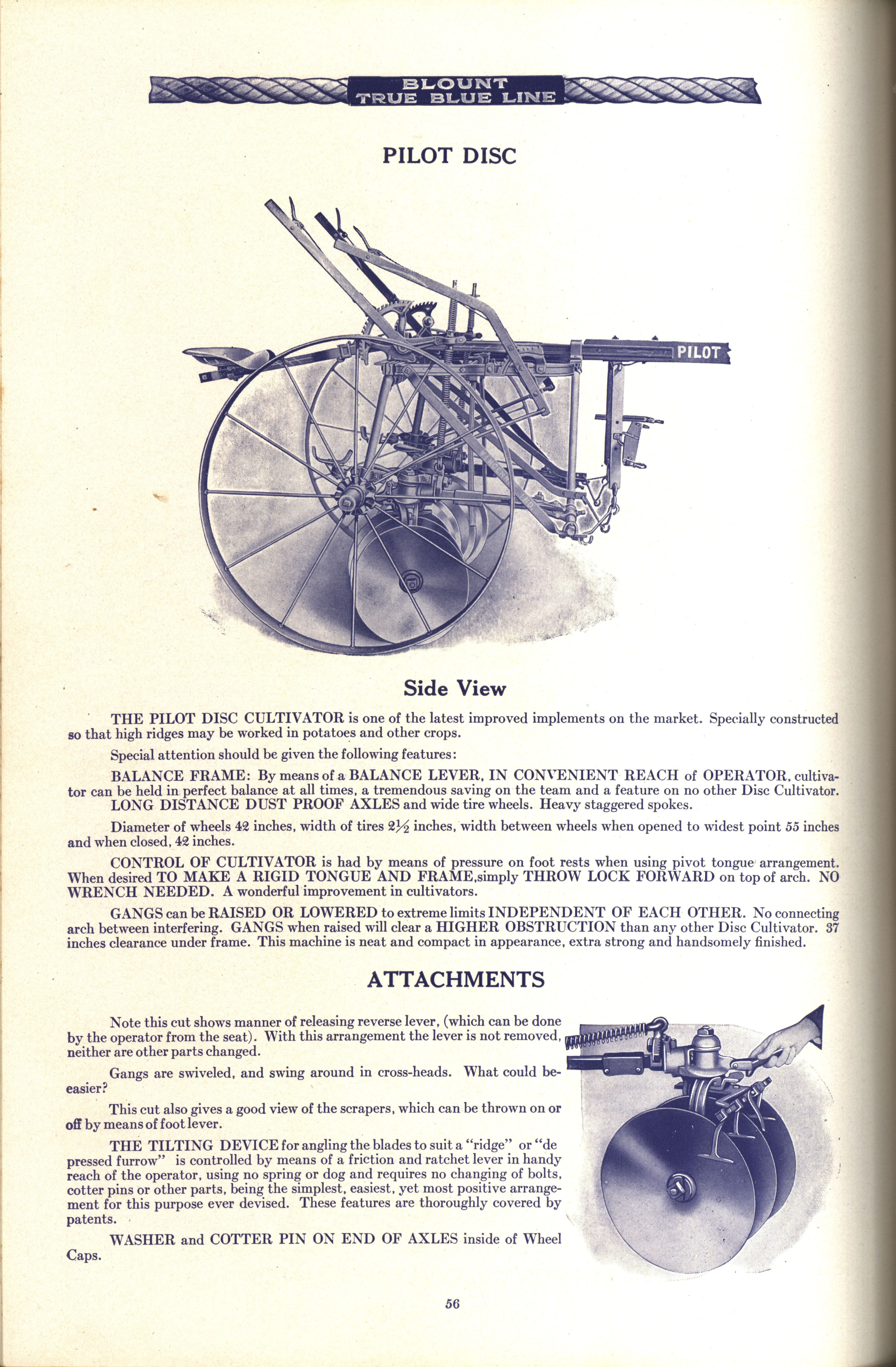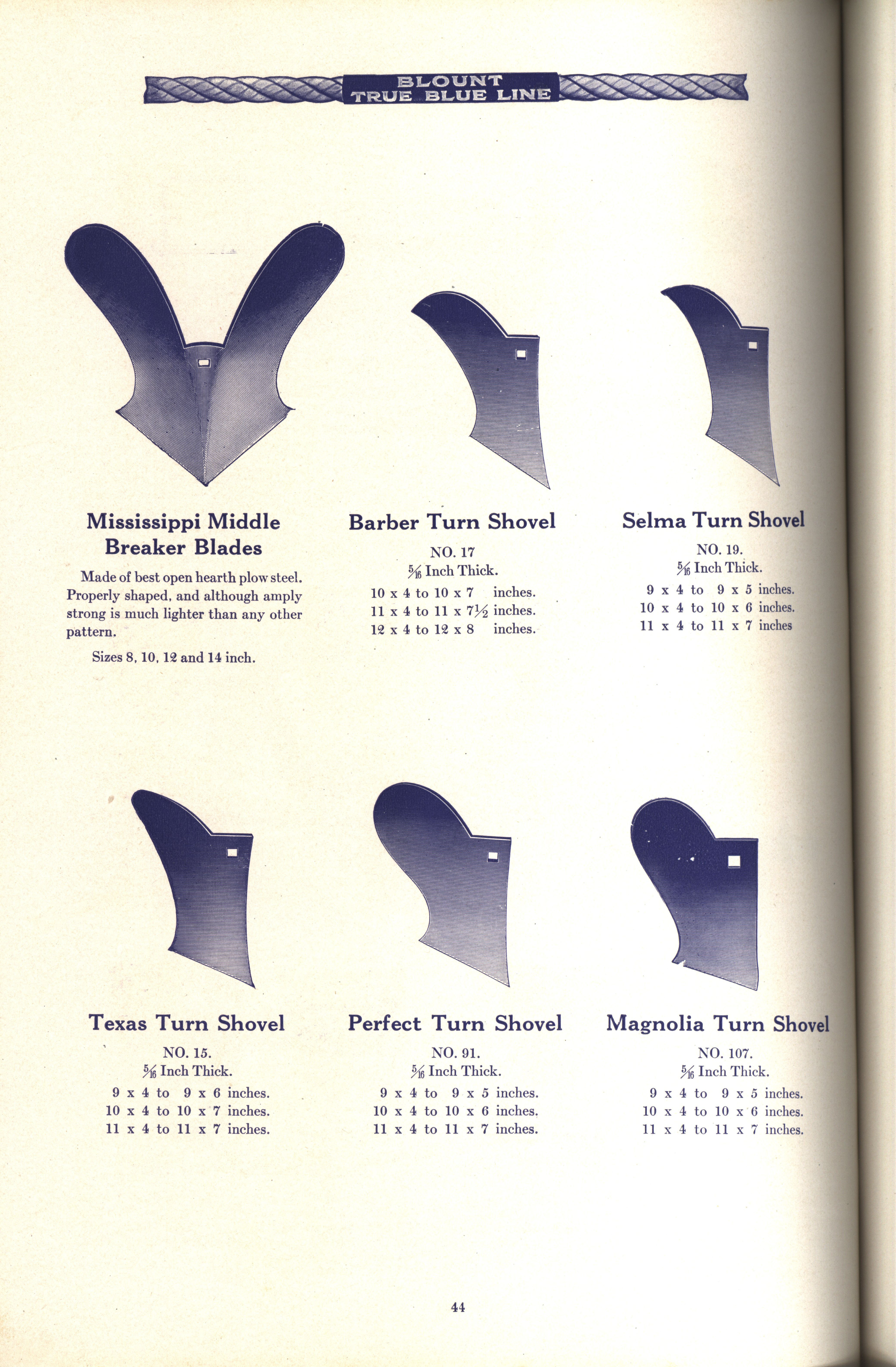 - "Blount True Blue plows, implements and wagons catalog", Agricultural Machinery Literature Collection, Iowa State University Library Digital Collections