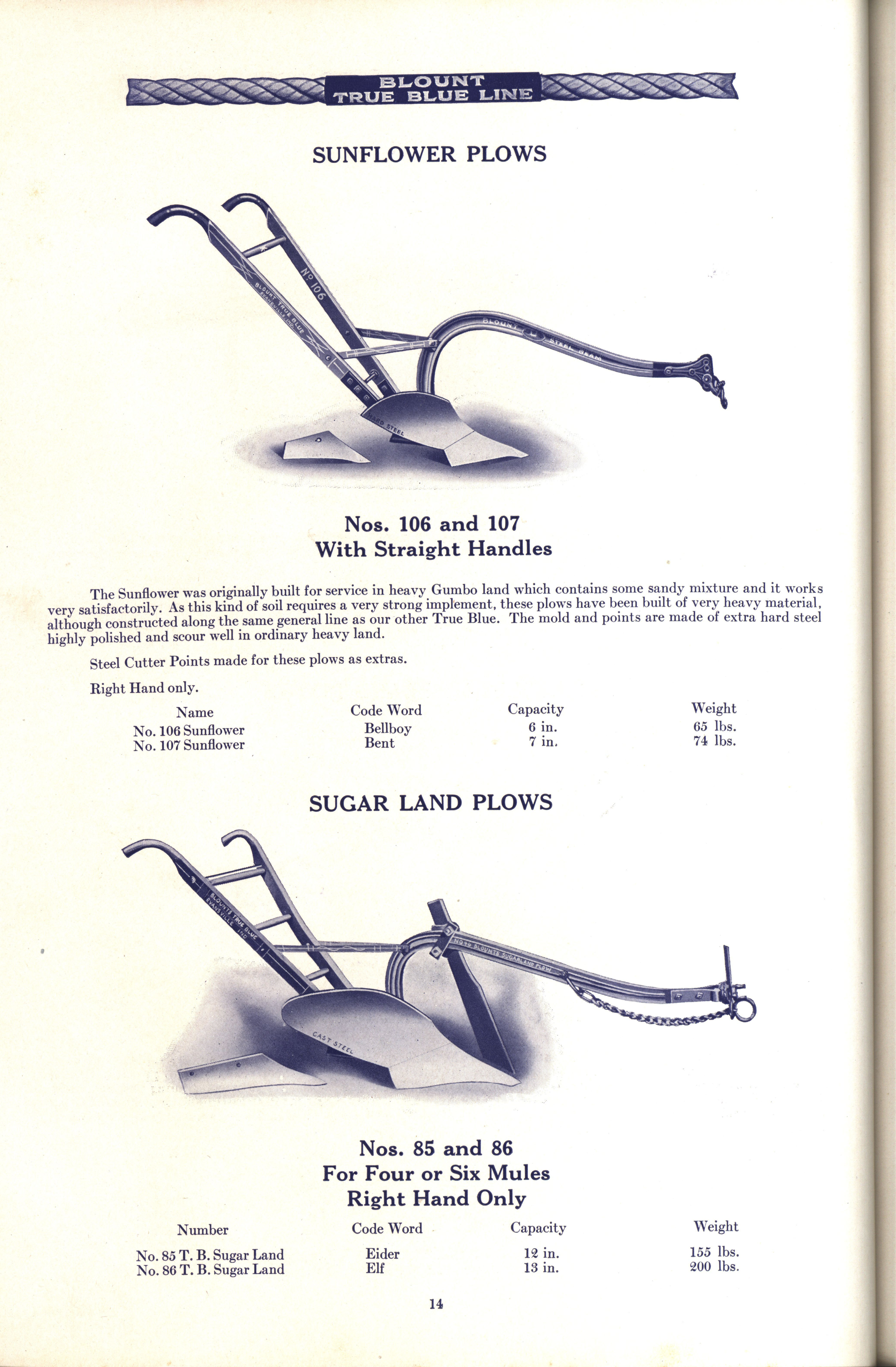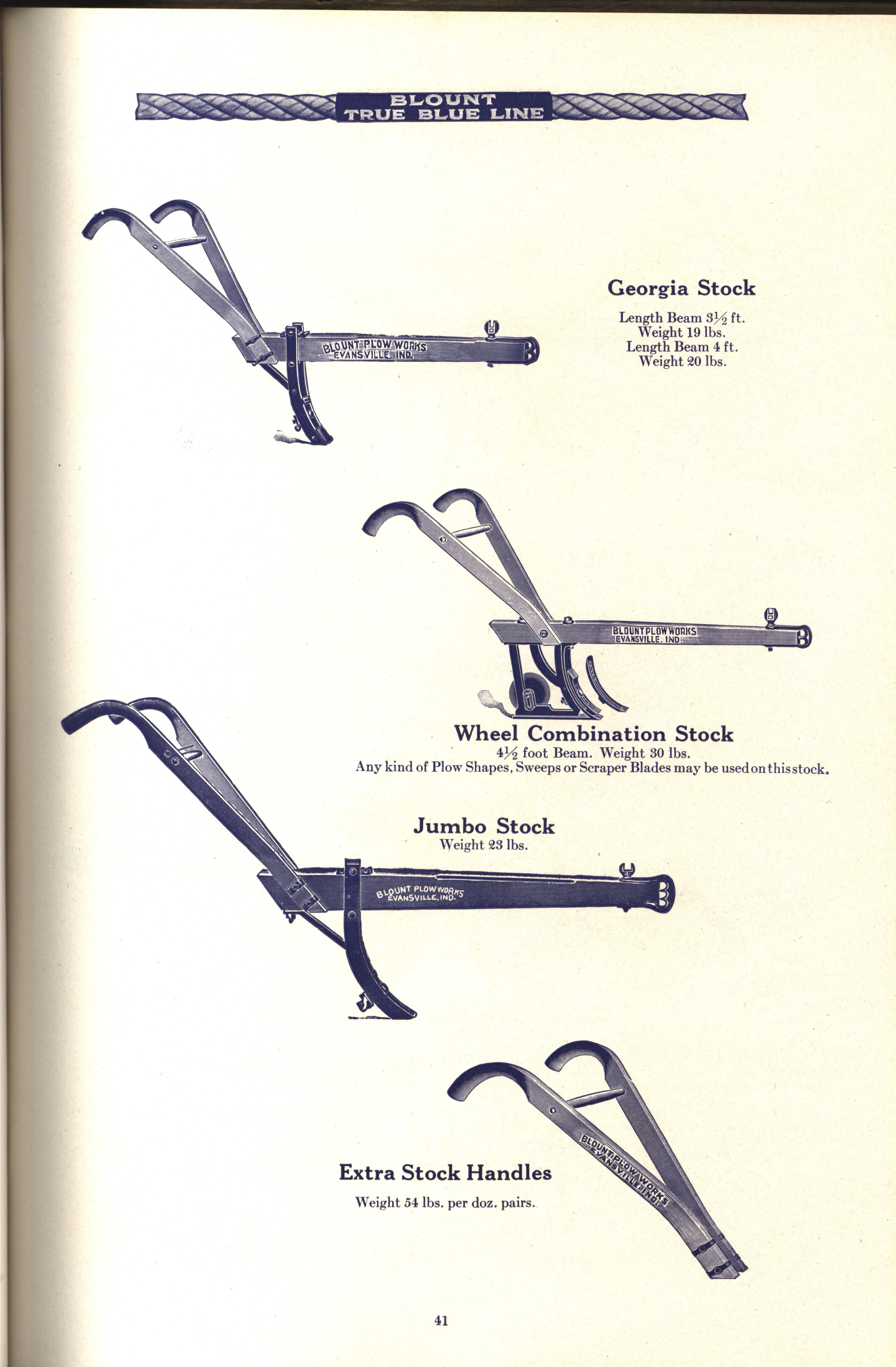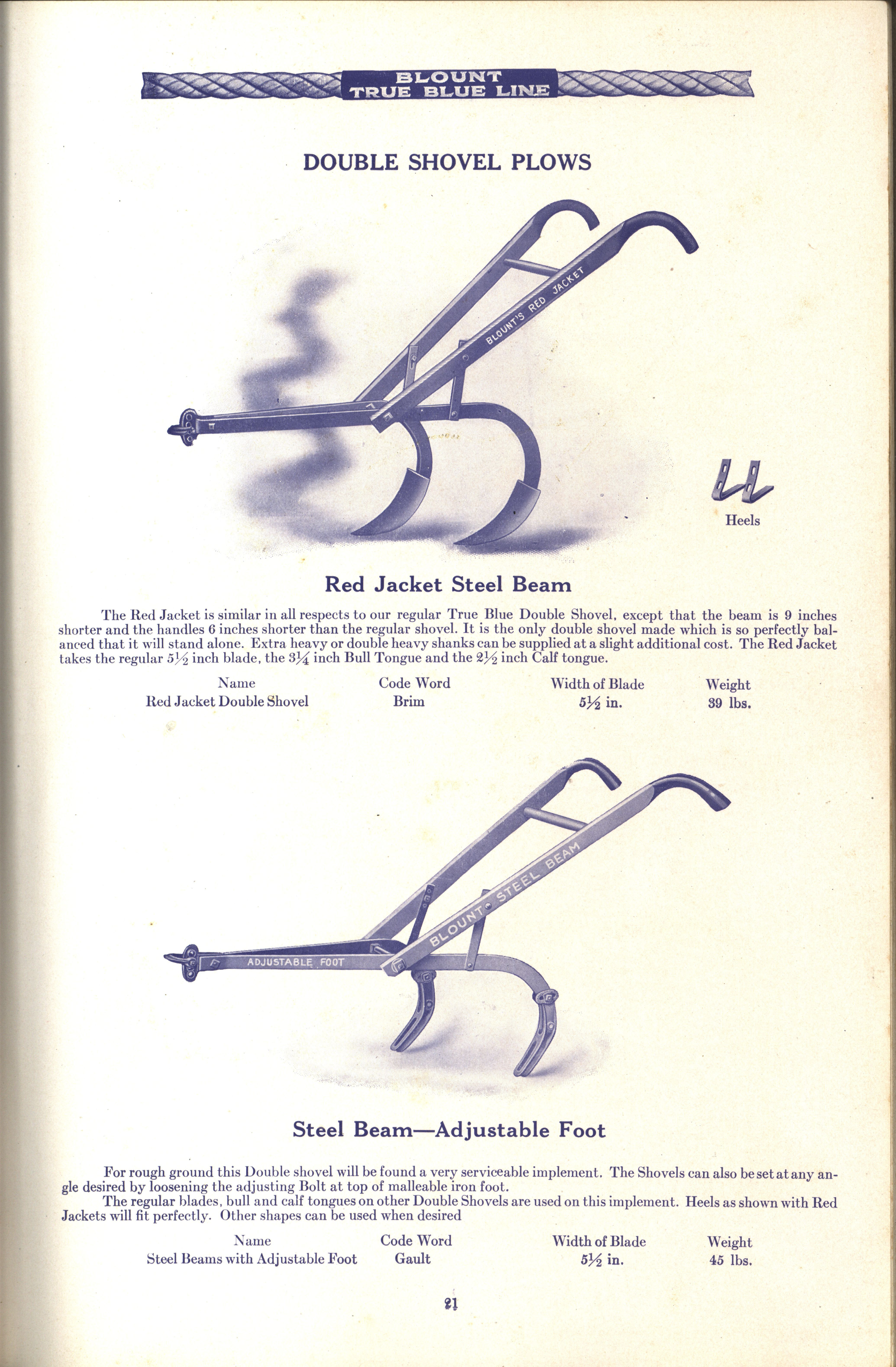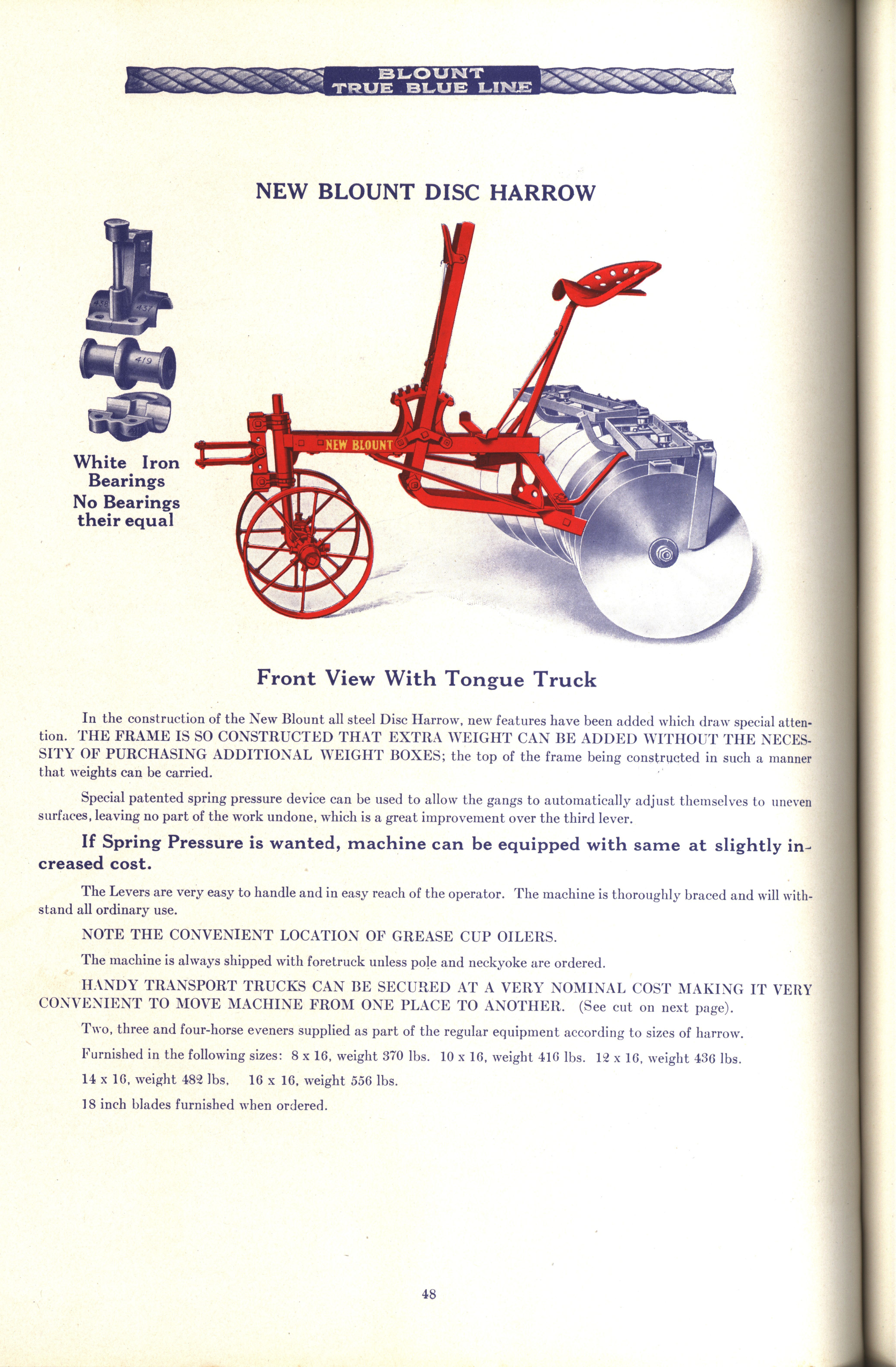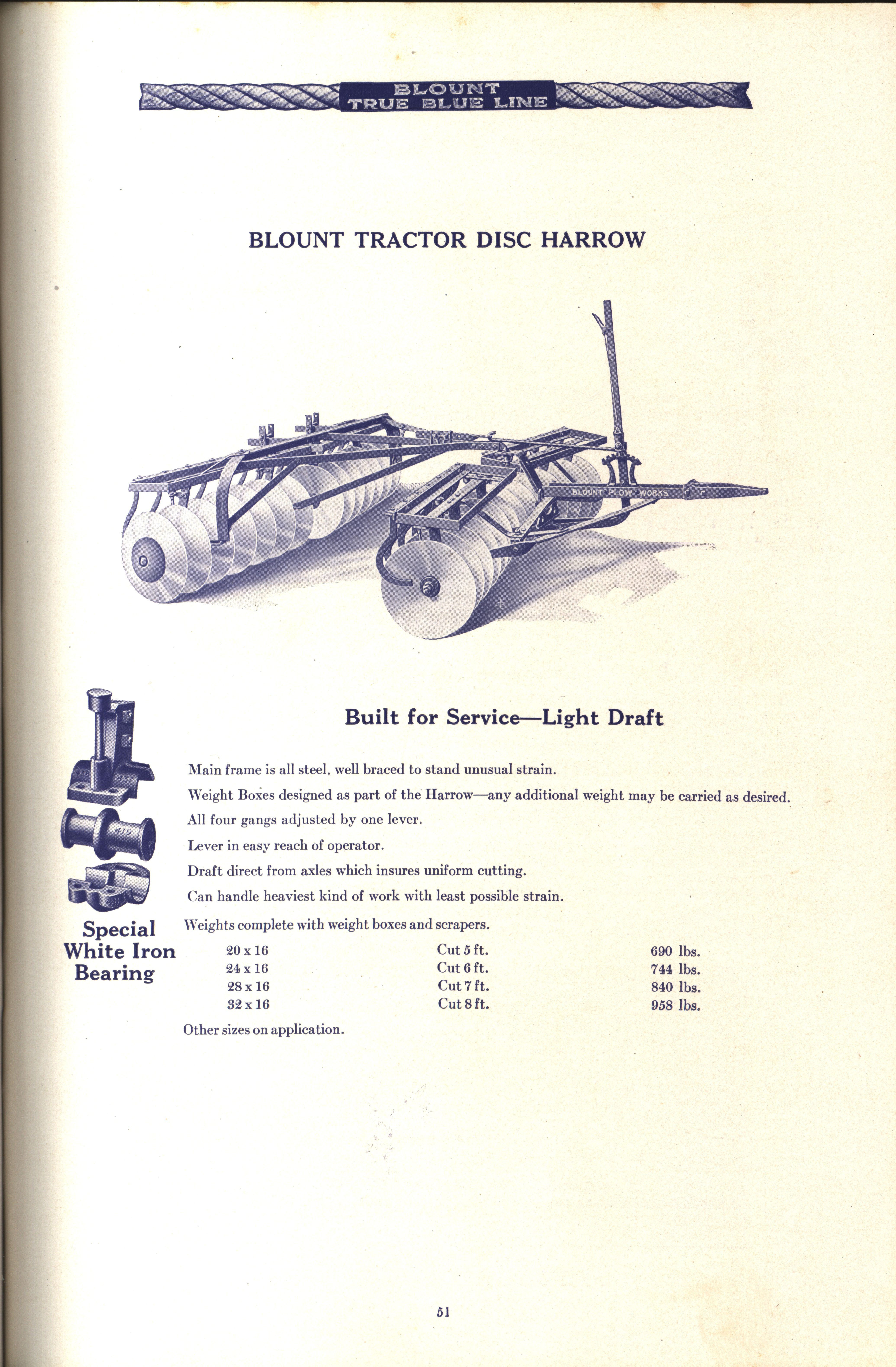 - "Blount True Blue plows, implements and wagons catalog", Agricultural Machinery Literature Collection, Iowa State University Library Digital Collections
