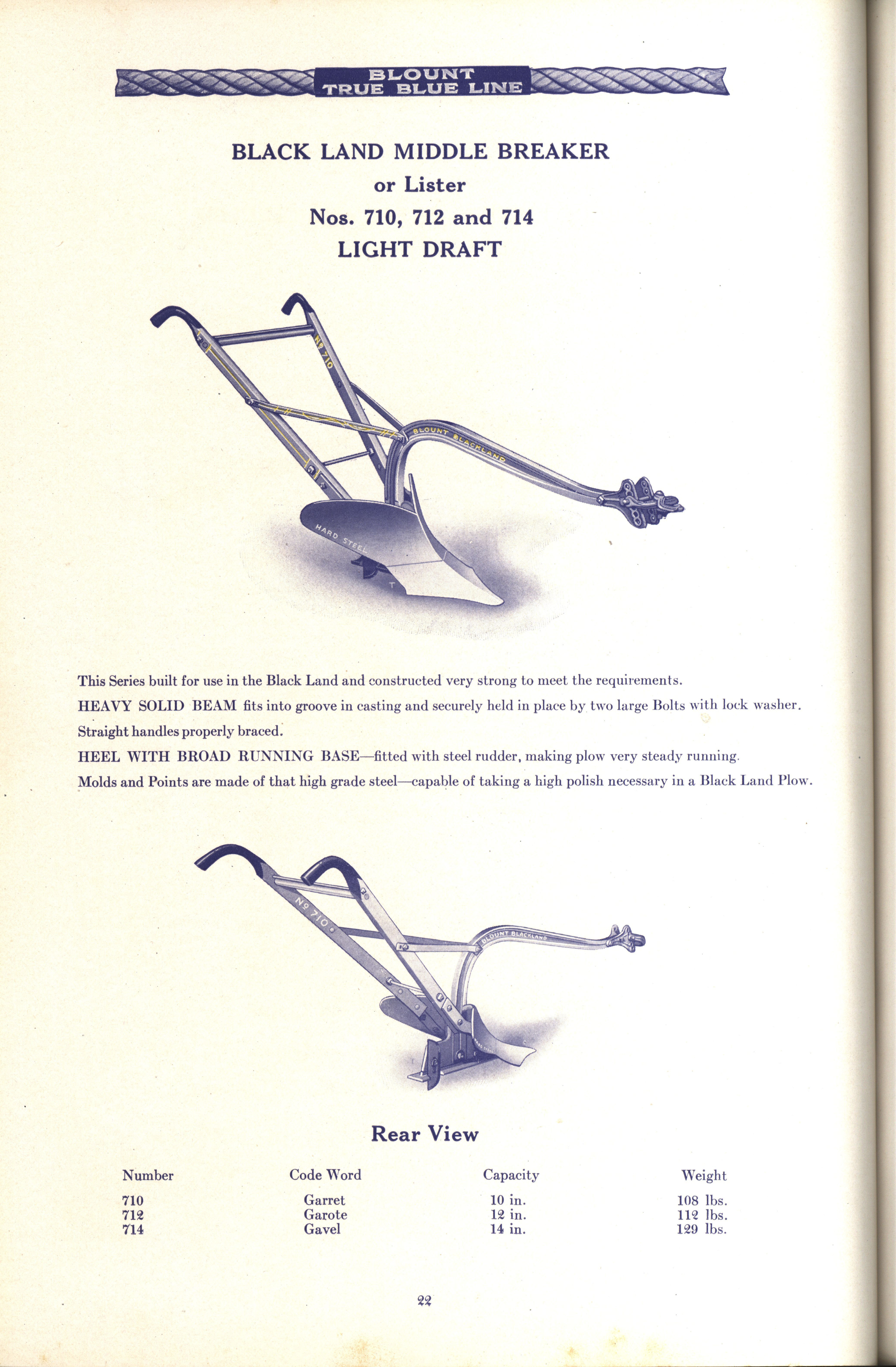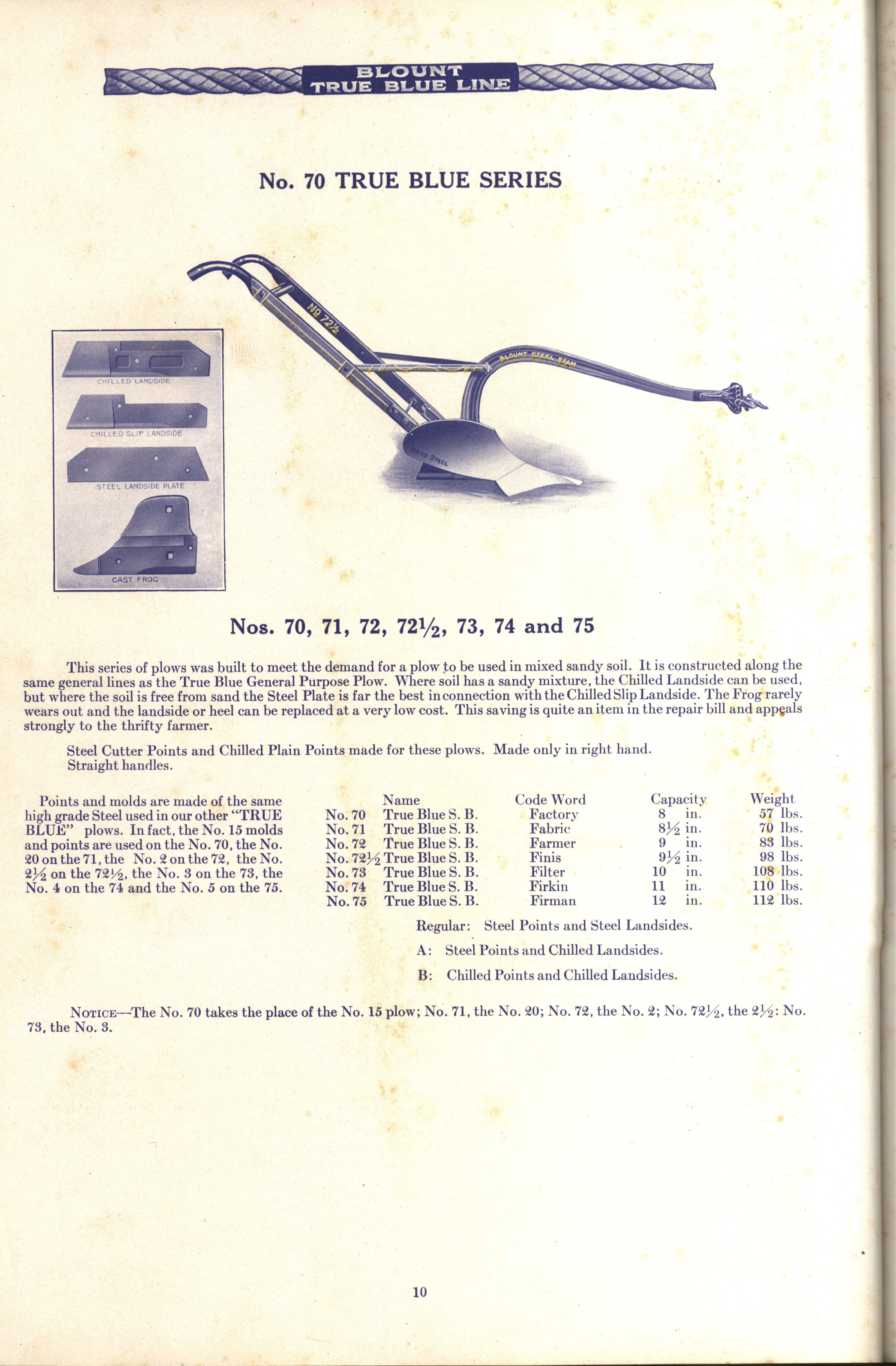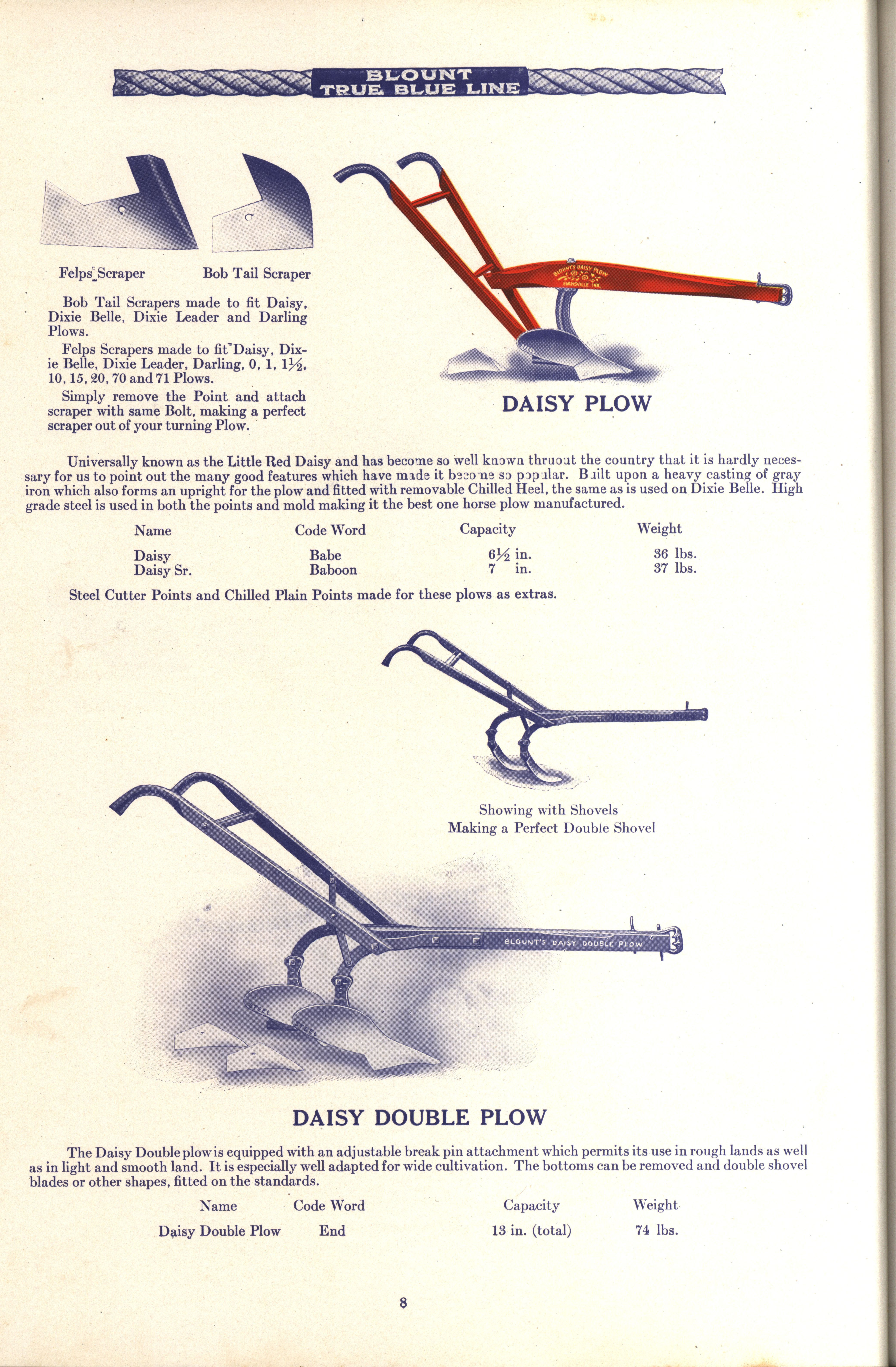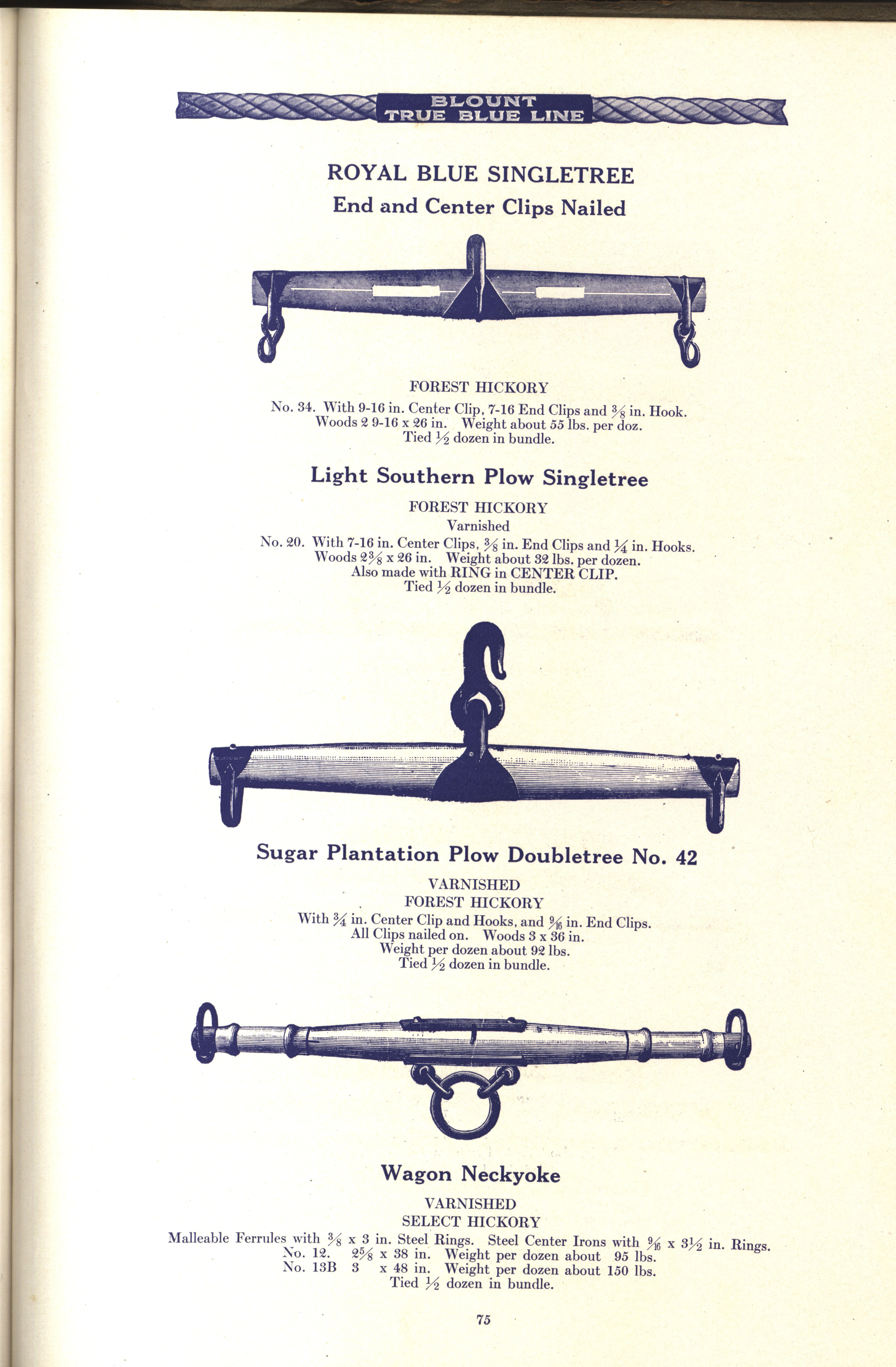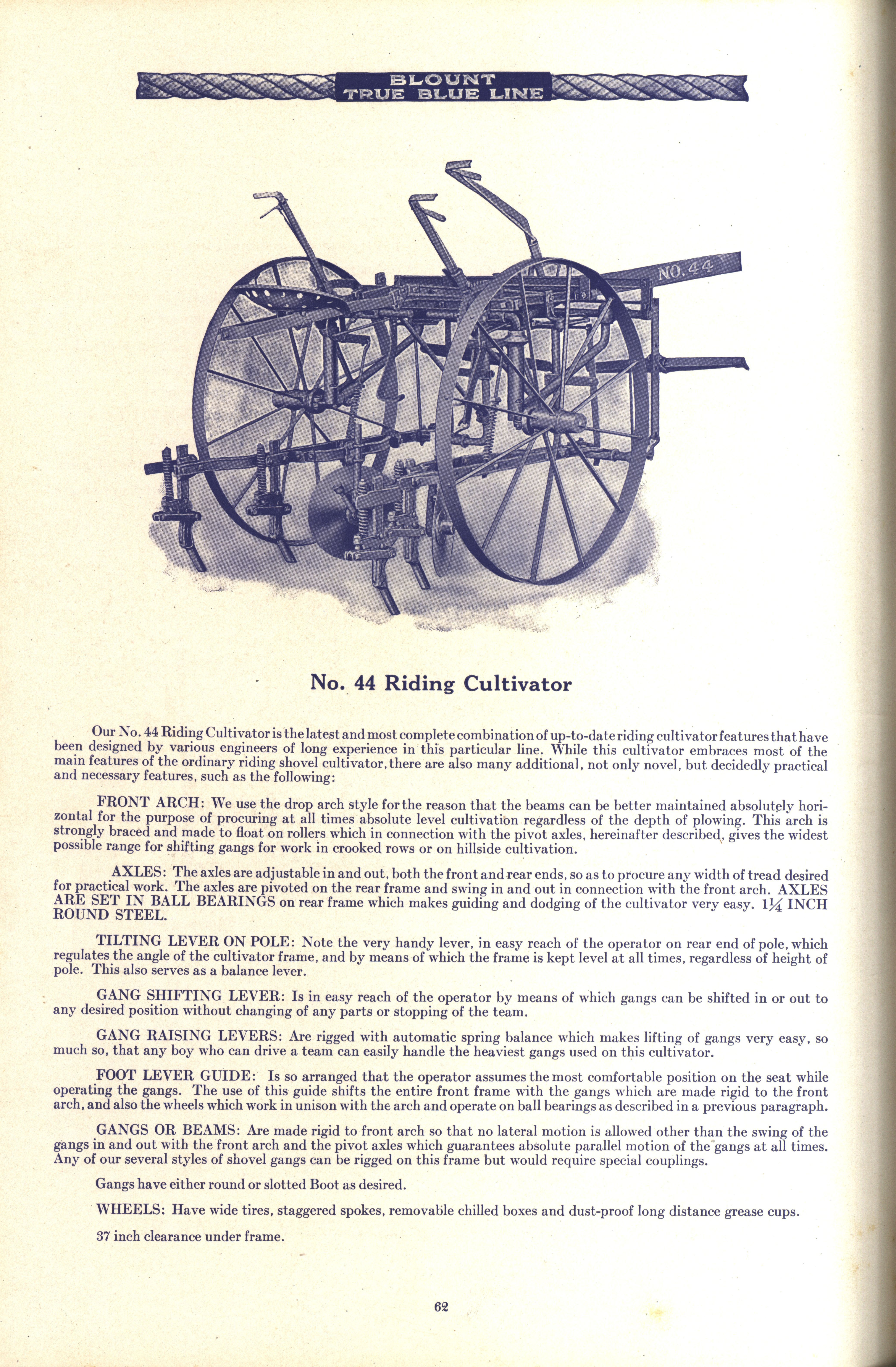 - "Blount True Blue plows, implements and wagons catalog", Agricultural Machinery Literature Collection, Iowa State University Library Digital Collections