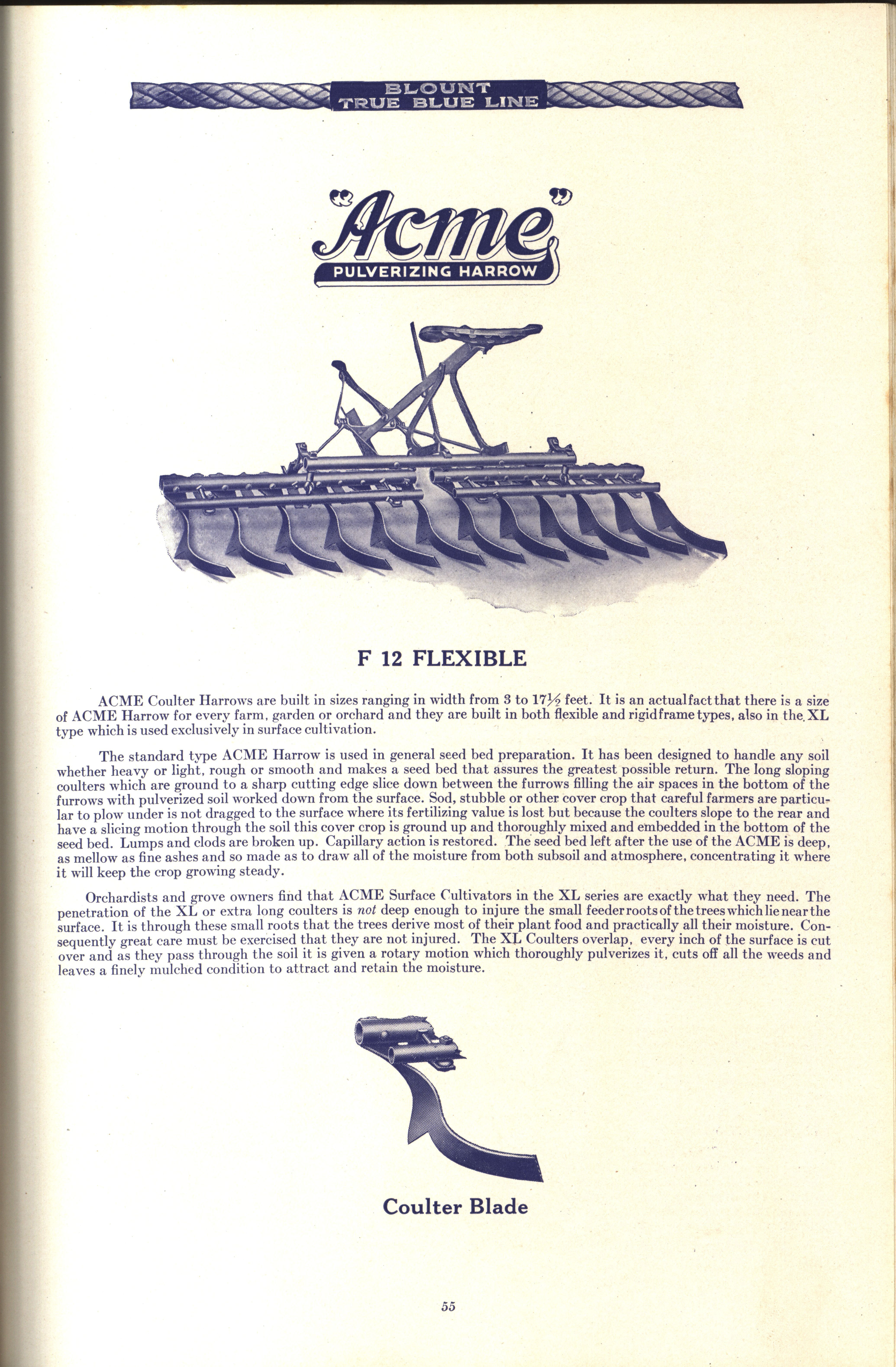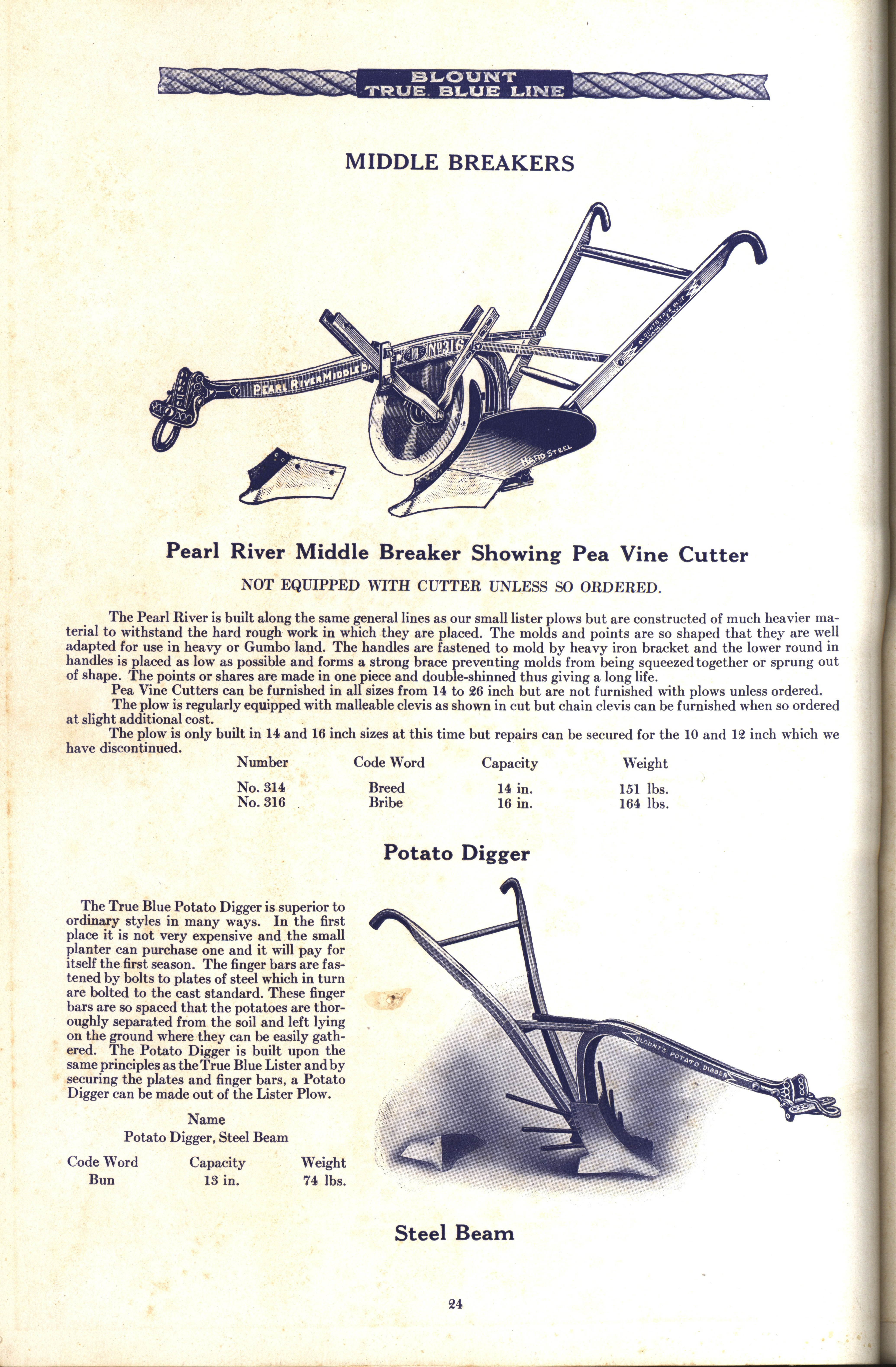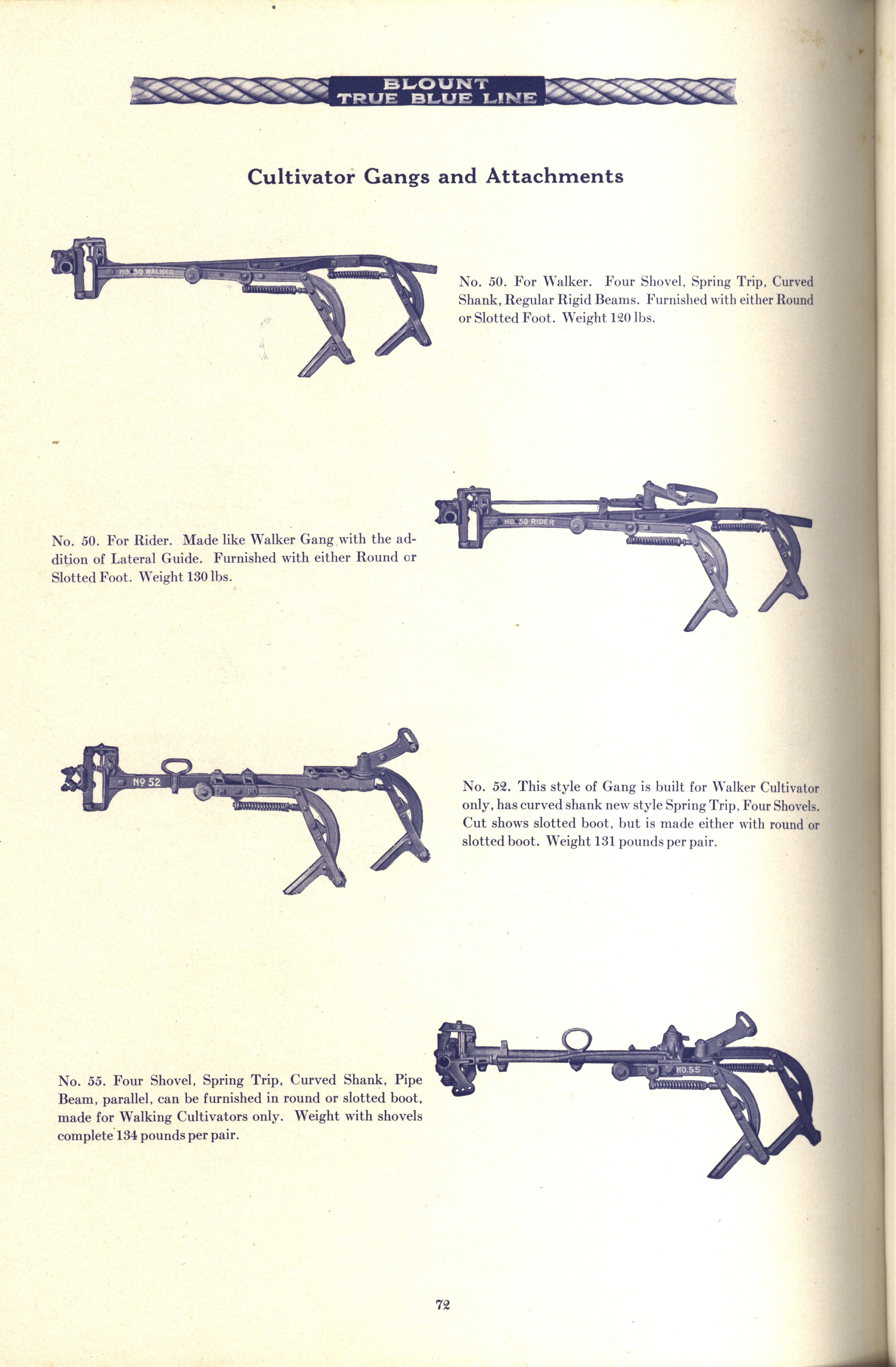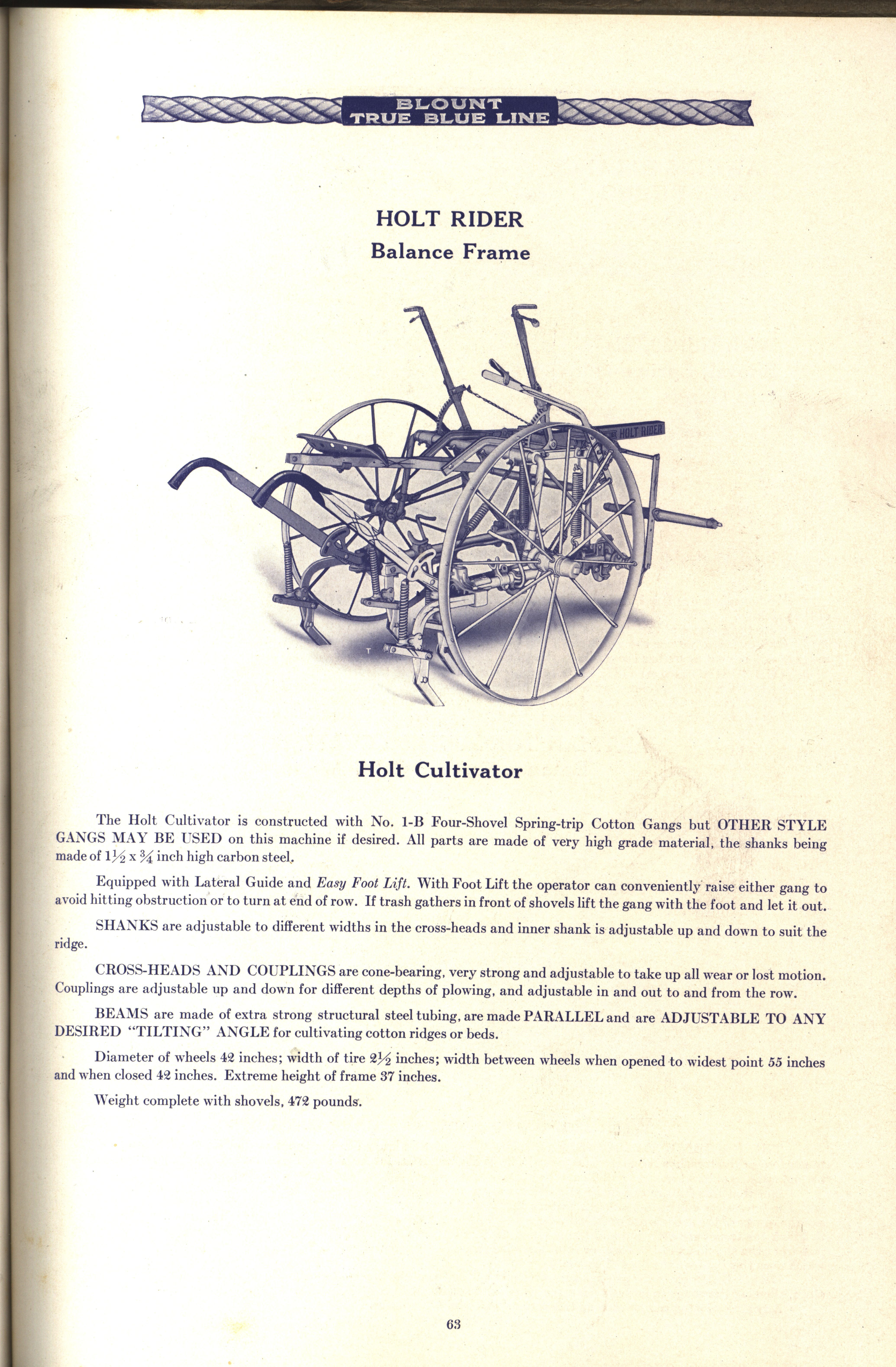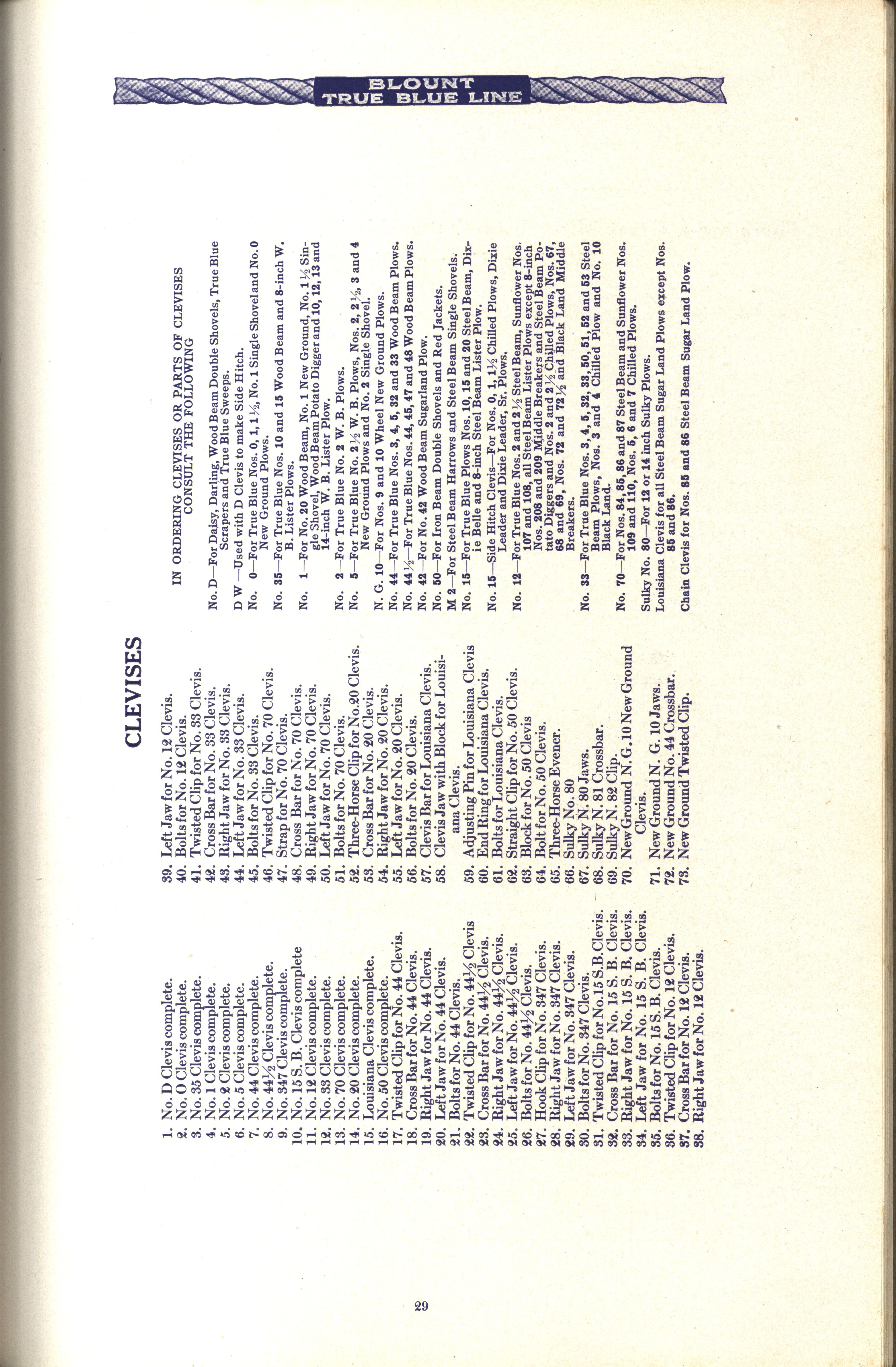 - "Blount True Blue plows, implements and wagons catalog", Agricultural Machinery Literature Collection, Iowa State University Library Digital Collections