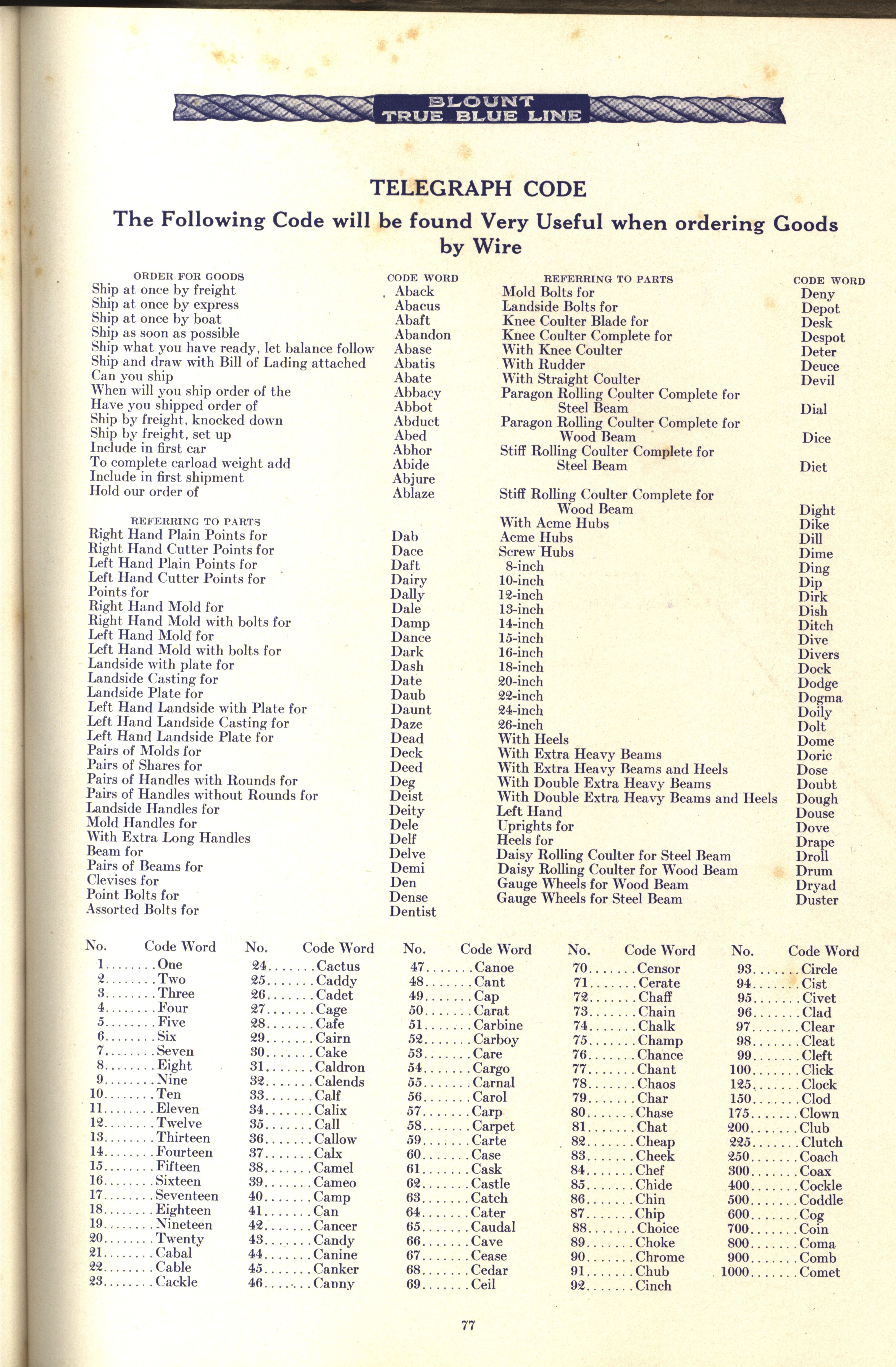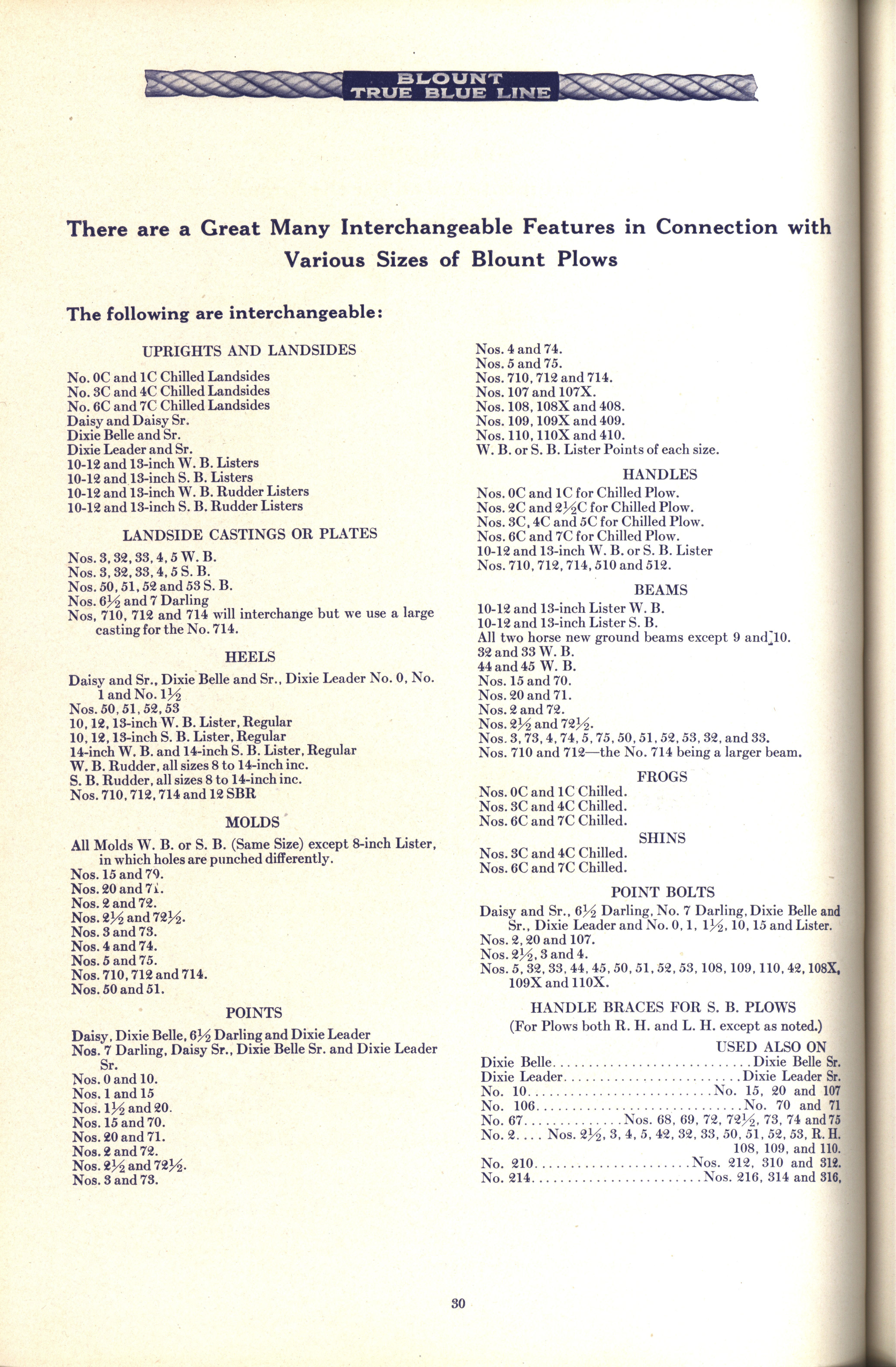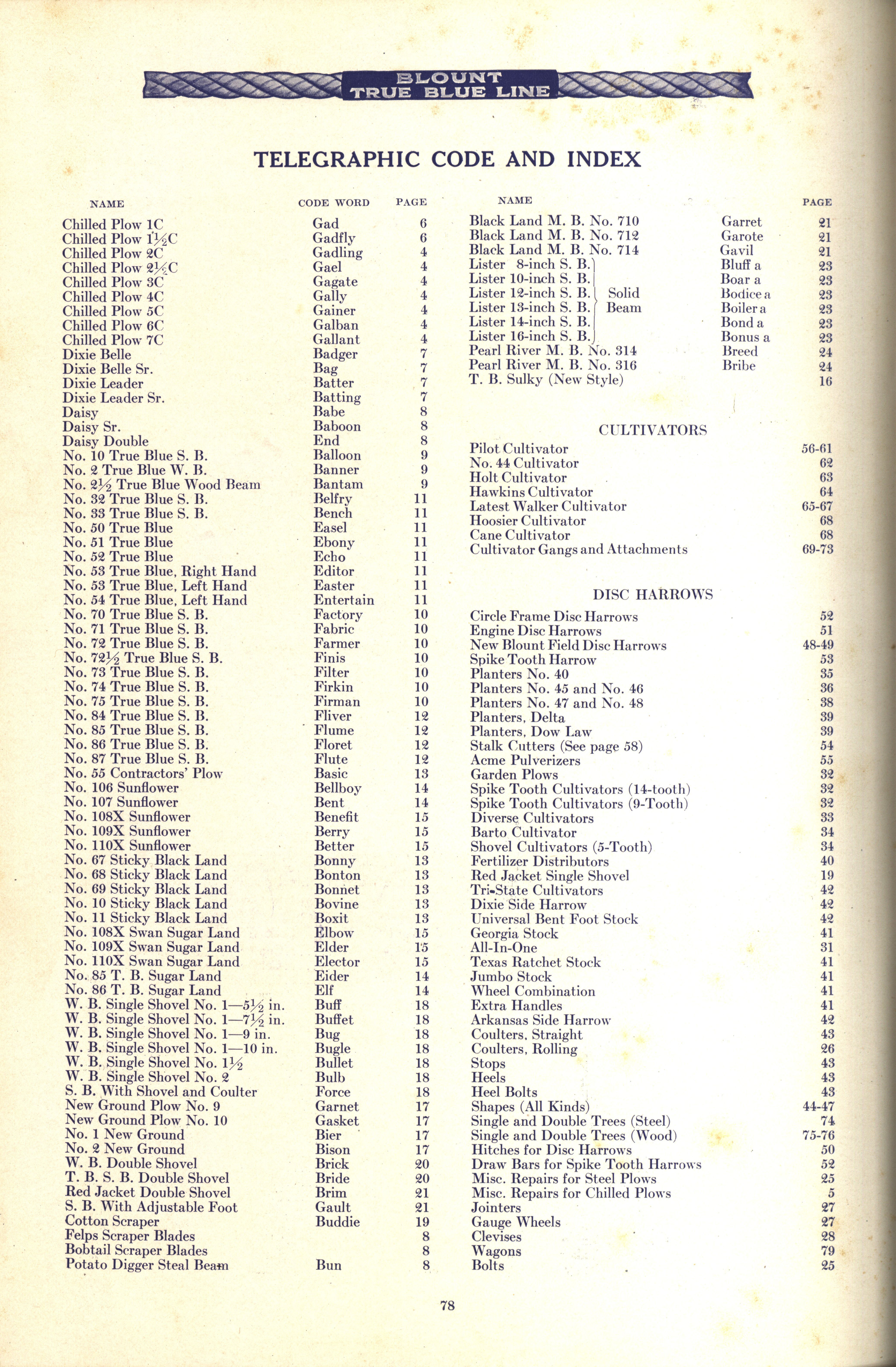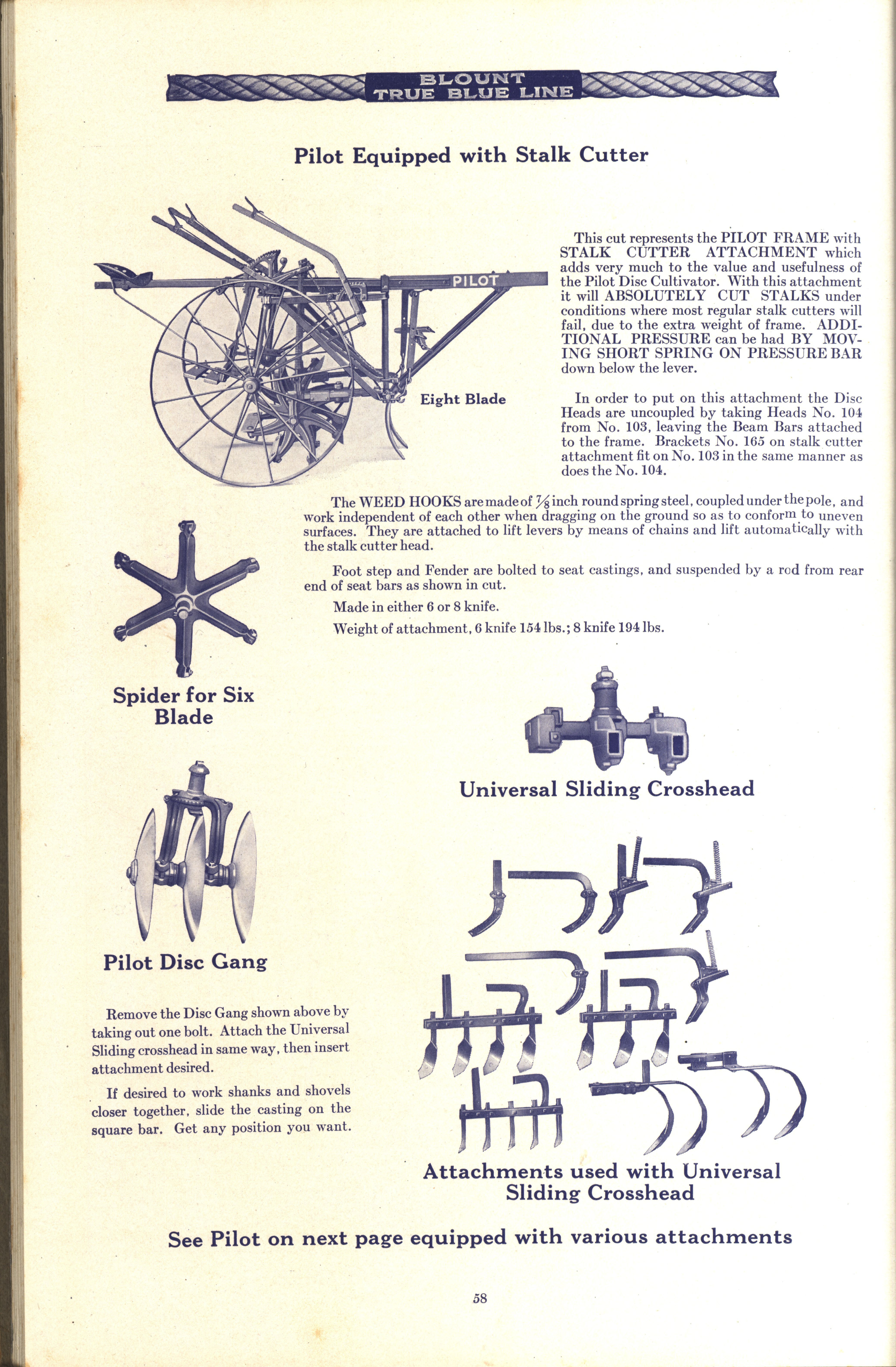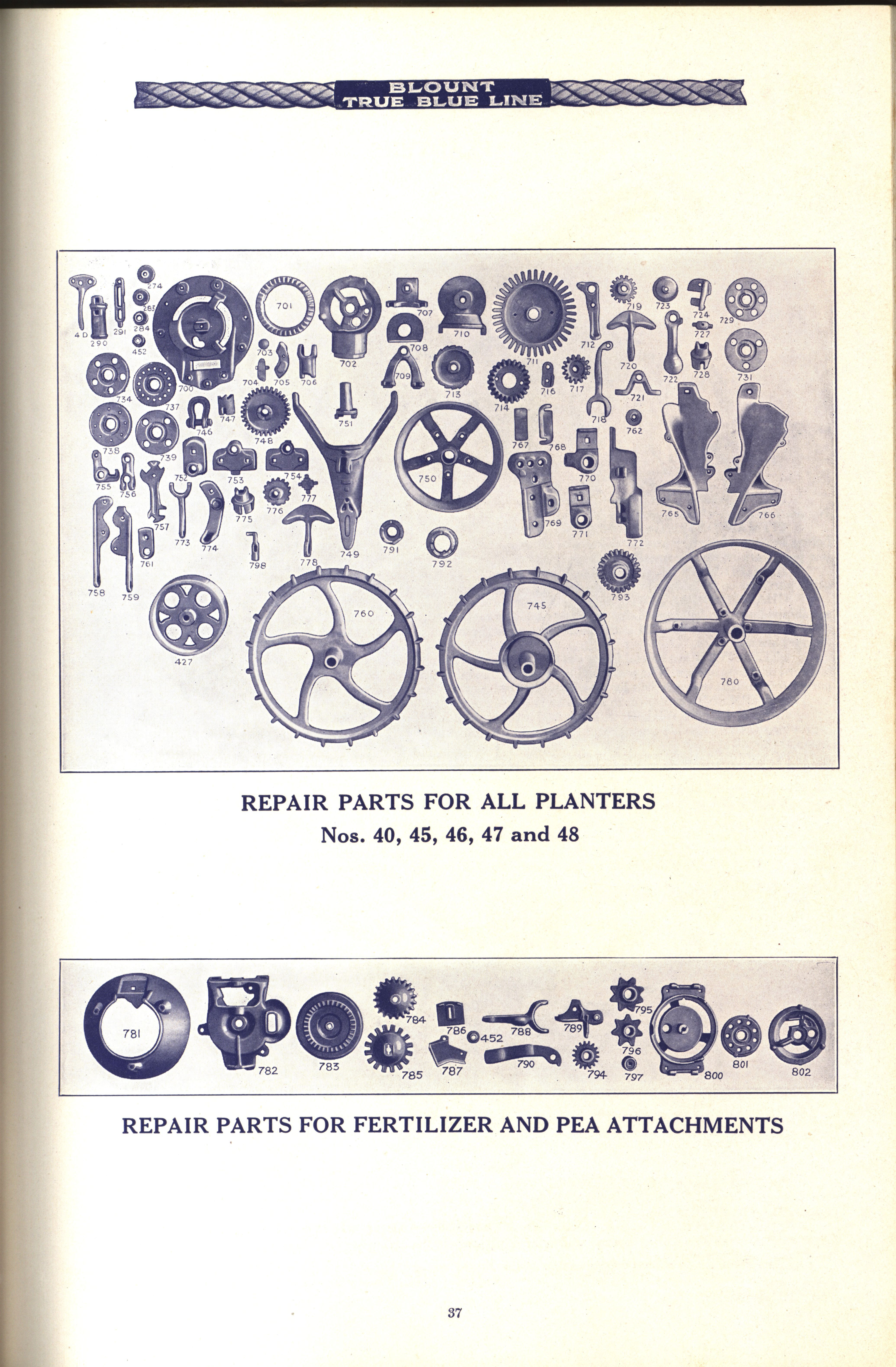 - "Blount True Blue plows, implements and wagons catalog", Agricultural Machinery Literature Collection, Iowa State University Library Digital Collections