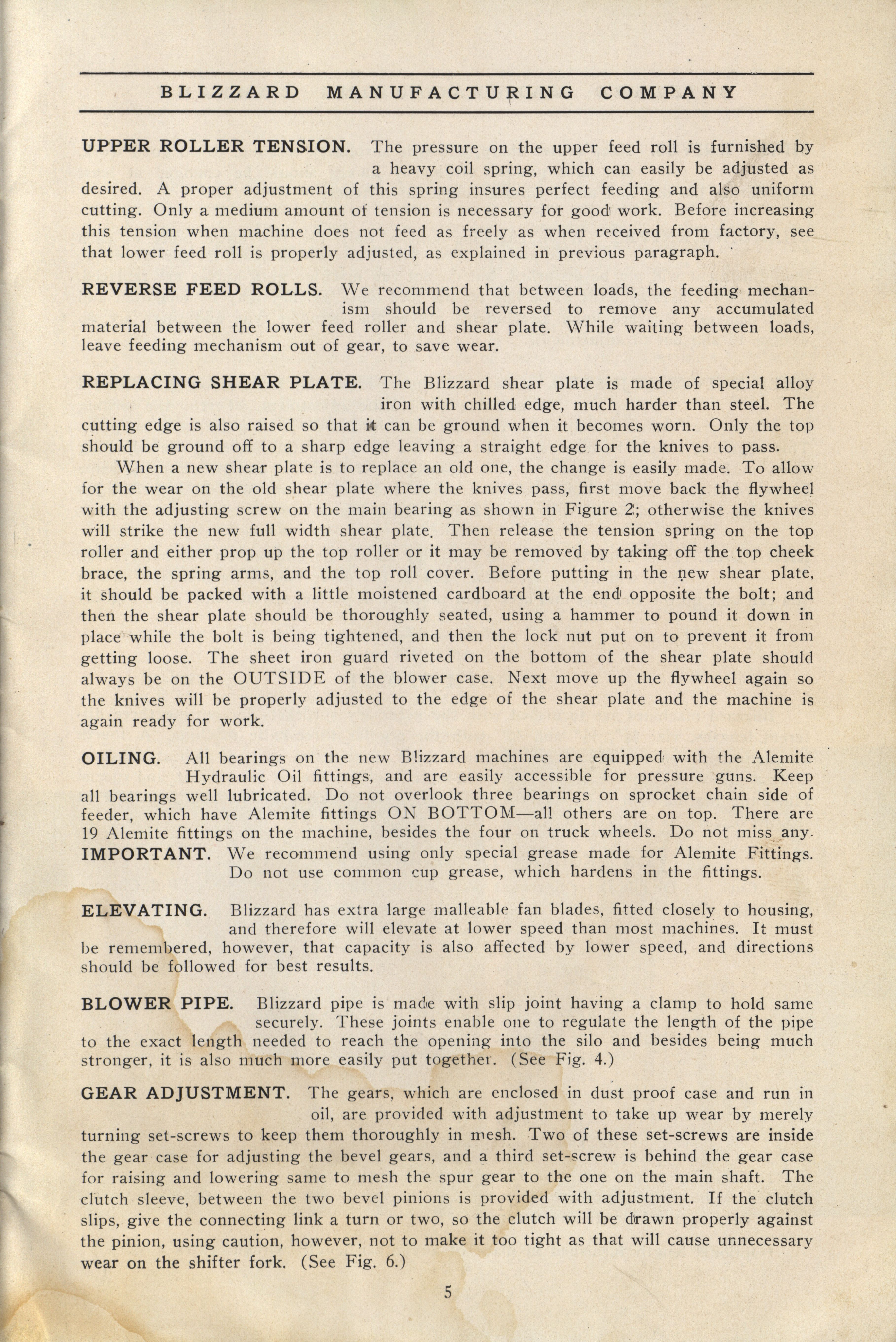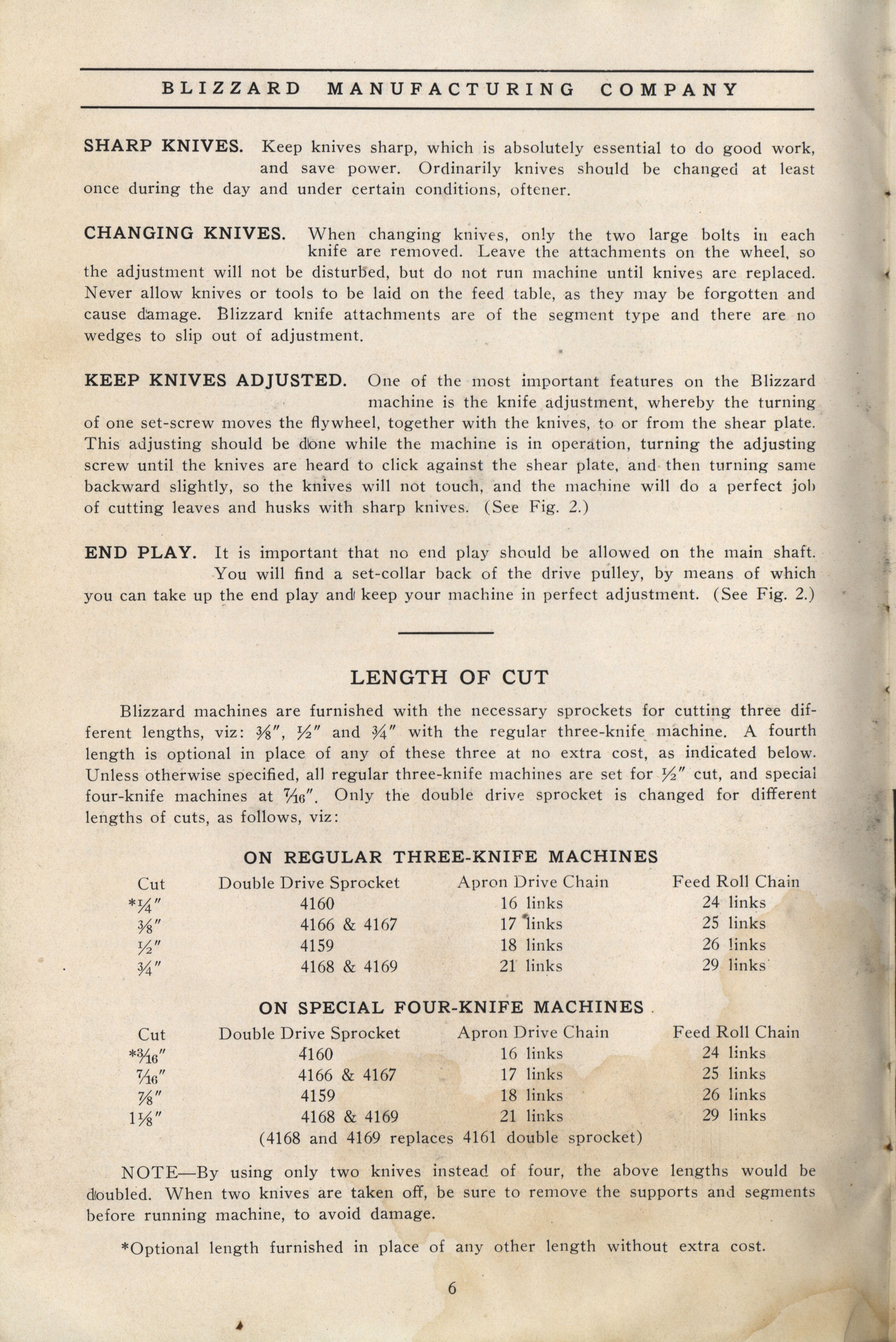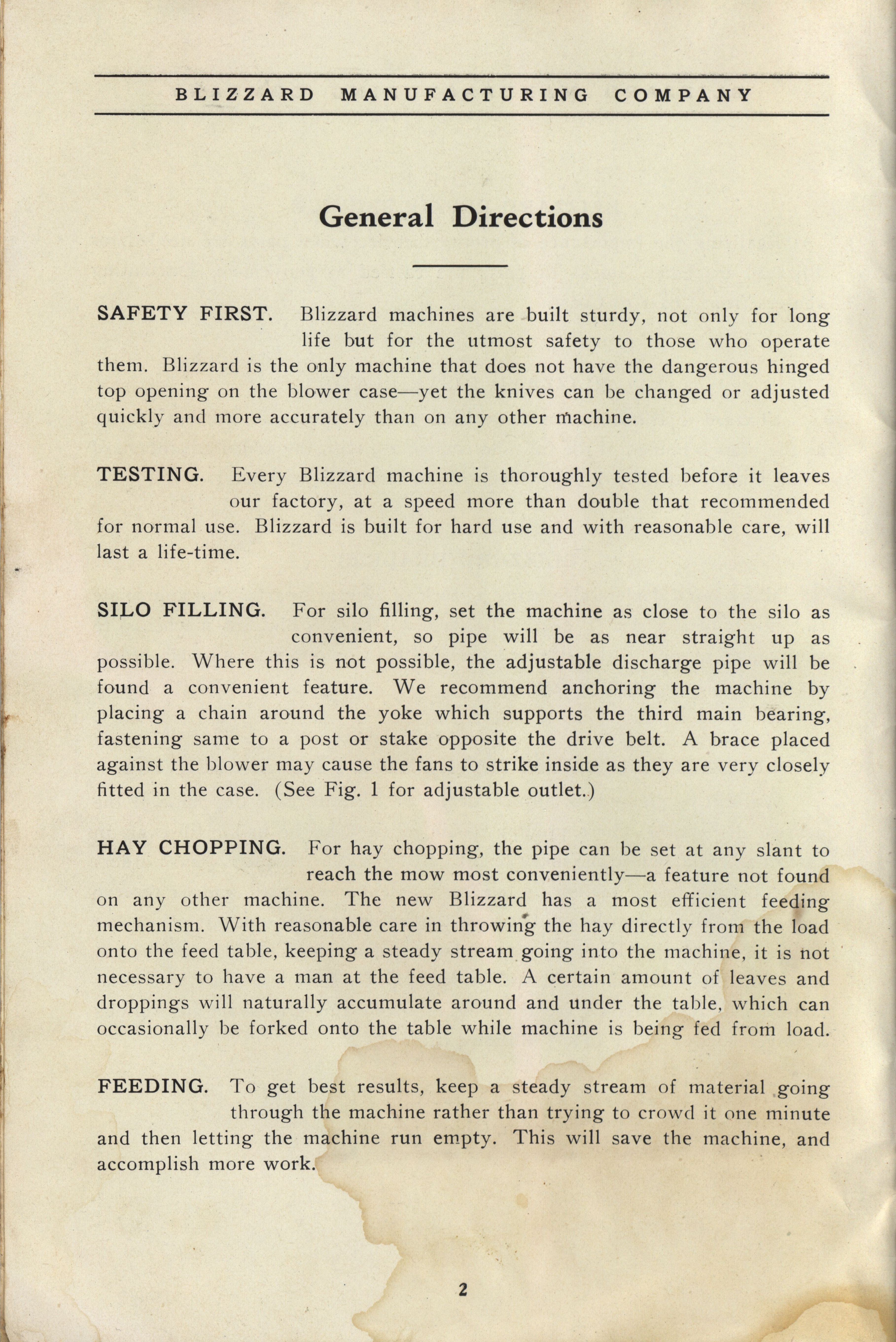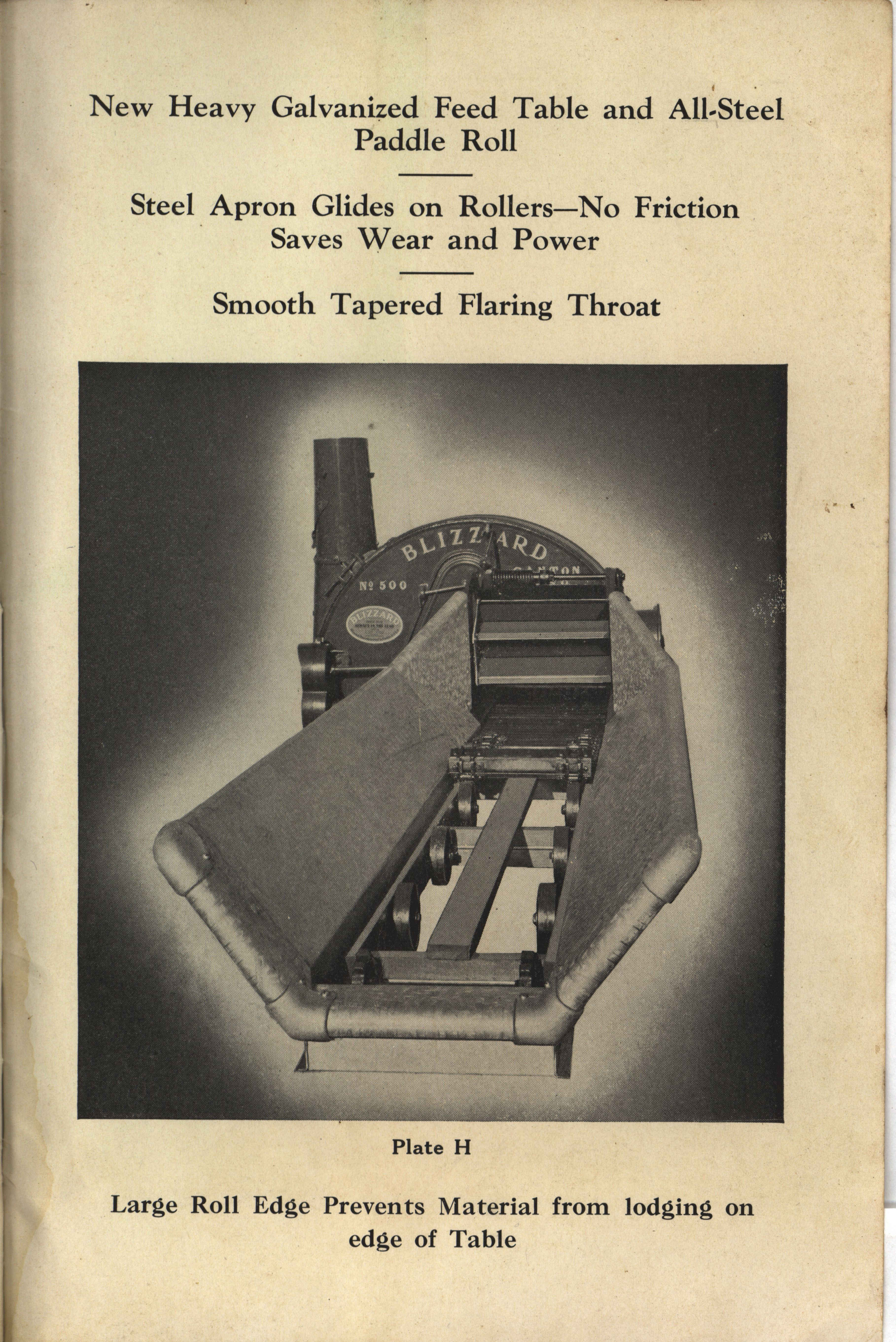 - "Illustrated repair parts price list and book of instructions for setting up and operating "Blizzard" ensilage cutters and hay choppers", Agricultural Machinery Literature Collection, Iowa State University Library Digital Collections
