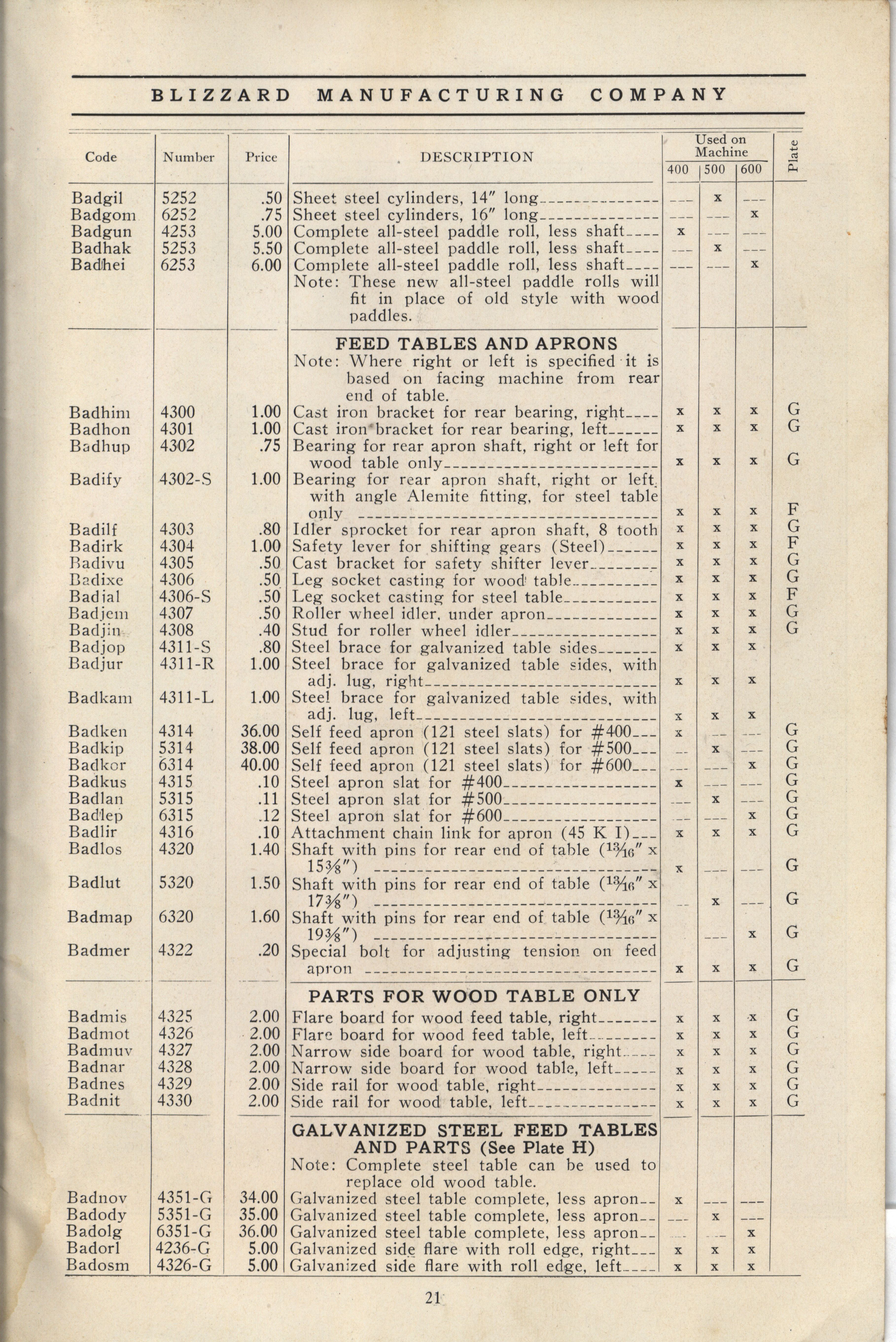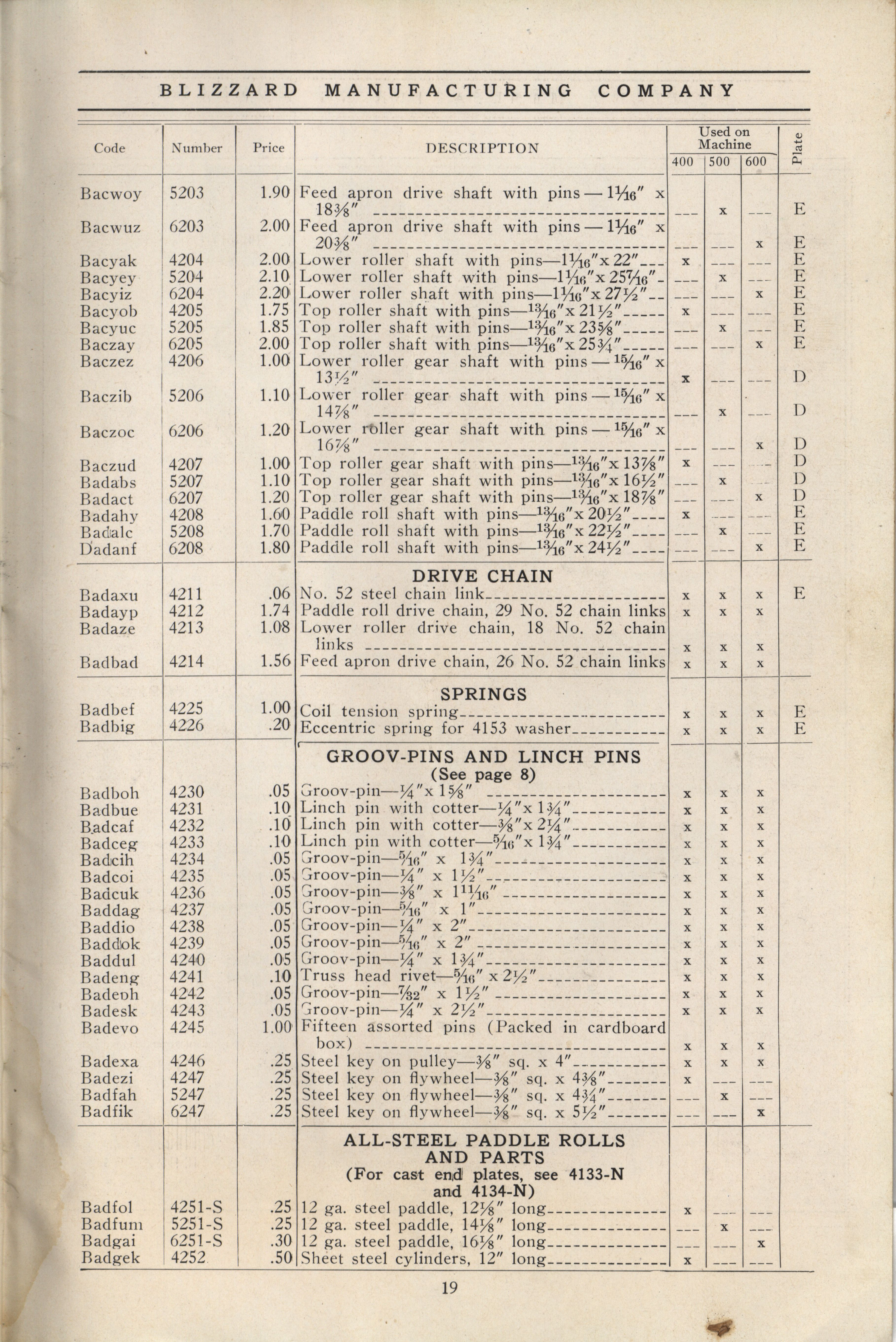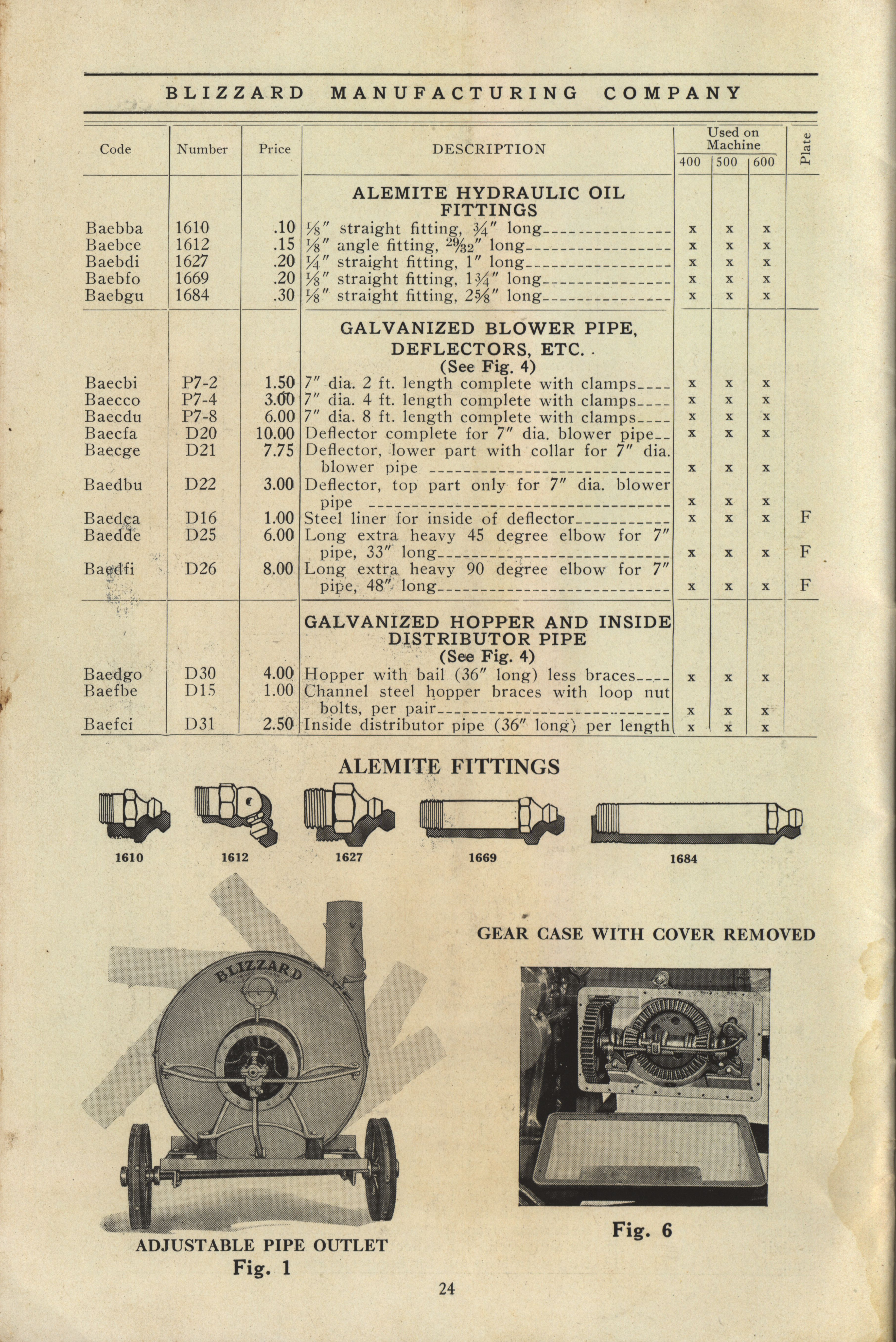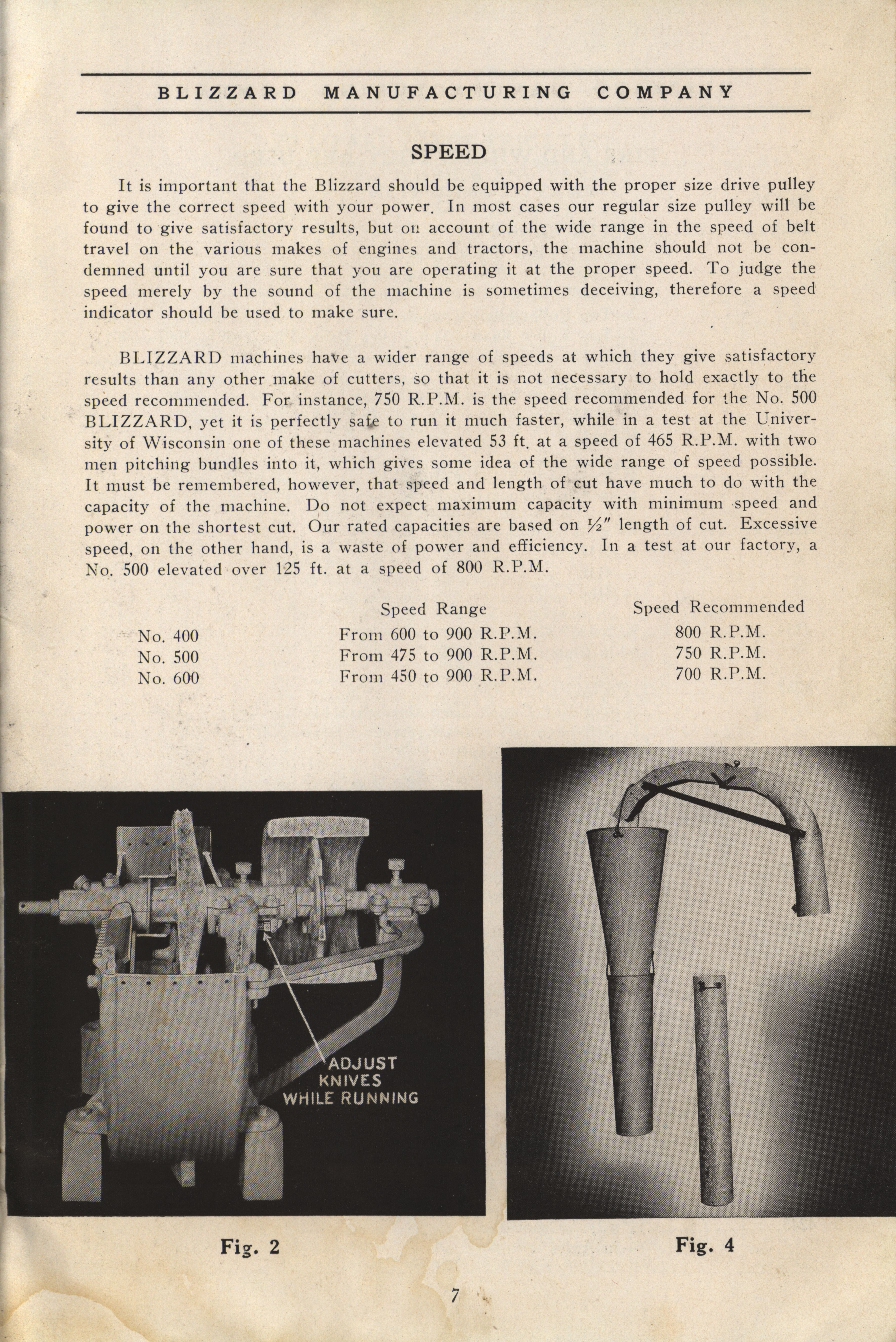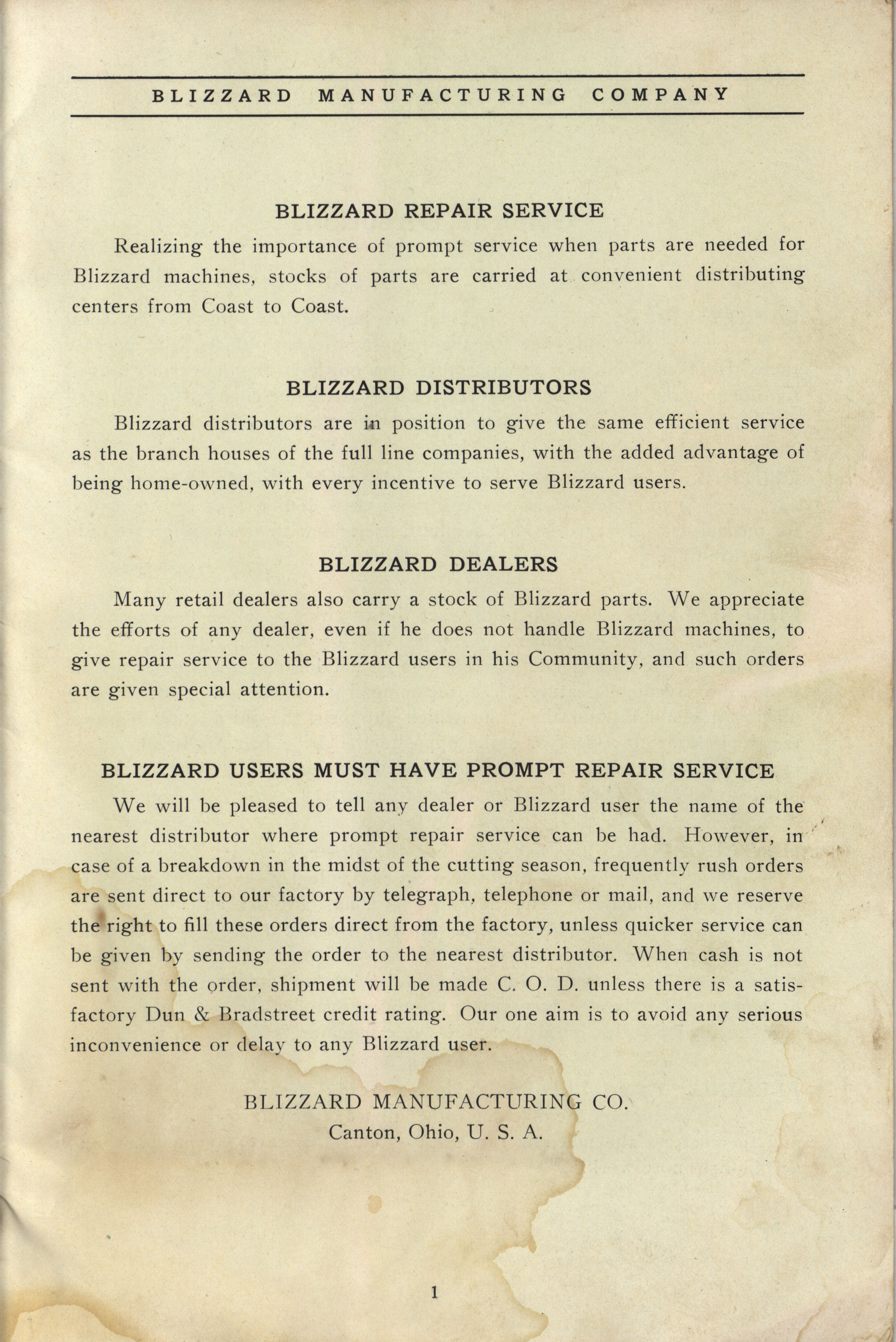 - "Illustrated repair parts price list and book of instructions for setting up and operating "Blizzard" ensilage cutters and hay choppers", Agricultural Machinery Literature Collection, Iowa State University Library Digital Collections