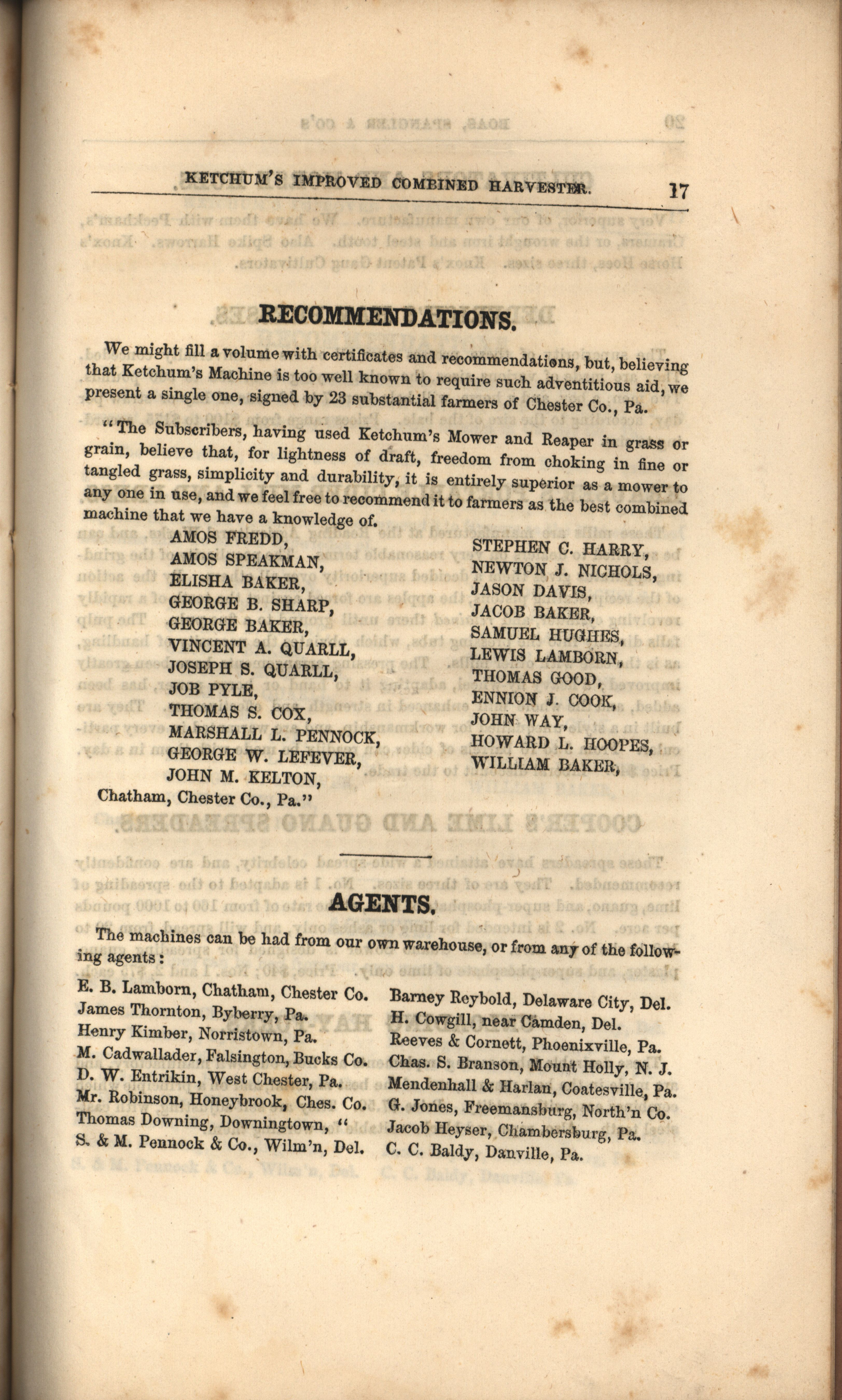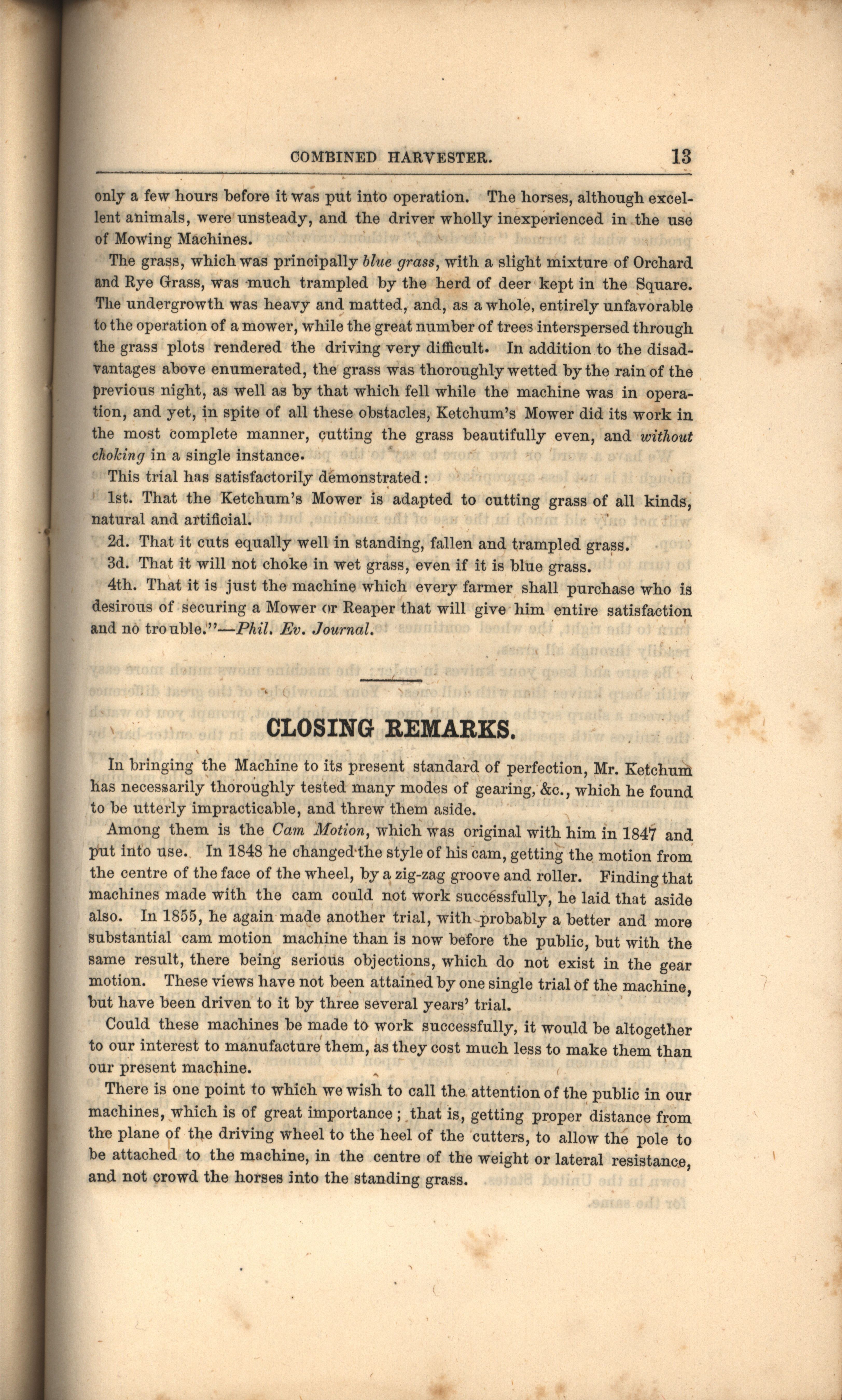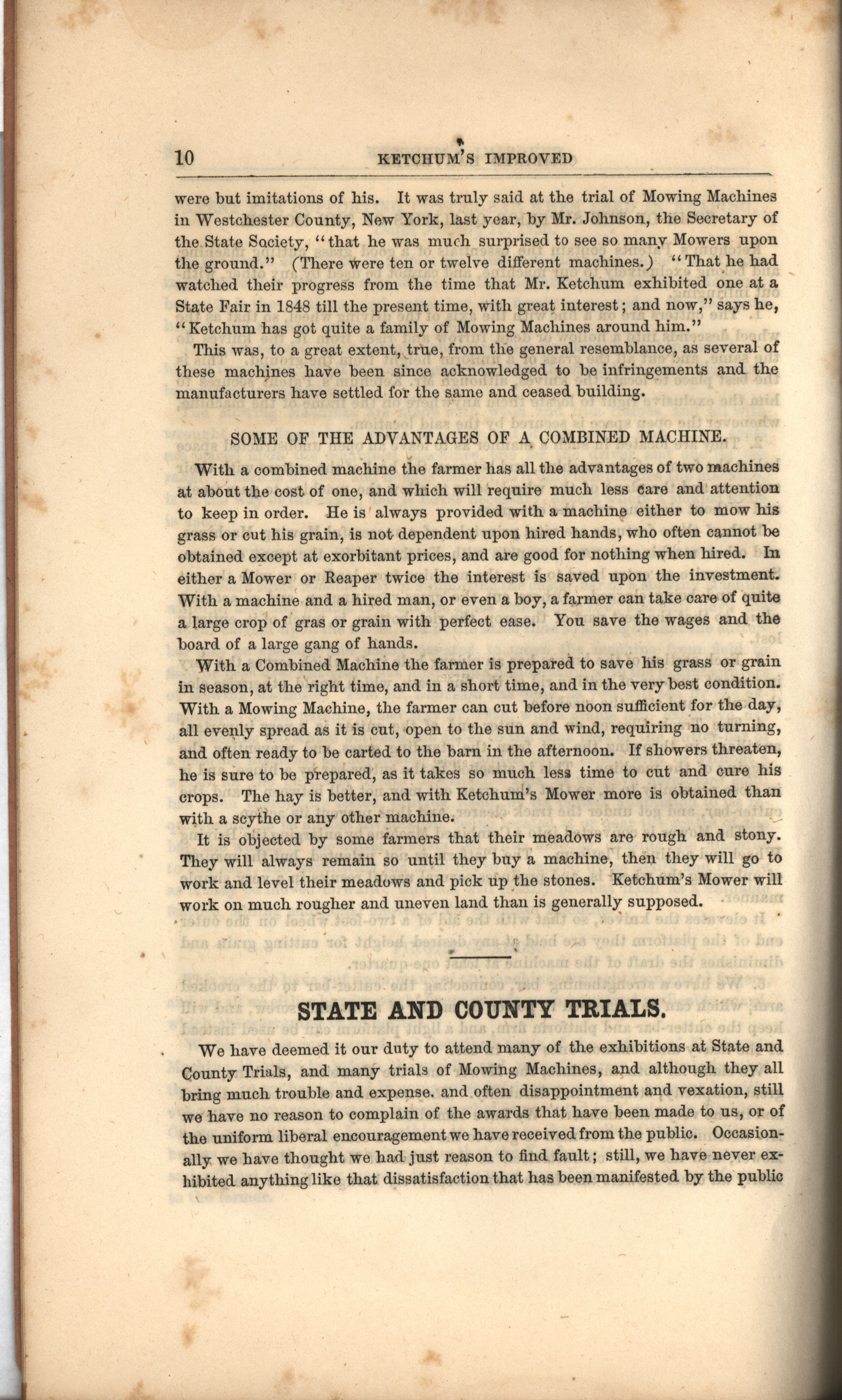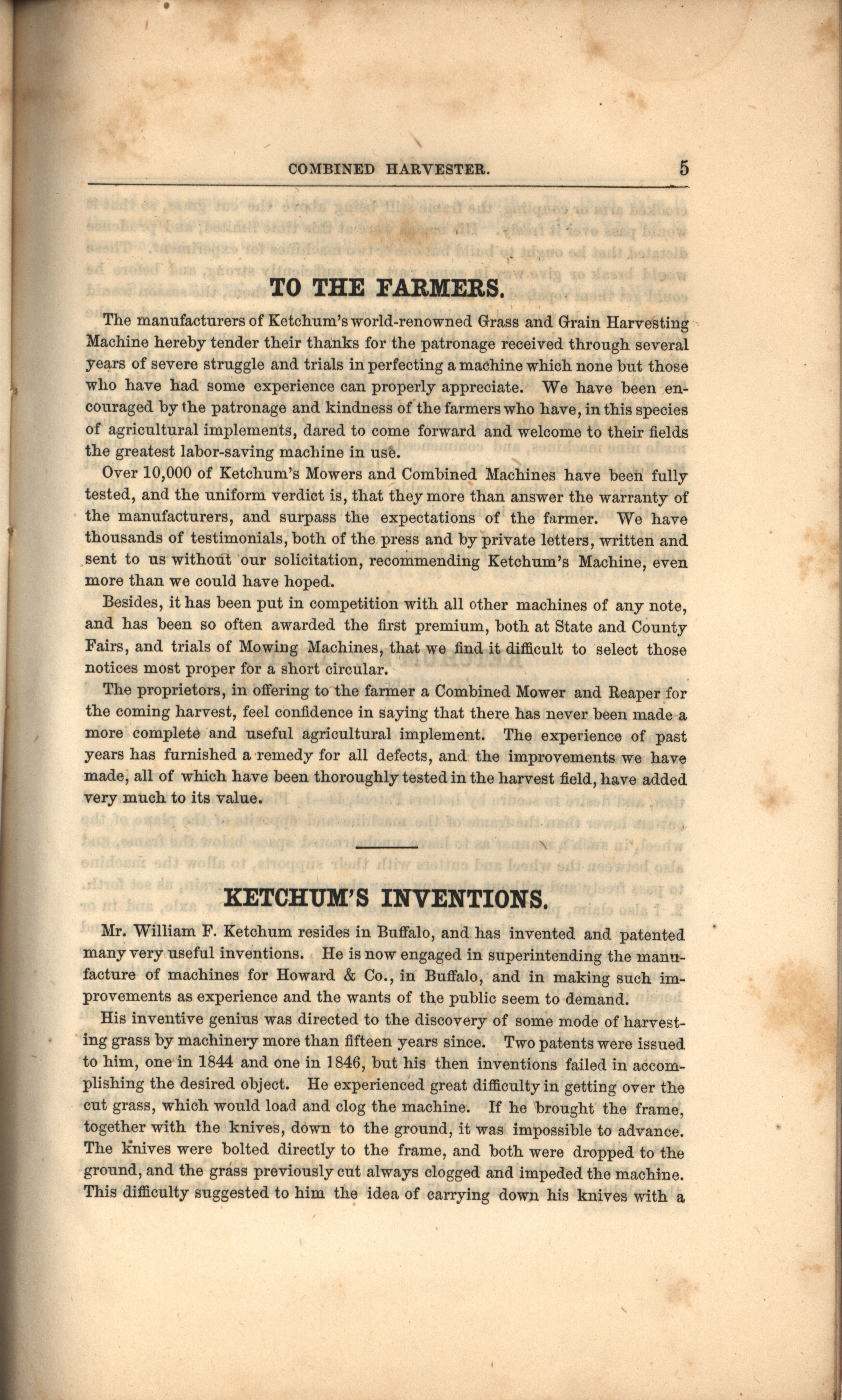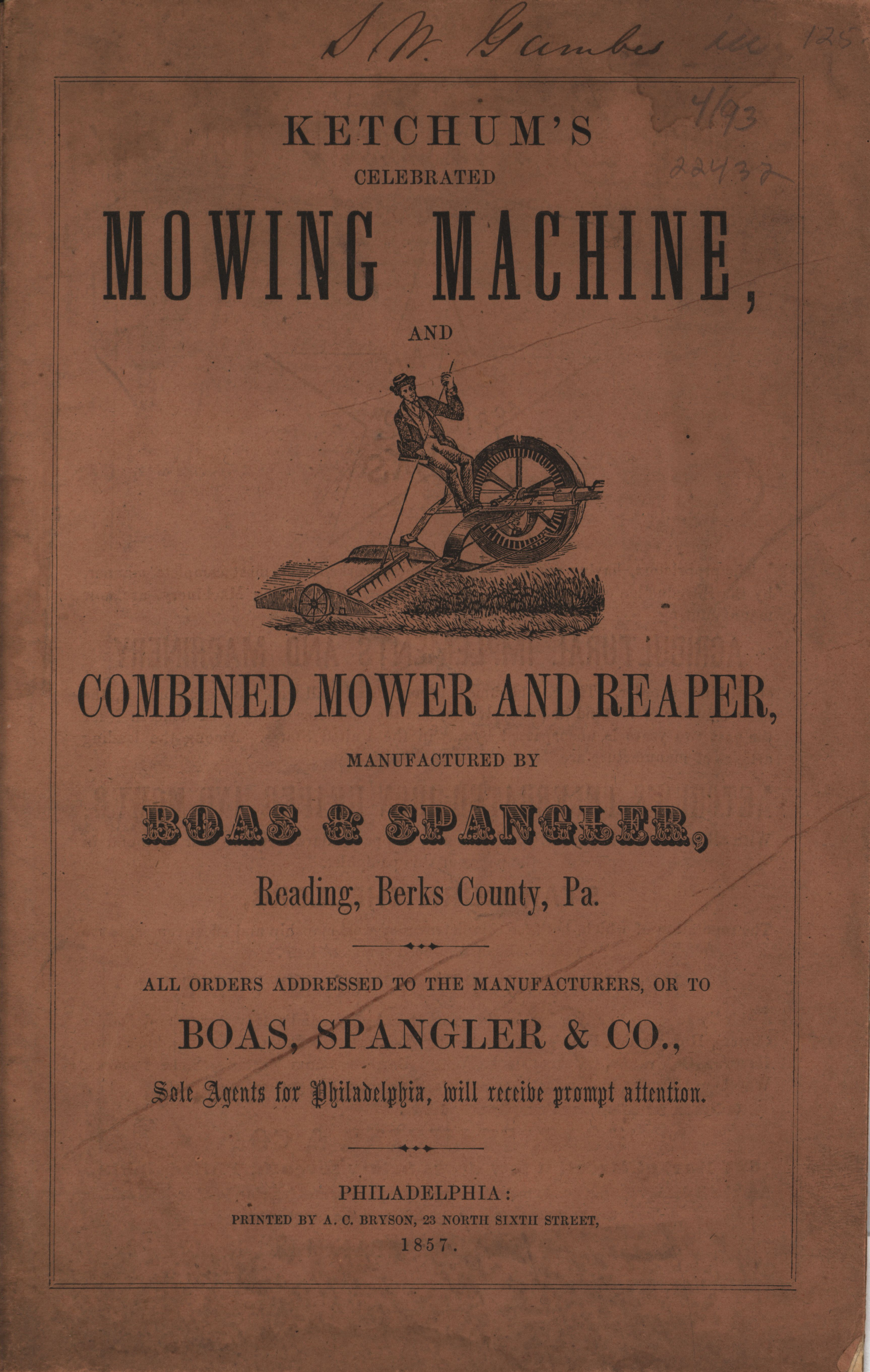 - Ketchum's Celebrated Mowing Machine, and Combined Mower and Reaper Manufactured by Boas & Spangler catalog