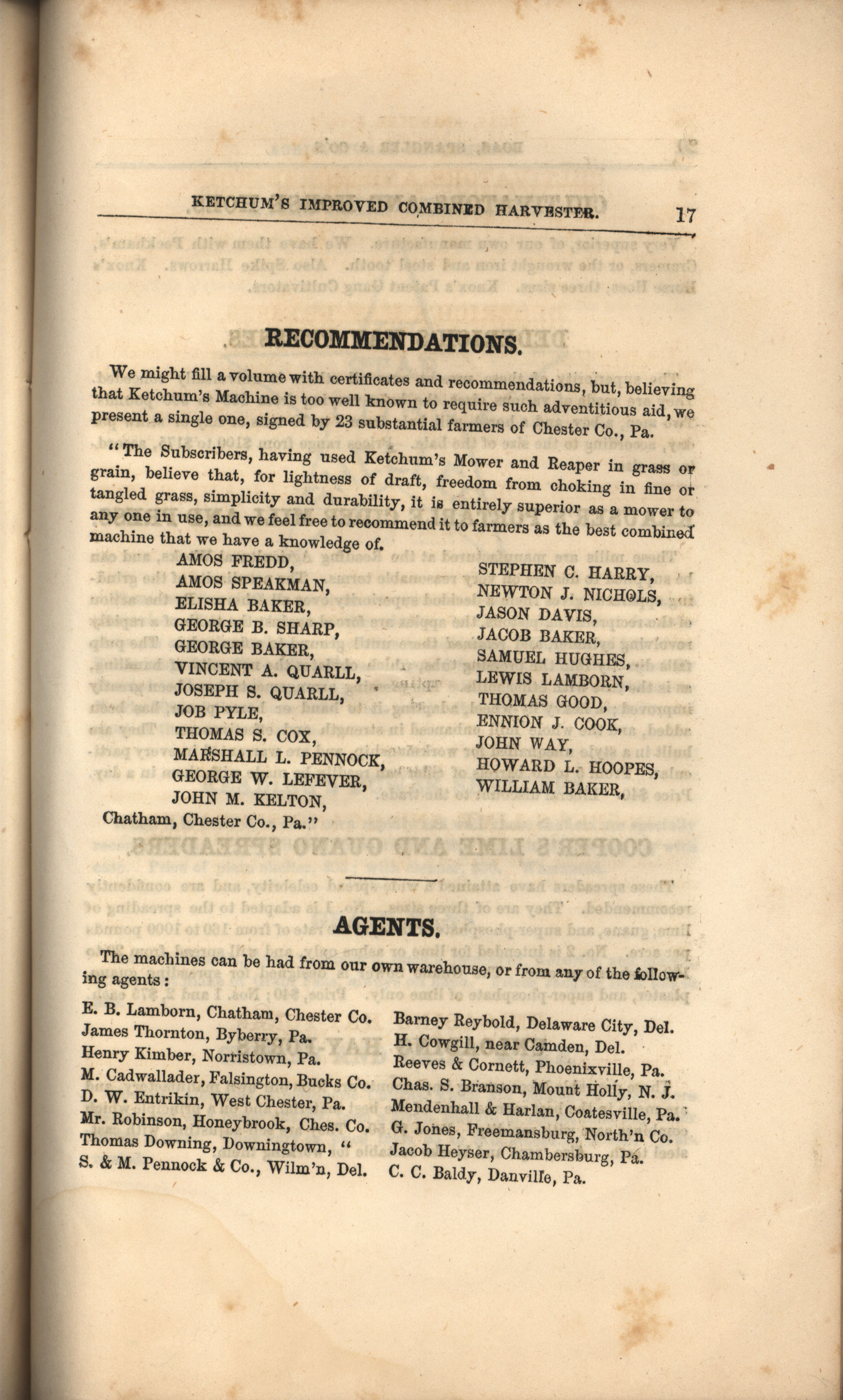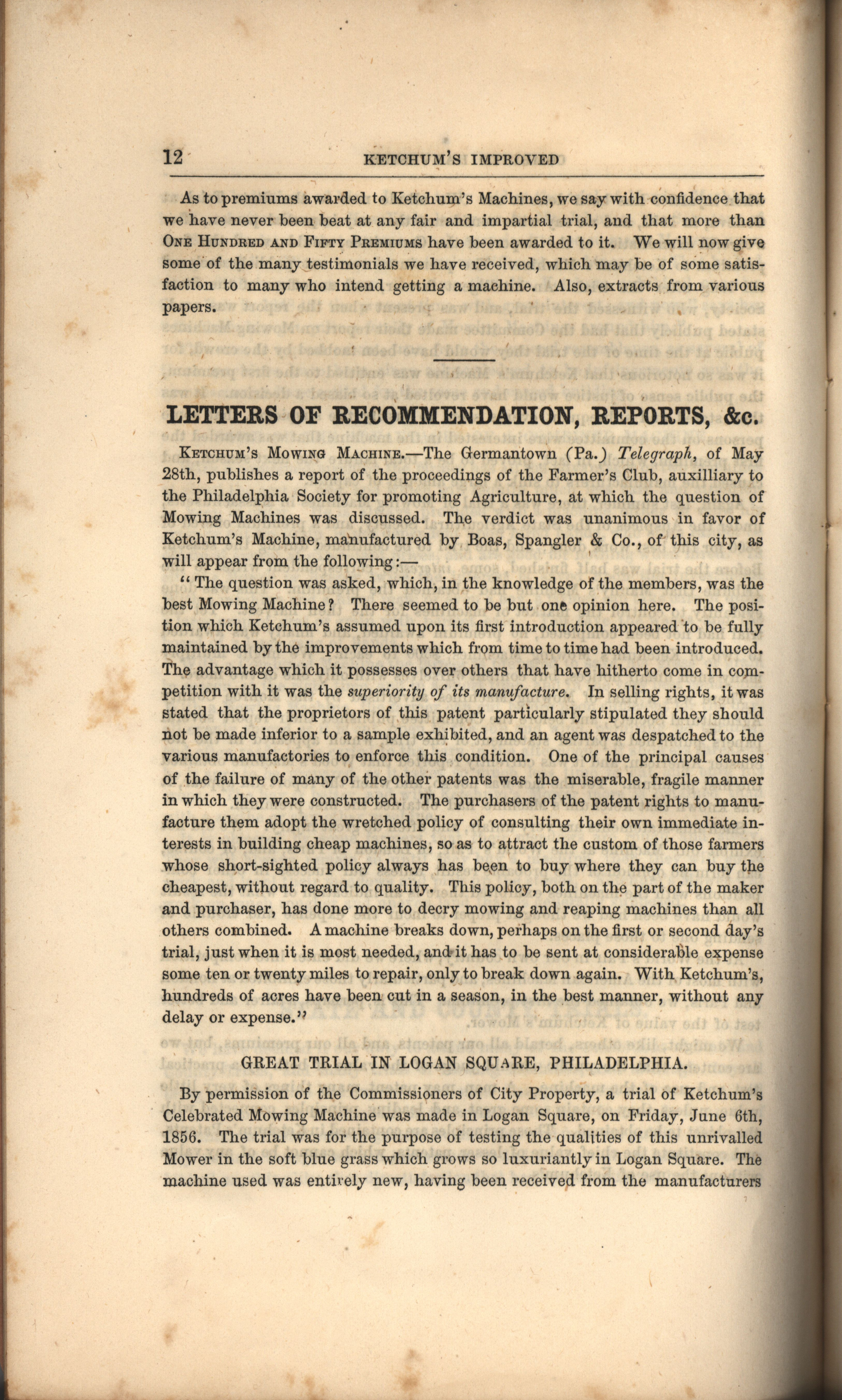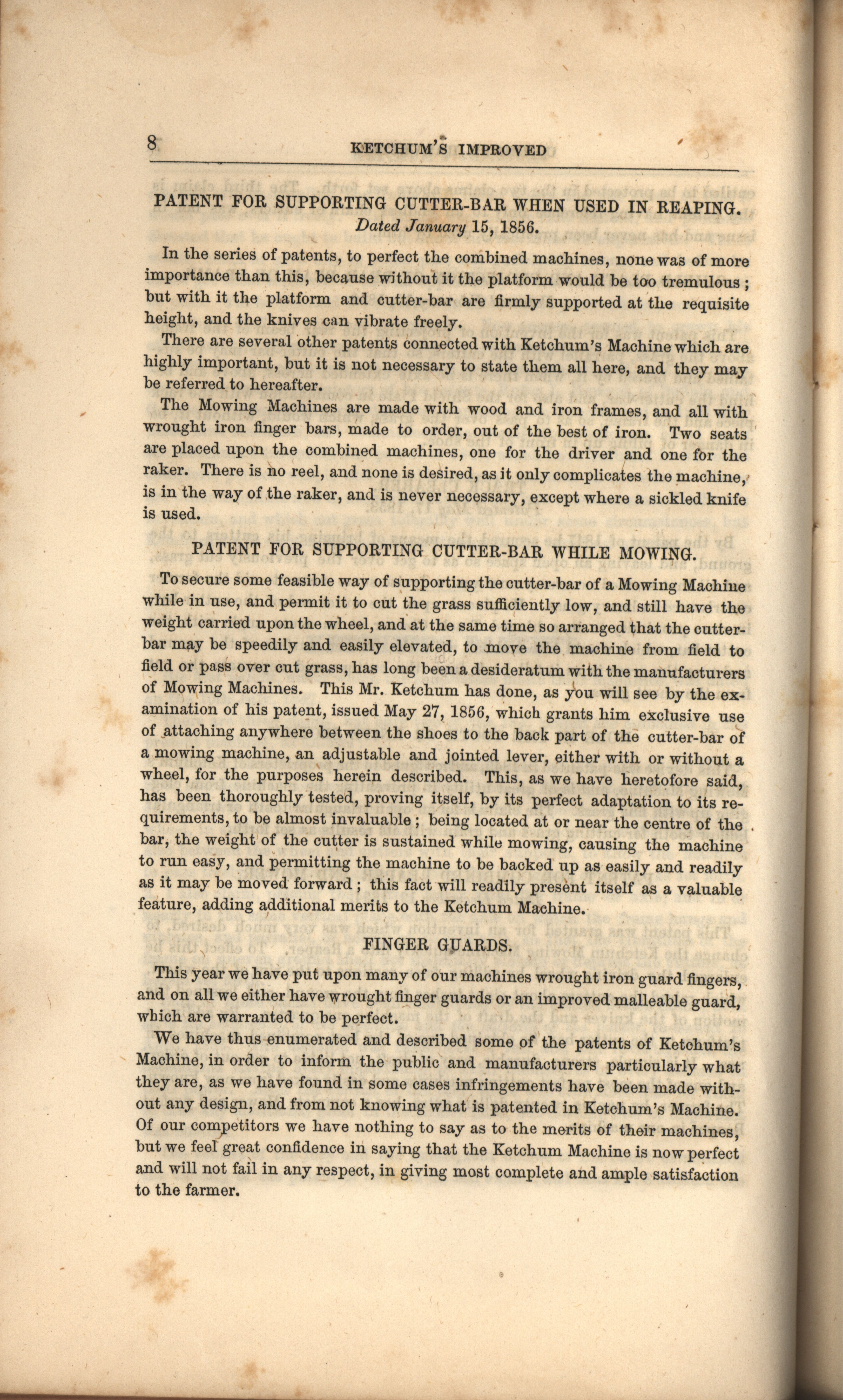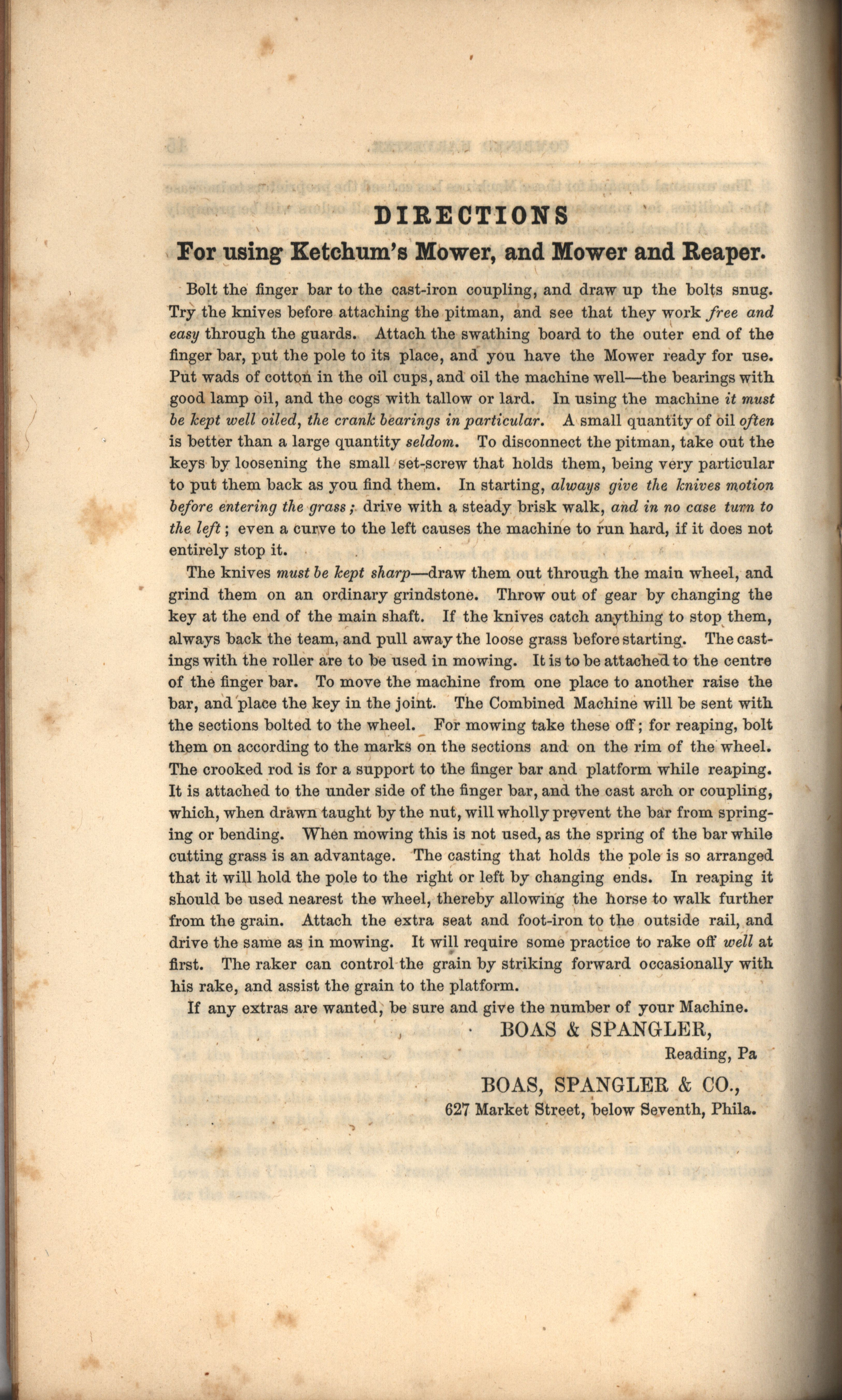 - "Ketchum's Celebrated Mowing Machine, and Combined Mower and Reaper Manufactured by Boas & Spangler catalog", Agricultural Machinery Literature Collection, Iowa State University Library Digital Collections