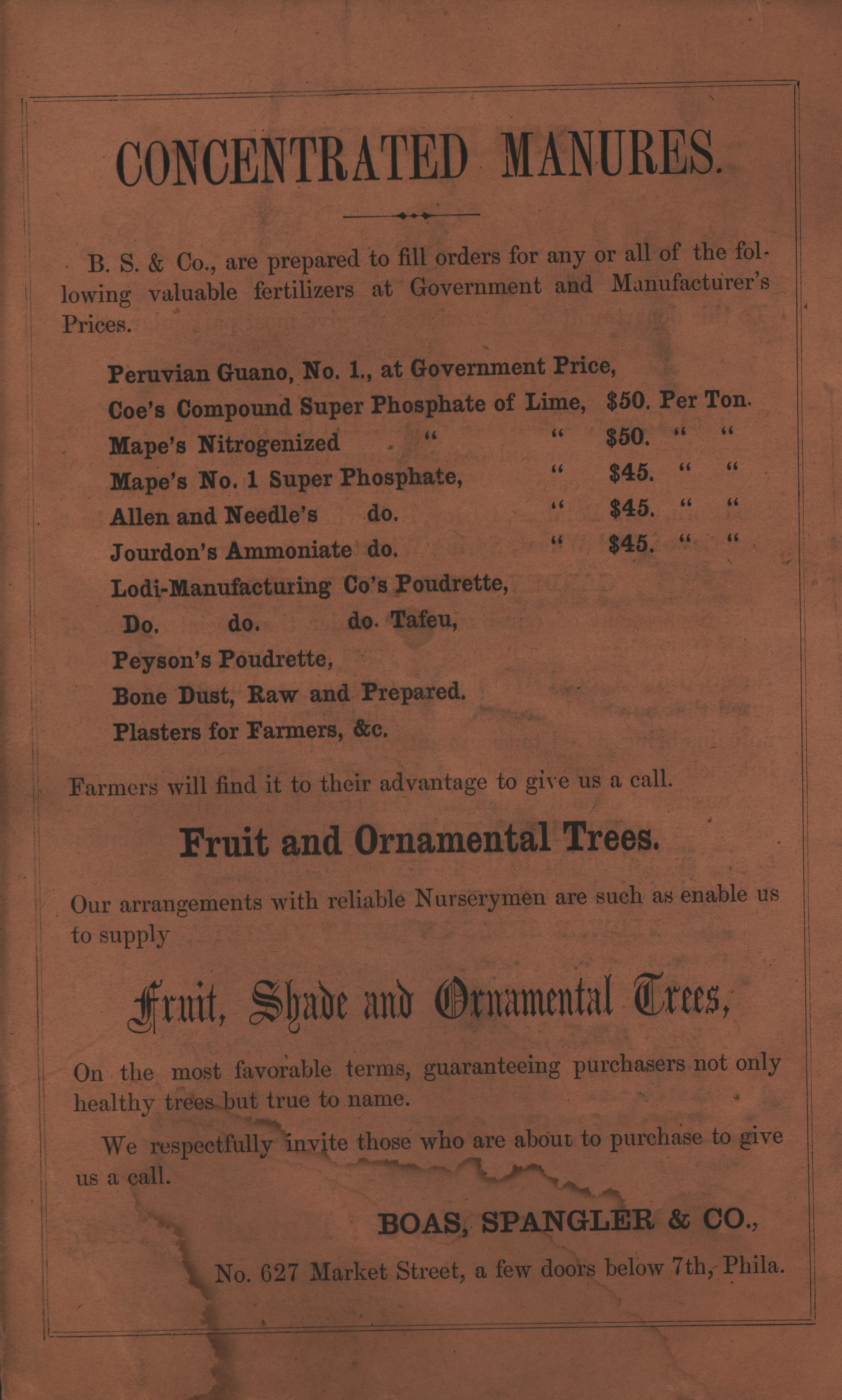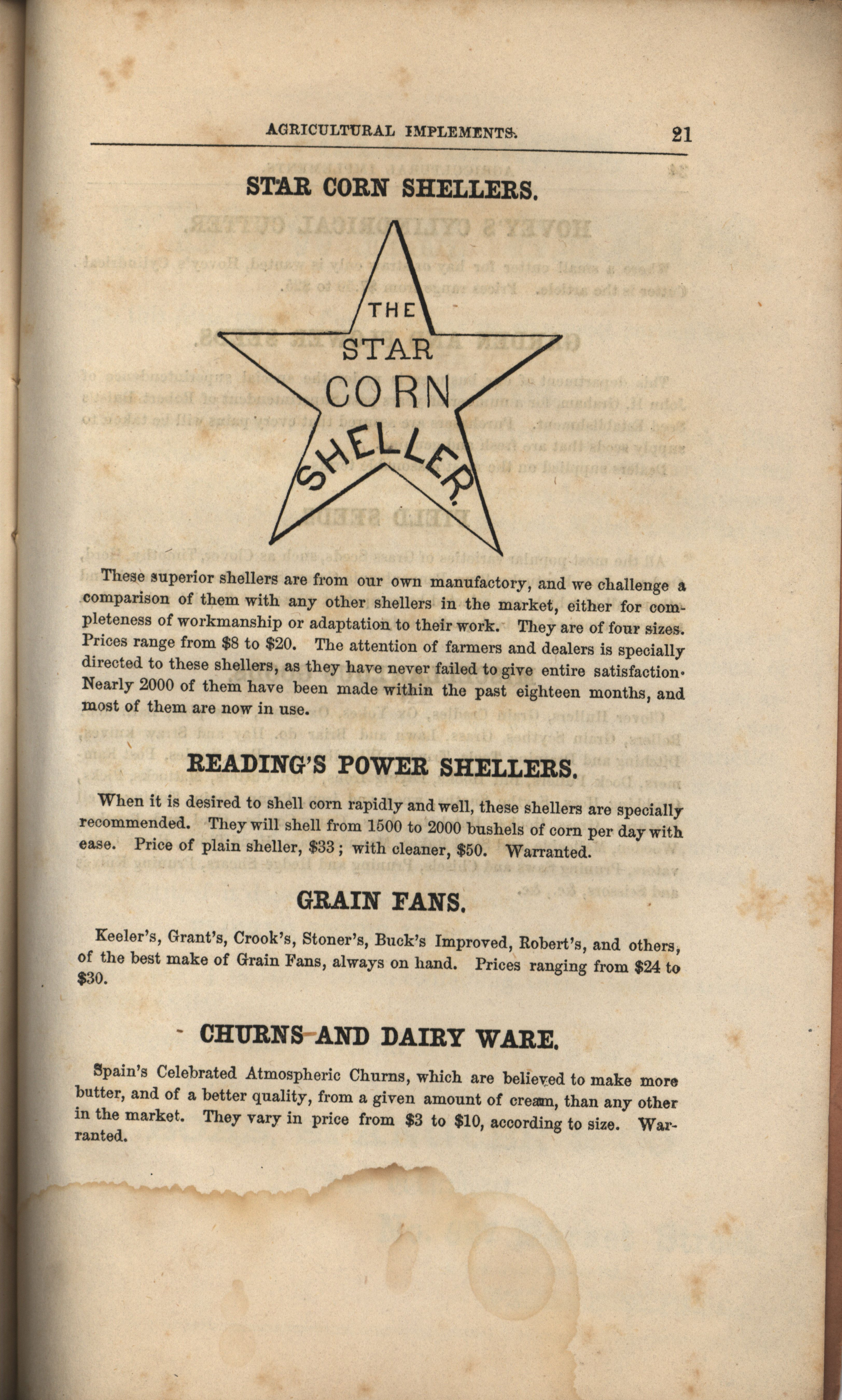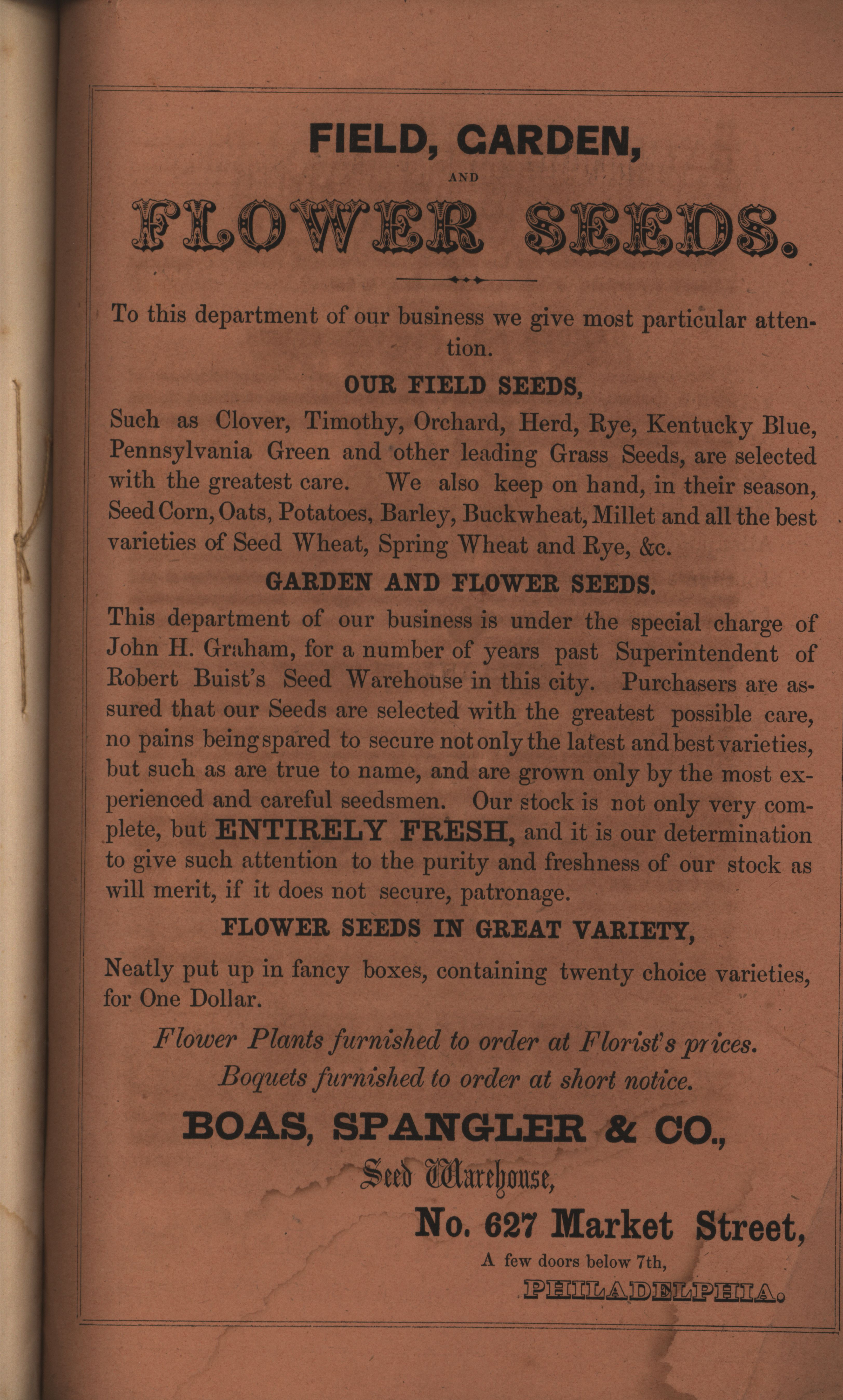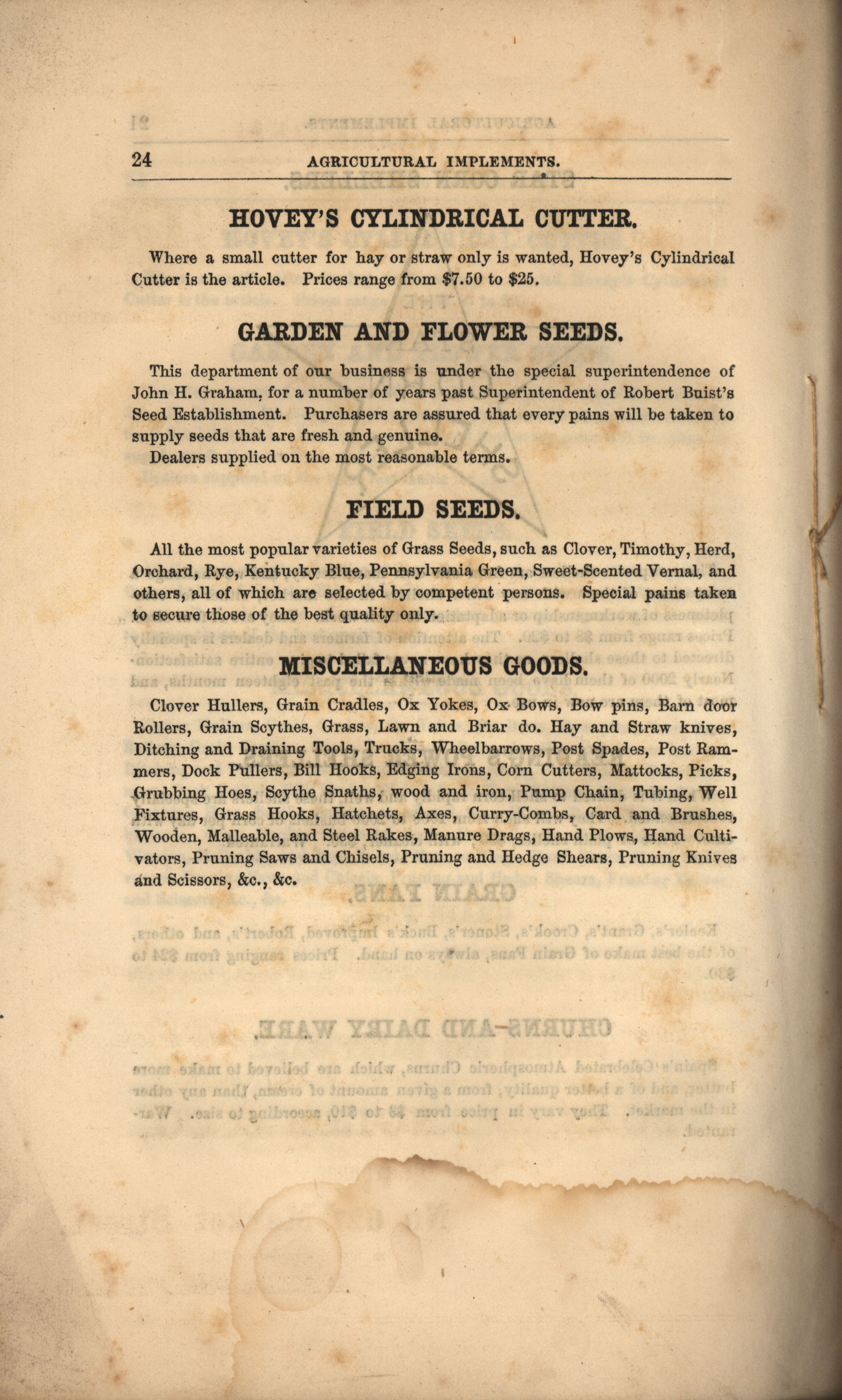- Illustrated catalog describing mowing machines and related products offered by the Boss, Spangler and Company in 1857.