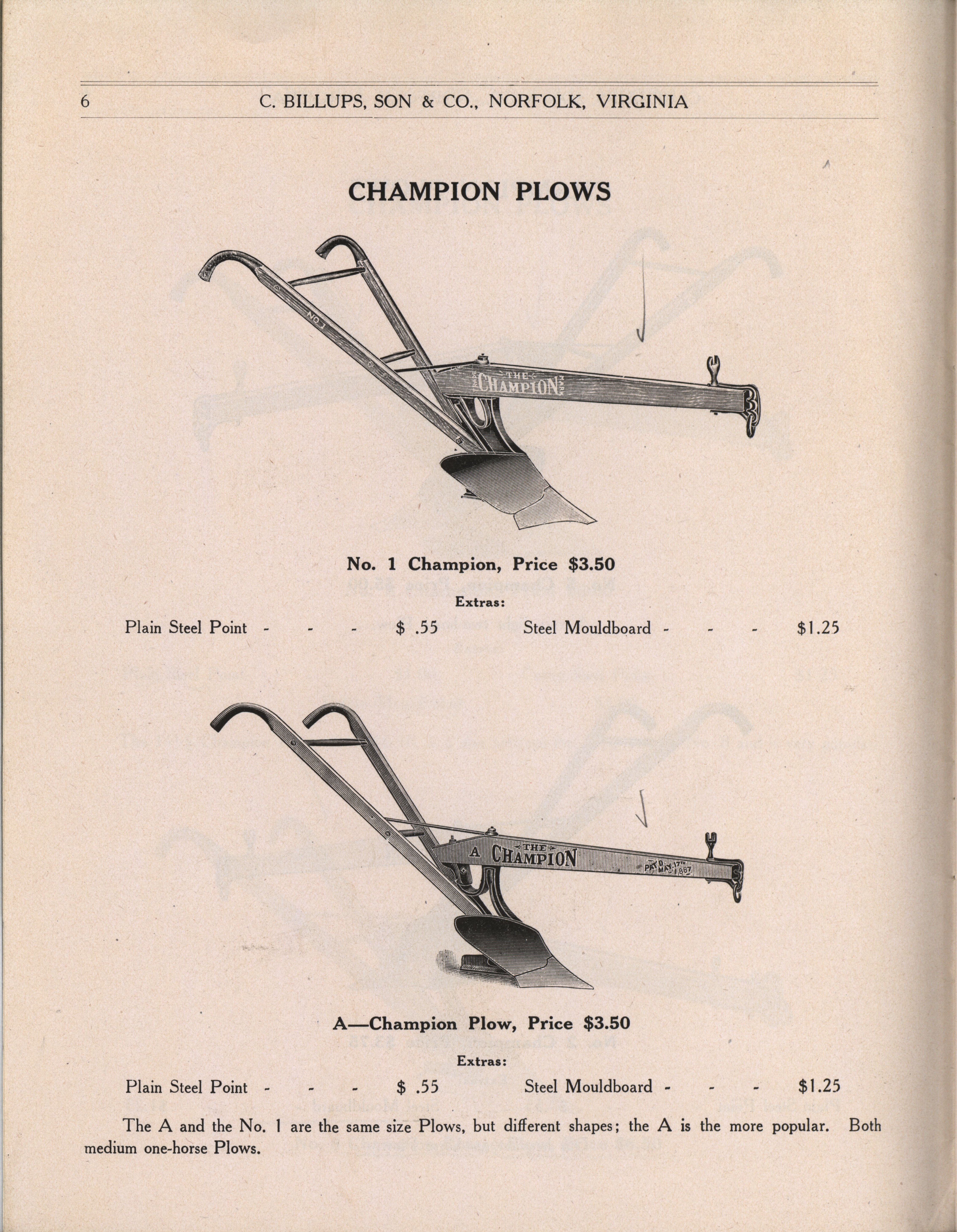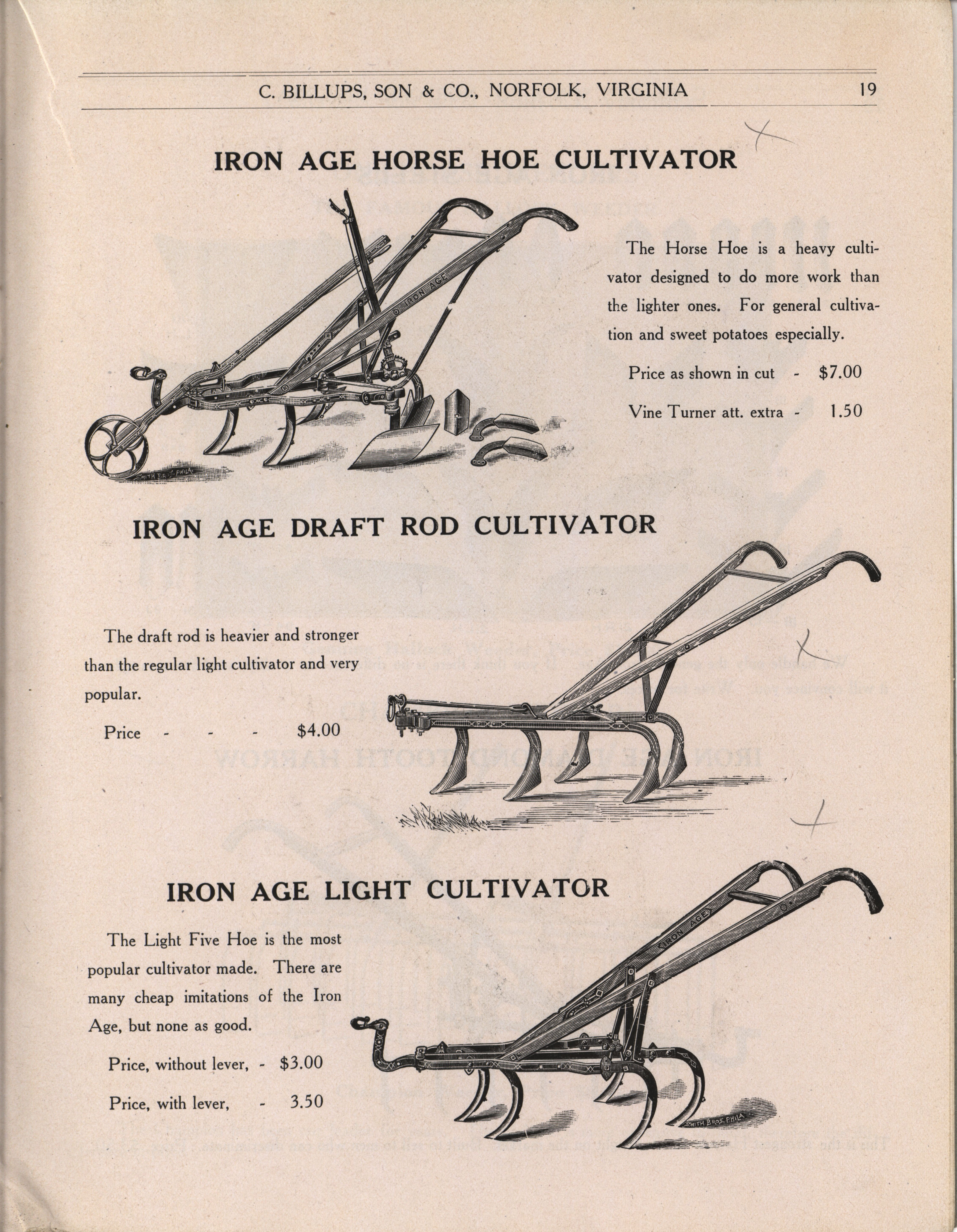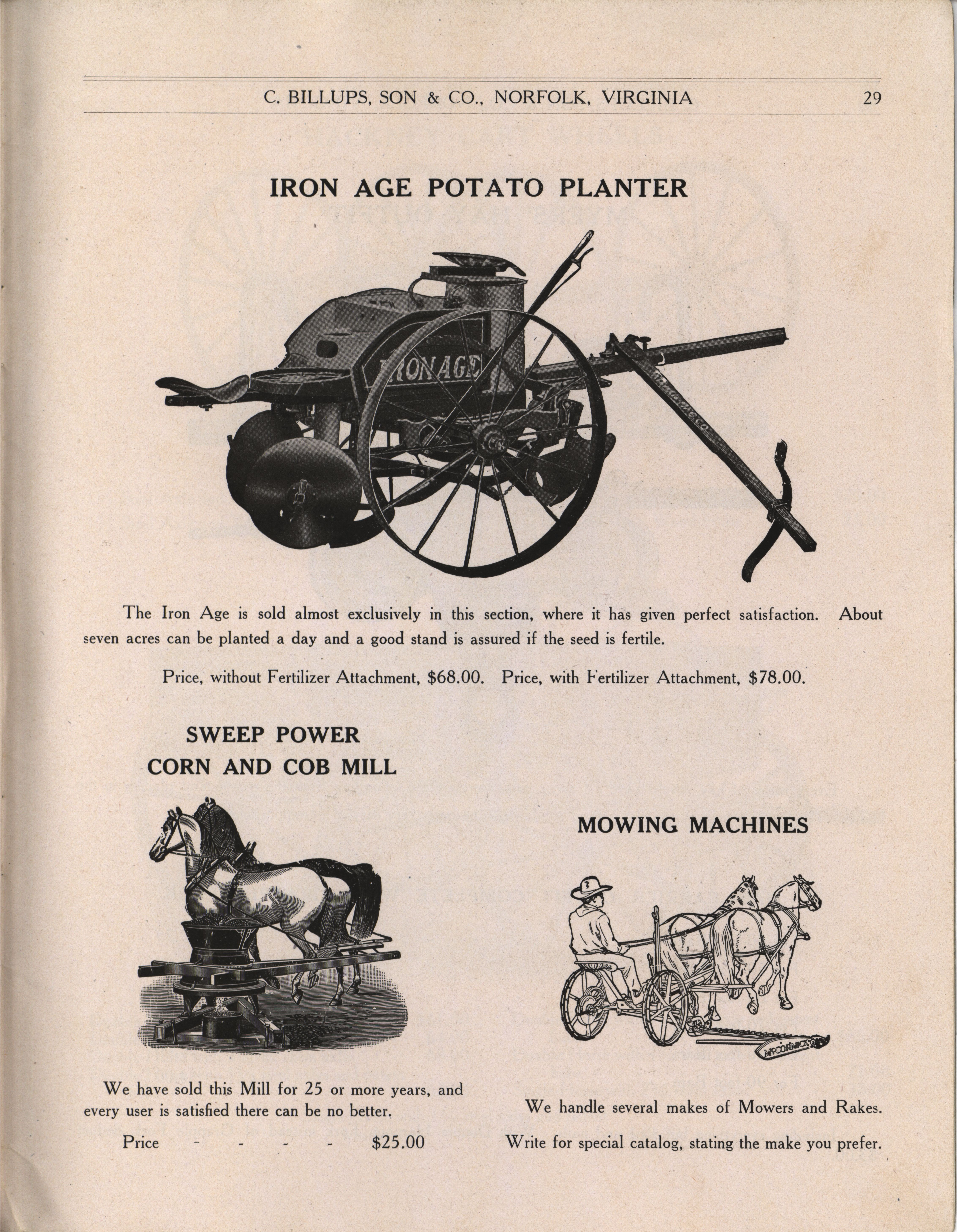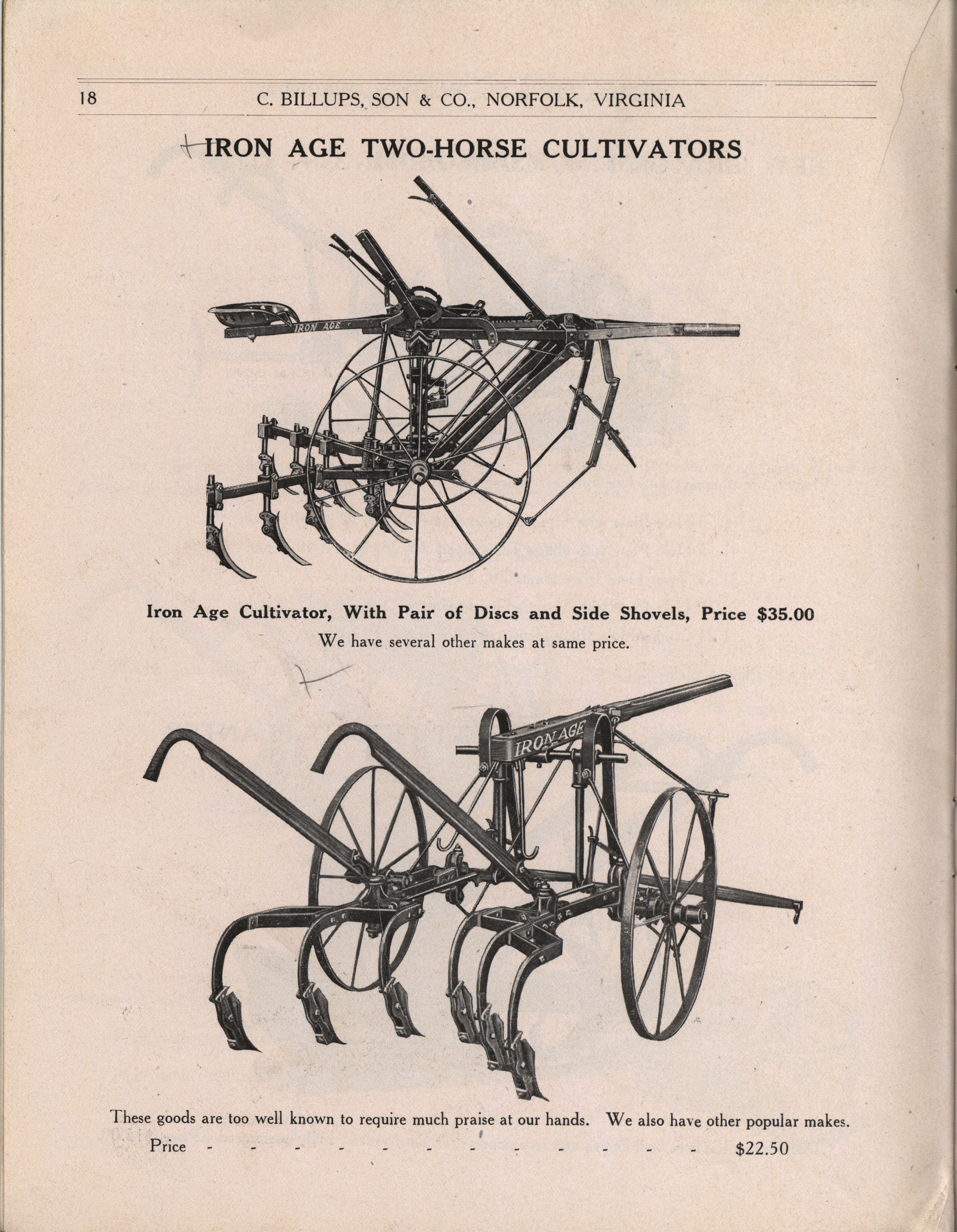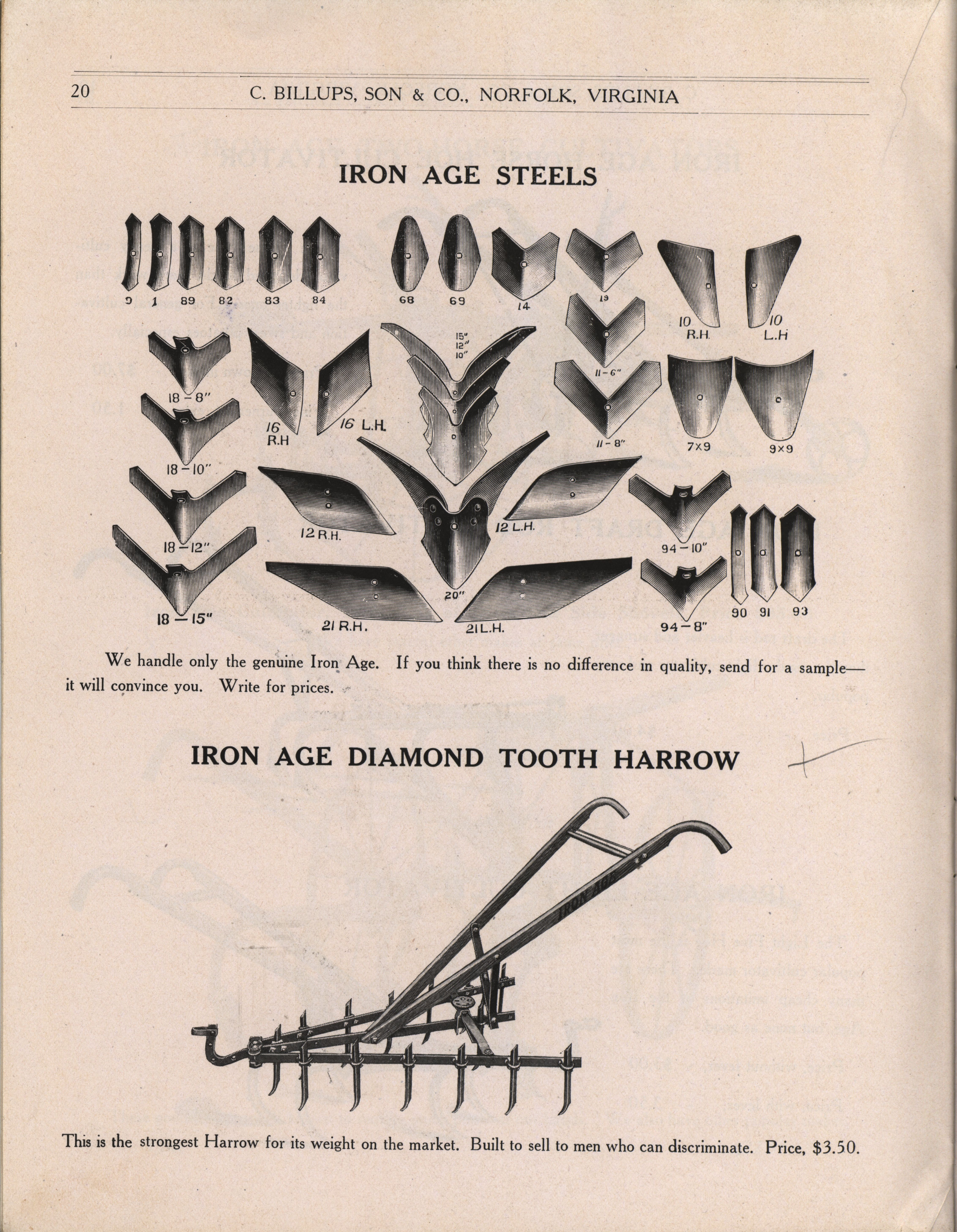 - "Manufactures of plows jobbers of farming implements & machinery C. Billups, Son & Co. catalog", Agricultural Machinery Literature Collection, Iowa State University Library Digital Collections