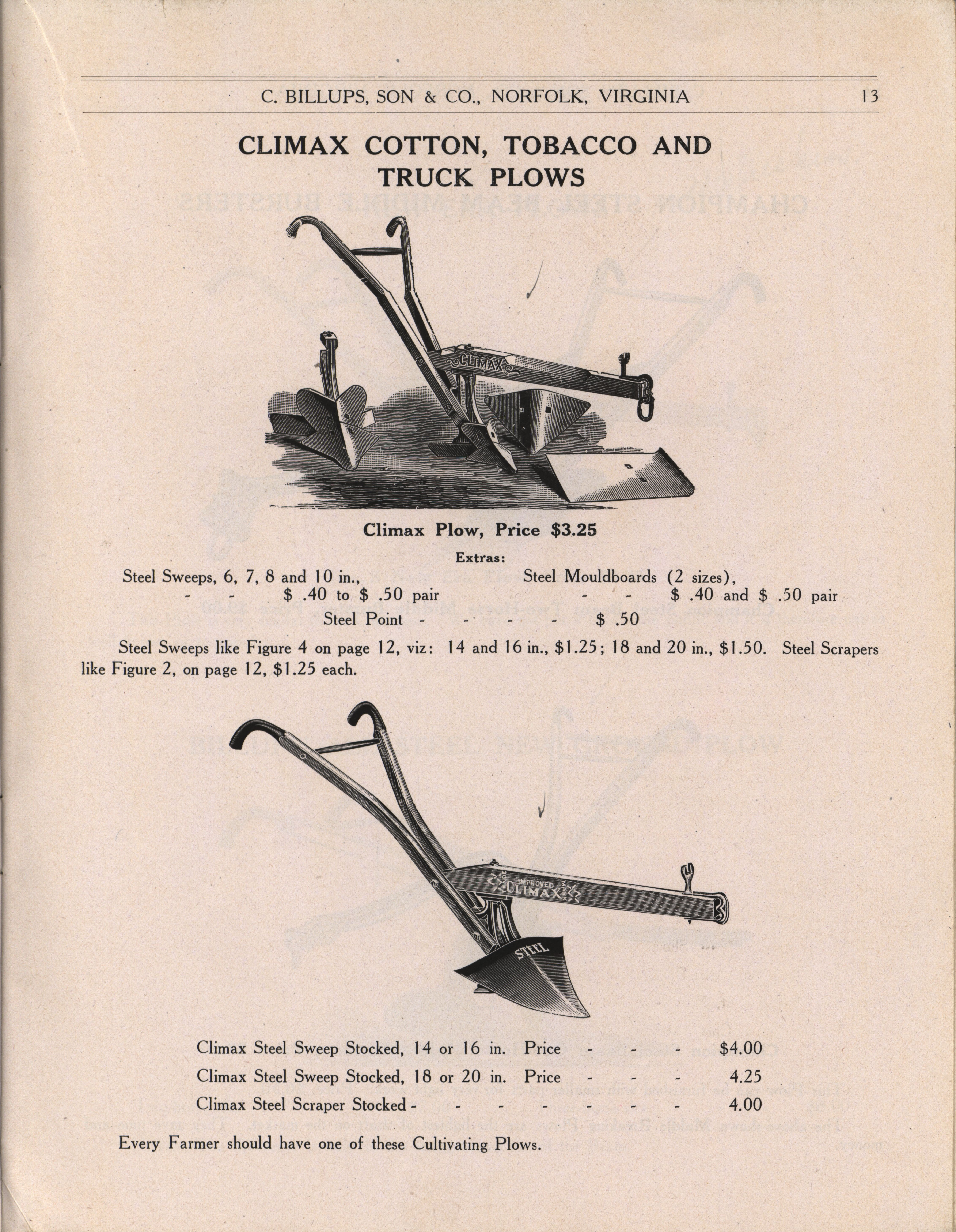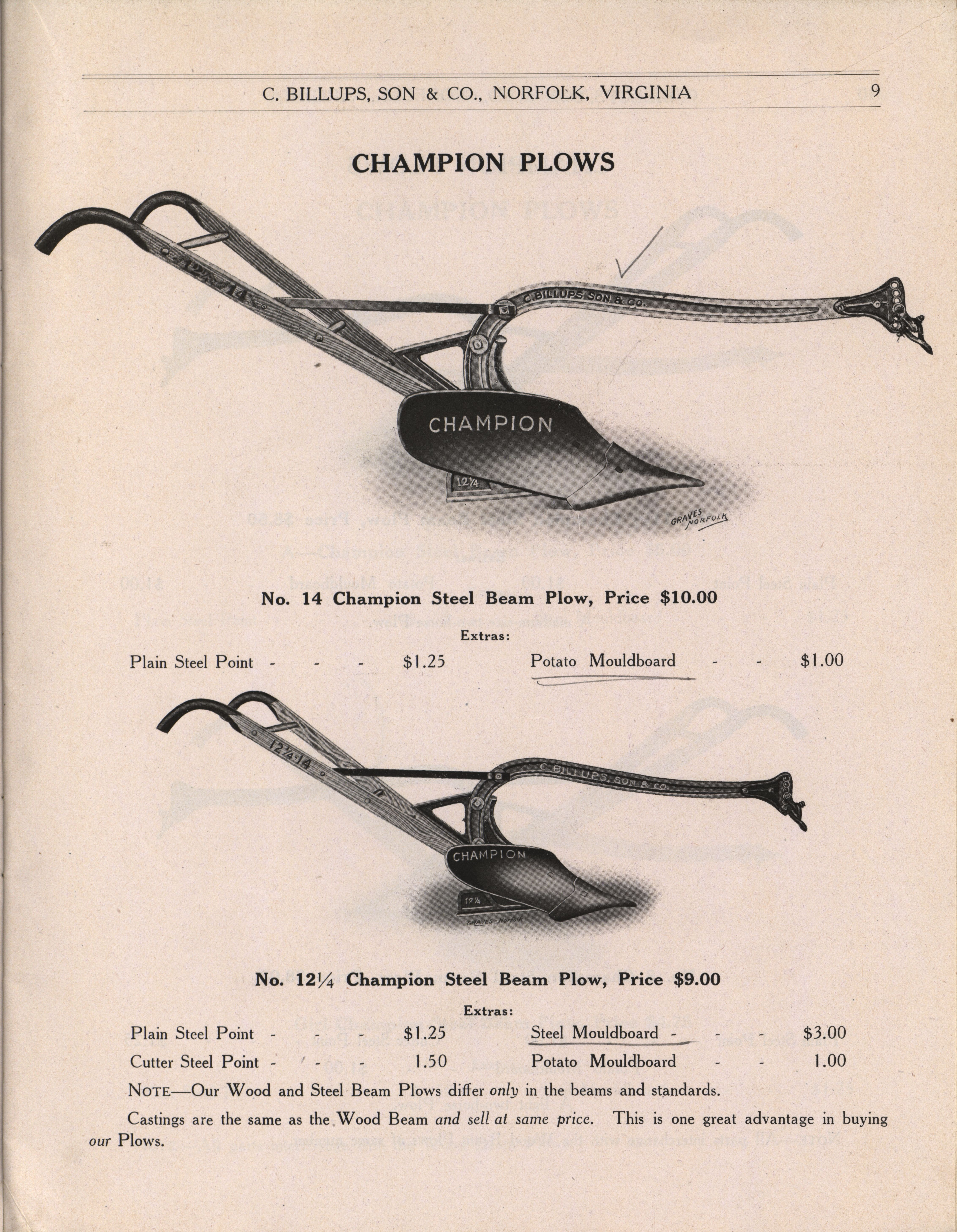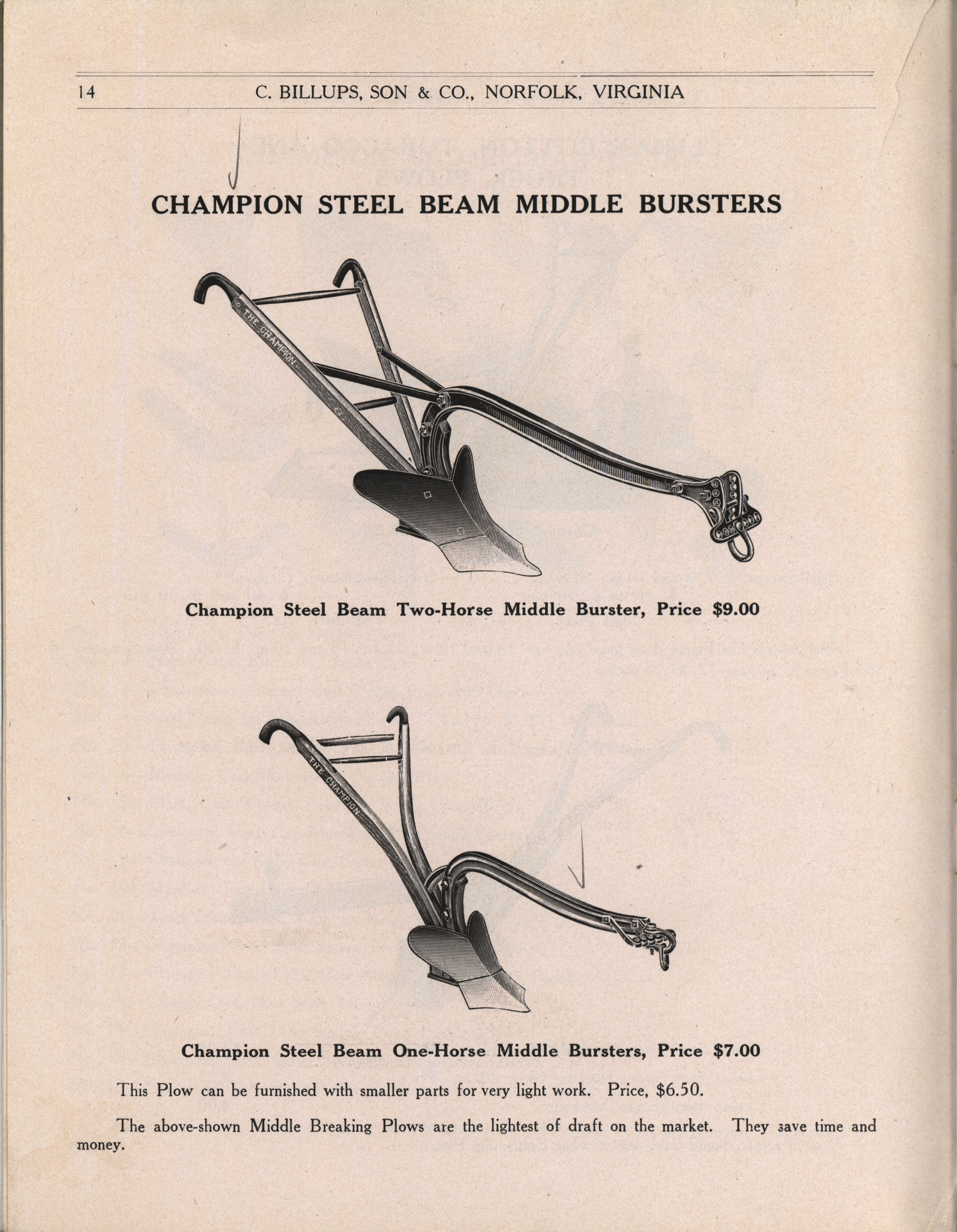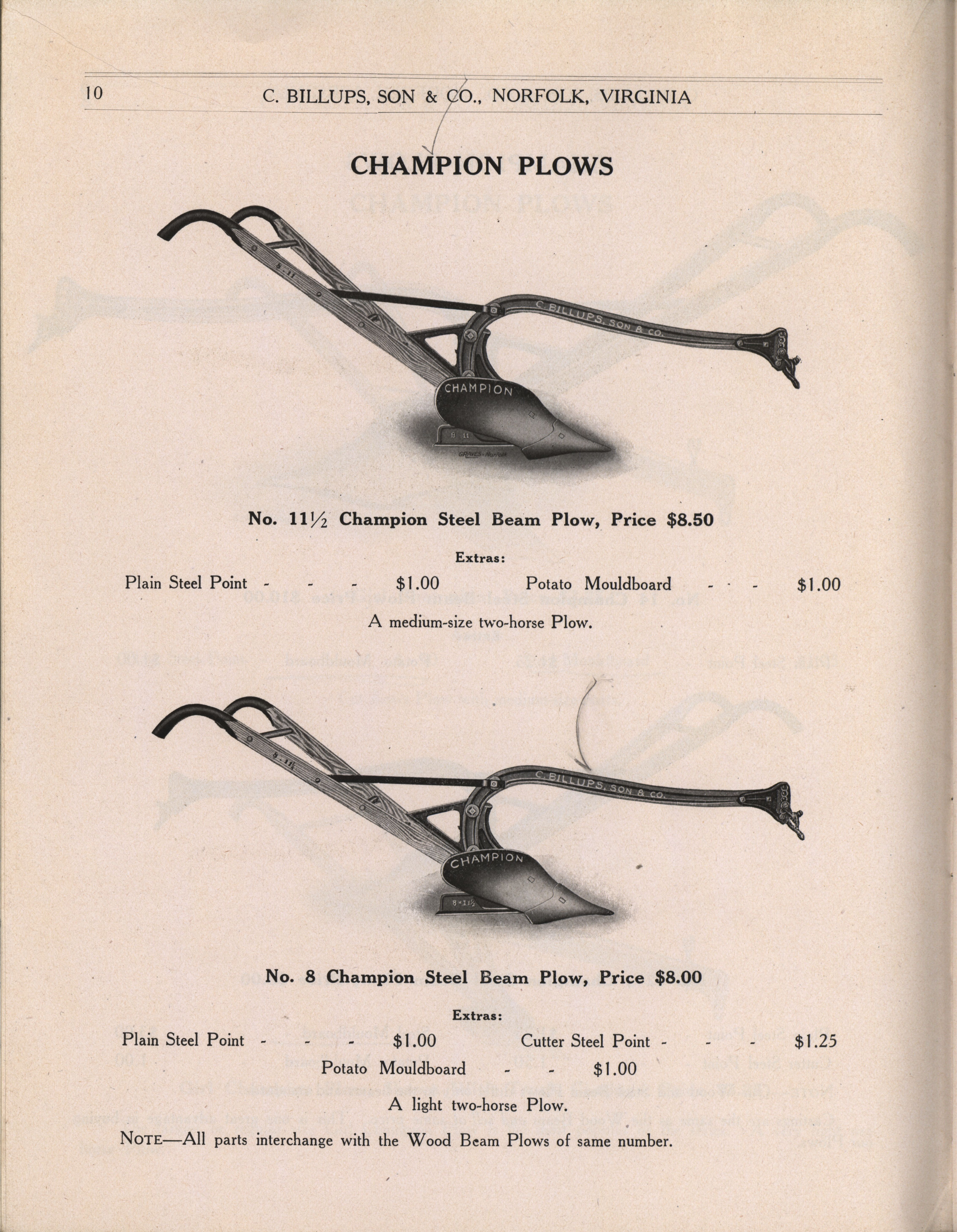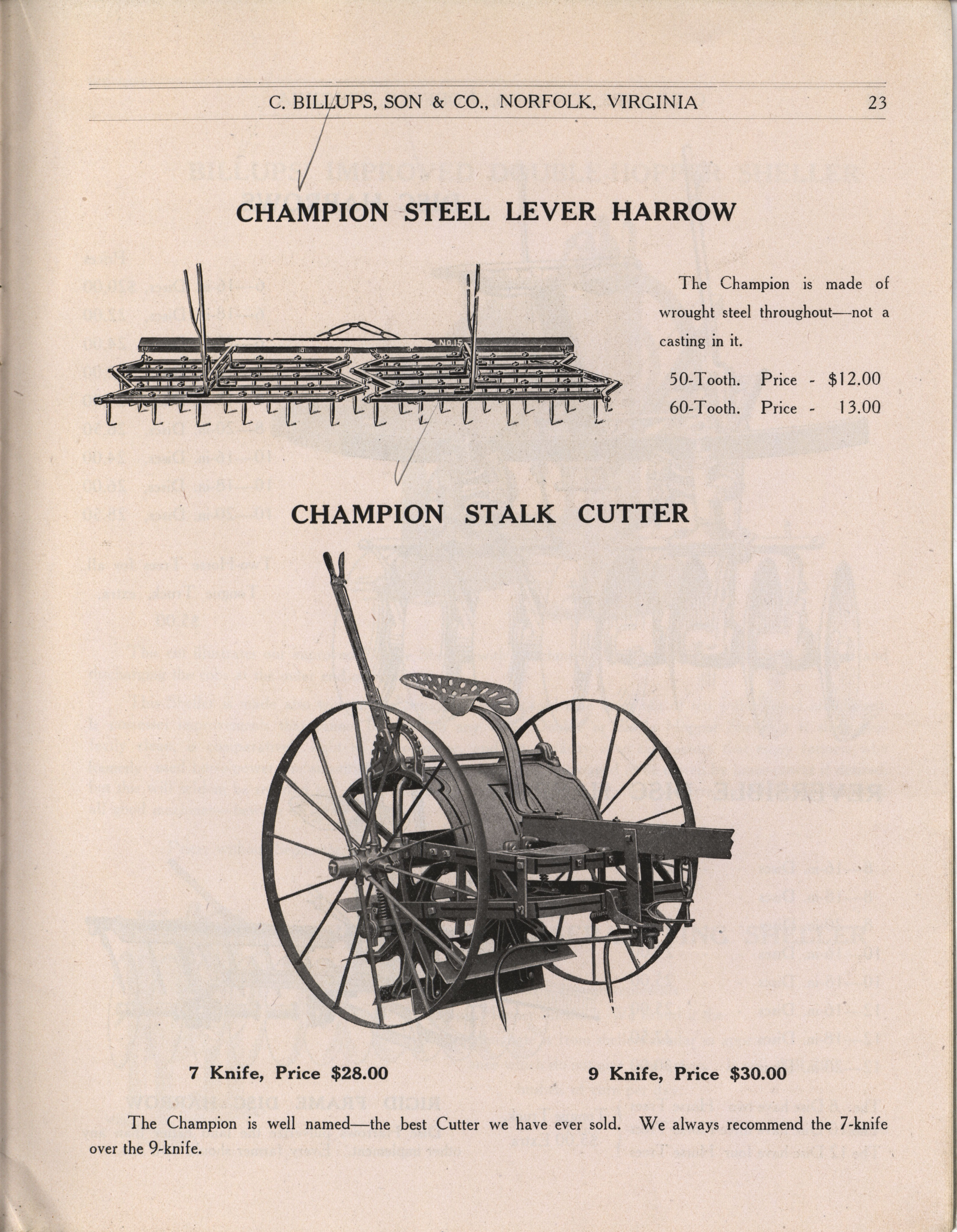 - "Manufactures of plows jobbers of farming implements & machinery C. Billups, Son & Co. catalog", Agricultural Machinery Literature Collection, Iowa State University Library Digital Collections