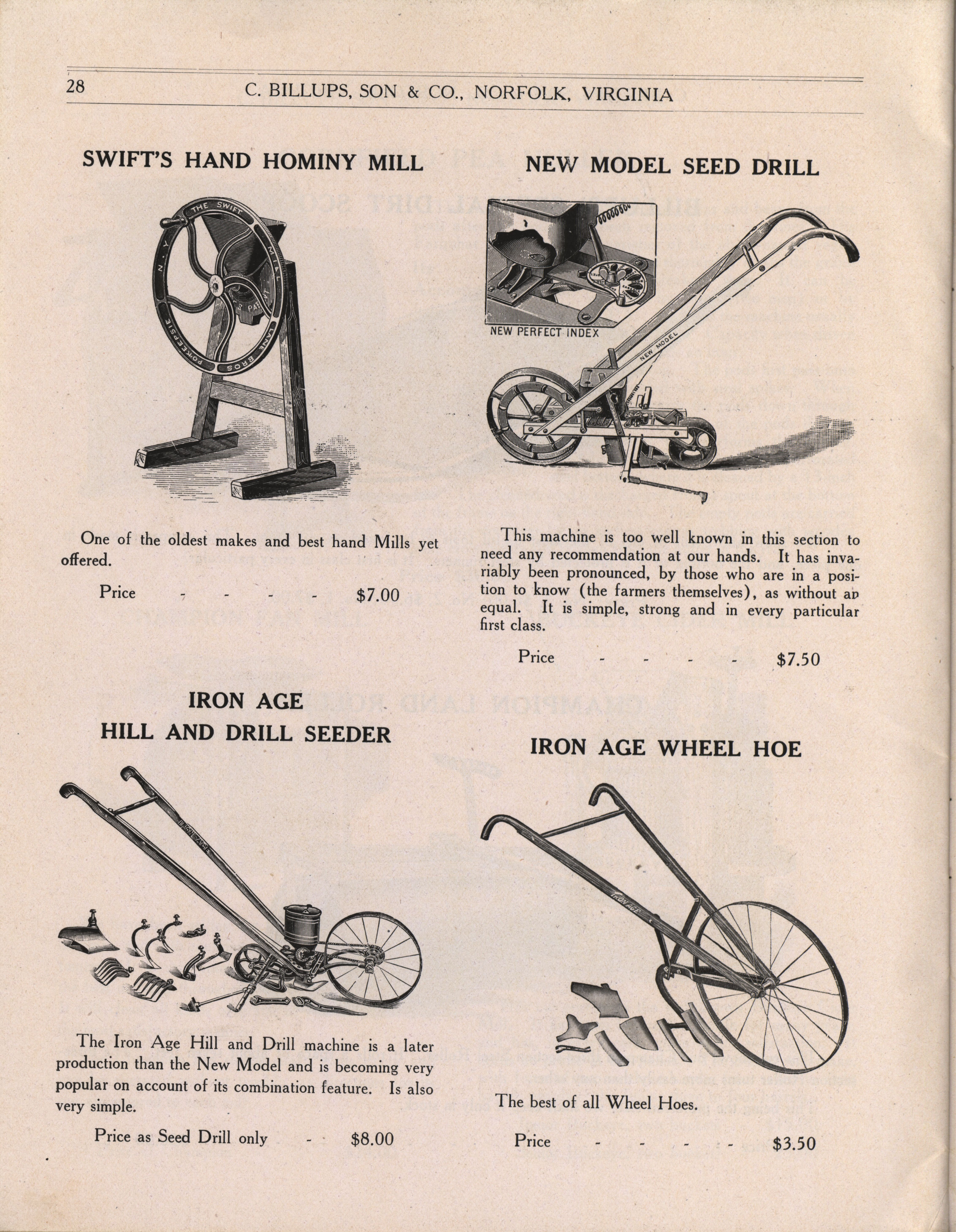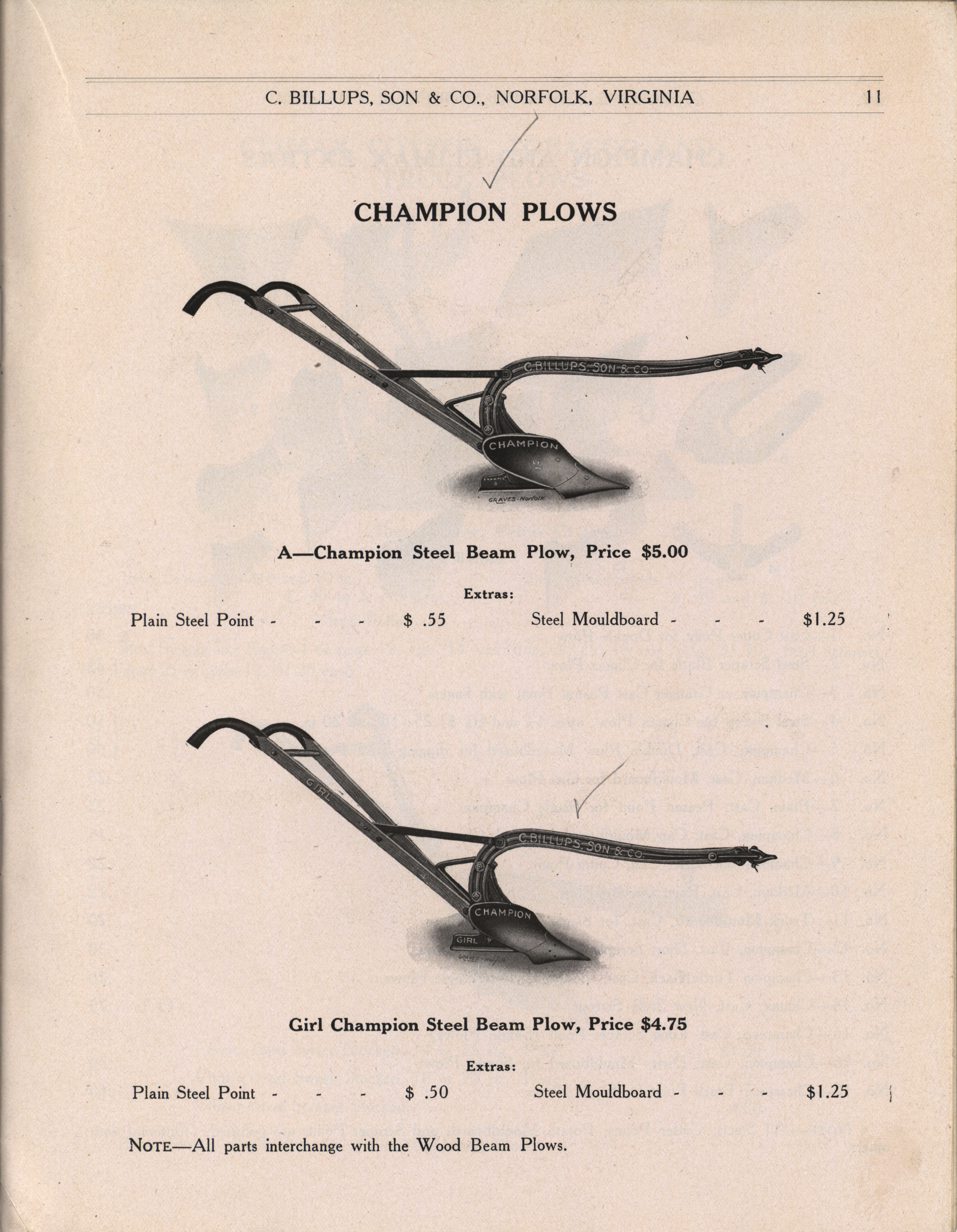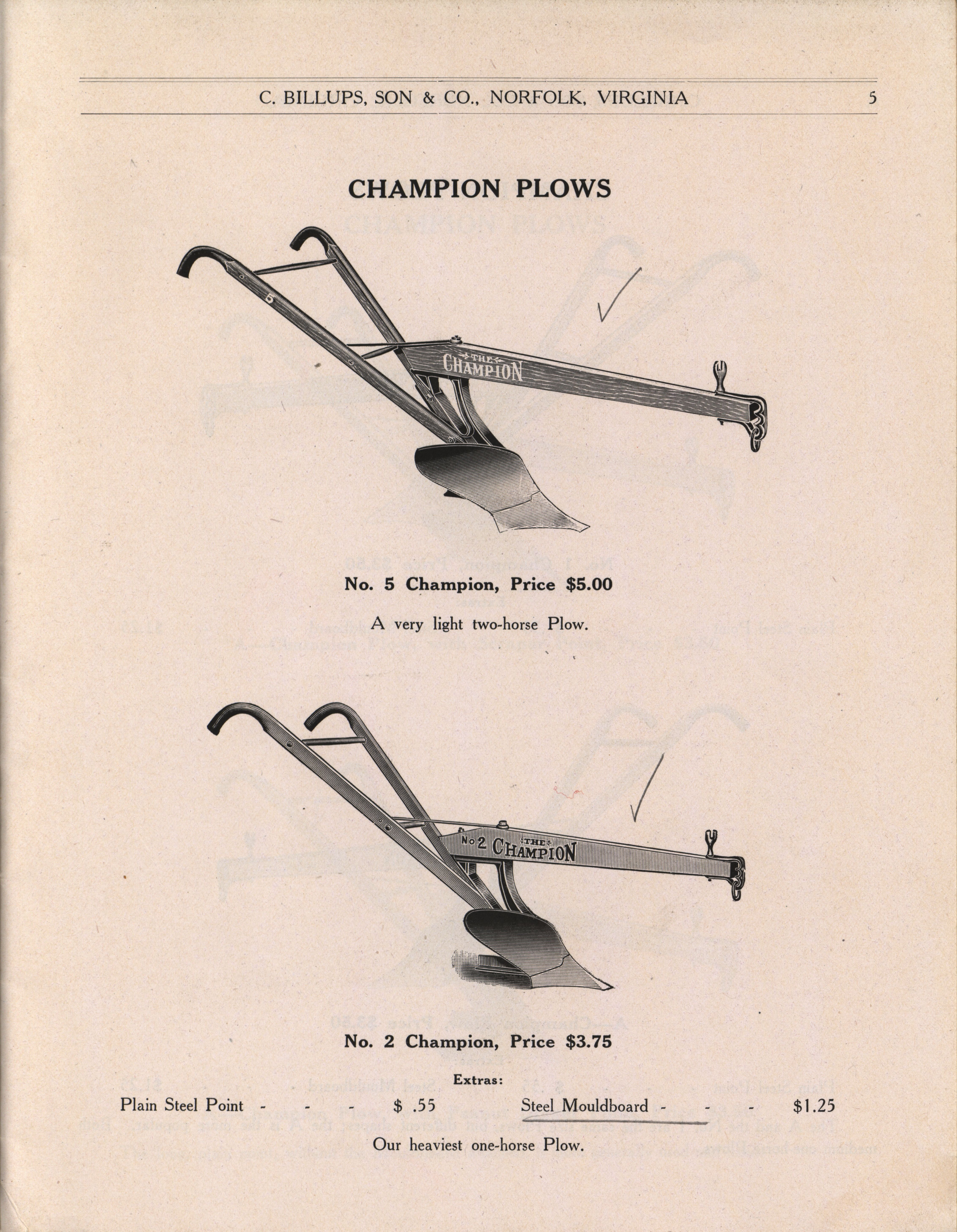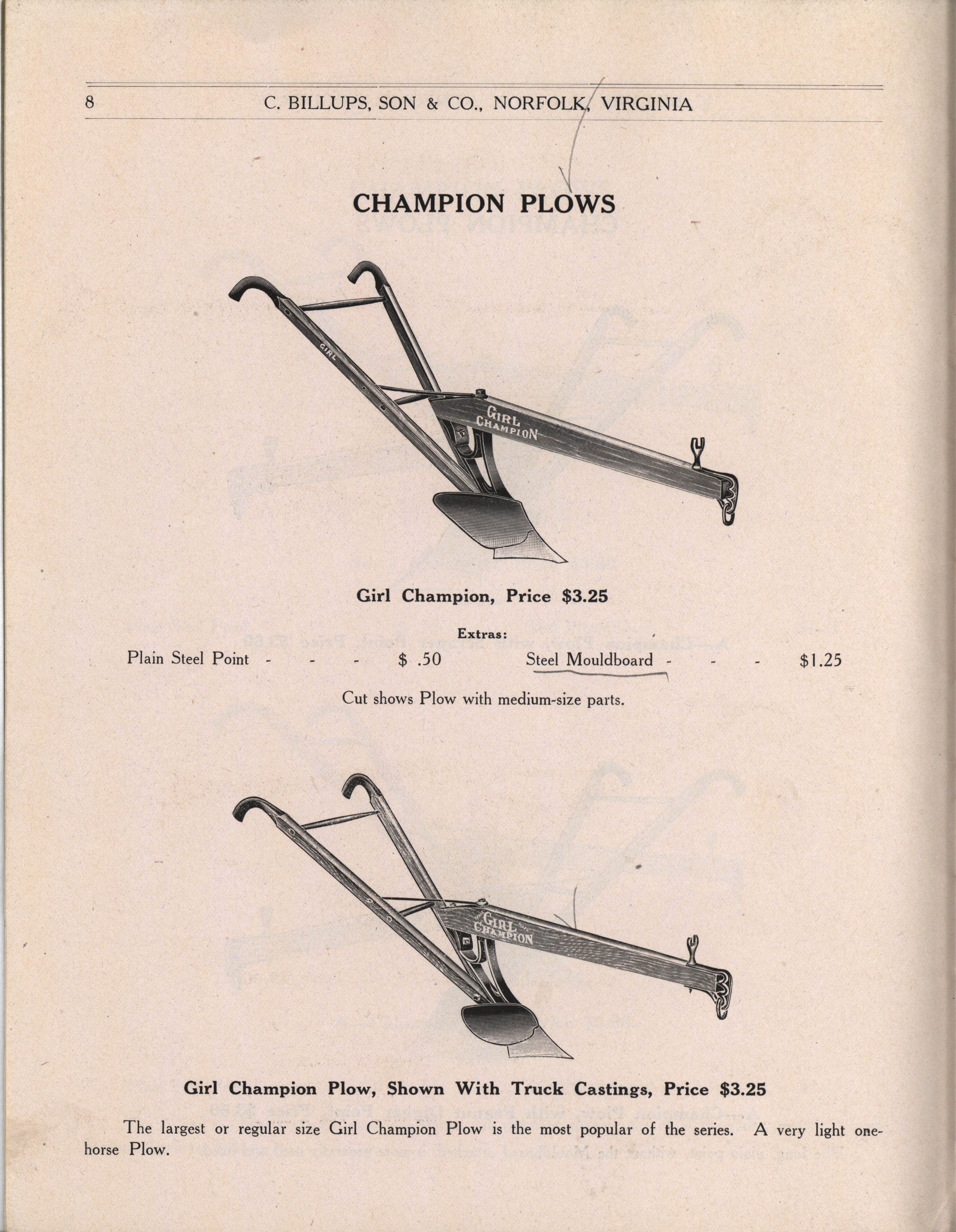 - "Manufactures of plows jobbers of farming implements & machinery C. Billups, Son & Co. catalog", Agricultural Machinery Literature Collection, Iowa State University Library Digital Collections