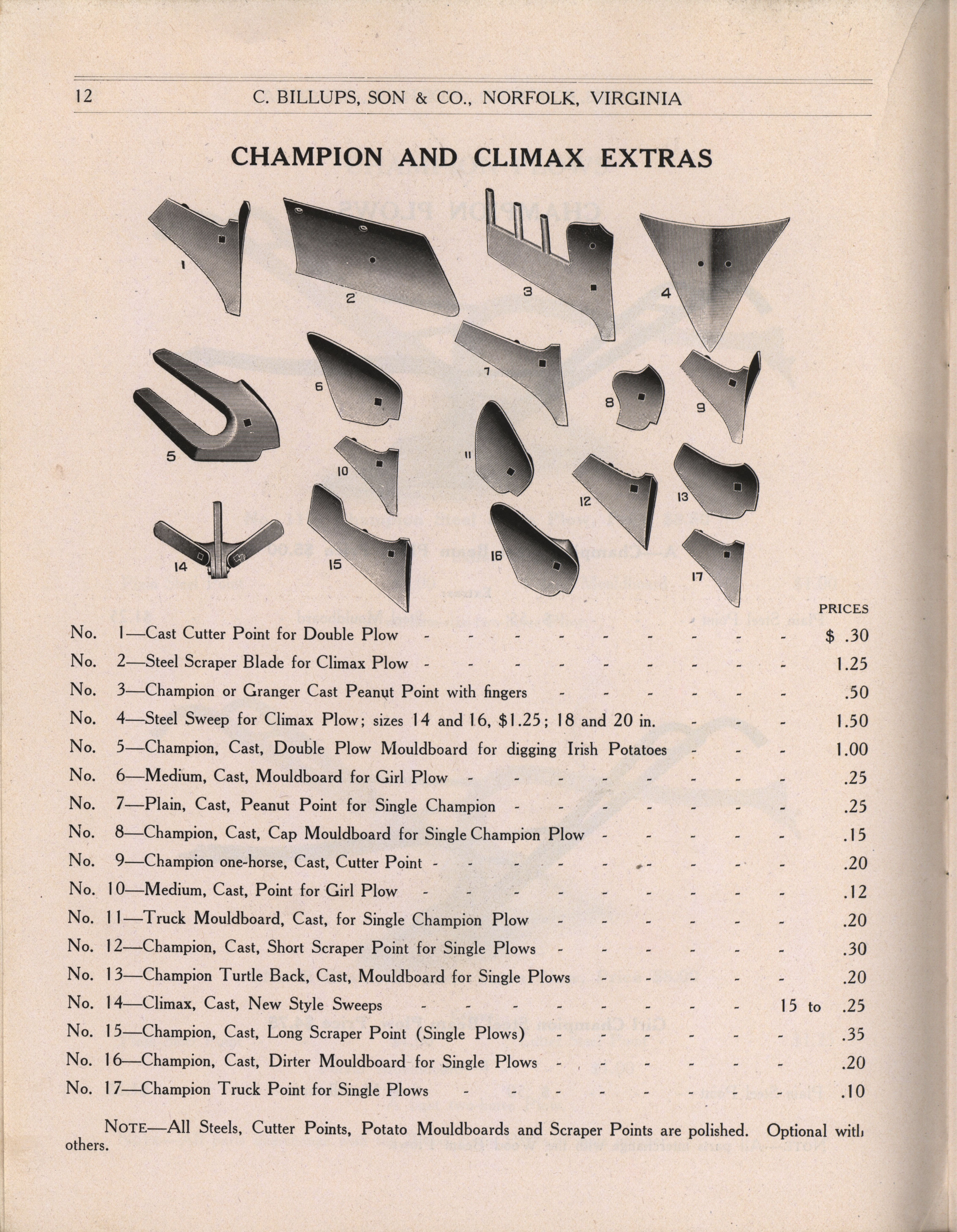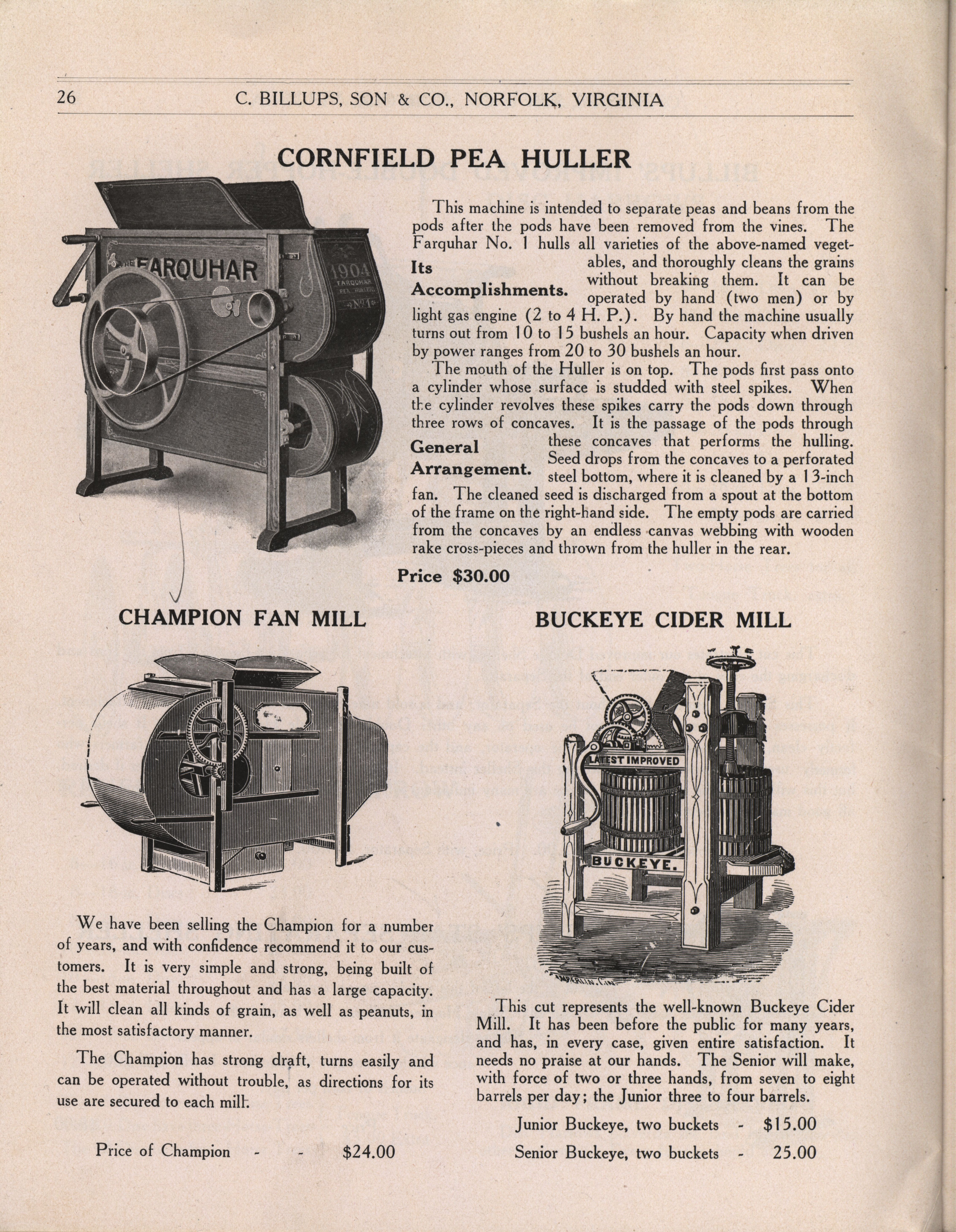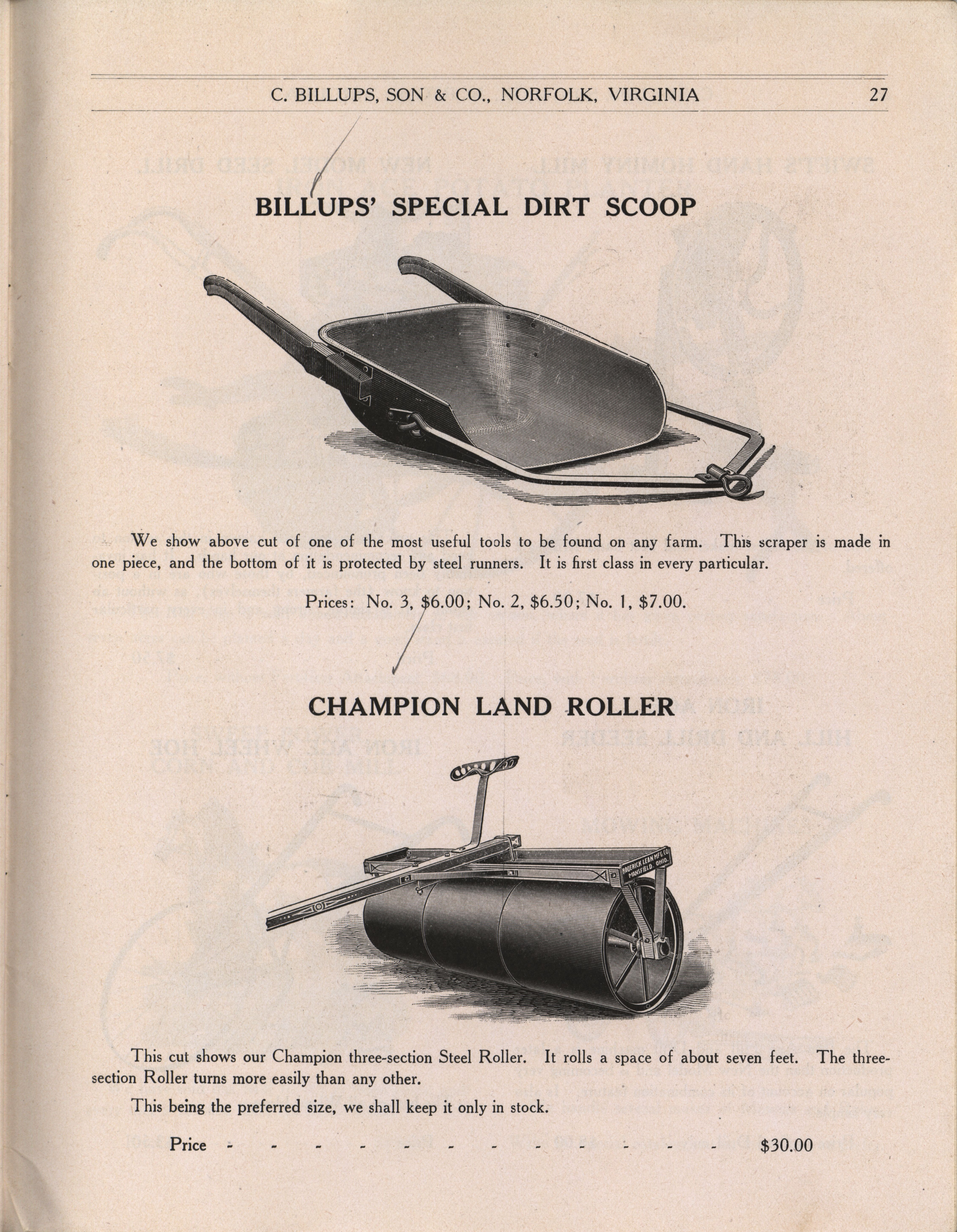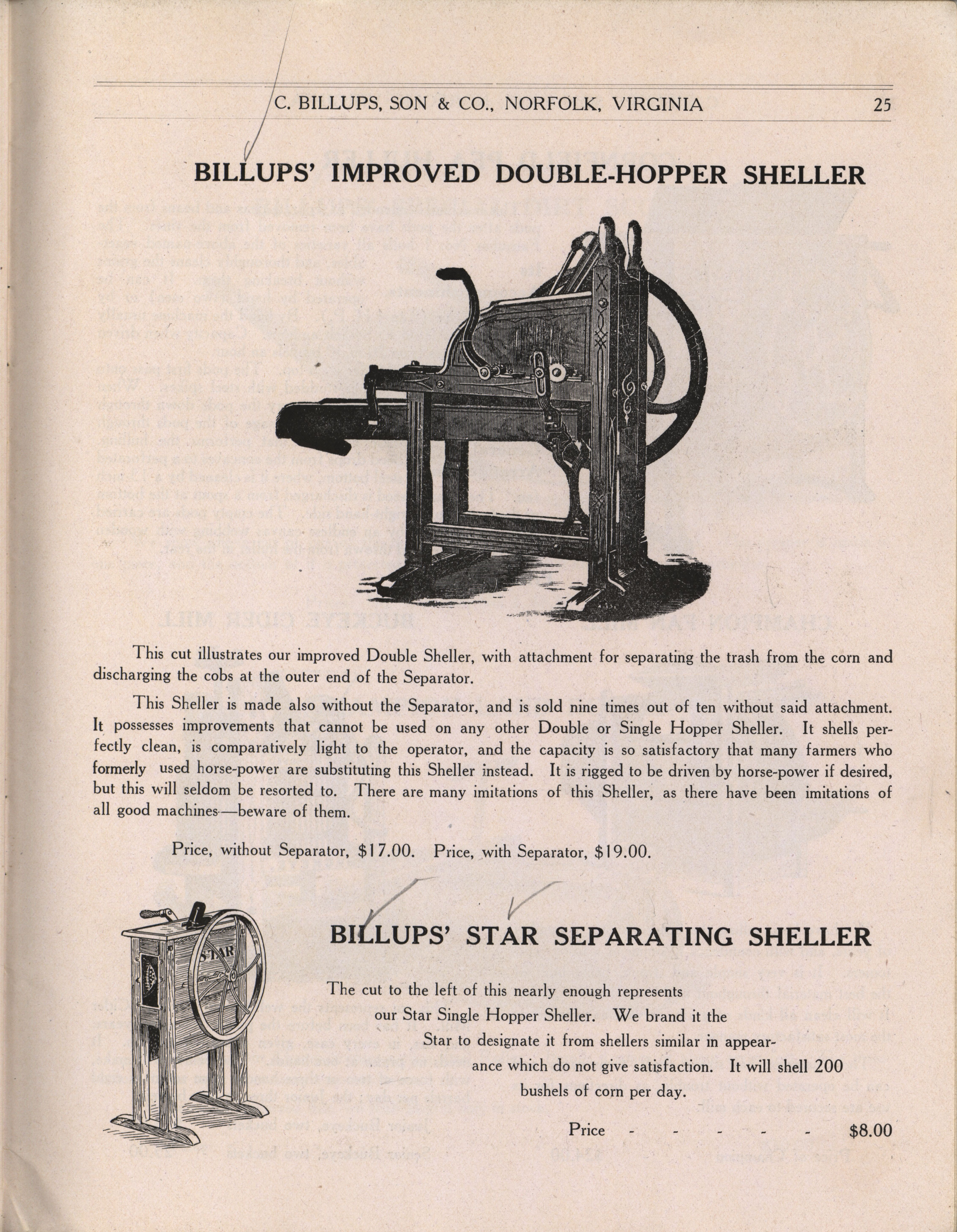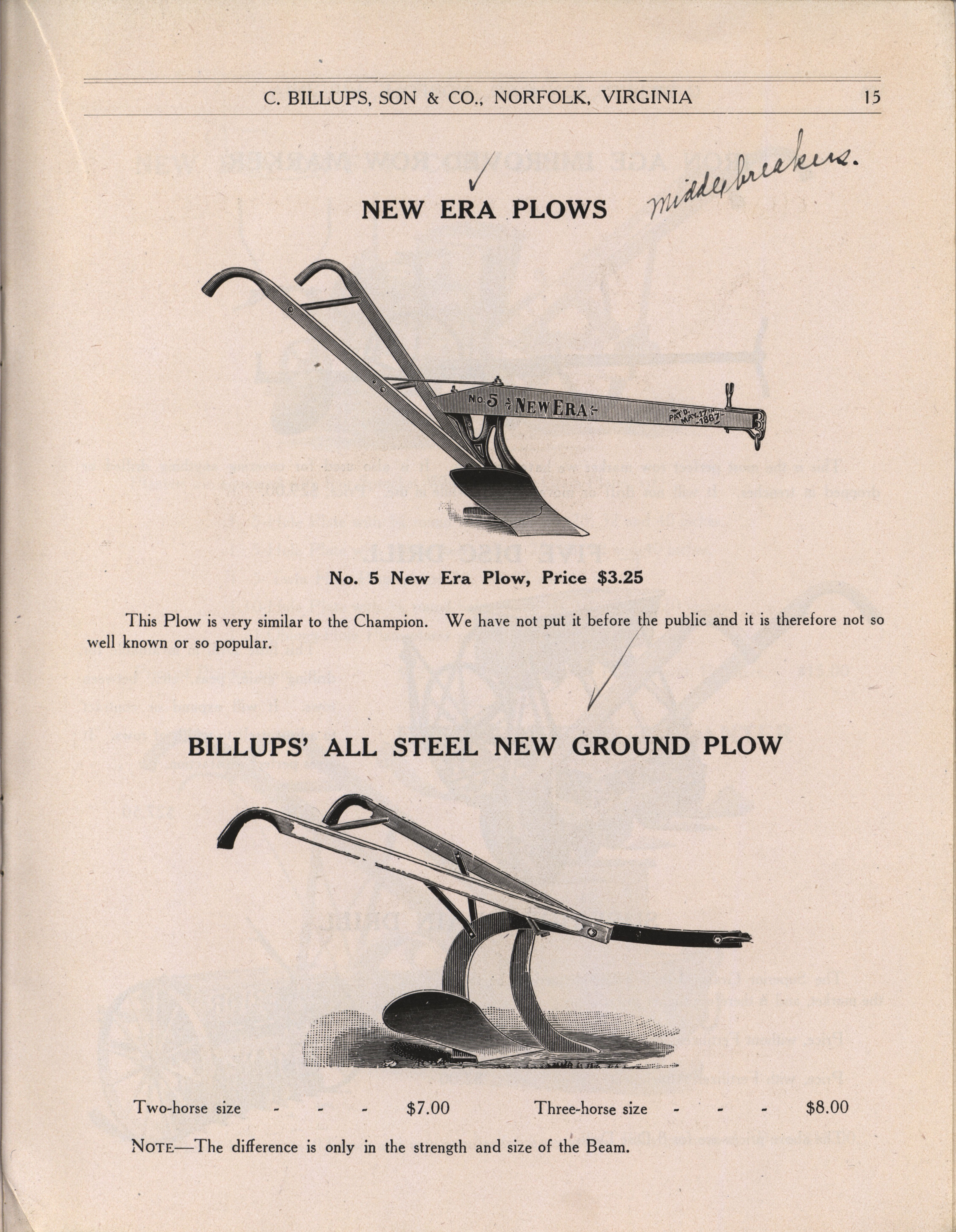 - "Manufactures of plows jobbers of farming implements & machinery C. Billups, Son & Co. catalog", Agricultural Machinery Literature Collection, Iowa State University Library Digital Collections