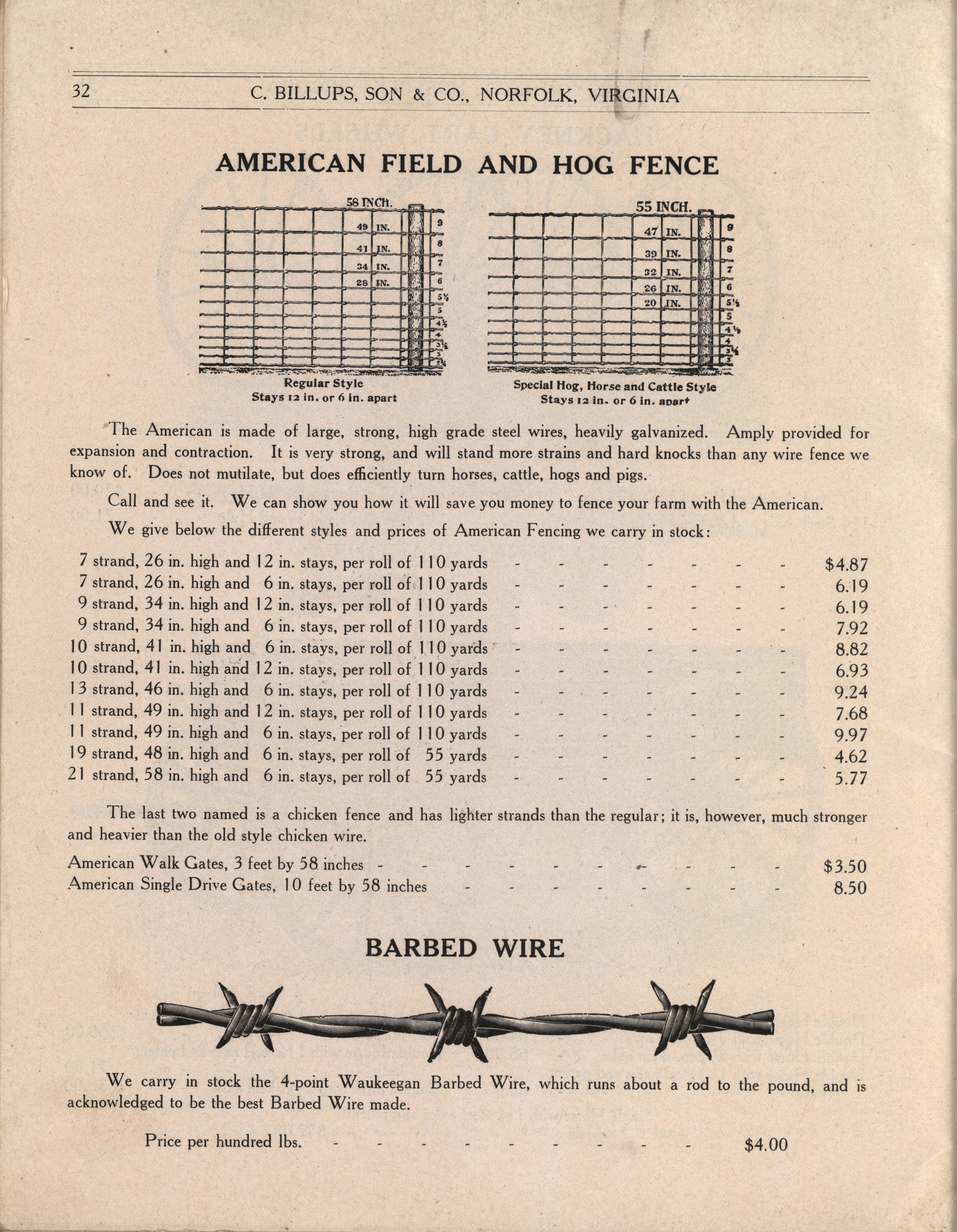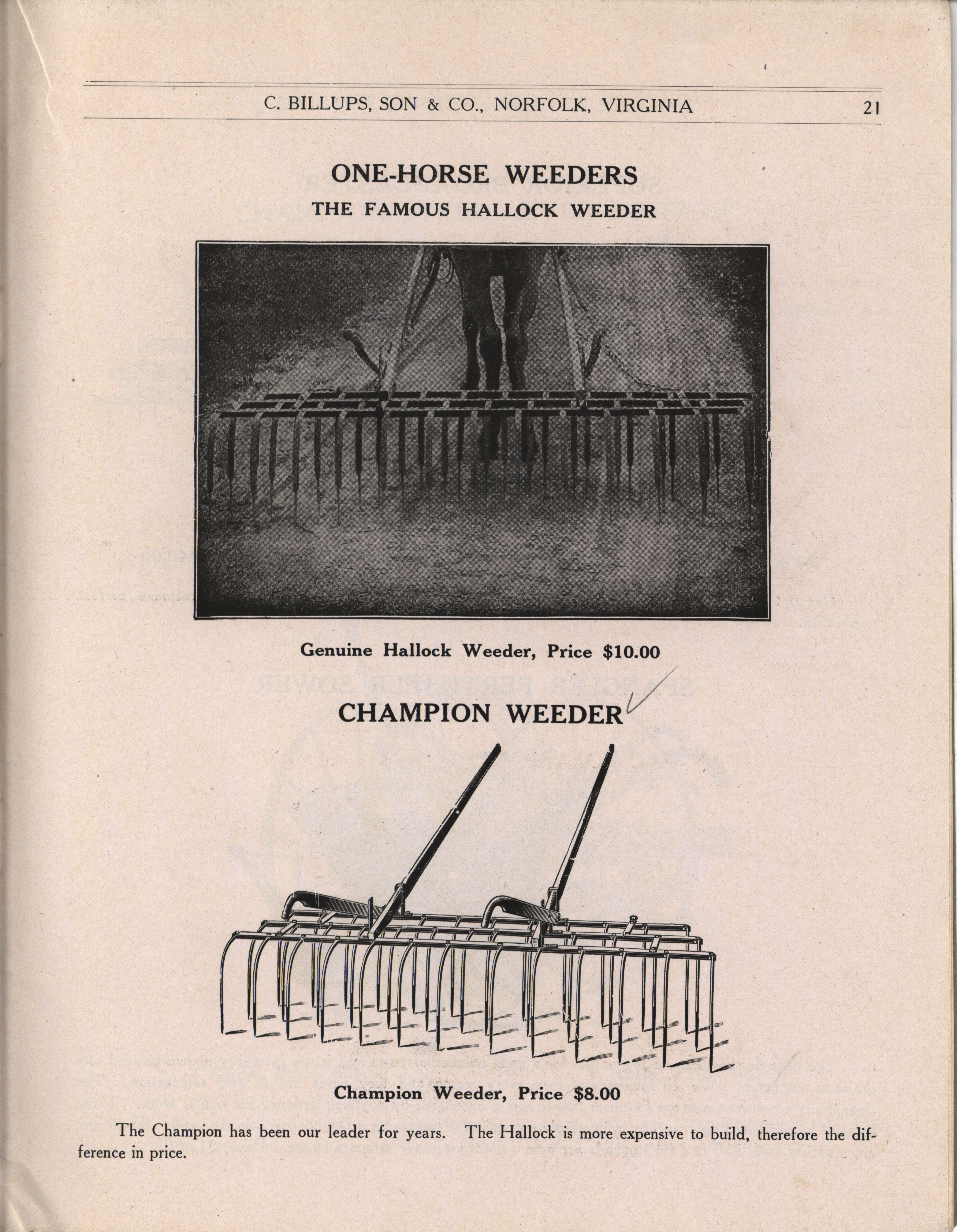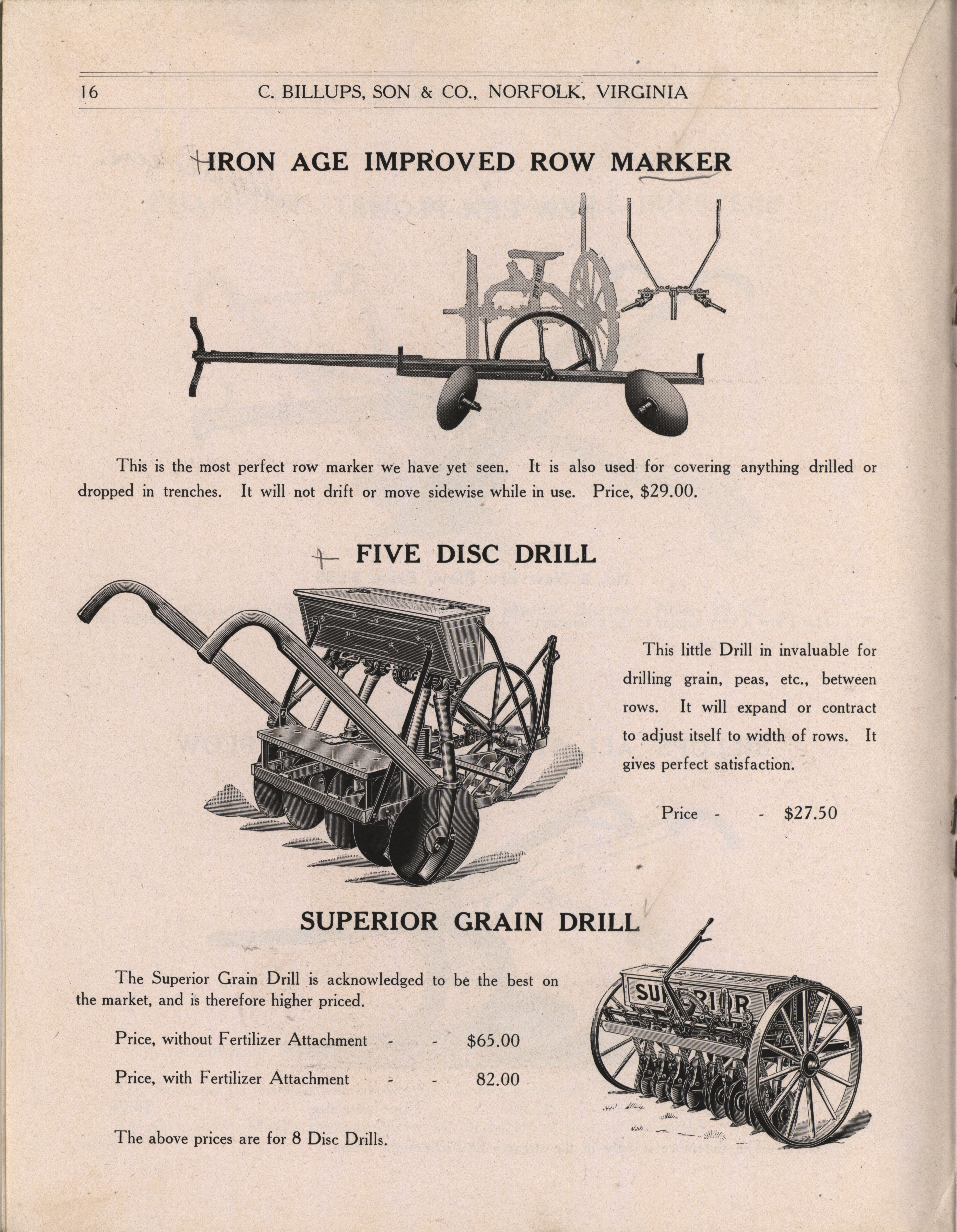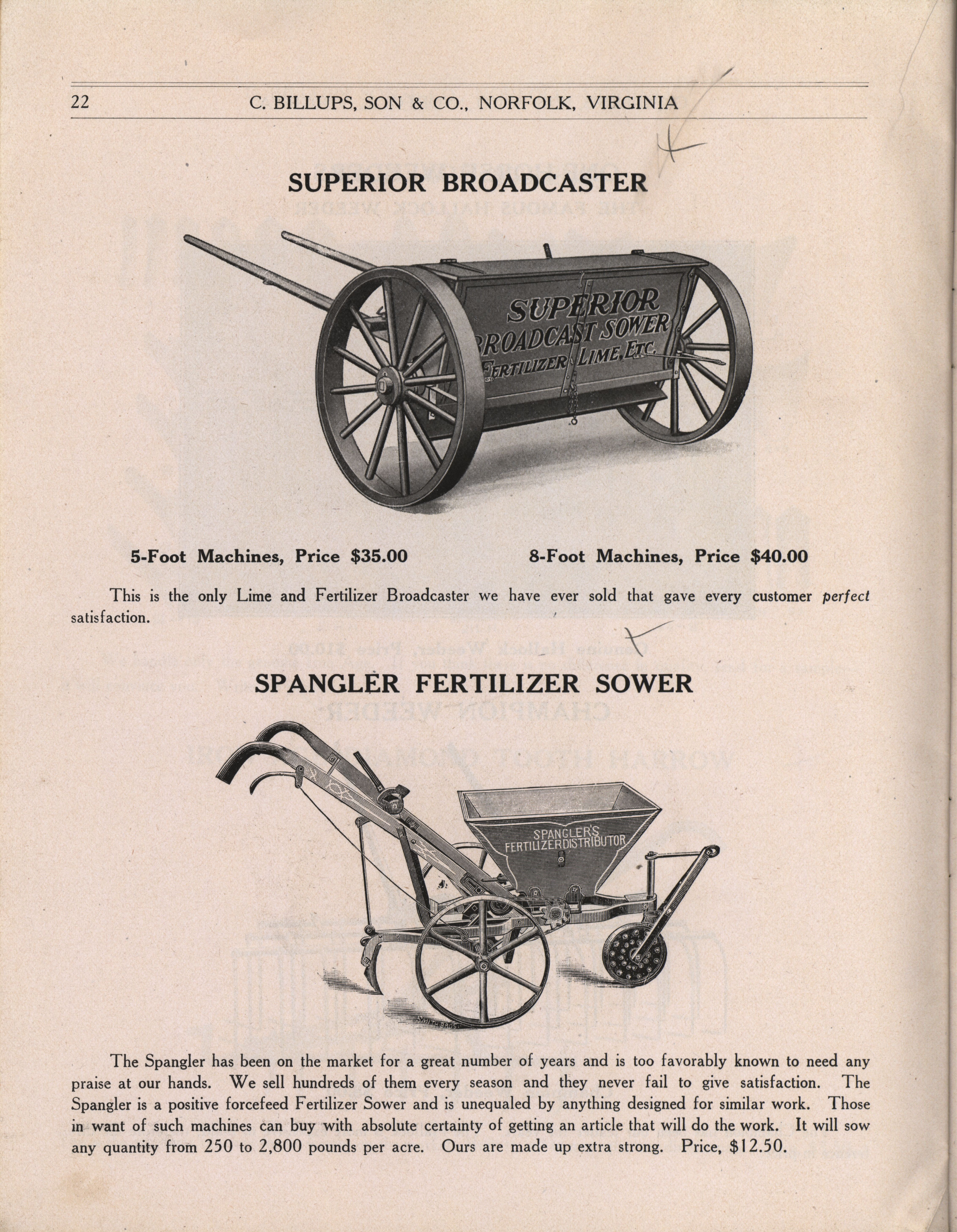 - Illustrated catalog describing the agricultural products offered by C. Billups, Son and Company from 1916.