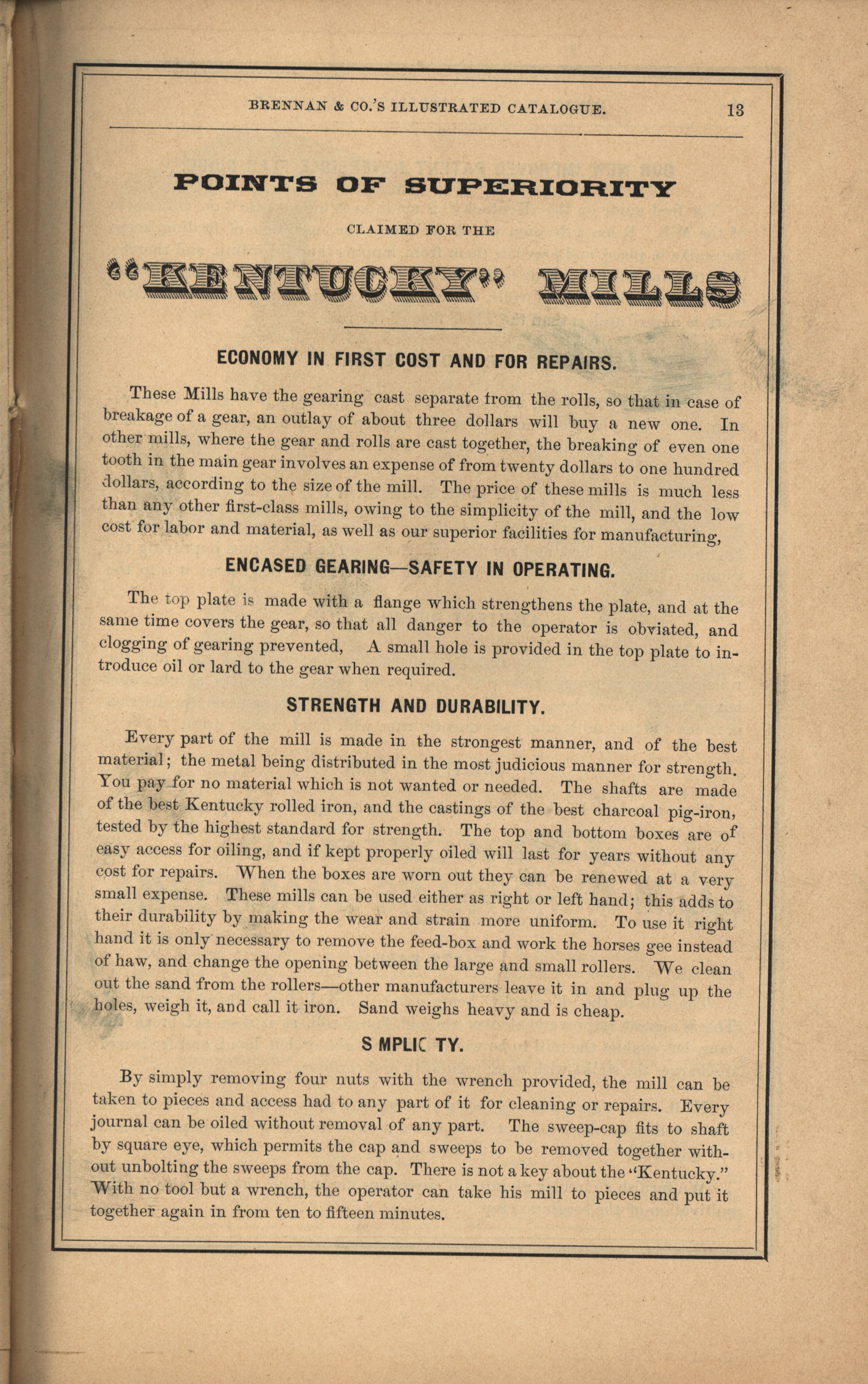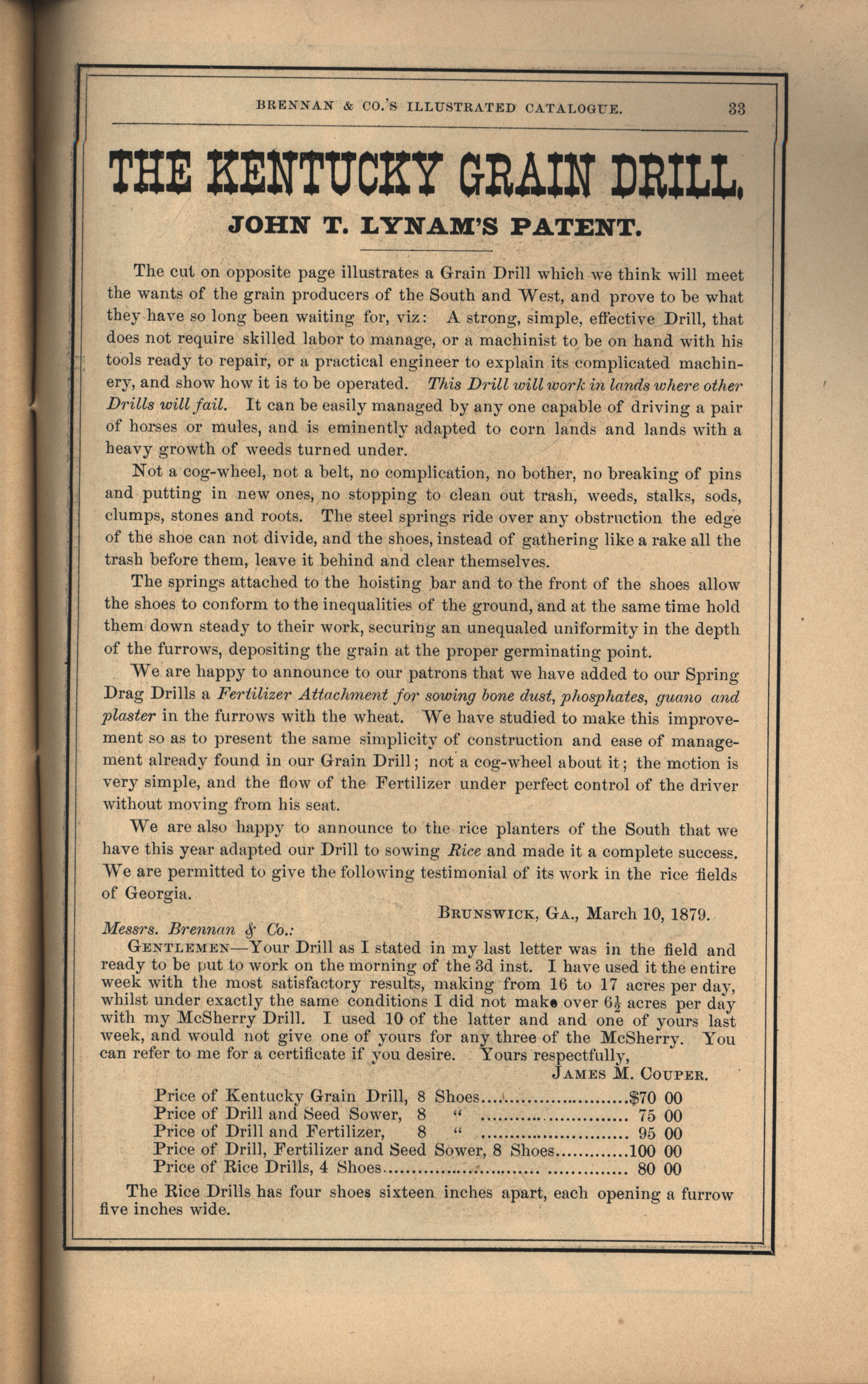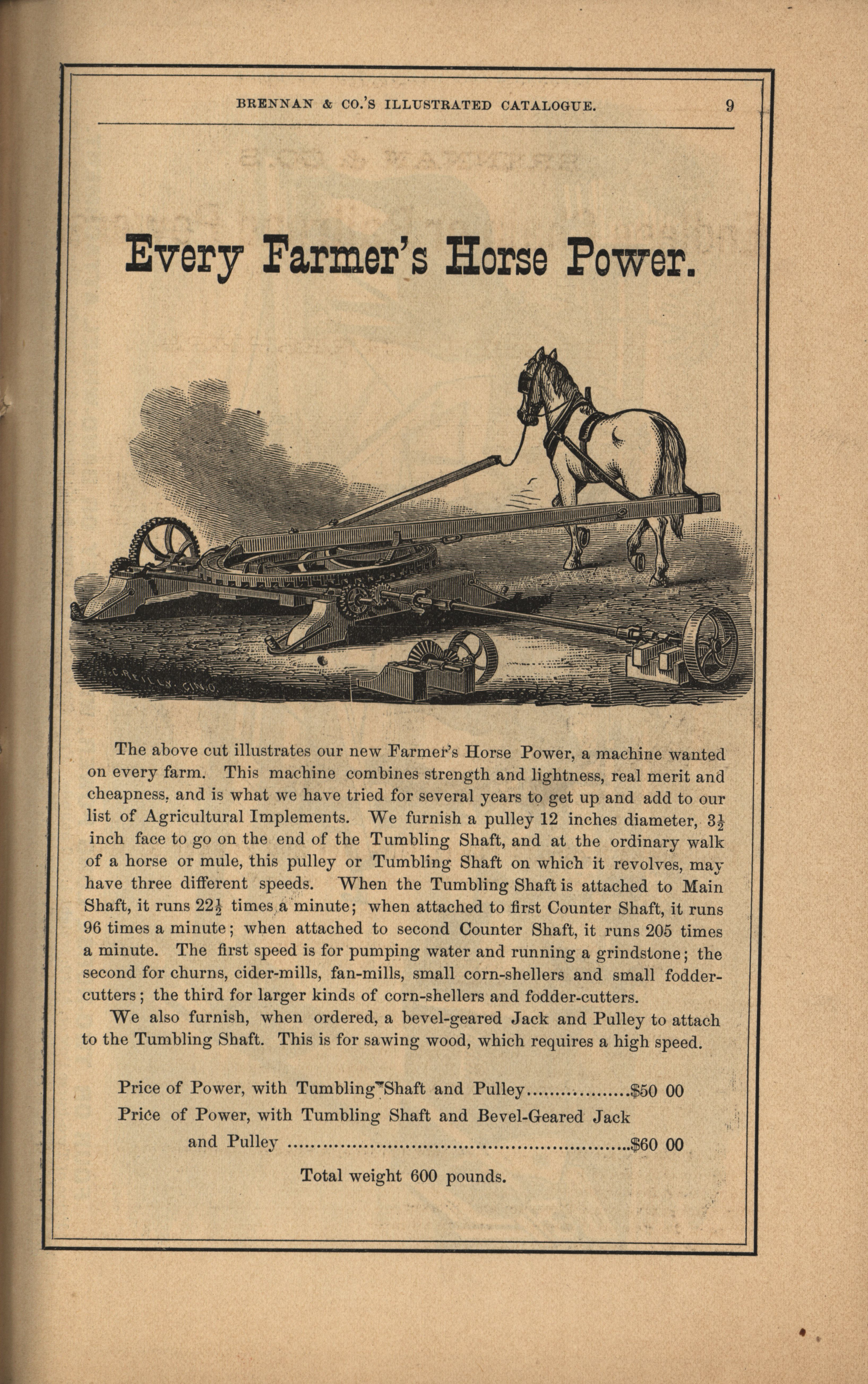 - Illustrated catalog describing the agricultural products offered by Brennan and Company Southwestern Agricultural Works from 1879-1880.