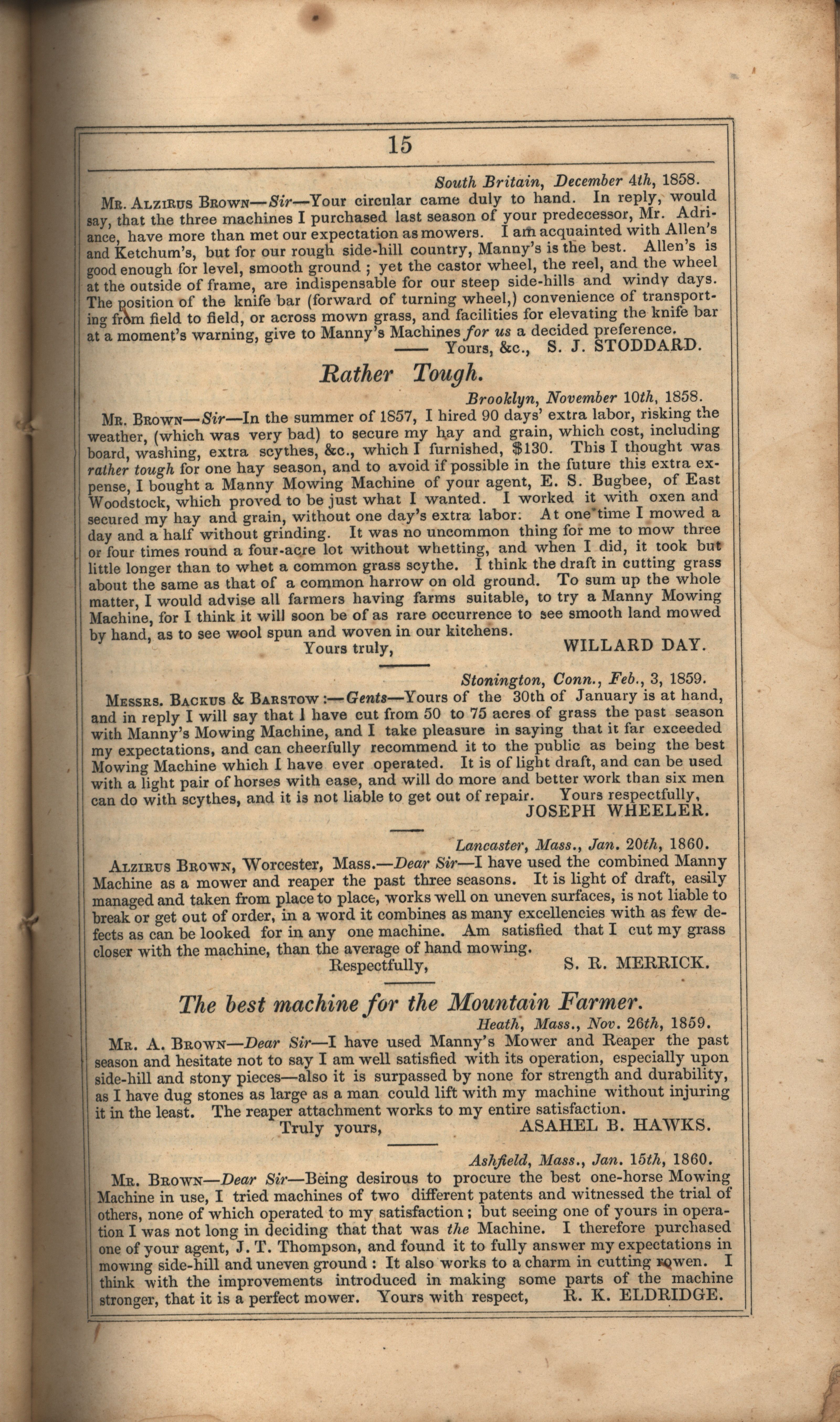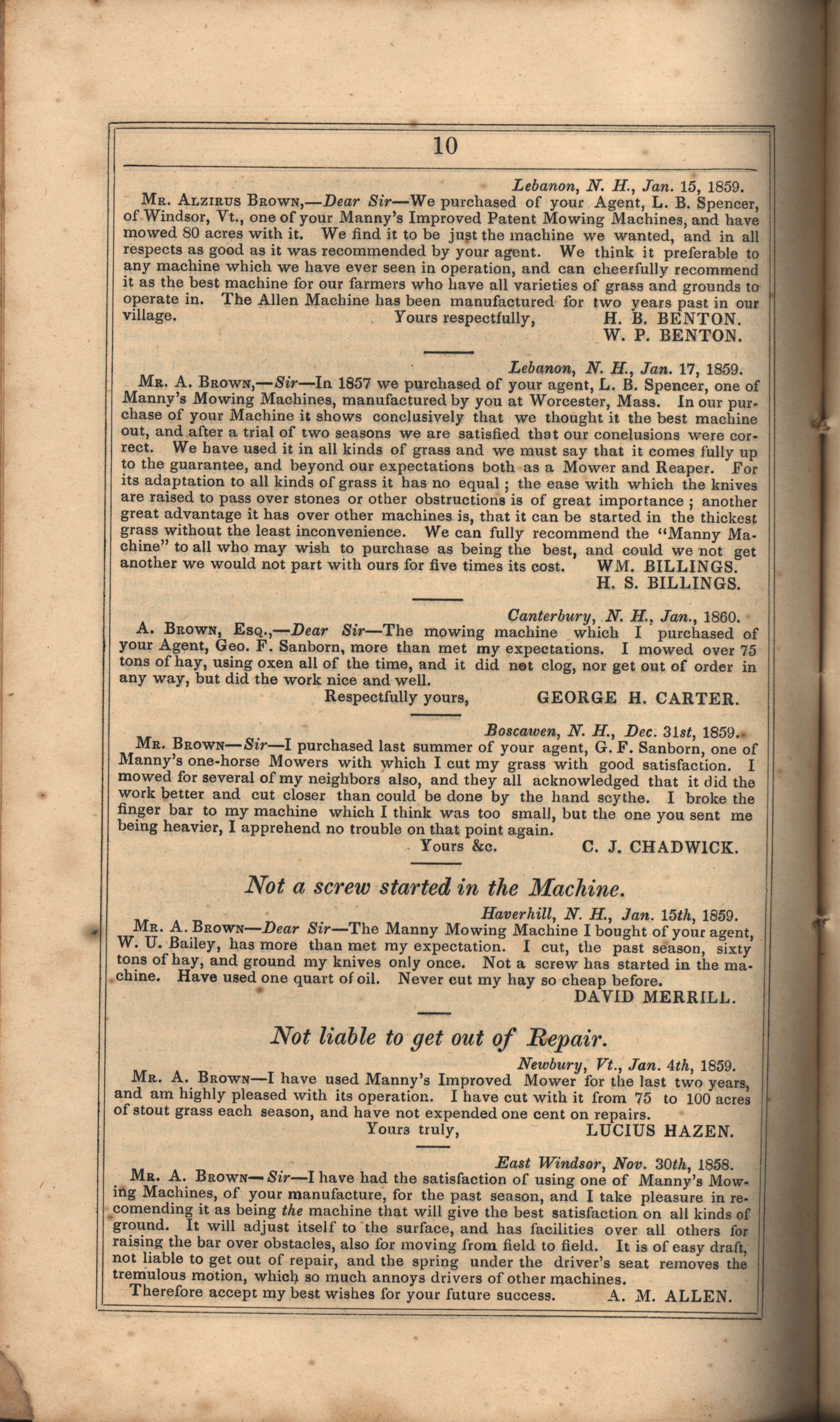 - "Alzirus Brown Agricultural Products catalog", Agricultural Machinery Literature Collection, Iowa State University Library Digital Collections