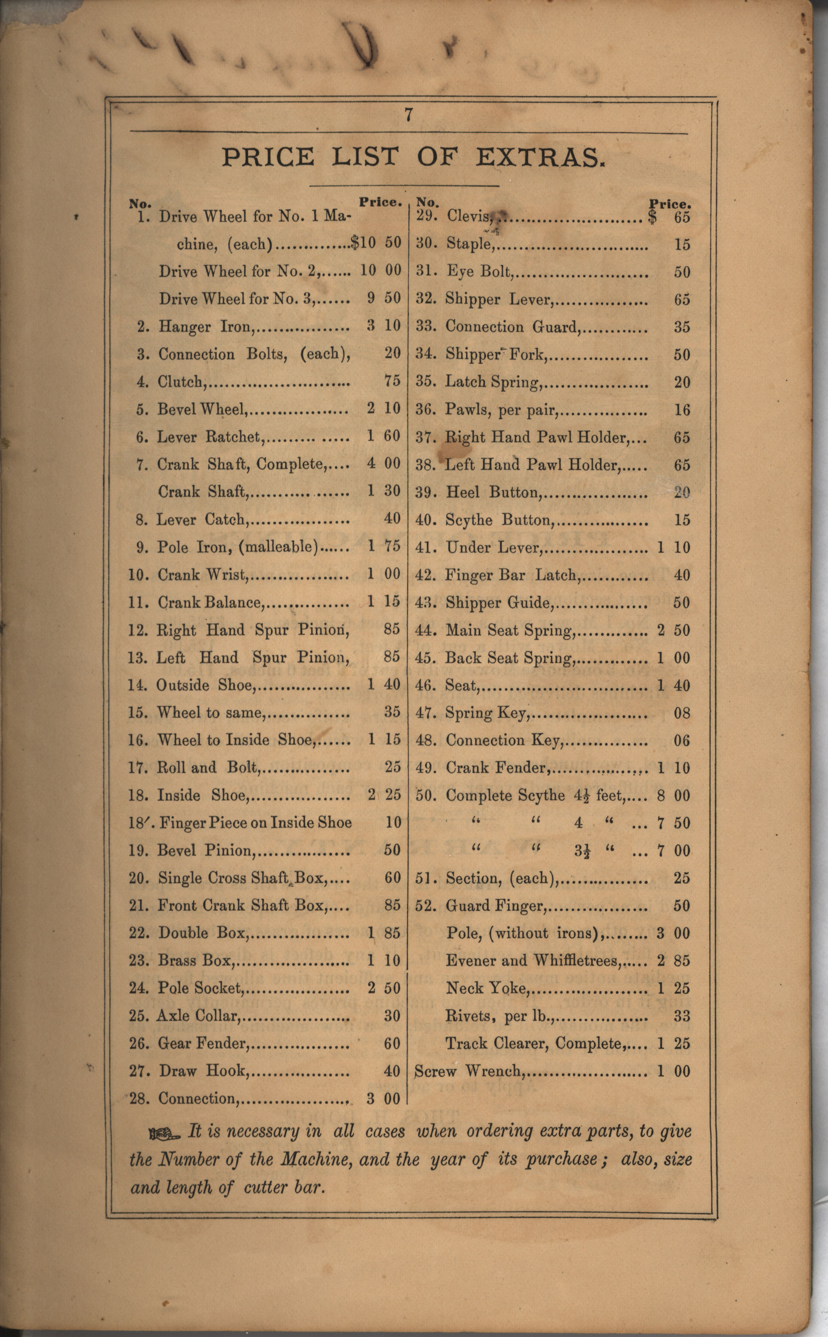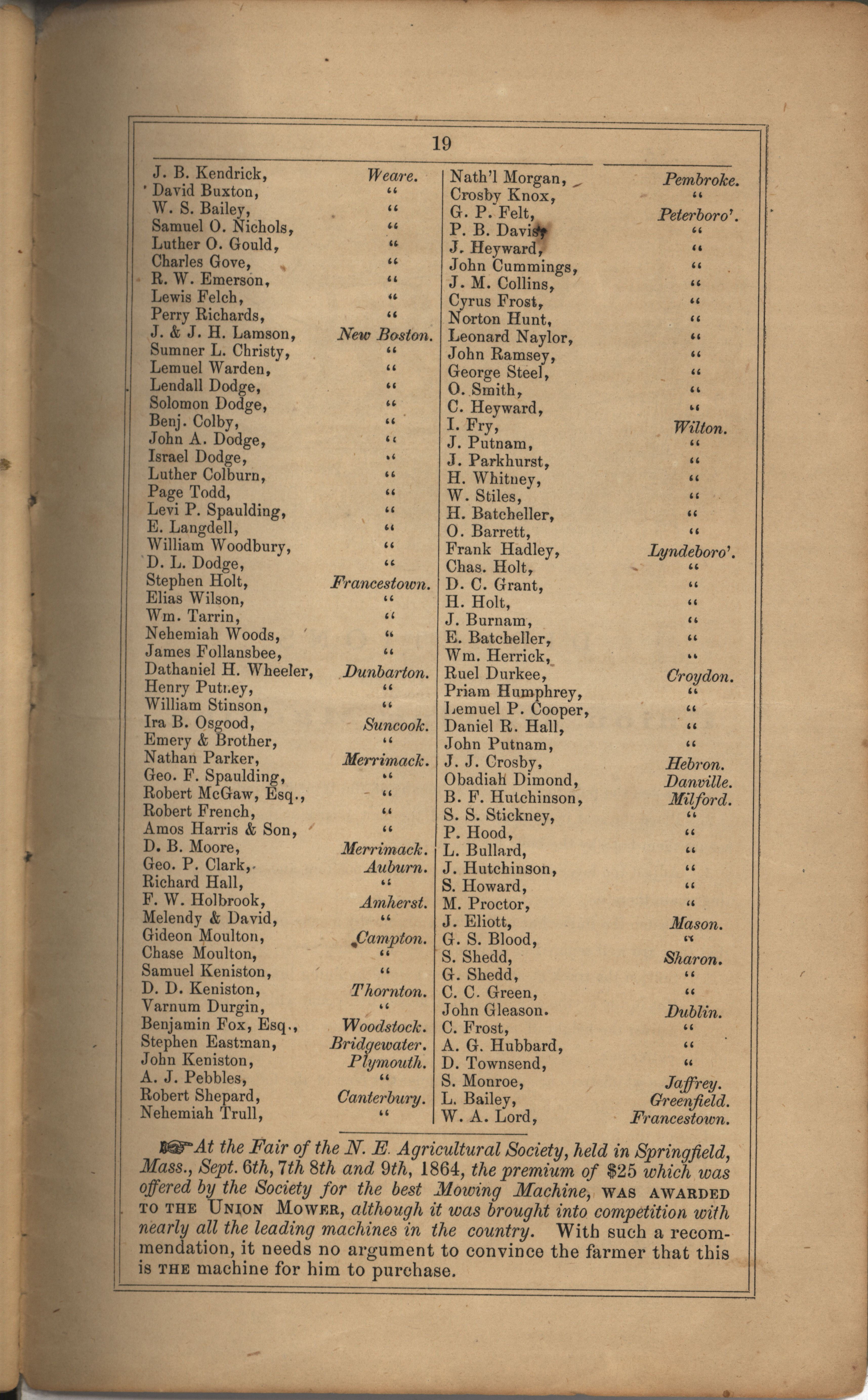 Alzirus Brown Union Mowing Machine 1866 catalog Item Info