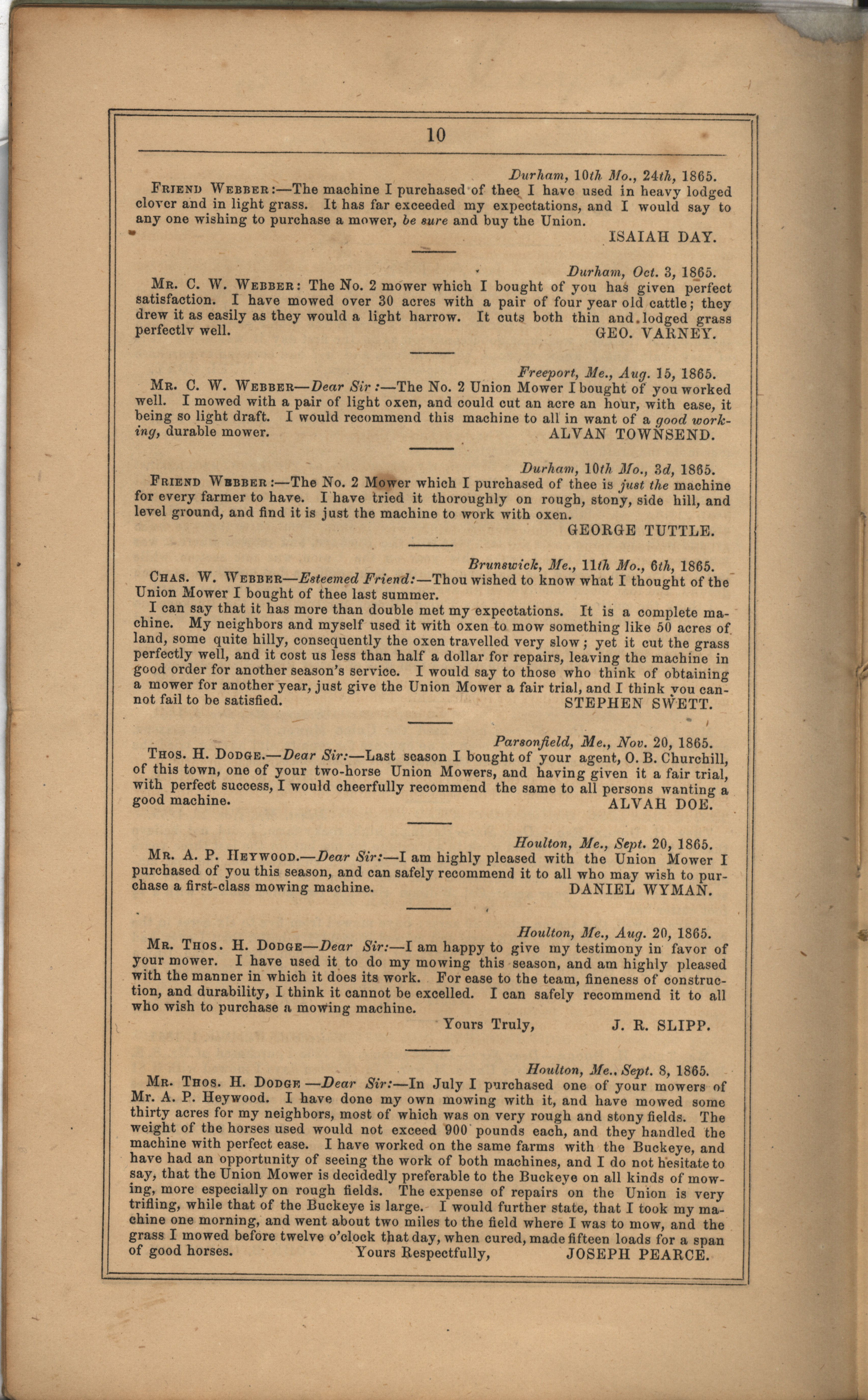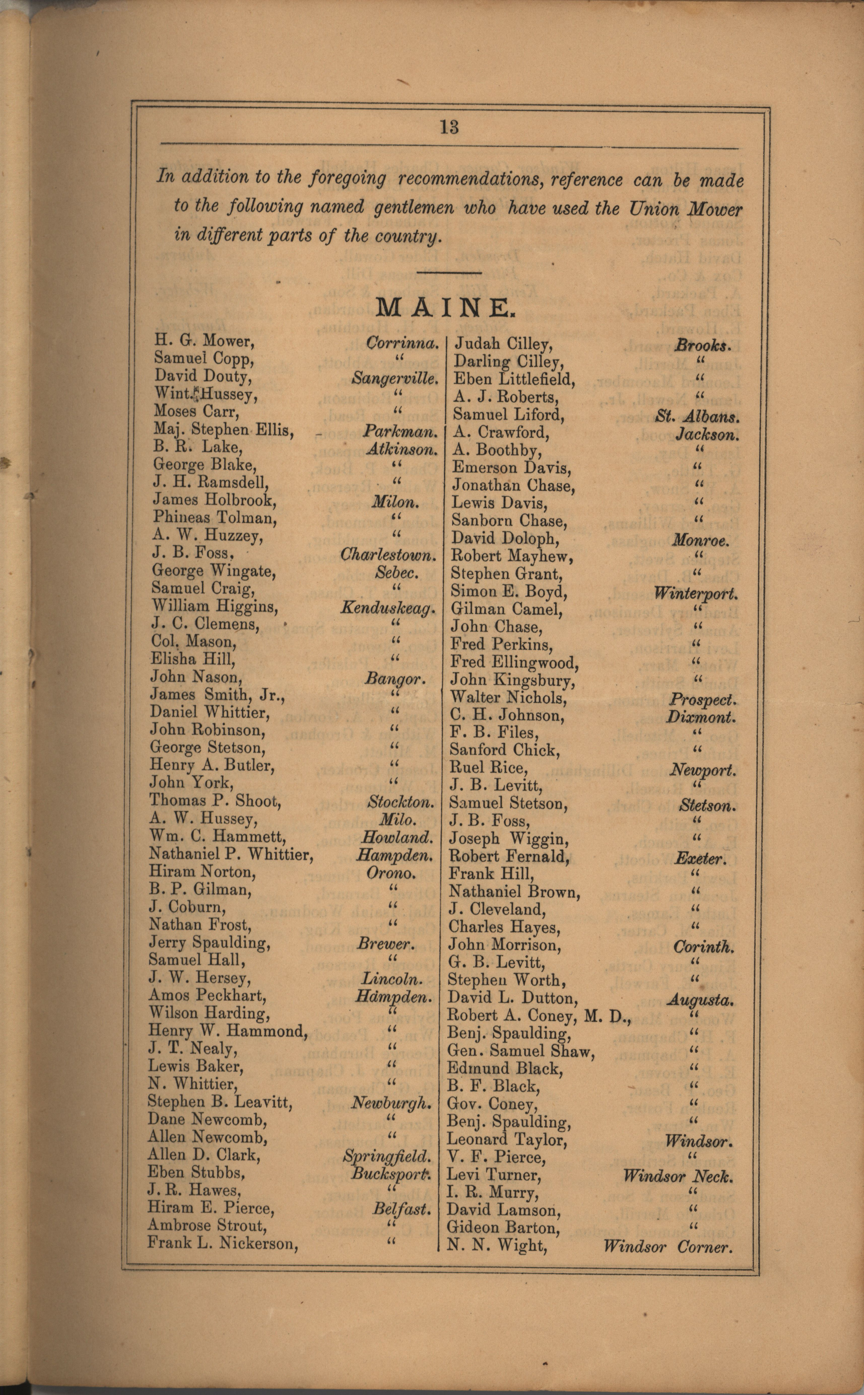 - Alzirus Brown Union Mowing Machine 1866 catalog