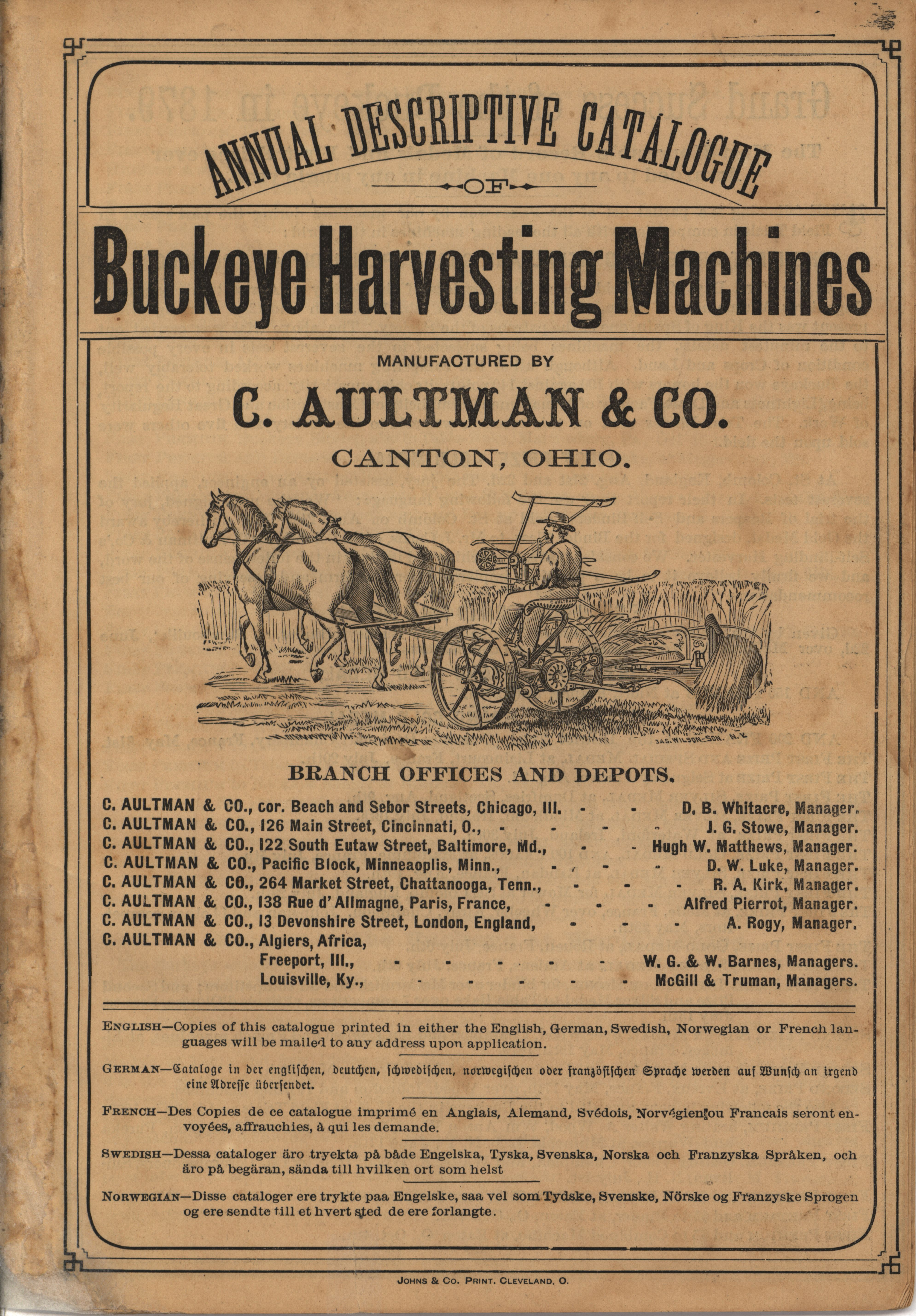 - C. Aultman and Company Buckeye Harvesting Machines catalog