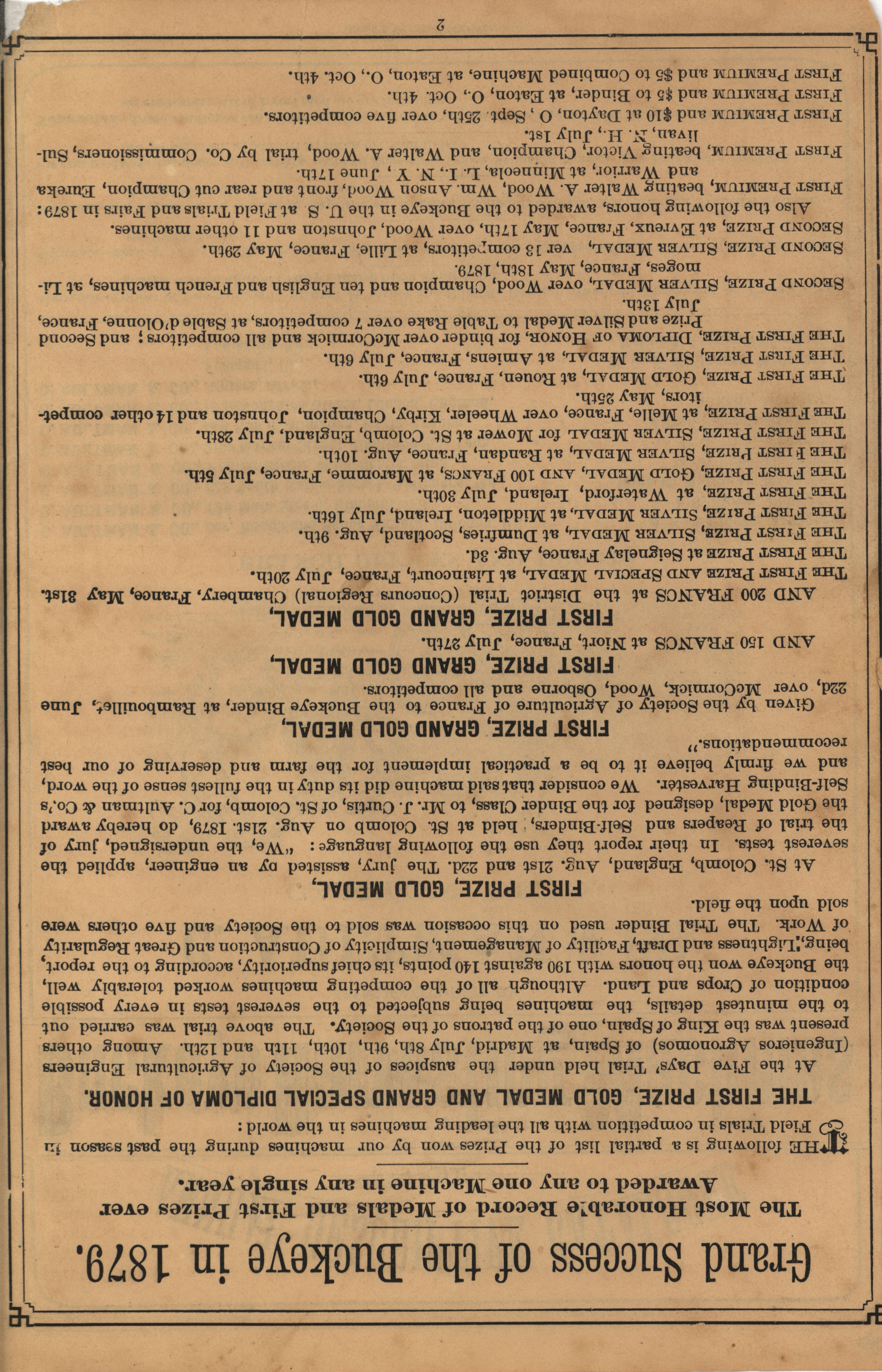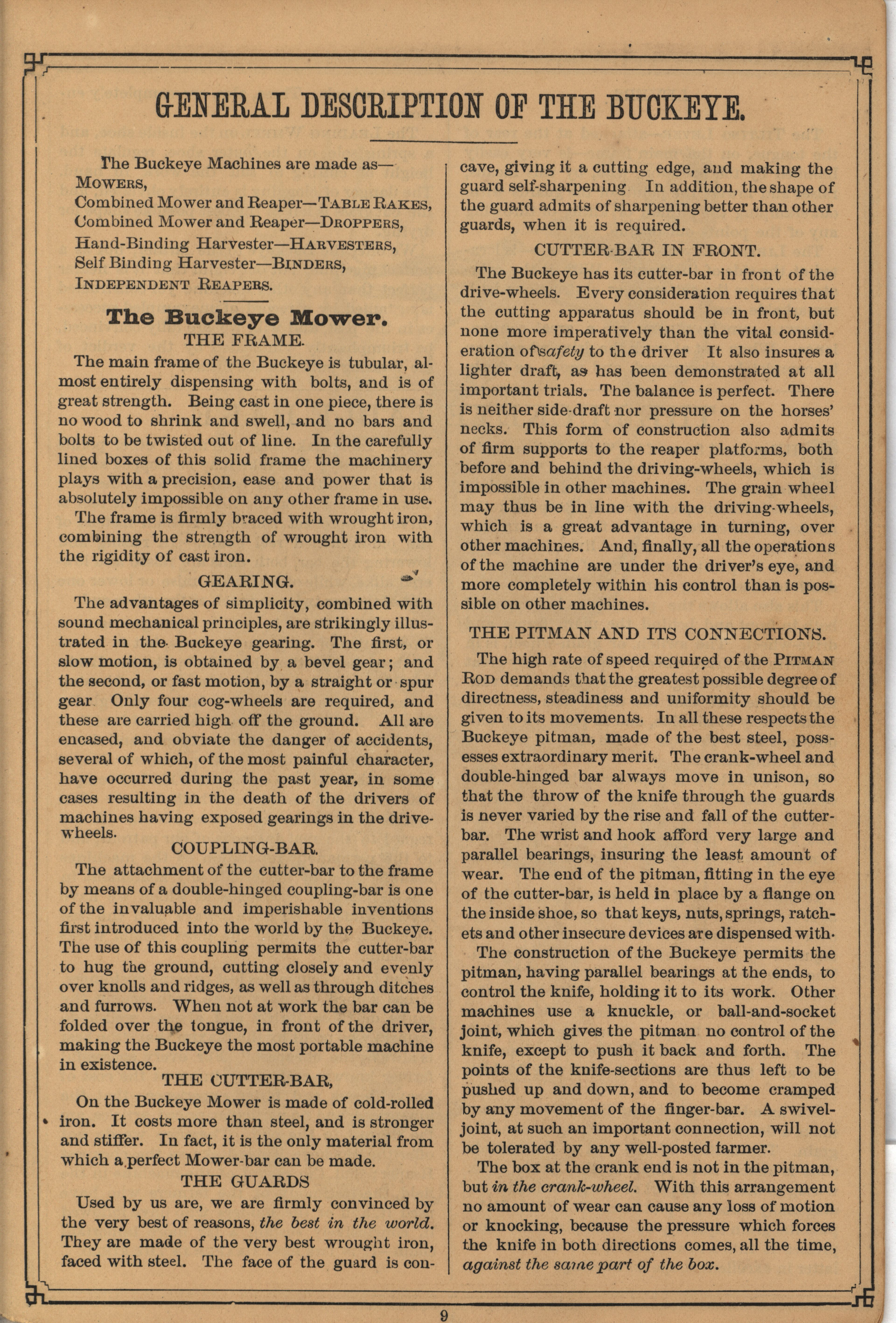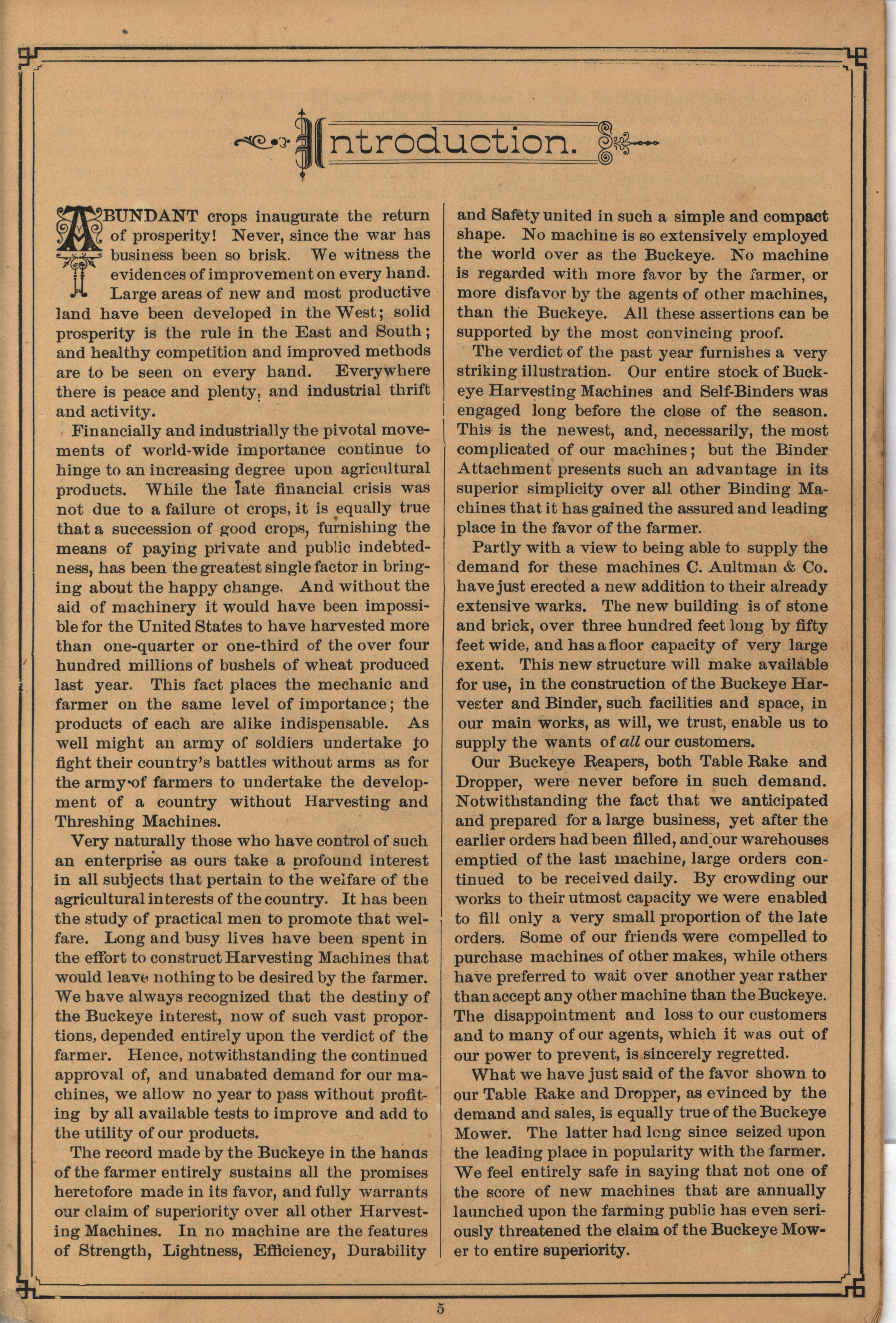- Catalog from 1880 by the C. Aultman and Company describing their Buckeye Harvesting Machines product line, includes illustrations.