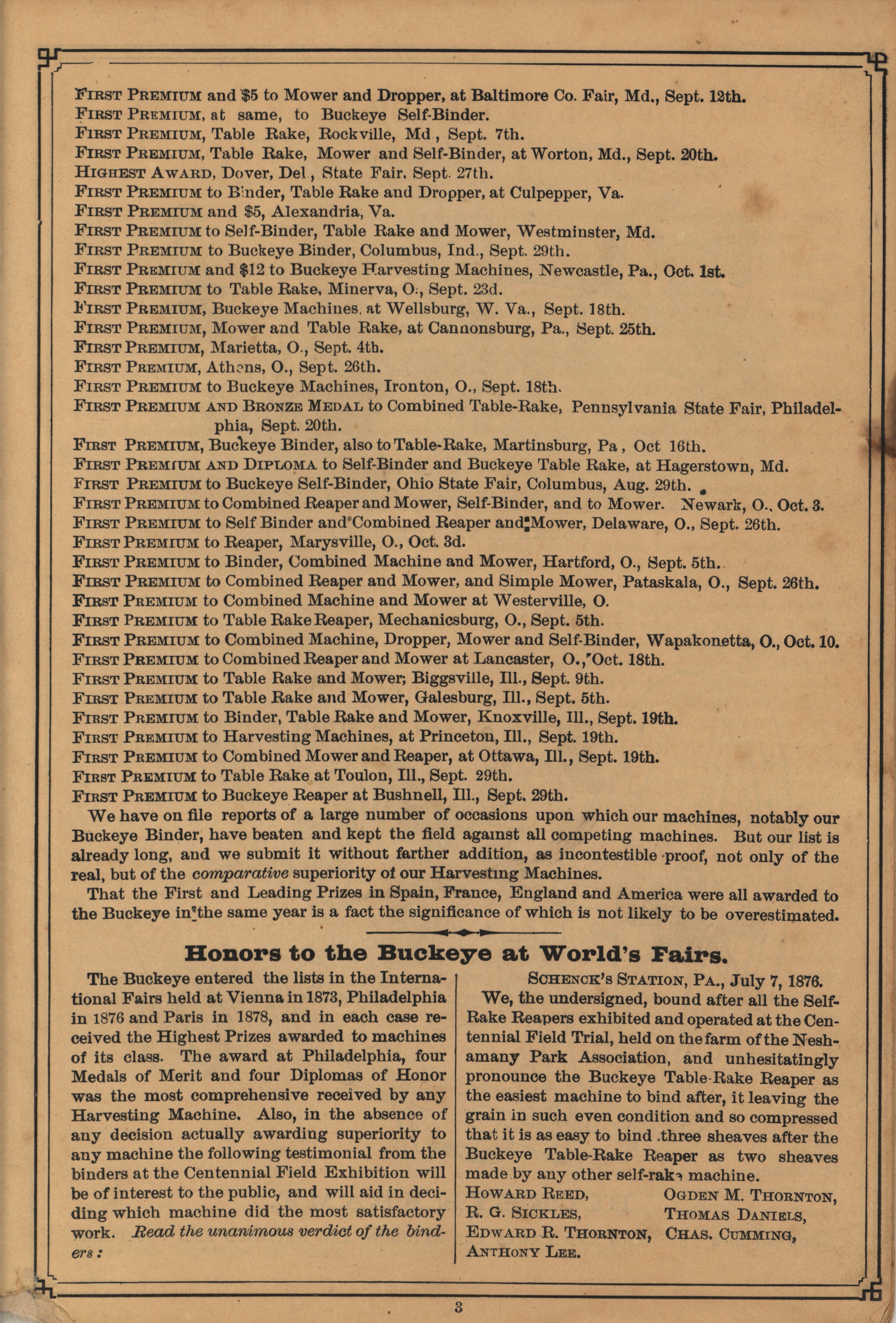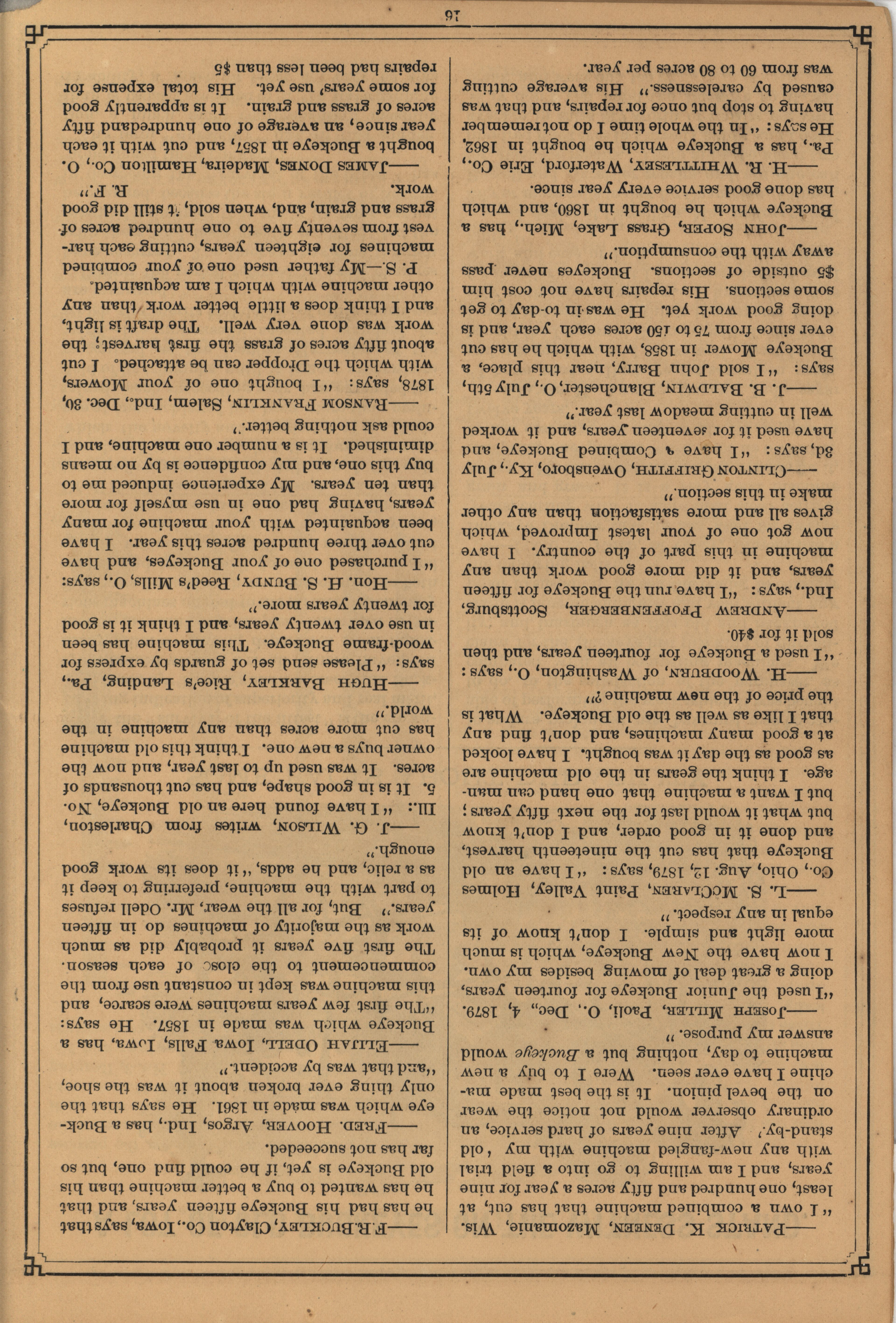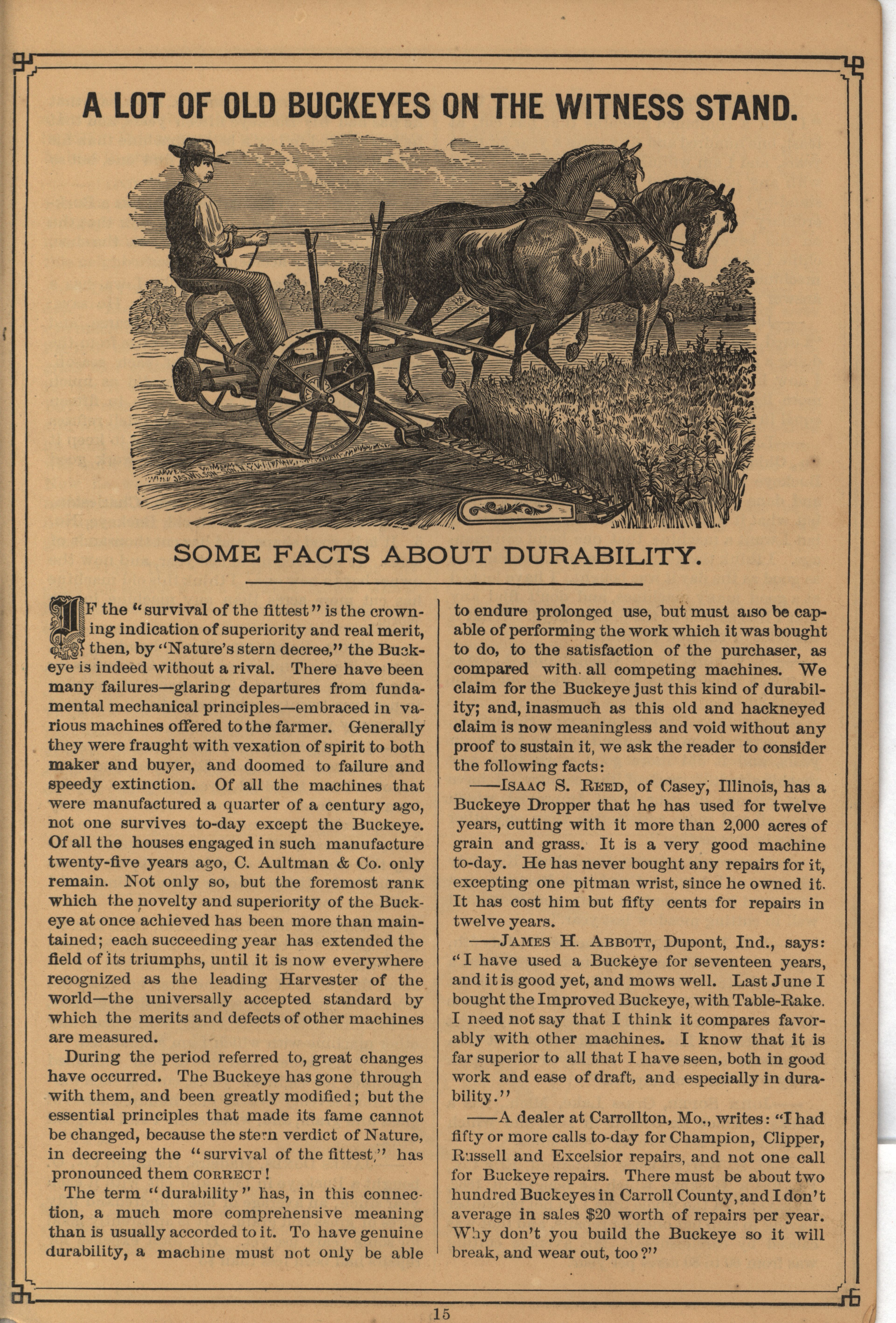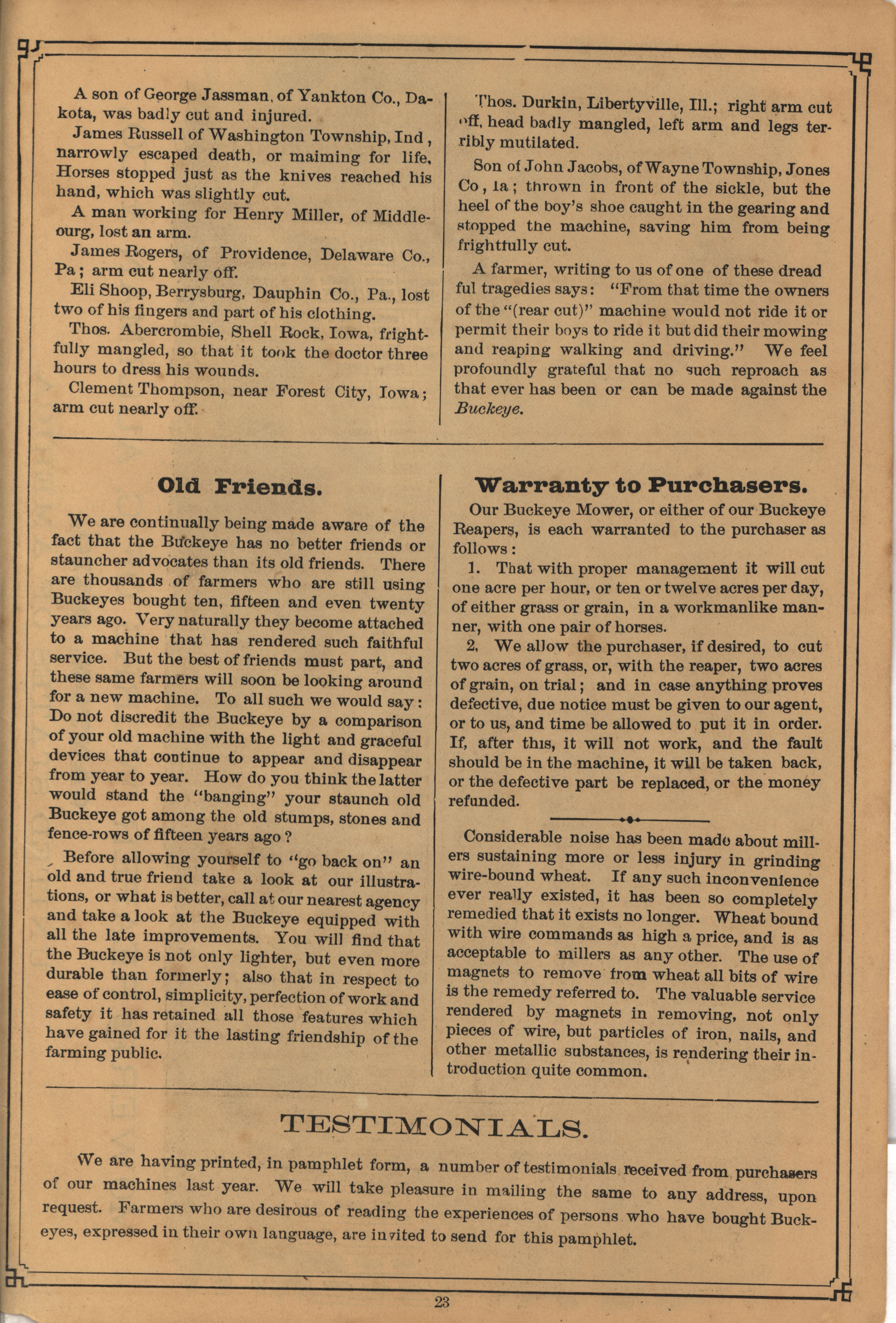 - "C. Aultman and Company Buckeye Harvesting Machines catalog", Agricultural Machinery Literature Collection, Iowa State University Library Digital Collections