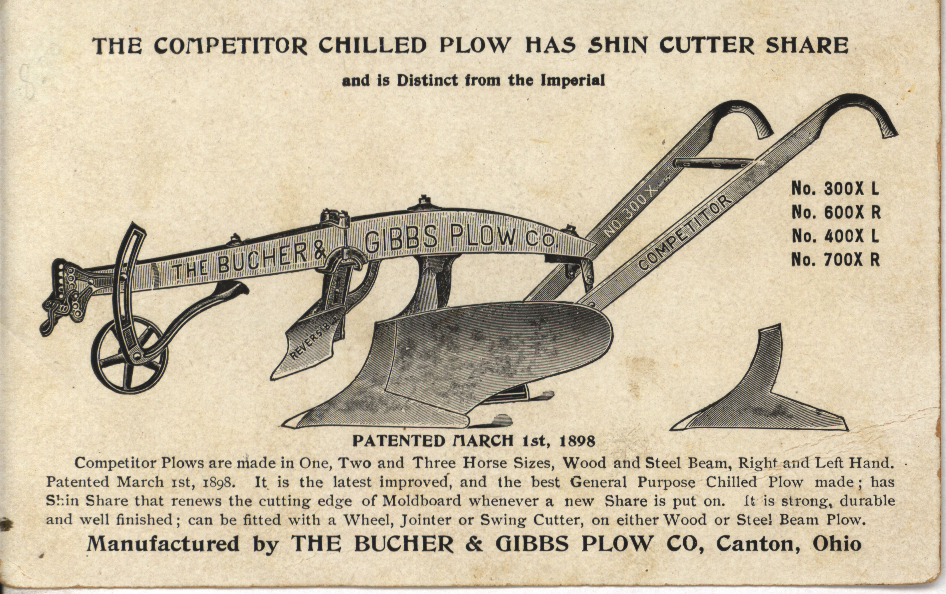 - "Bucher and Gibbs Plow Company Competitor Chilled Plow advertisement card", Agricultural Machinery Literature Collection, Iowa State University Library Digital Collections