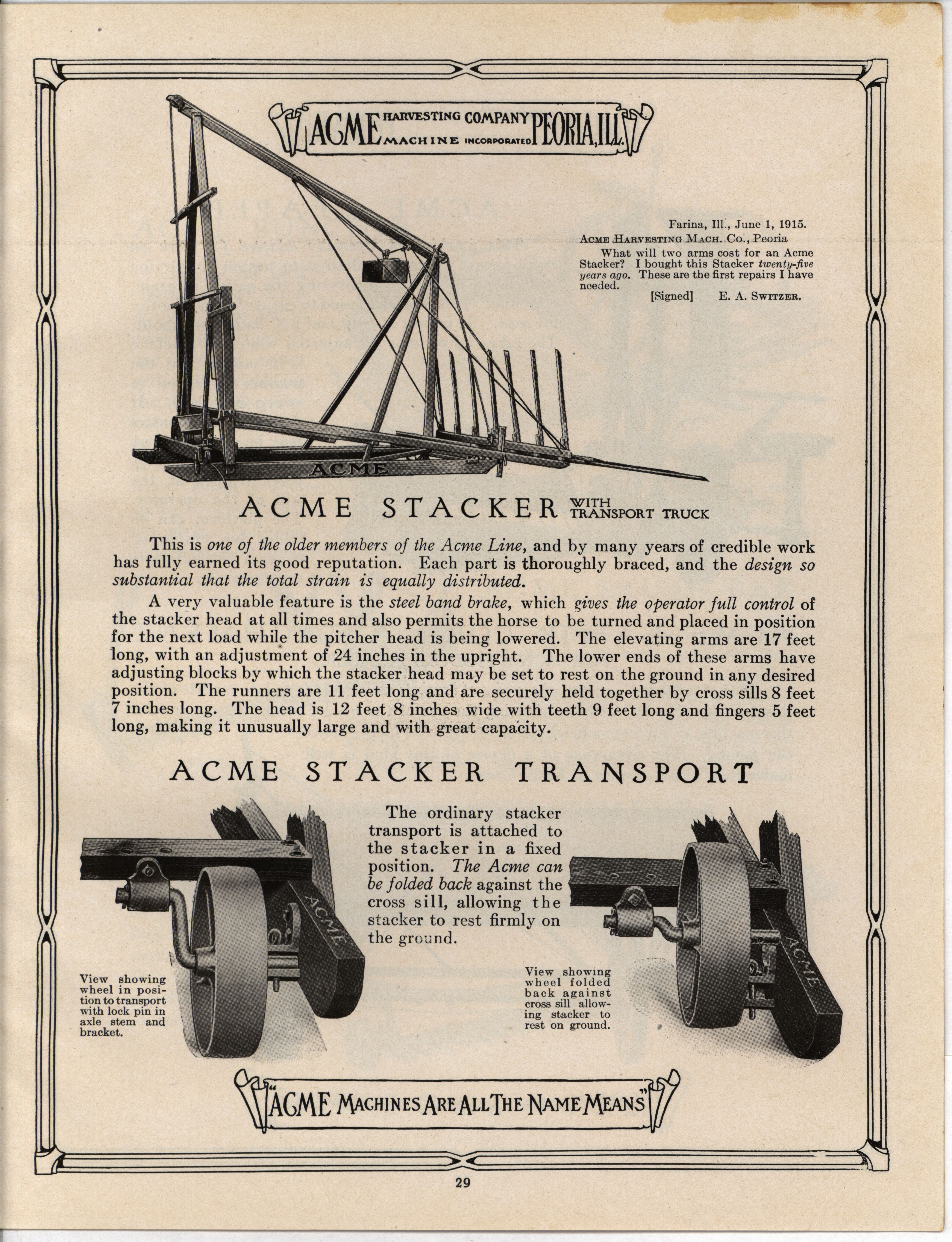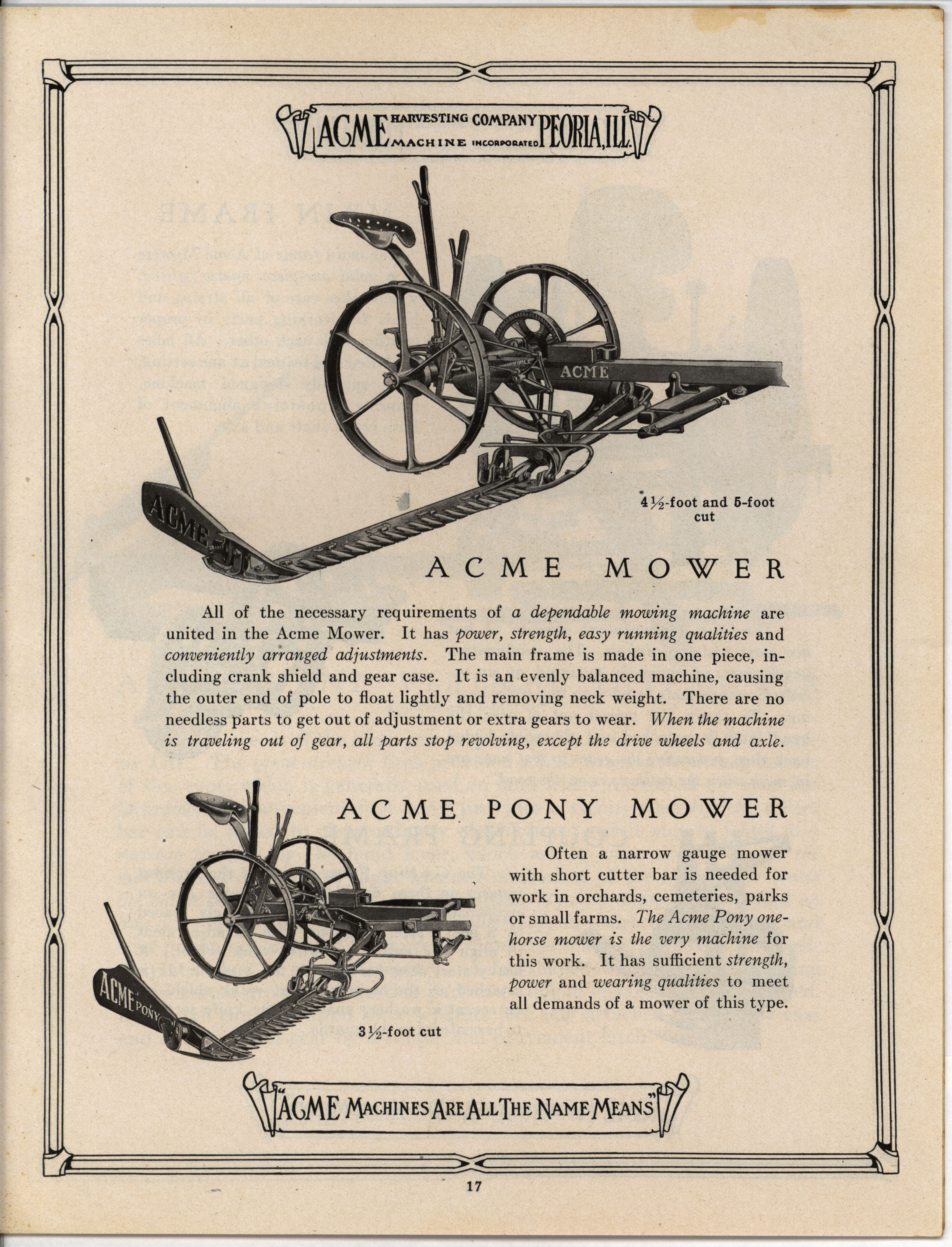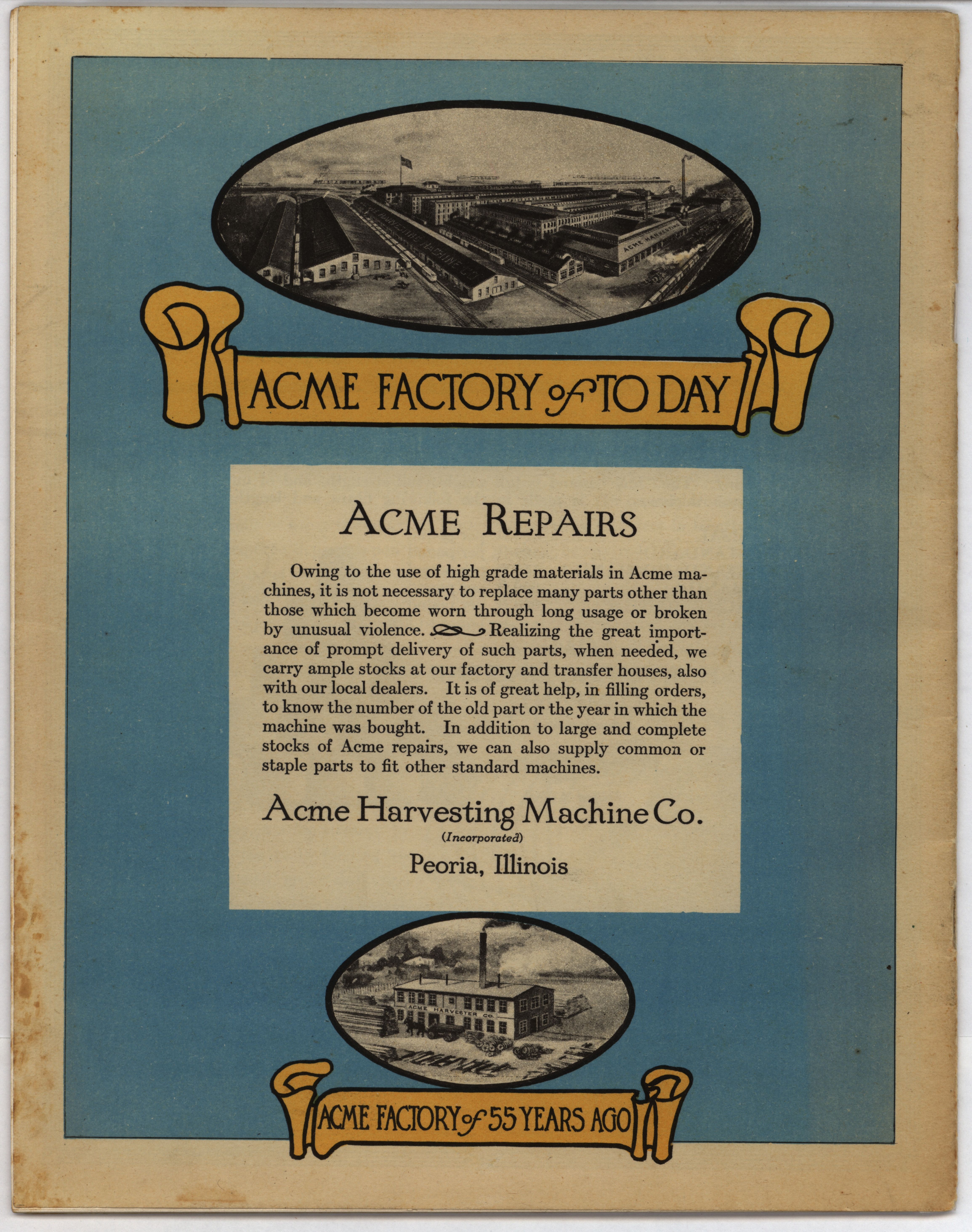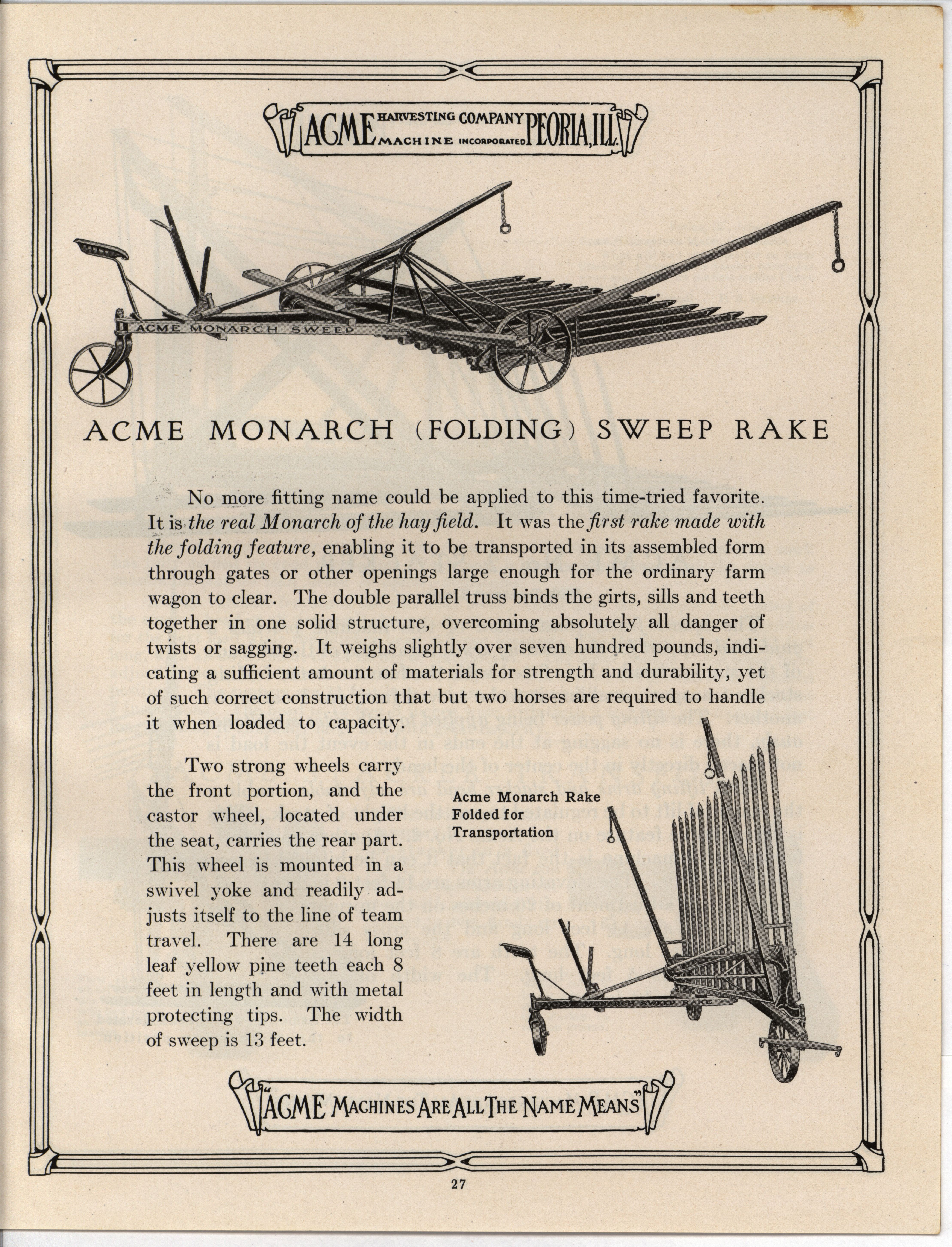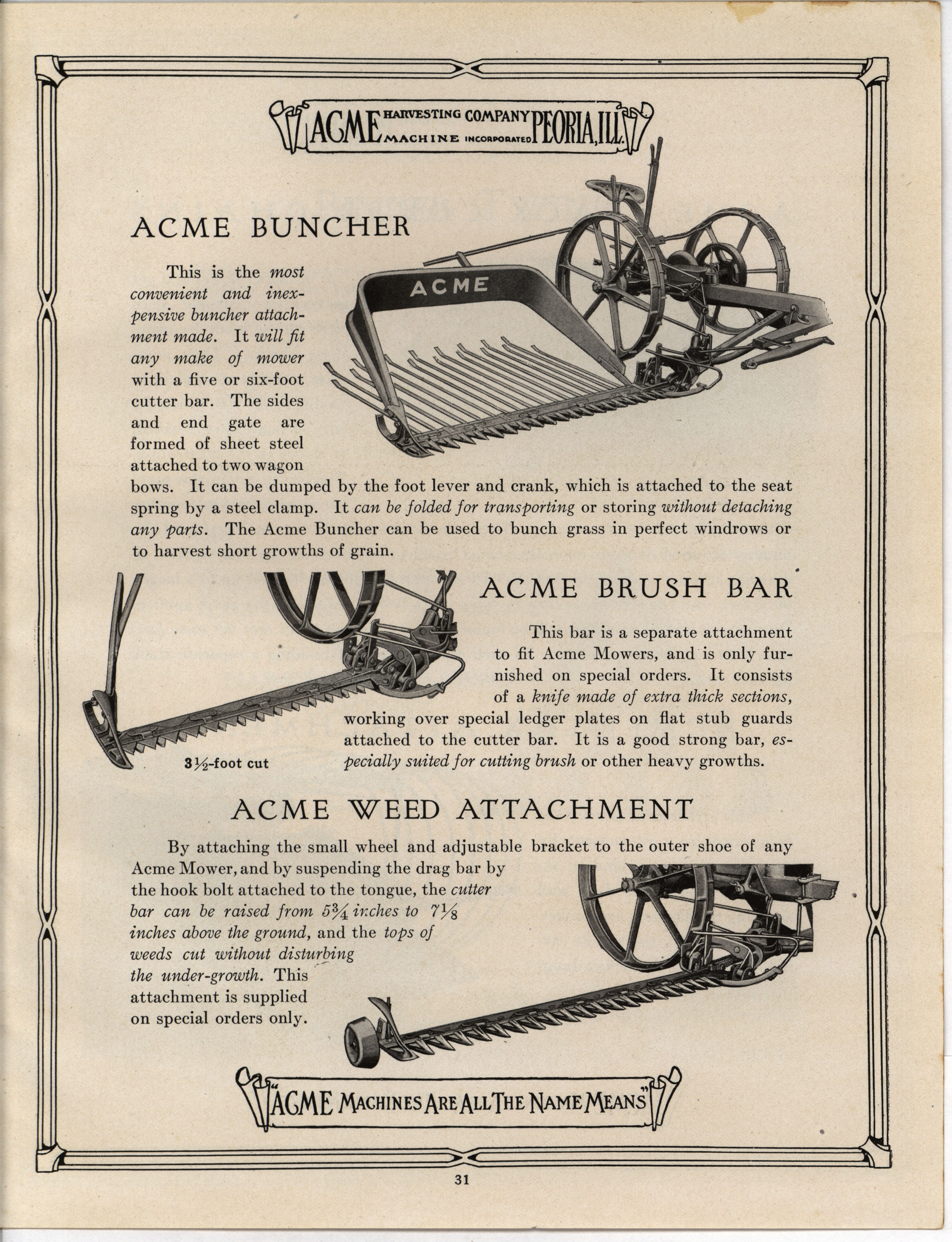 - "Acme harvesting machines and hay tools", Agricultural Machinery Literature Collection, Iowa State University Library Digital Collections