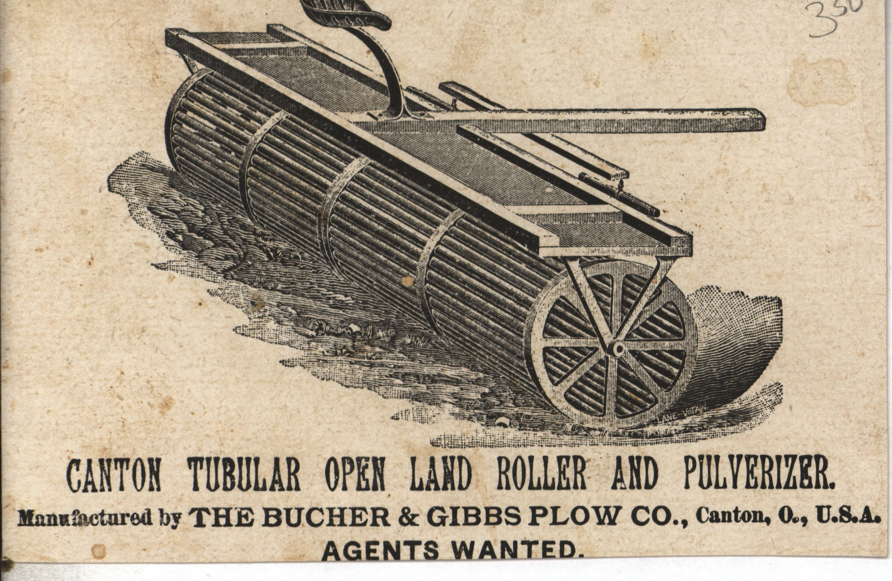 - "Bucher and Gibbs Plow Company roller and pulverizer advertisement card", Agricultural Machinery Literature Collection, Iowa State University Library Digital Collections