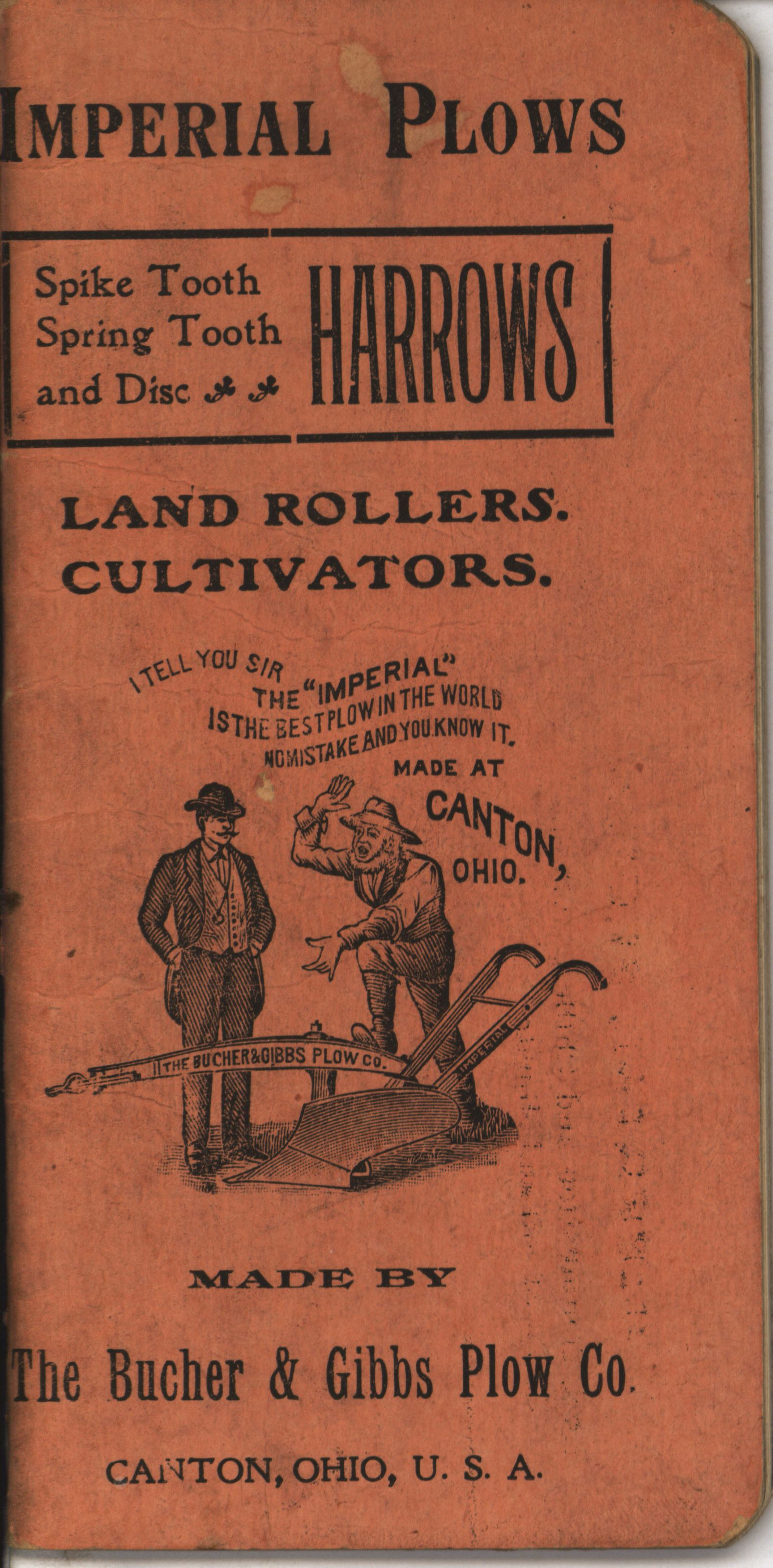- Bucher and Gibbs Plow Company Imperial plows, harrows, land rollers, and cultivators pocket notebook