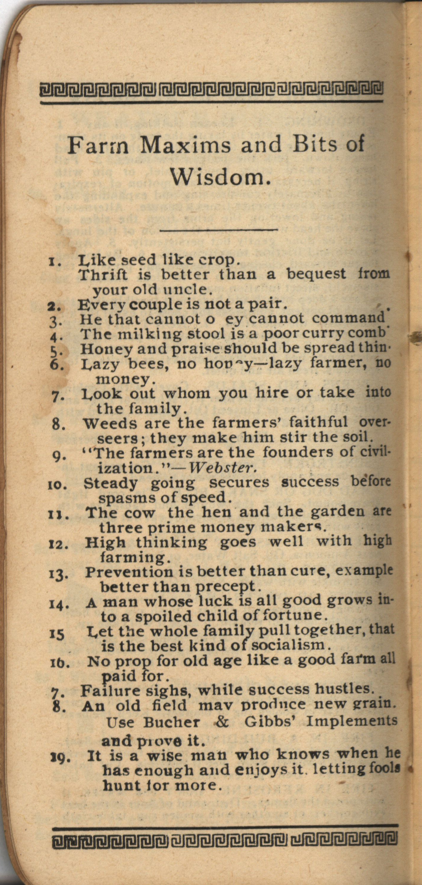 - "Bucher and Gibbs Plow Company Imperial plow pocket notebook", Agricultural Machinery Literature Collection, Iowa State University Library Digital Collections