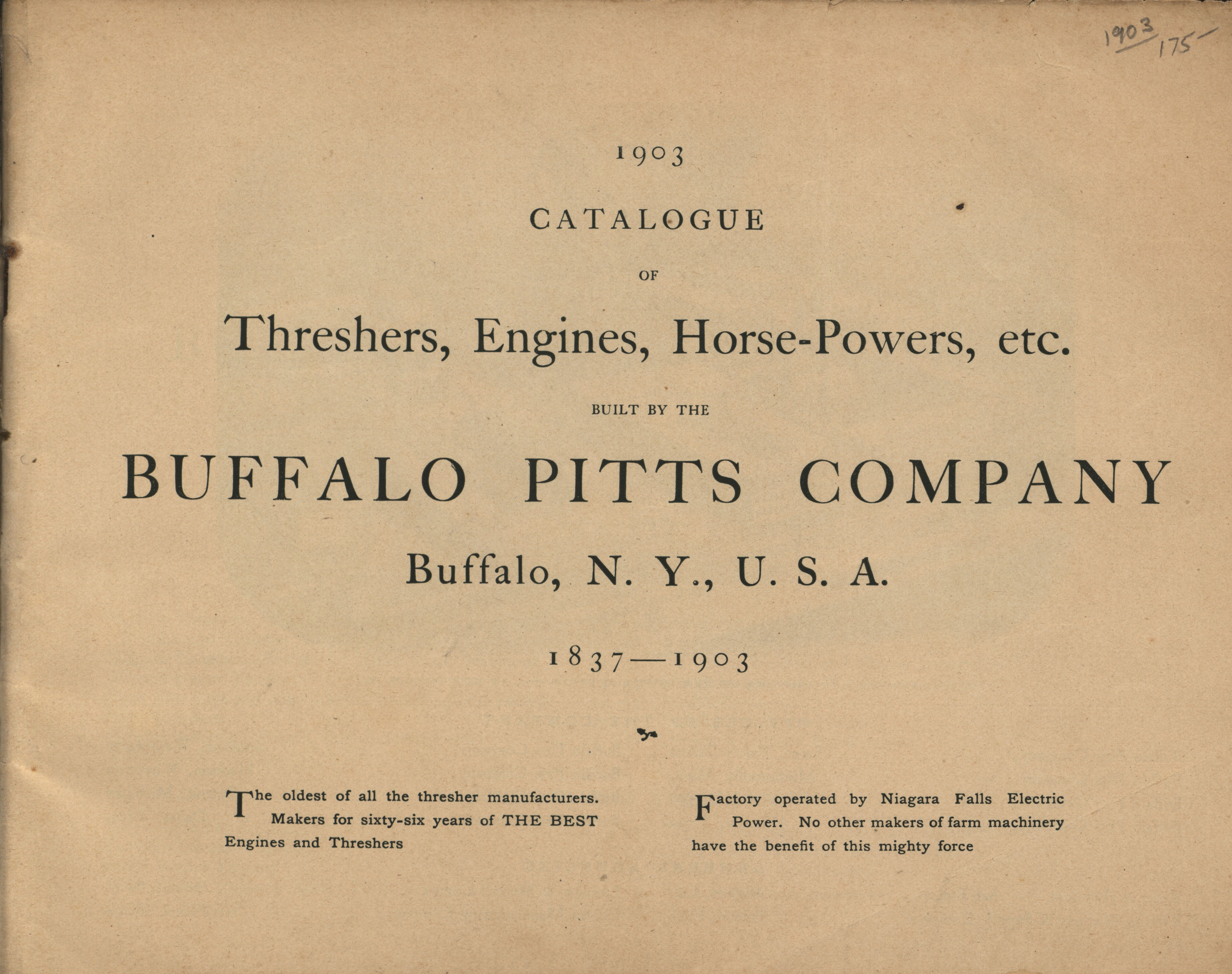 - Buffalo Pitts Company threshers, engines, horse-powers, etc 1903 catalog