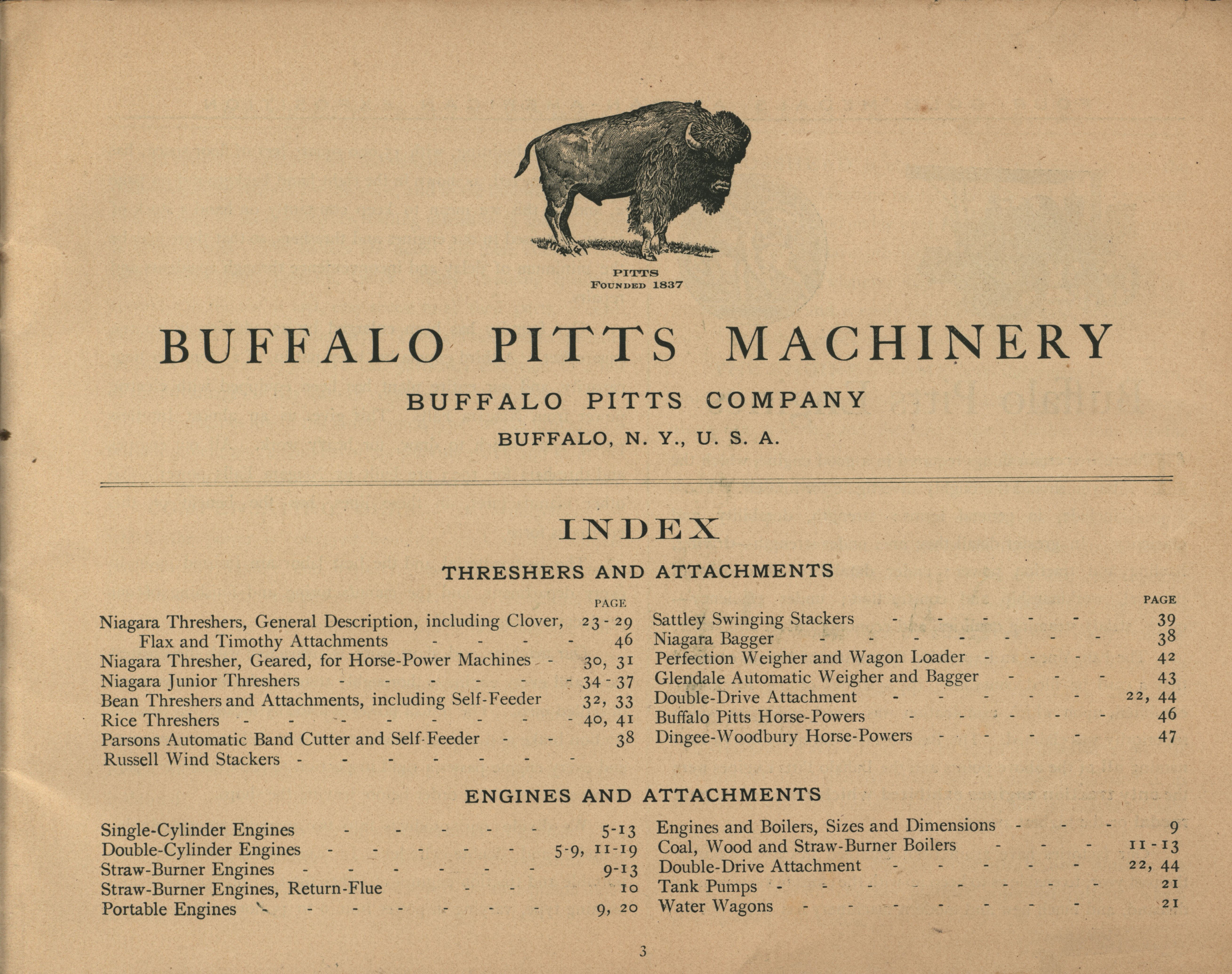 - "Buffalo Pitts Company threshers, engines, horse-powers, etc 1903 catalog", Agricultural Machinery Literature Collection, Iowa State University Library Digital Collections