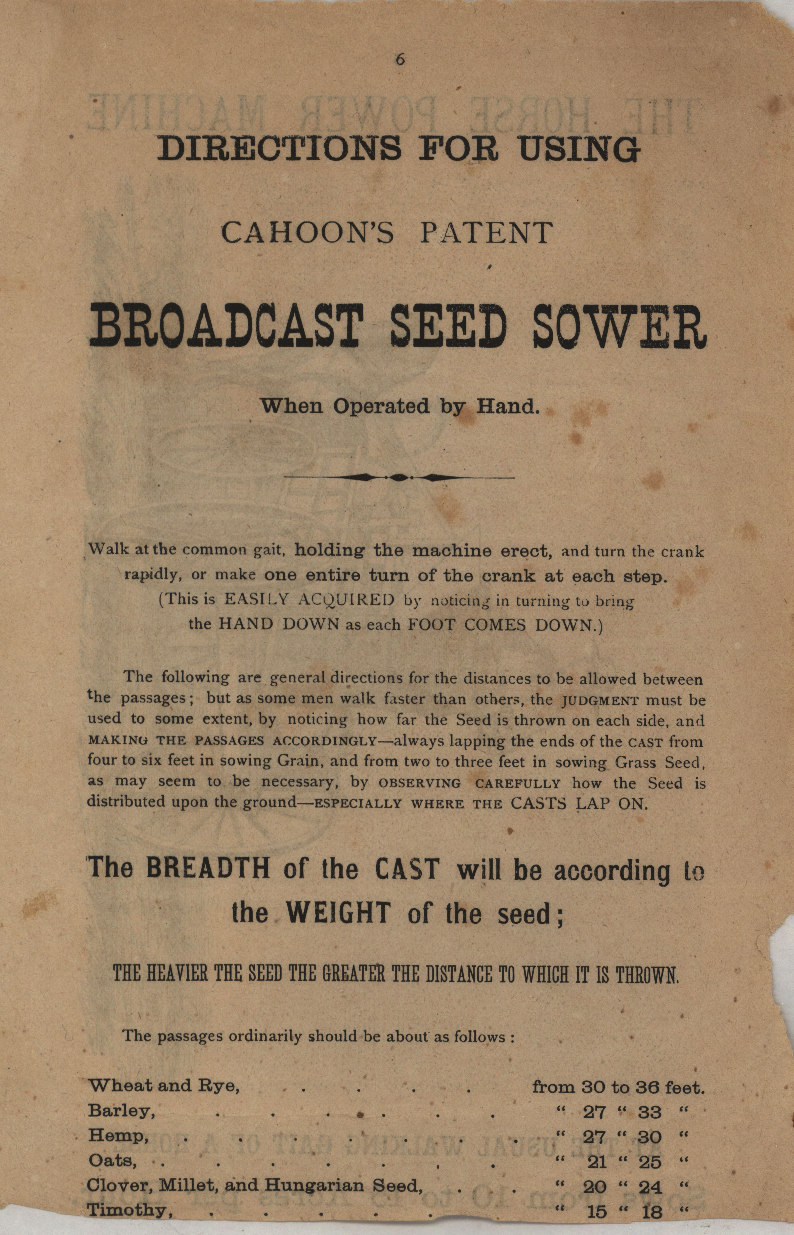 - "Pages from a catalog for a Cahoon's broadcast seed sower", Agricultural Machinery Literature Collection, Iowa State University Library Digital Collections