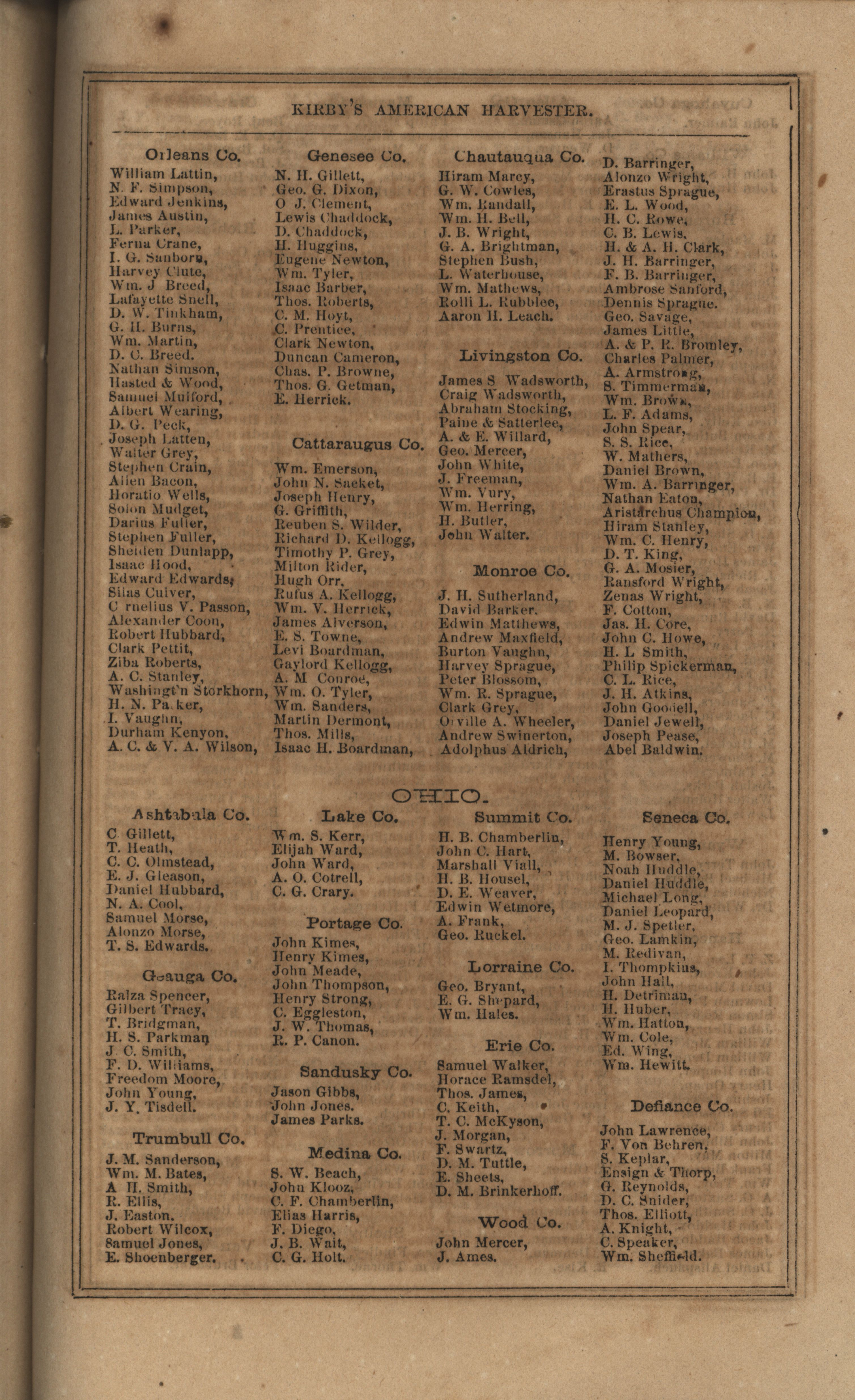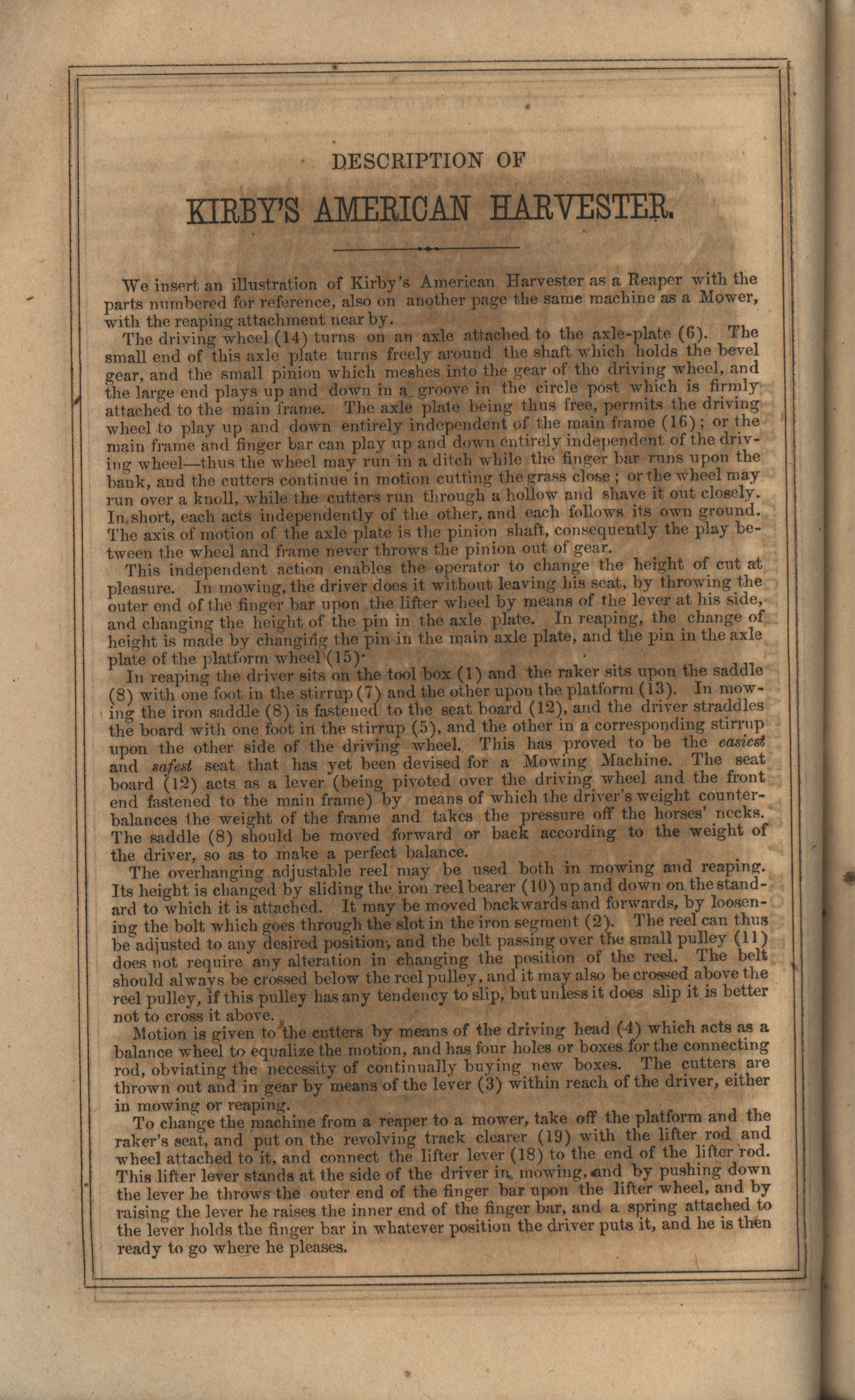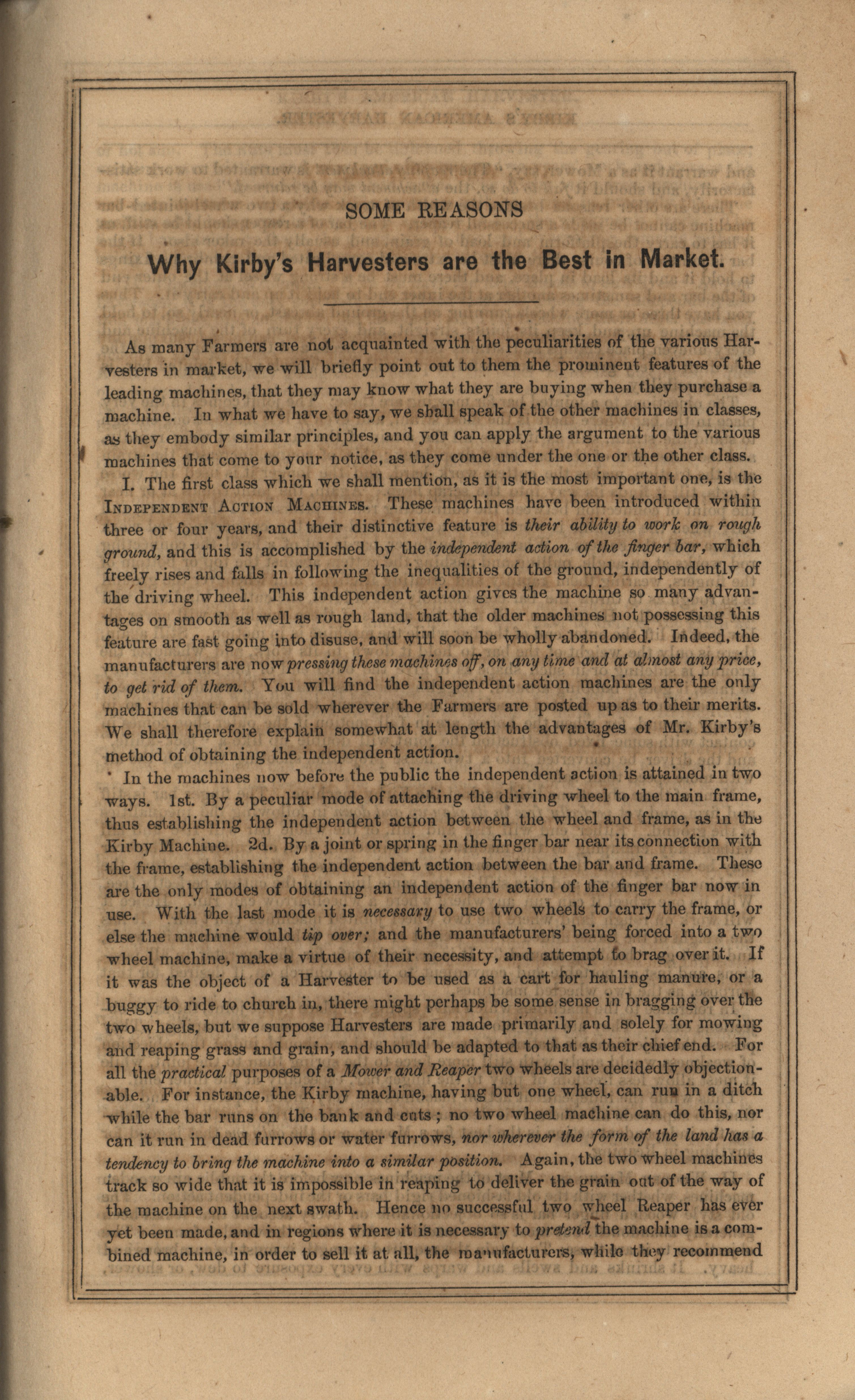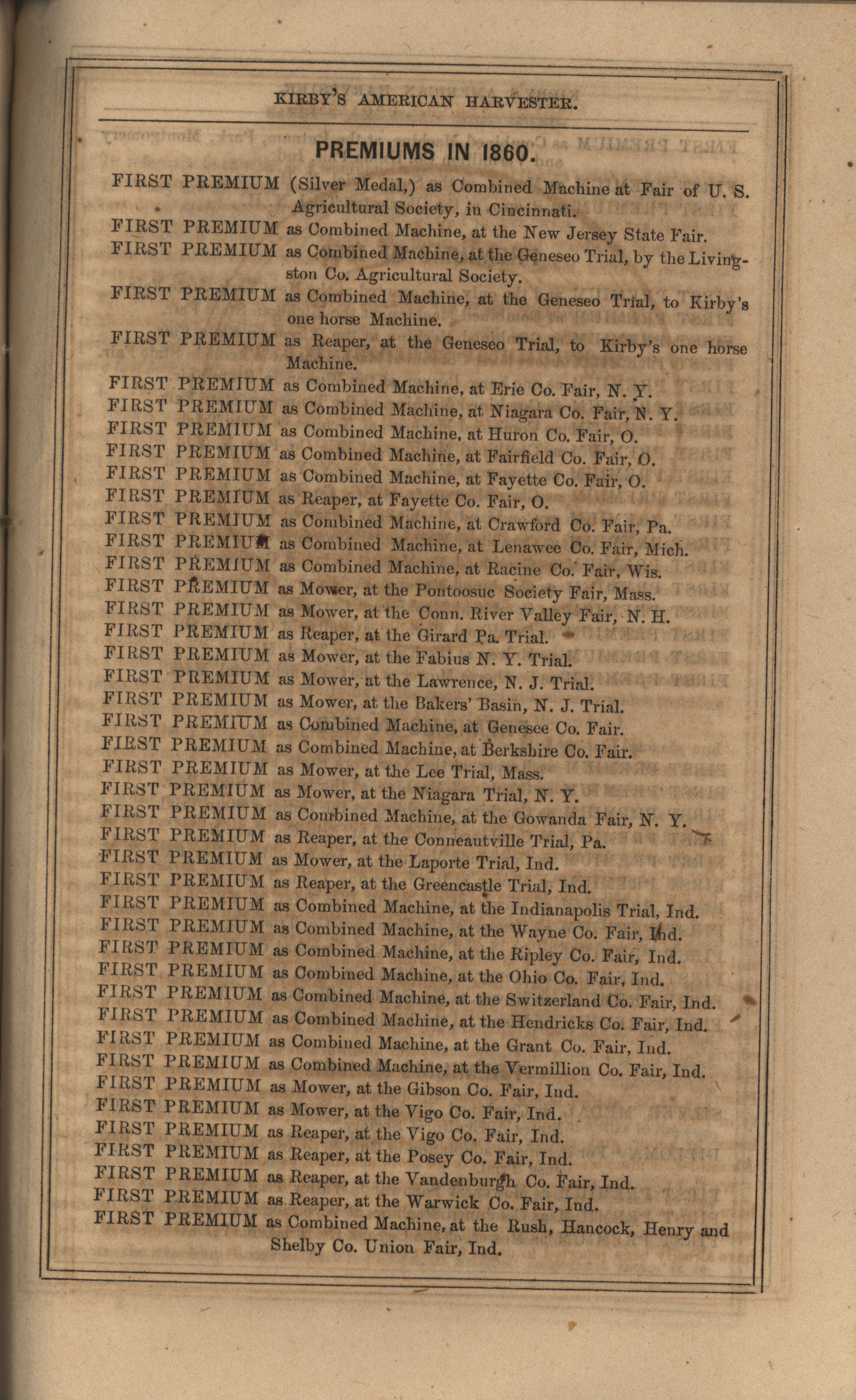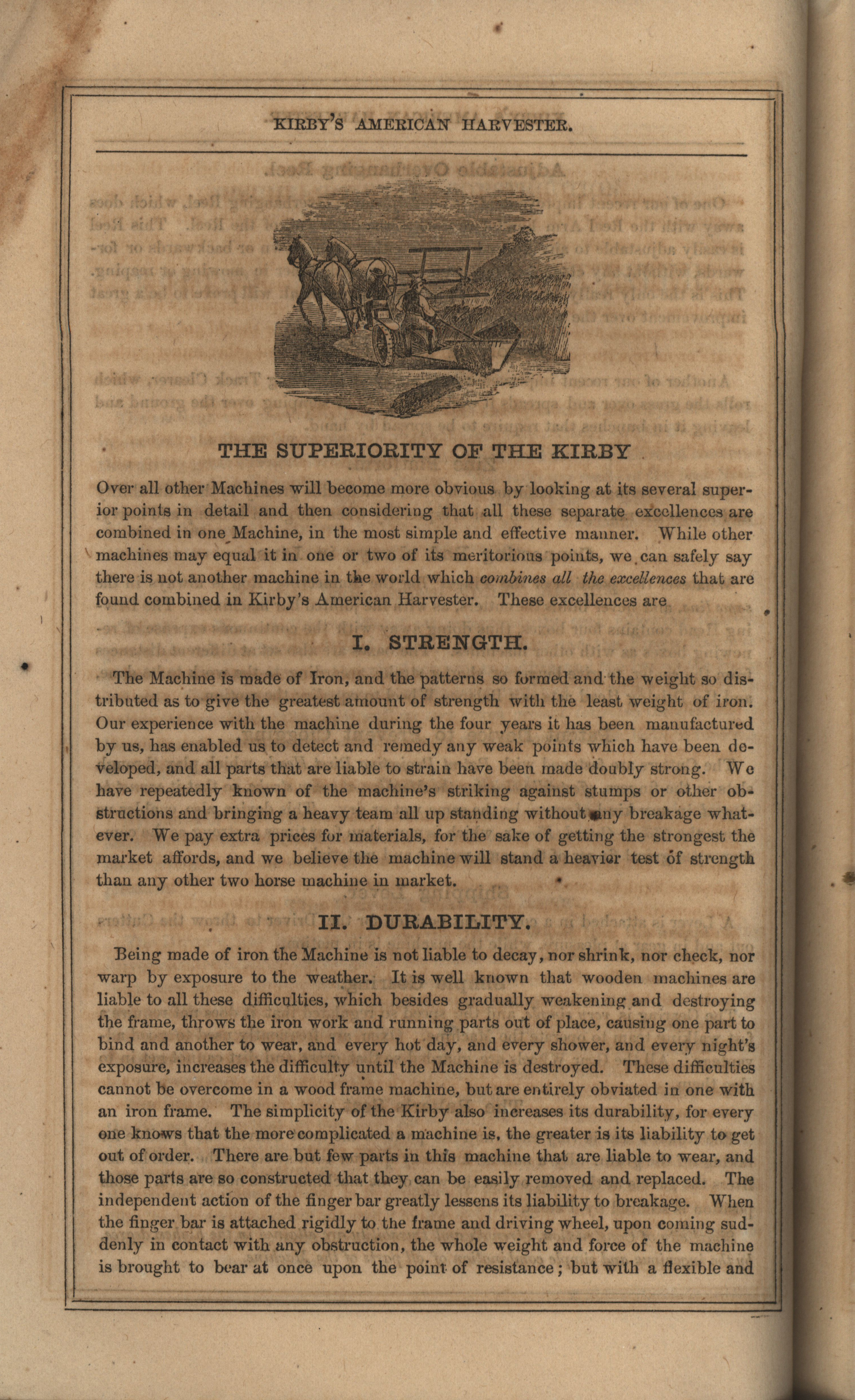- Catalog describing Kirby's American Harvester product line offered by Buffalo Agricultural Machine, Works includes illustrations.