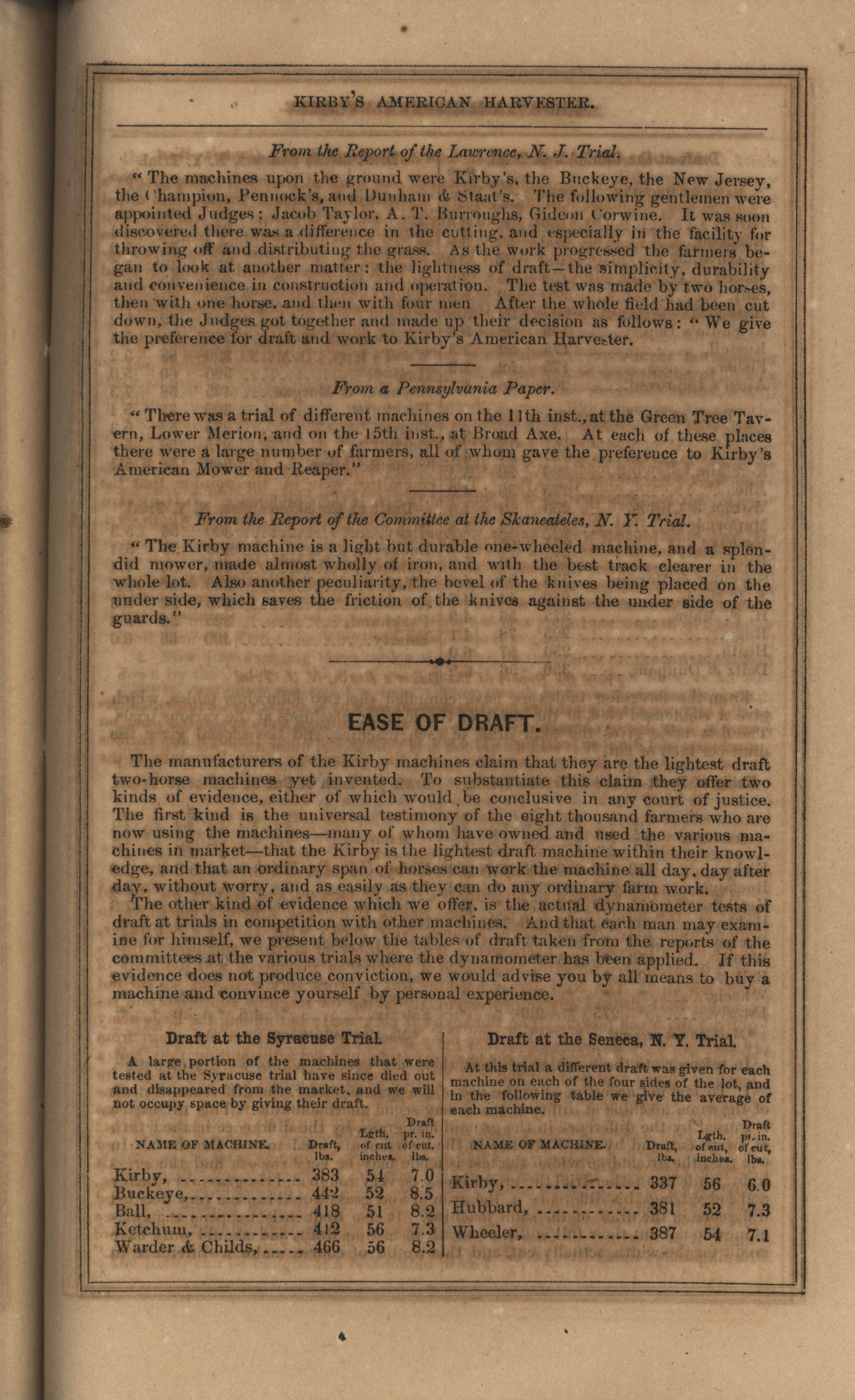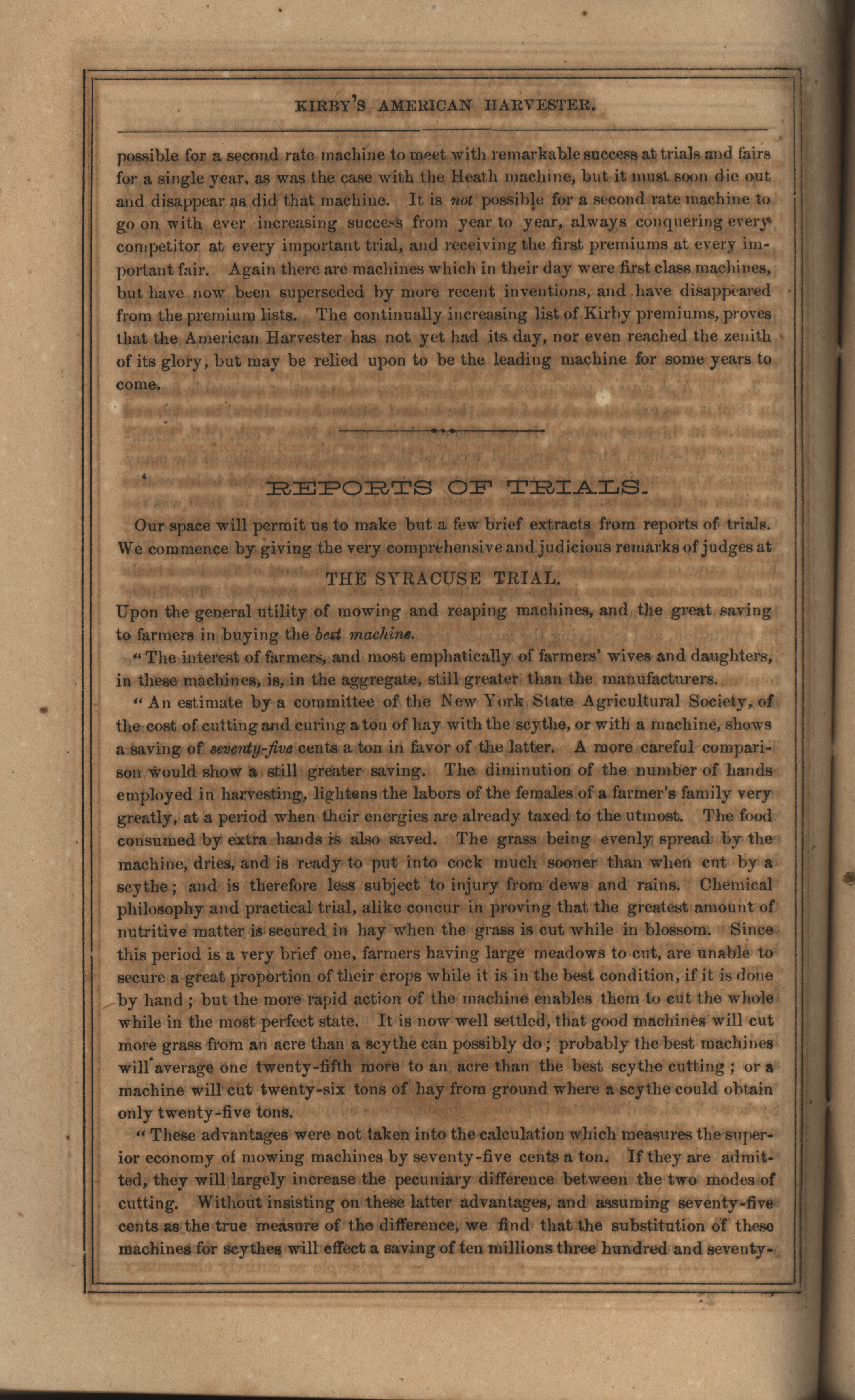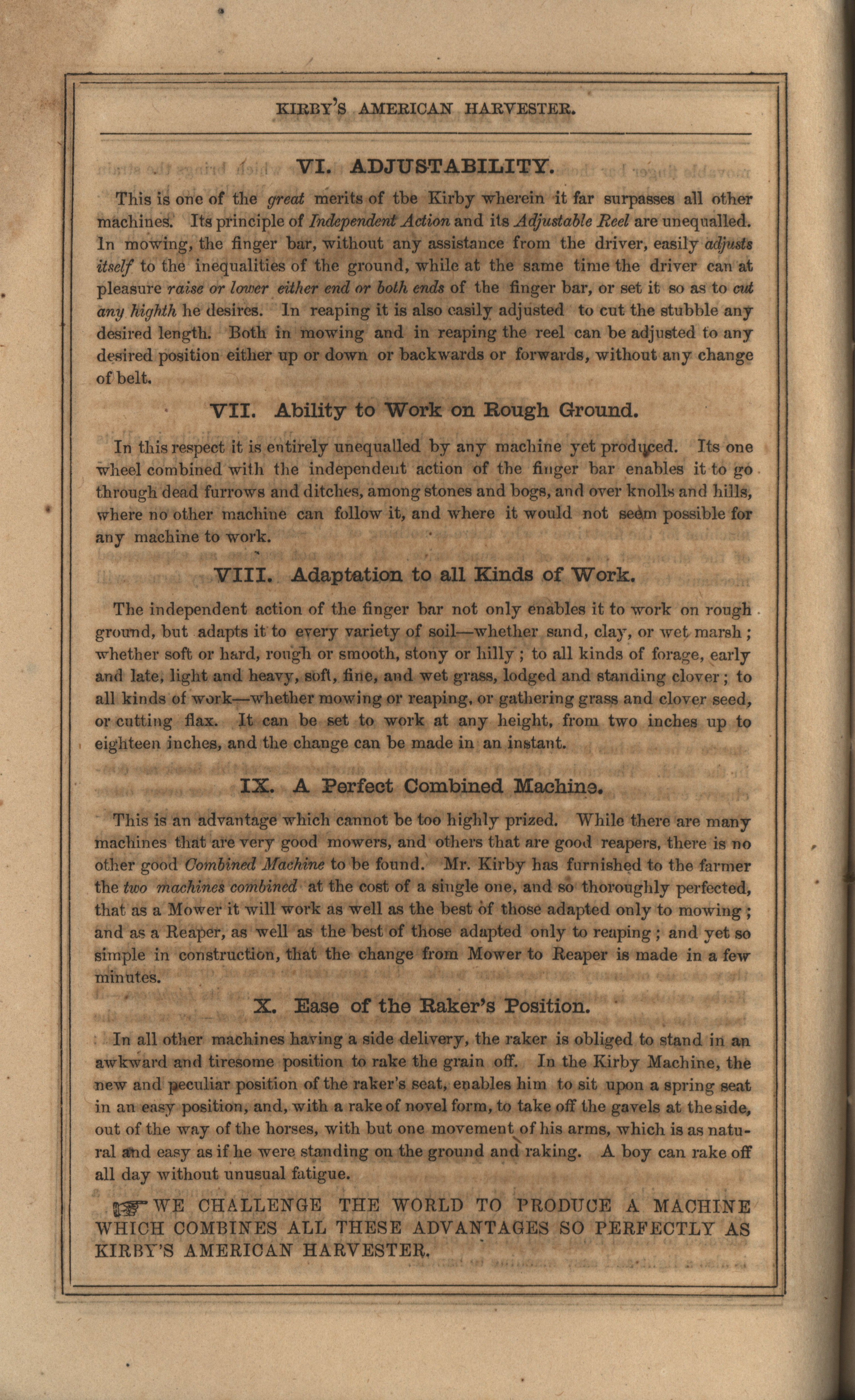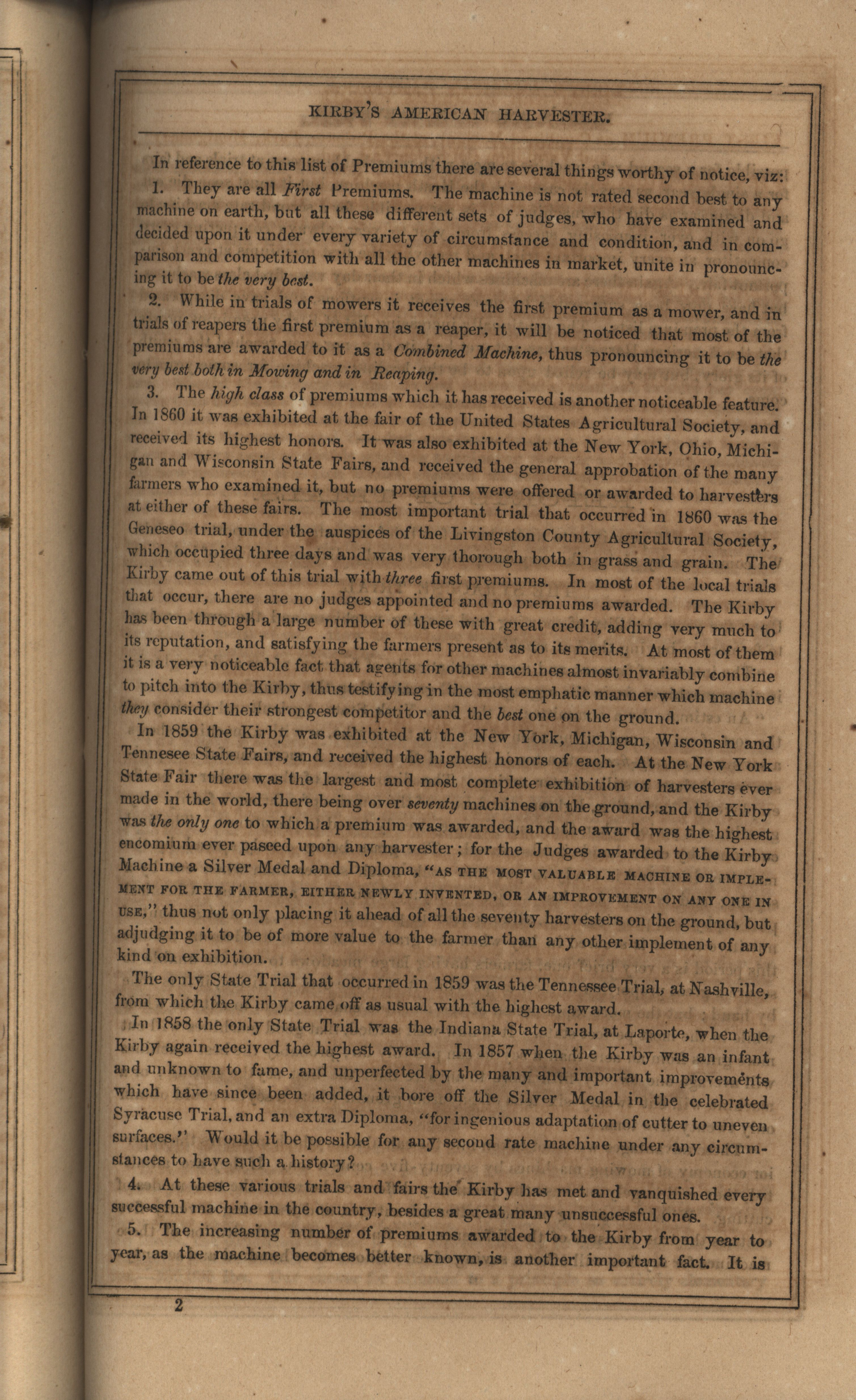 - Catalog describing Kirby's American Harvester product line offered by Buffalo Agricultural Machine, Works includes illustrations.