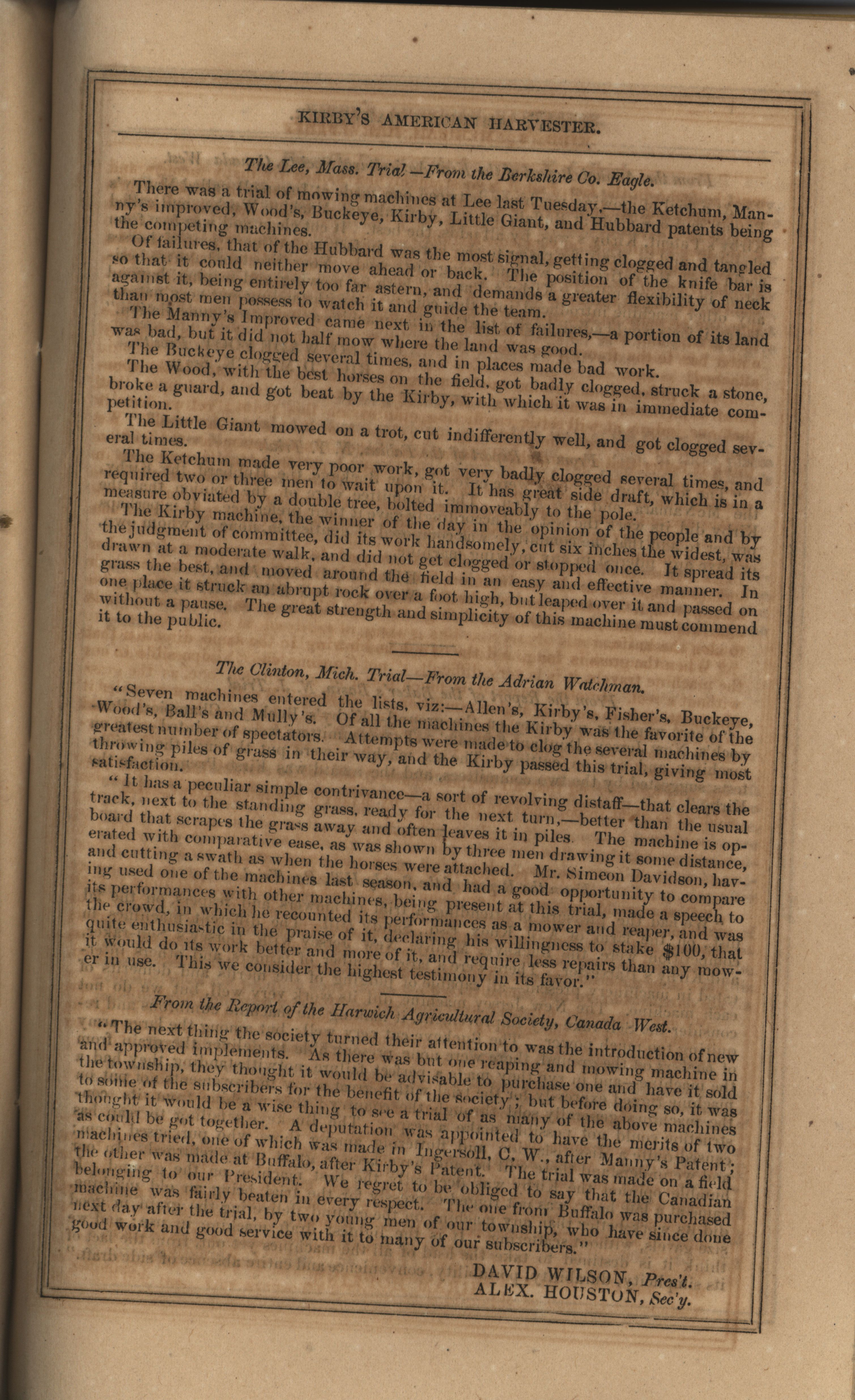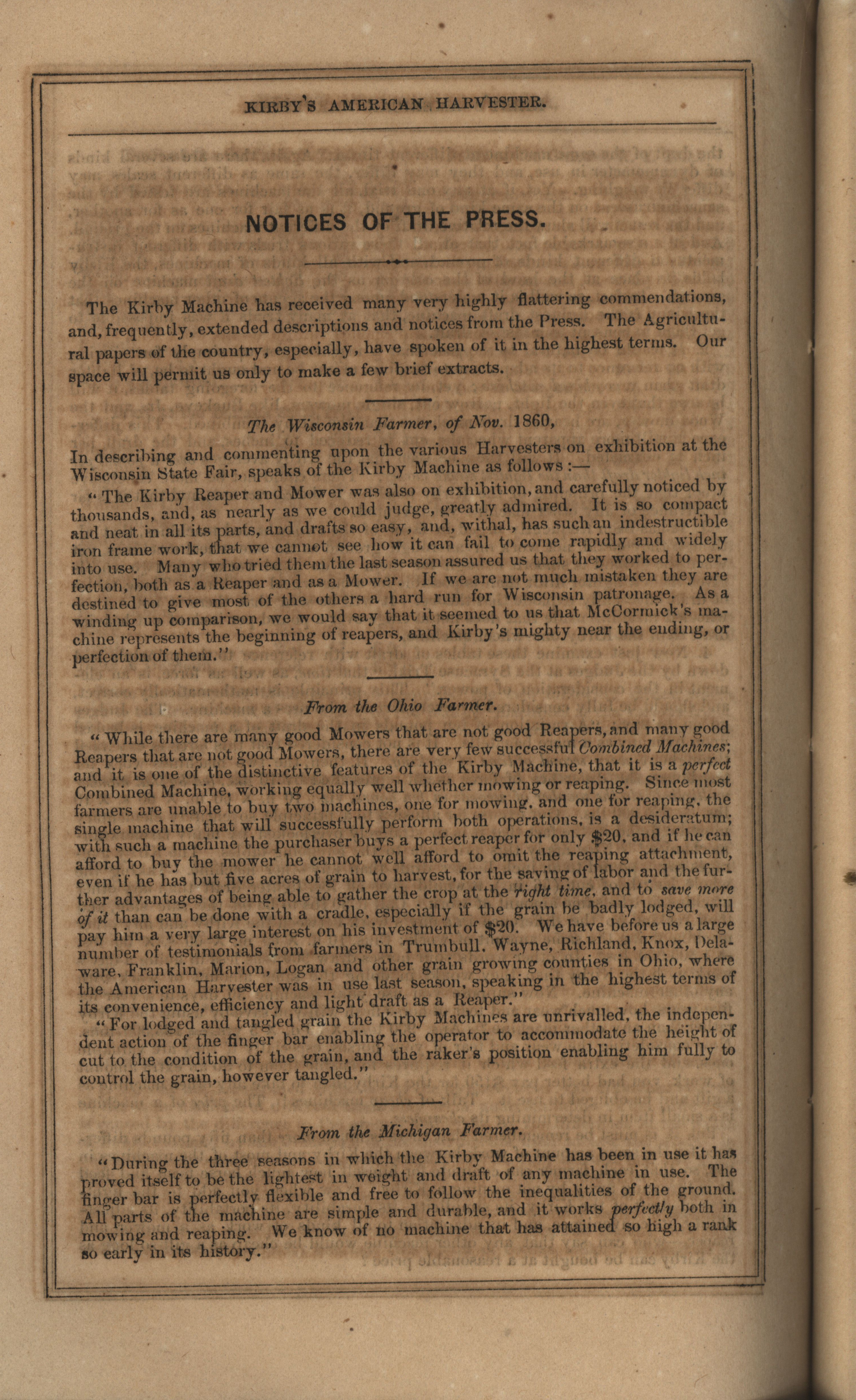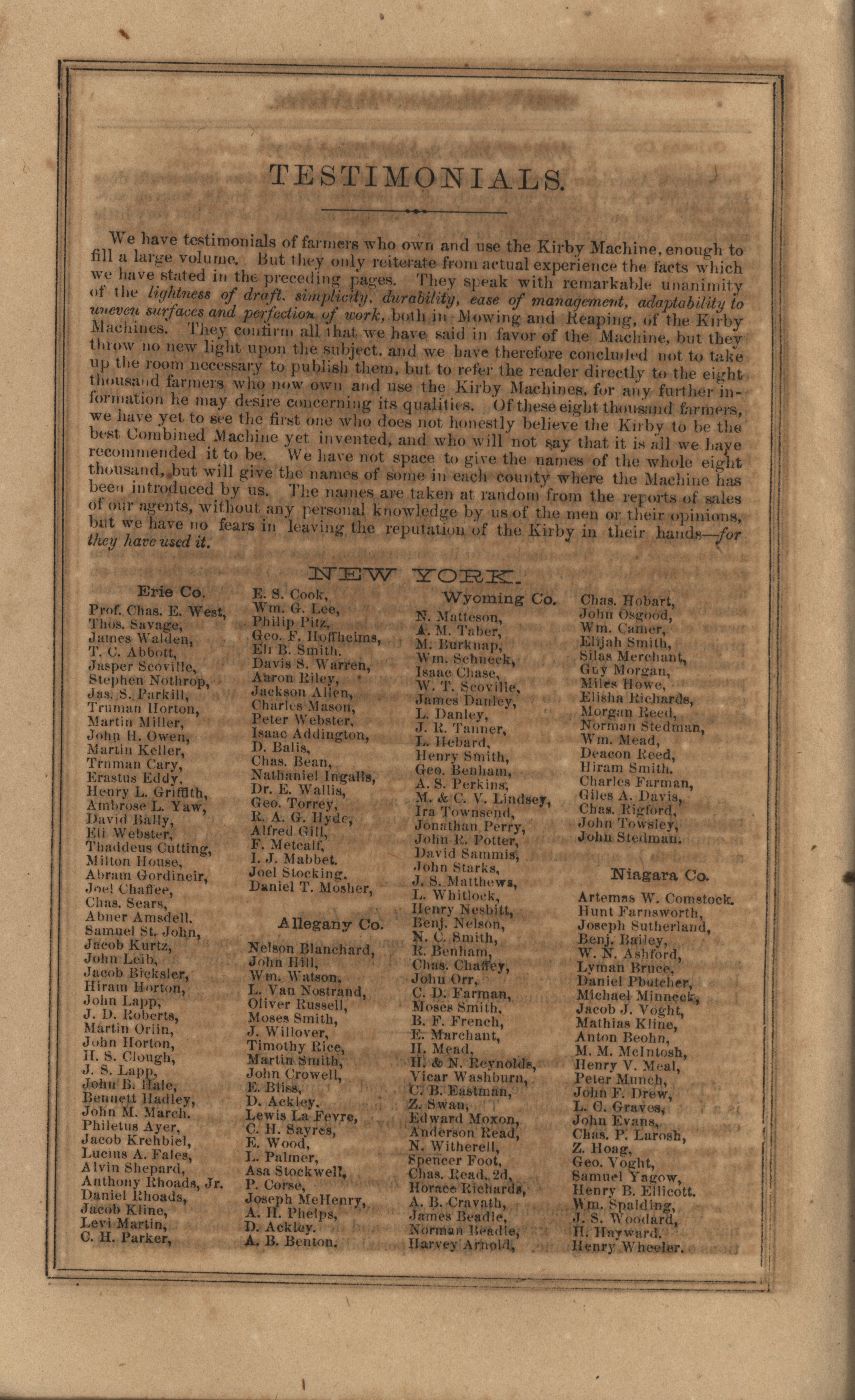 - "Buffalo Agricultural Machine Works Kirby's American Harvester catalog", Agricultural Machinery Literature Collection, Iowa State University Library Digital Collections