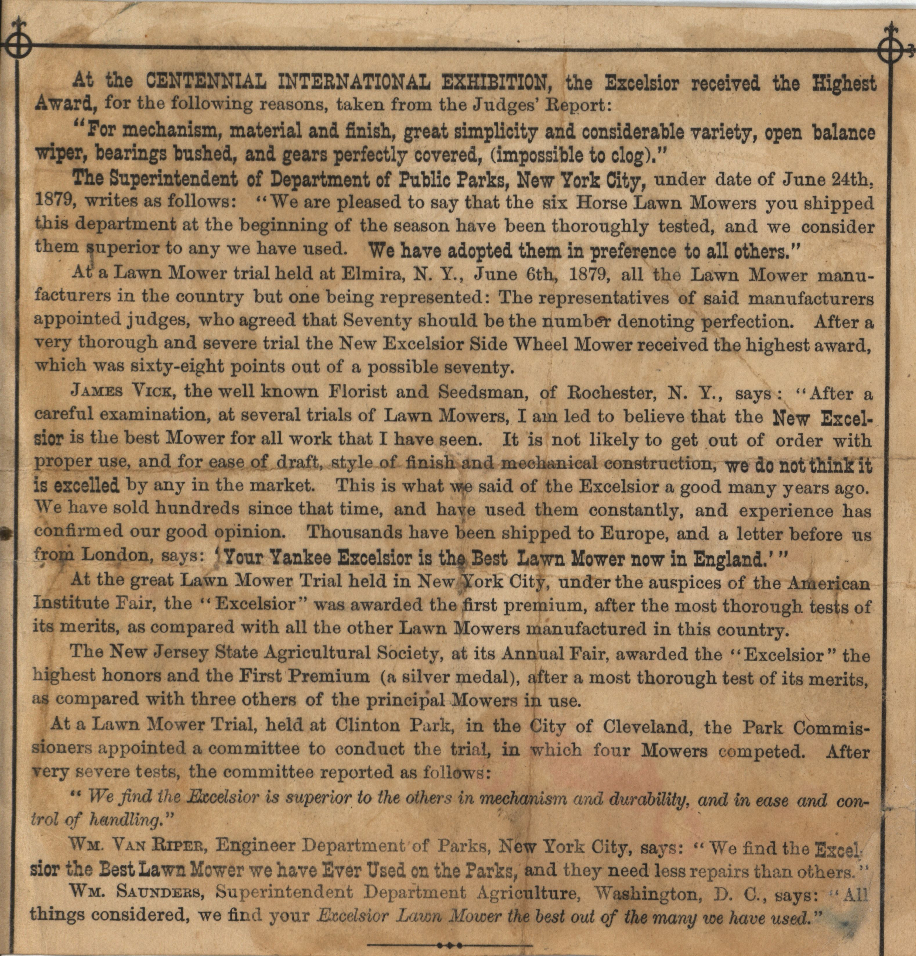 - "Illustrated advertisement for the Excelsior Lawn Mower", Agricultural Machinery Literature Collection, Iowa State University Library Digital Collections