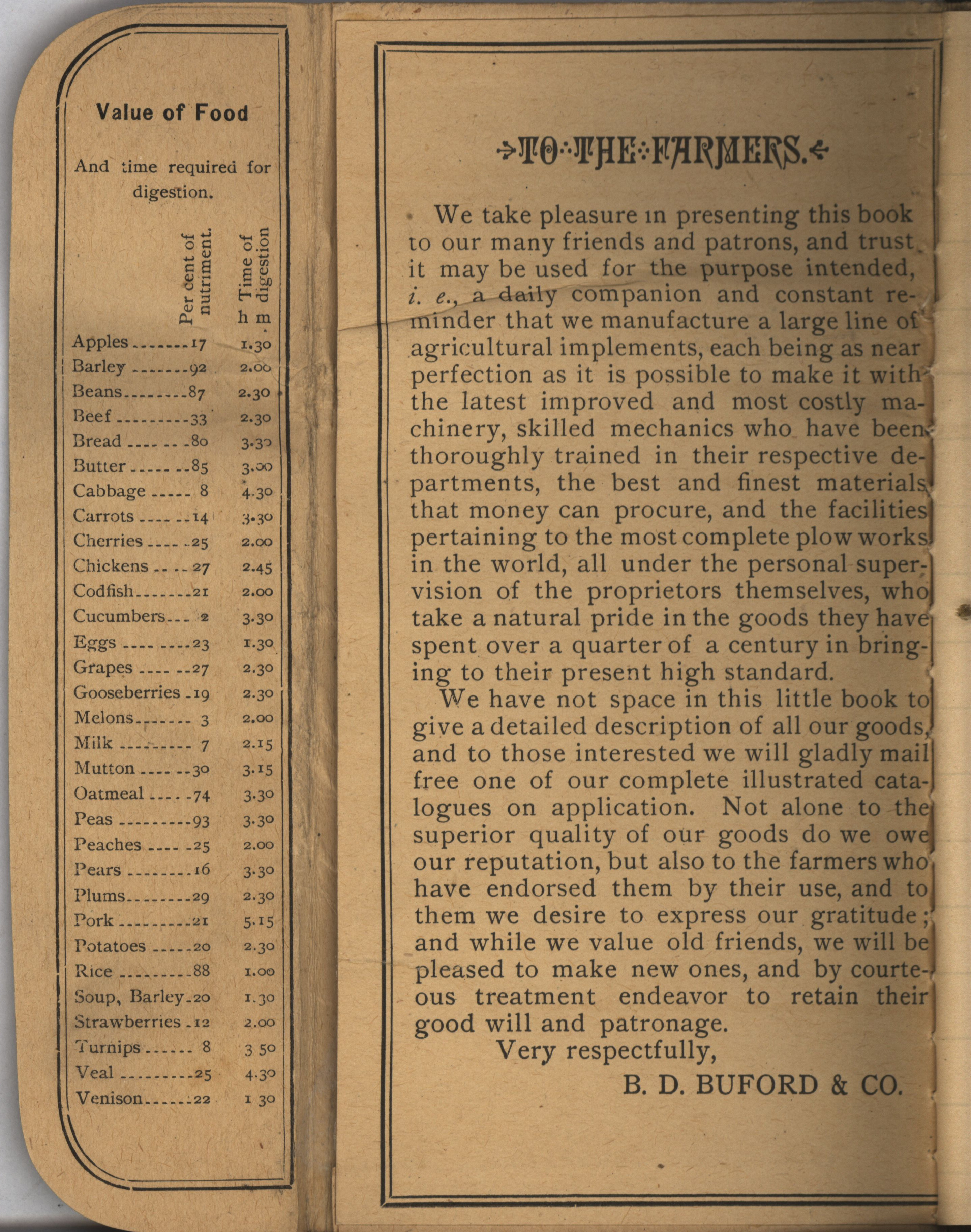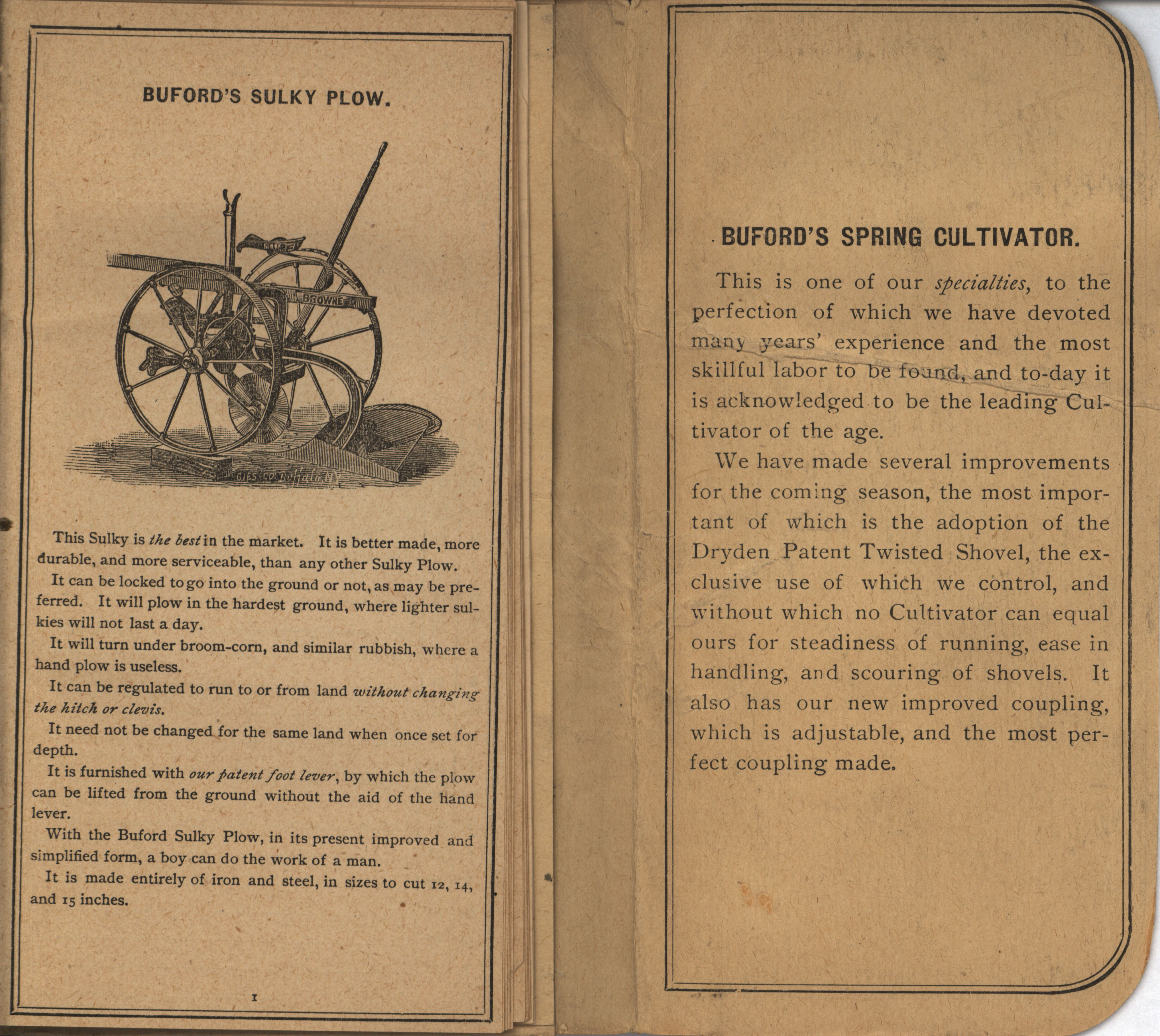 - "Buford and Company Agricultural Implements pocket book", Agricultural Machinery Literature Collection, Iowa State University Library Digital Collections