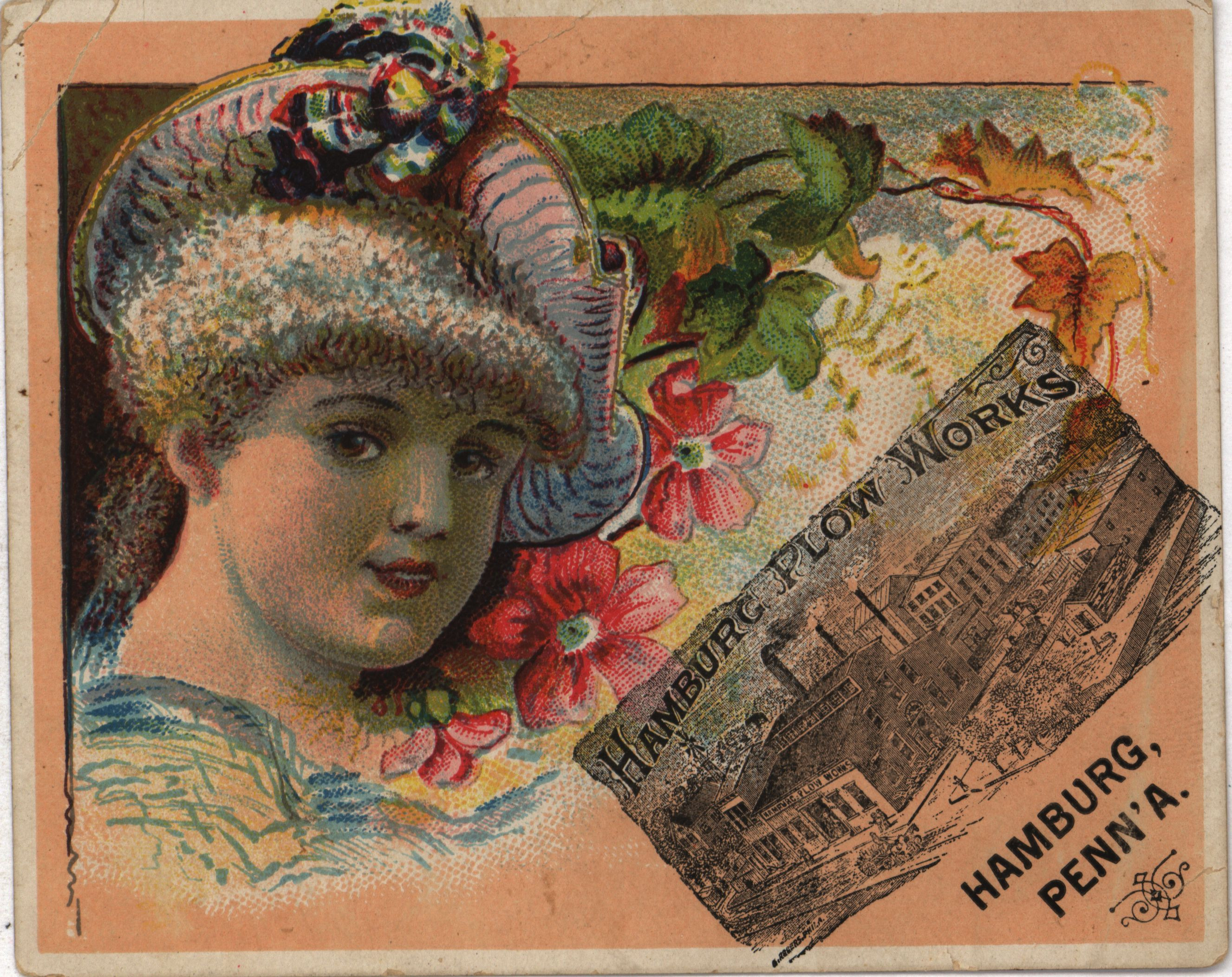 - Illustrated advertisement card for Hamburg Plow Works.