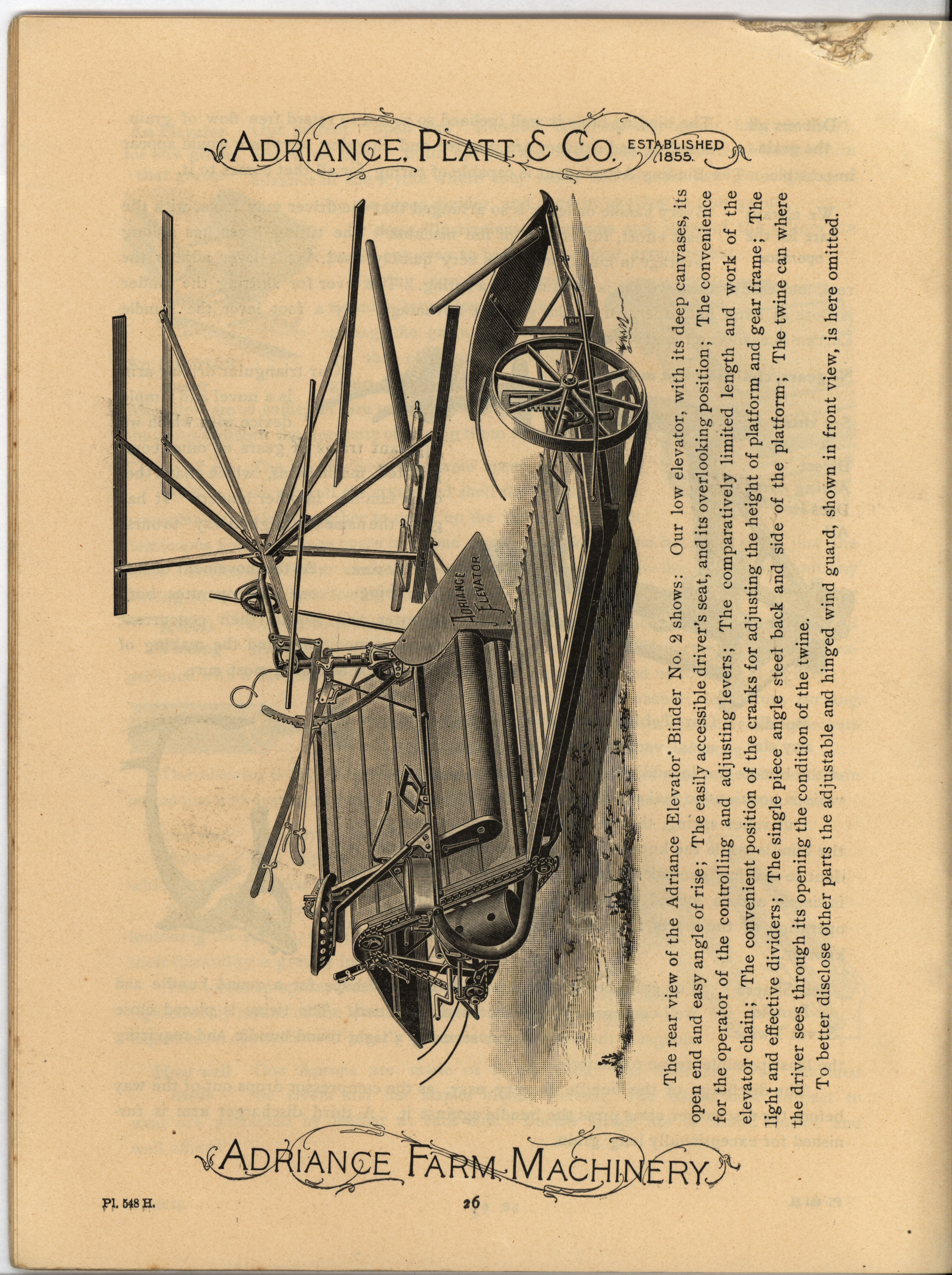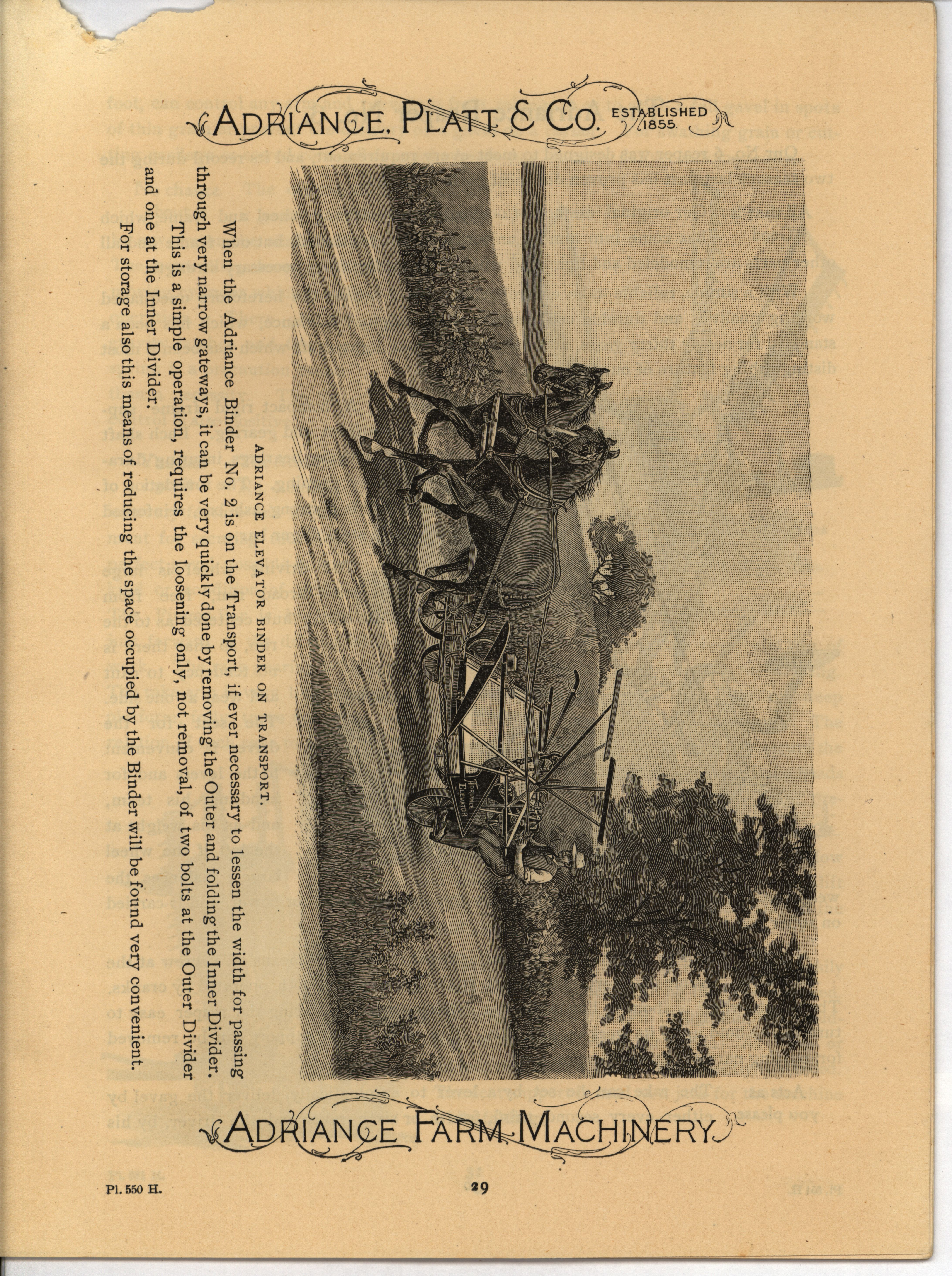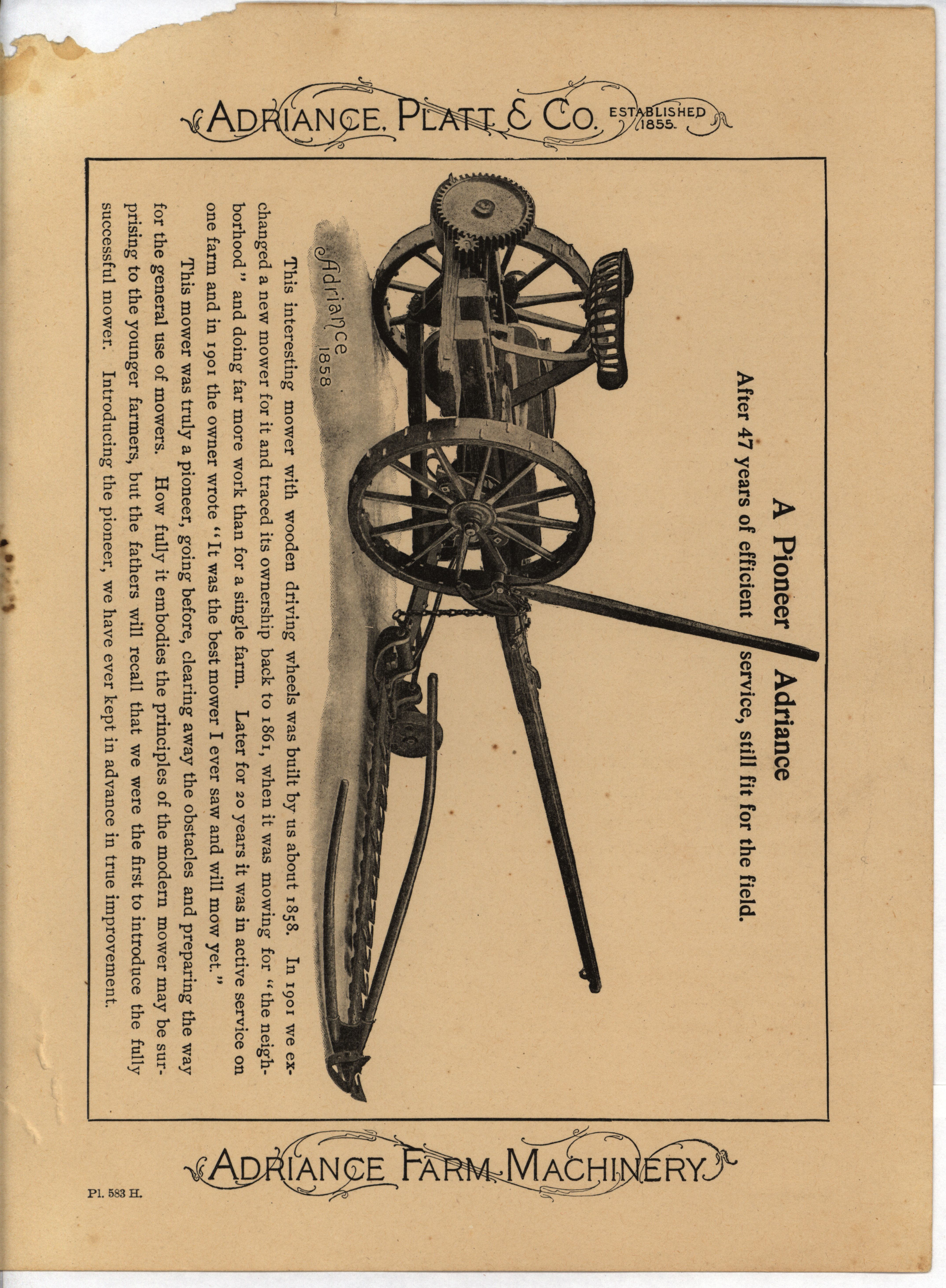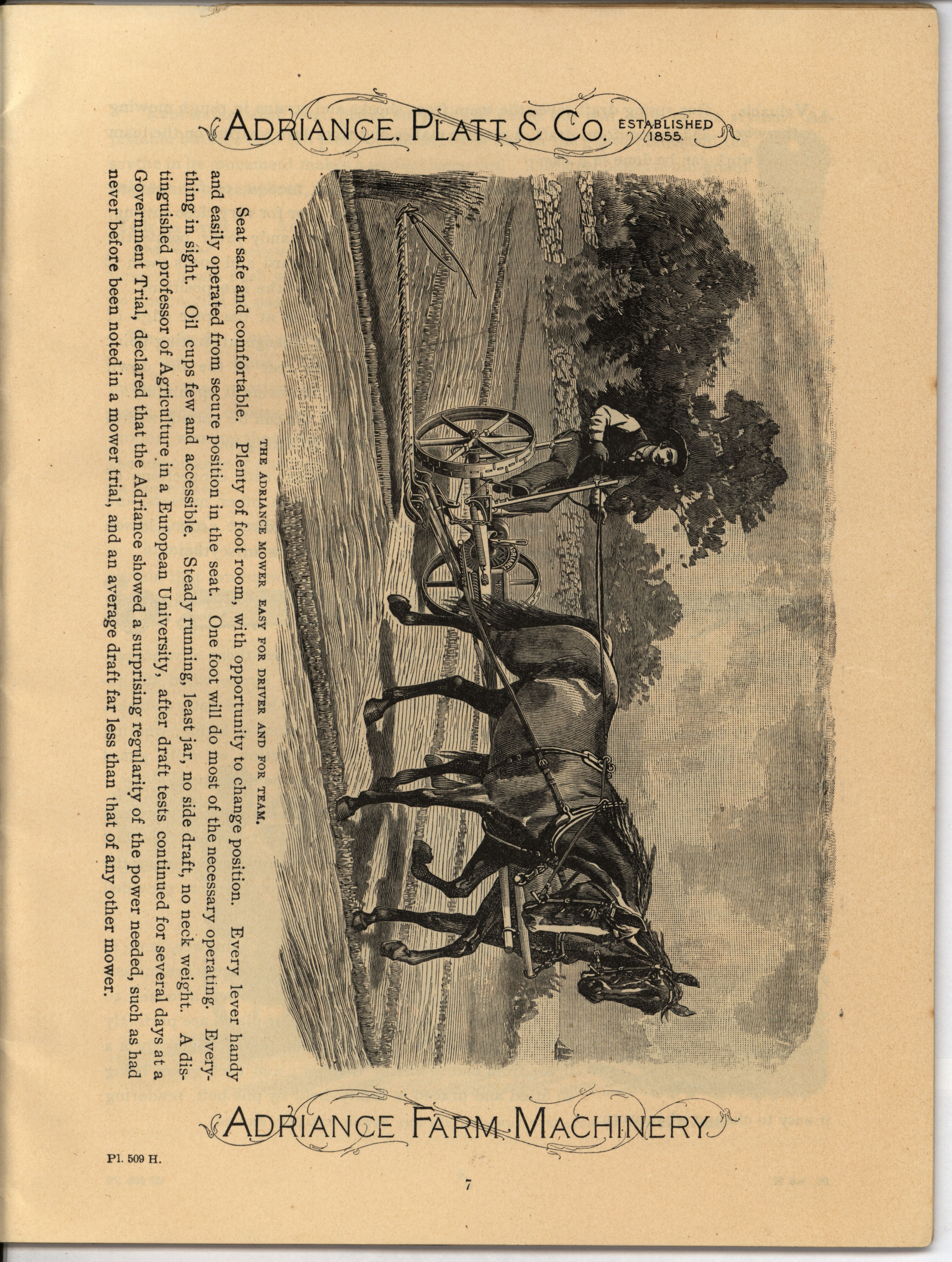 - "Adriance farm machinery--Adriance, Platt & Co.", Agricultural Machinery Literature Collection, Iowa State University Library Digital Collections